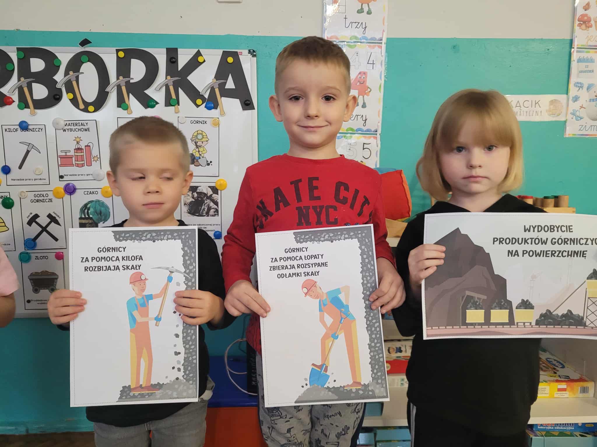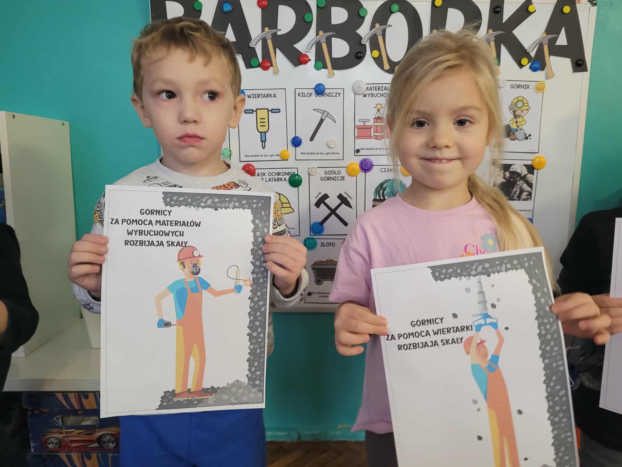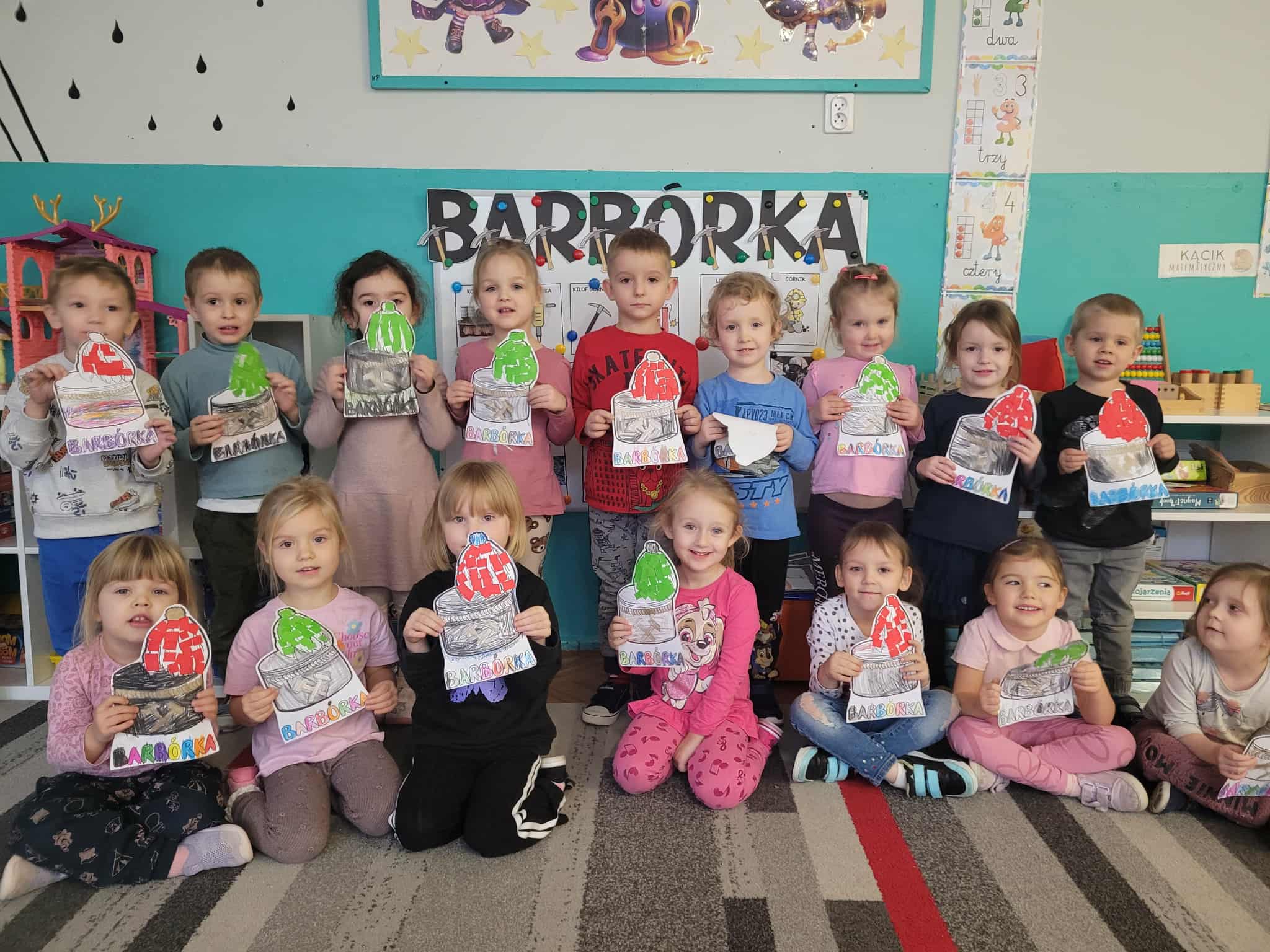 4 grudnia jest szczególnym dniem, w którym swoje święto obchodzą górnicy. Przedszkolaki dowiedziały się , jak ciężka i odpowiedzialna jest praca pod ziemią. Poznały wiele ciekawostek na temat górniczego stroju, oraz dowiedziały się dlaczego święto górników to "Barbórka". Duże zainteresowanie wśród dzieci wzbudziło oglądanie bryłek węgla, a pobrudzone nim rączki wywołały wiele śmiechu. Podczas zajęć plastycznych dzieci wykonały czapki górnicze.