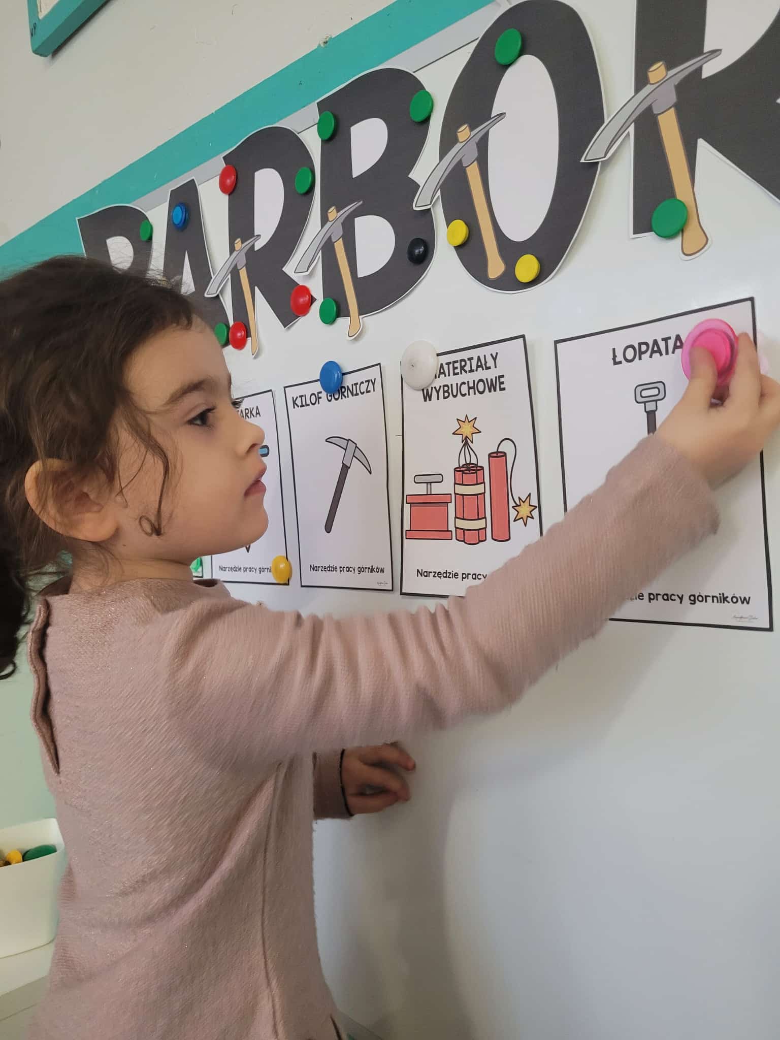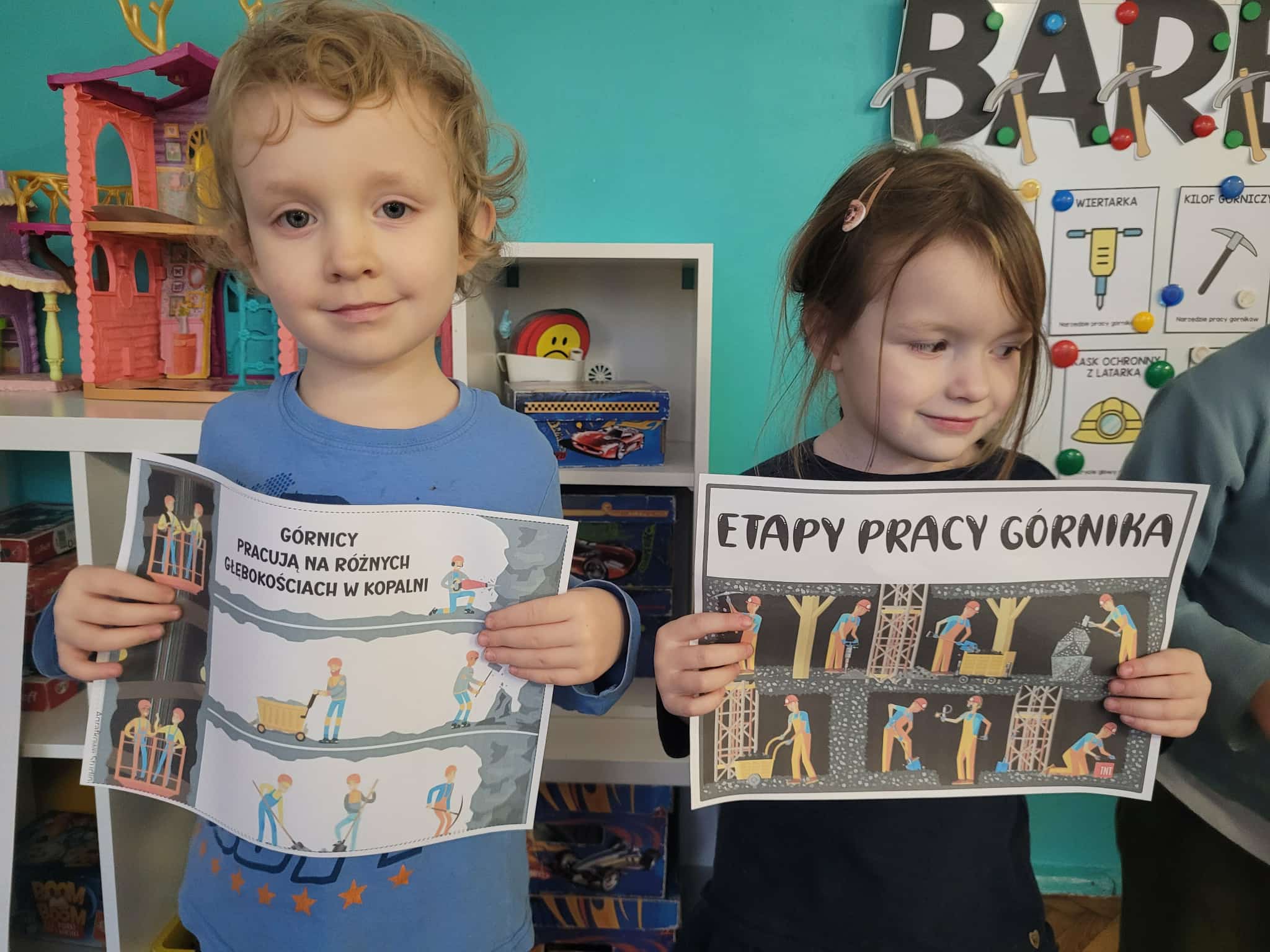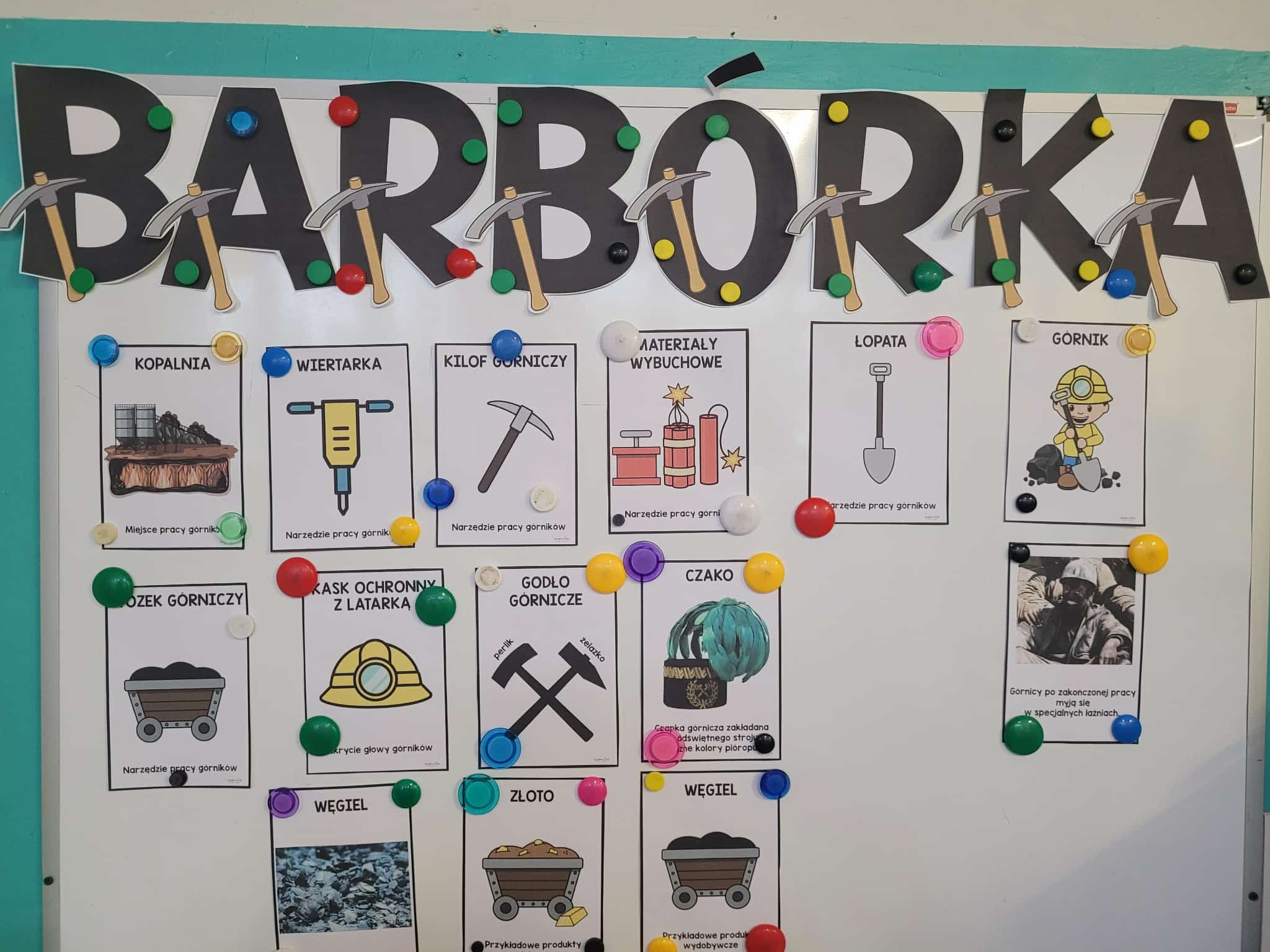 4 grudnia jest szczególnym dniem, w którym swoje święto obchodzą górnicy. Przedszkolaki dowiedziały się , jak ciężka i odpowiedzialna jest praca pod ziemią. Poznały wiele ciekawostek na temat górniczego stroju, oraz dowiedziały się dlaczego święto górników to "Barbórka". Duże zainteresowanie wśród dzieci wzbudziło oglądanie bryłek węgla, a pobrudzone nim rączki wywołały wiele śmiechu. Podczas zajęć plastycznych dzieci wykonały czapki górnicze.