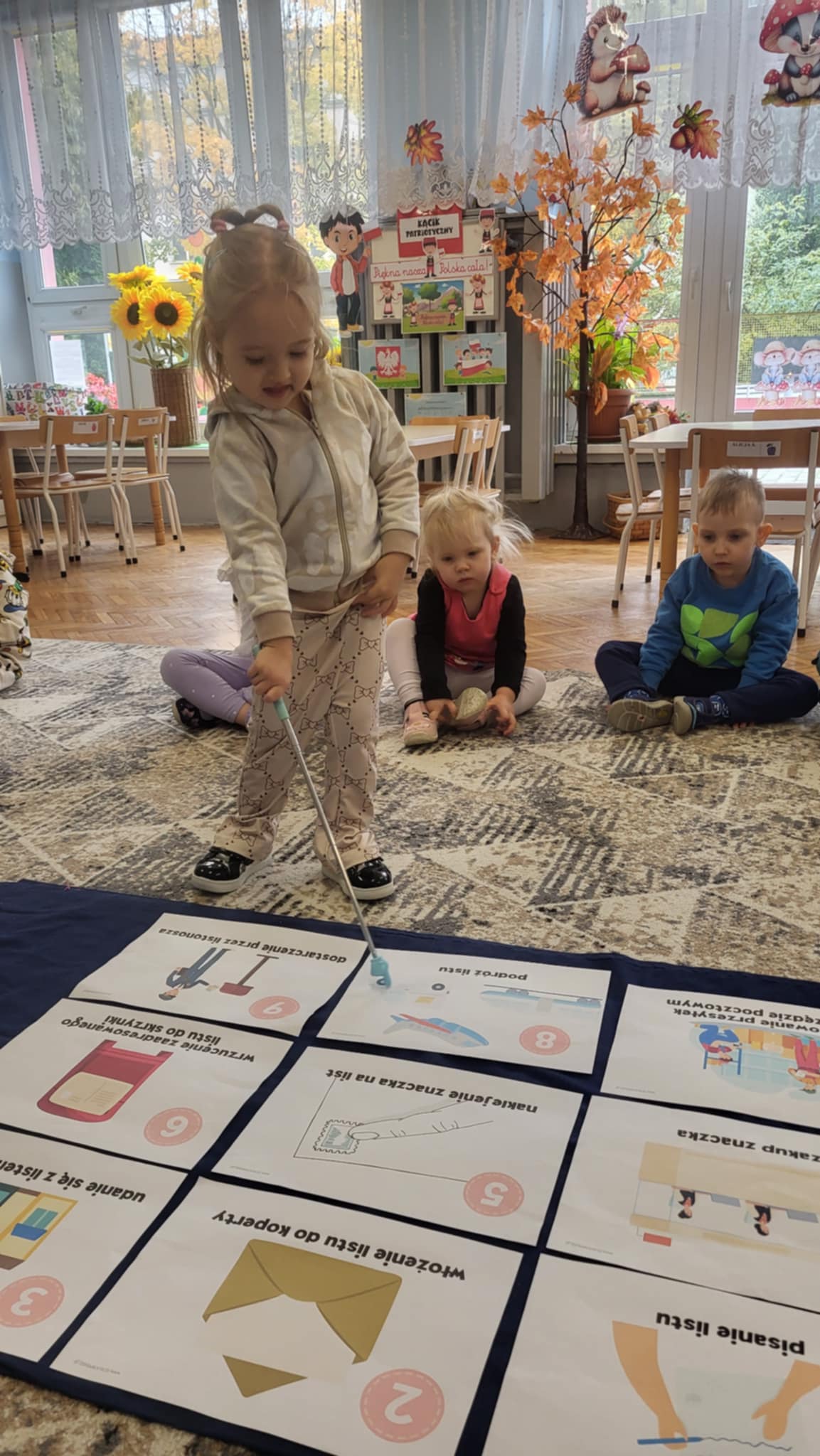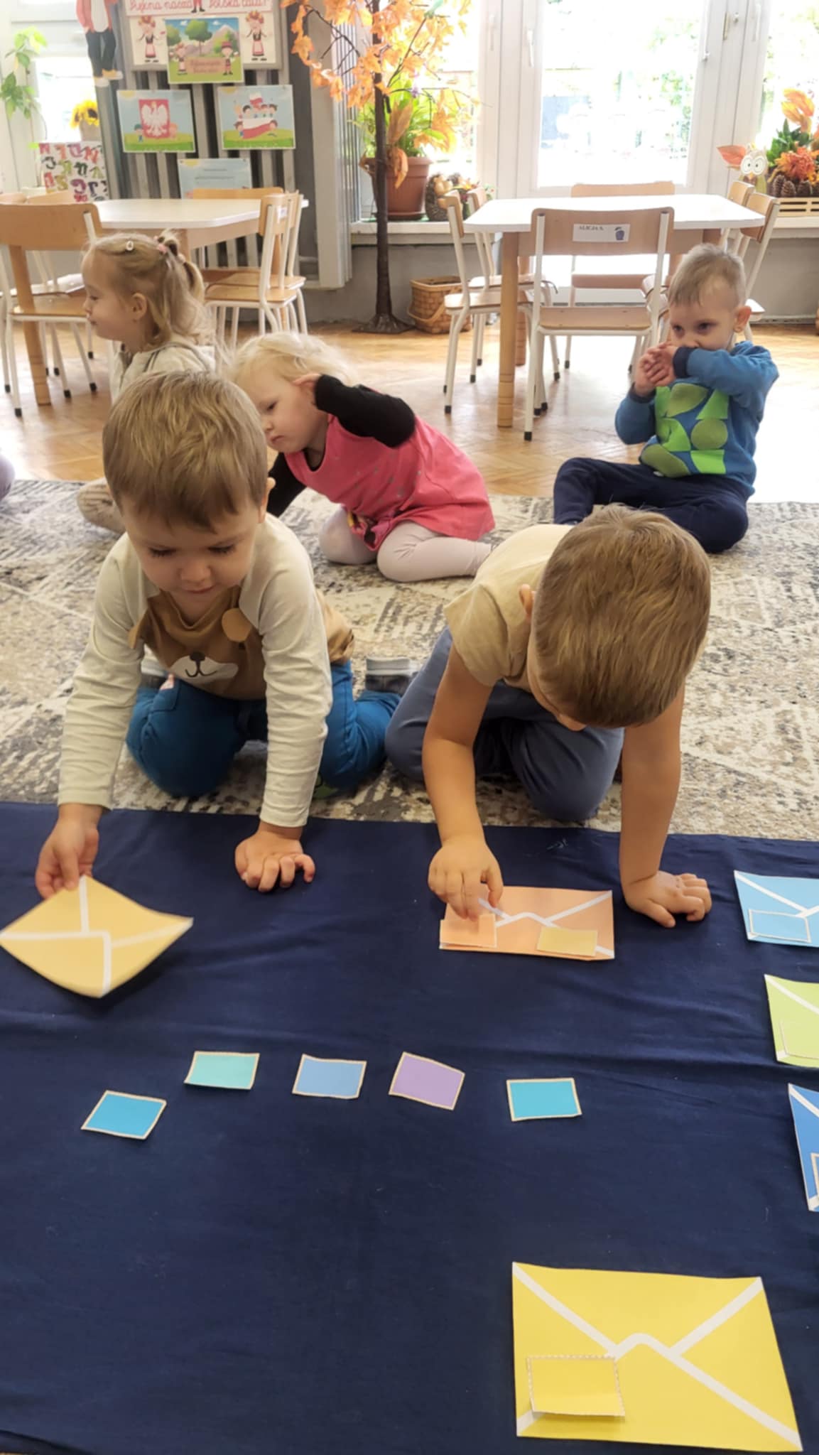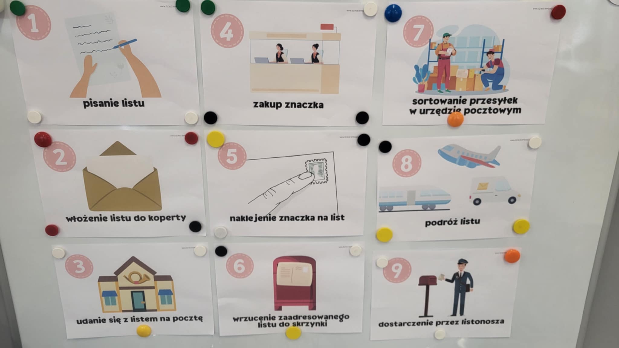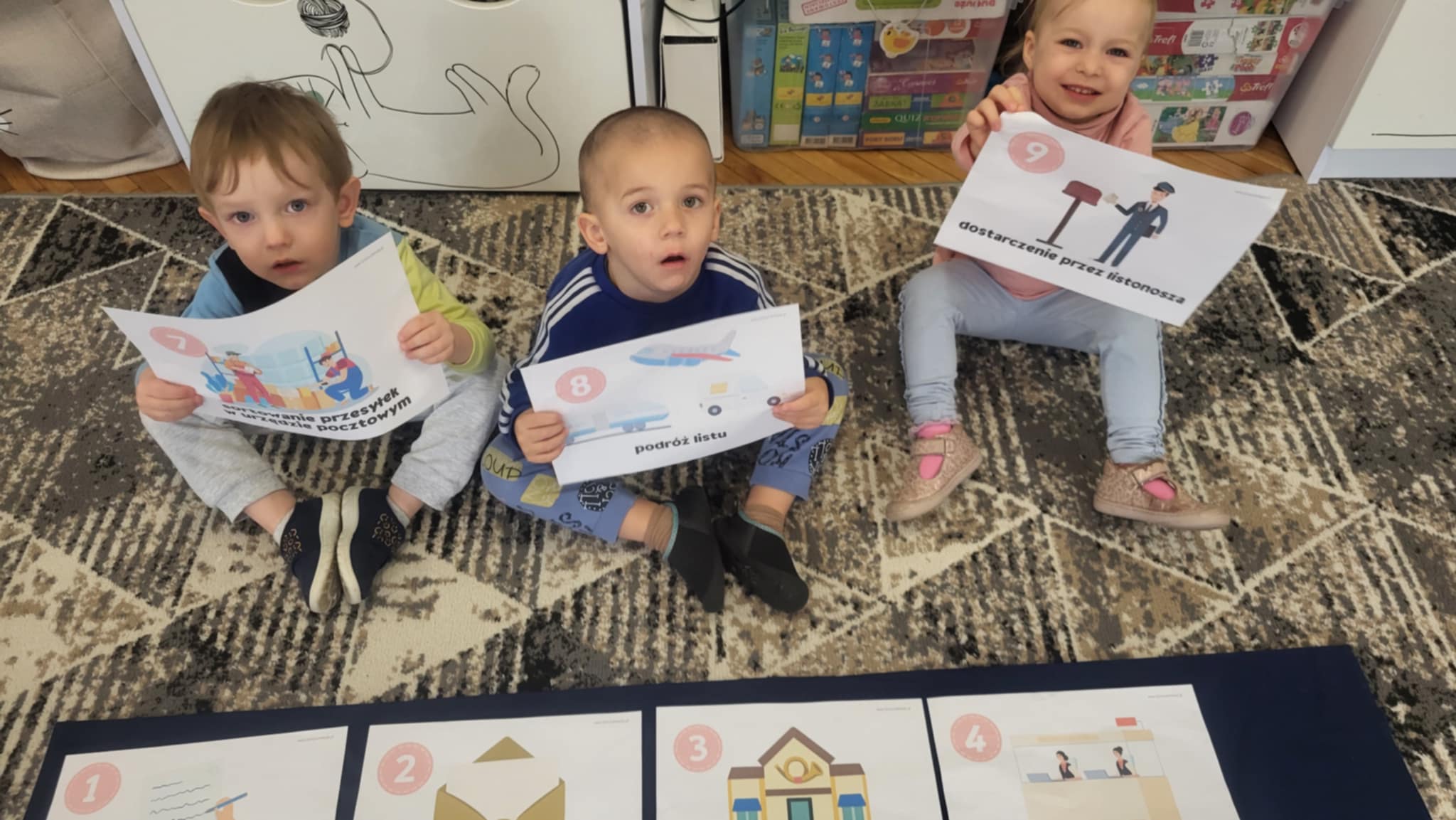 Nasze Maluszki wiedzą już, że listonosz to pracownik poczty, który każdego dnia doręcza listy, paczki i inne przesyłki. Chodzi pieszo lub jeździ rowerem, często pokonując wiele kilometrów, aby dostarczyć wszystko prosto do adresatów. Na swojej pracy nosi charakterystyczny uniform i ma wielką torbę, która jest wypełniona listami i przesyłkami. Poznały czego potrzebujemy, by nasz list został wysłany i doręczony oraz jaką drogę mus przebyć, by dotrzeć do odbiorcy. Wiedzą też, że praca listonosza jest dla nas ważna.