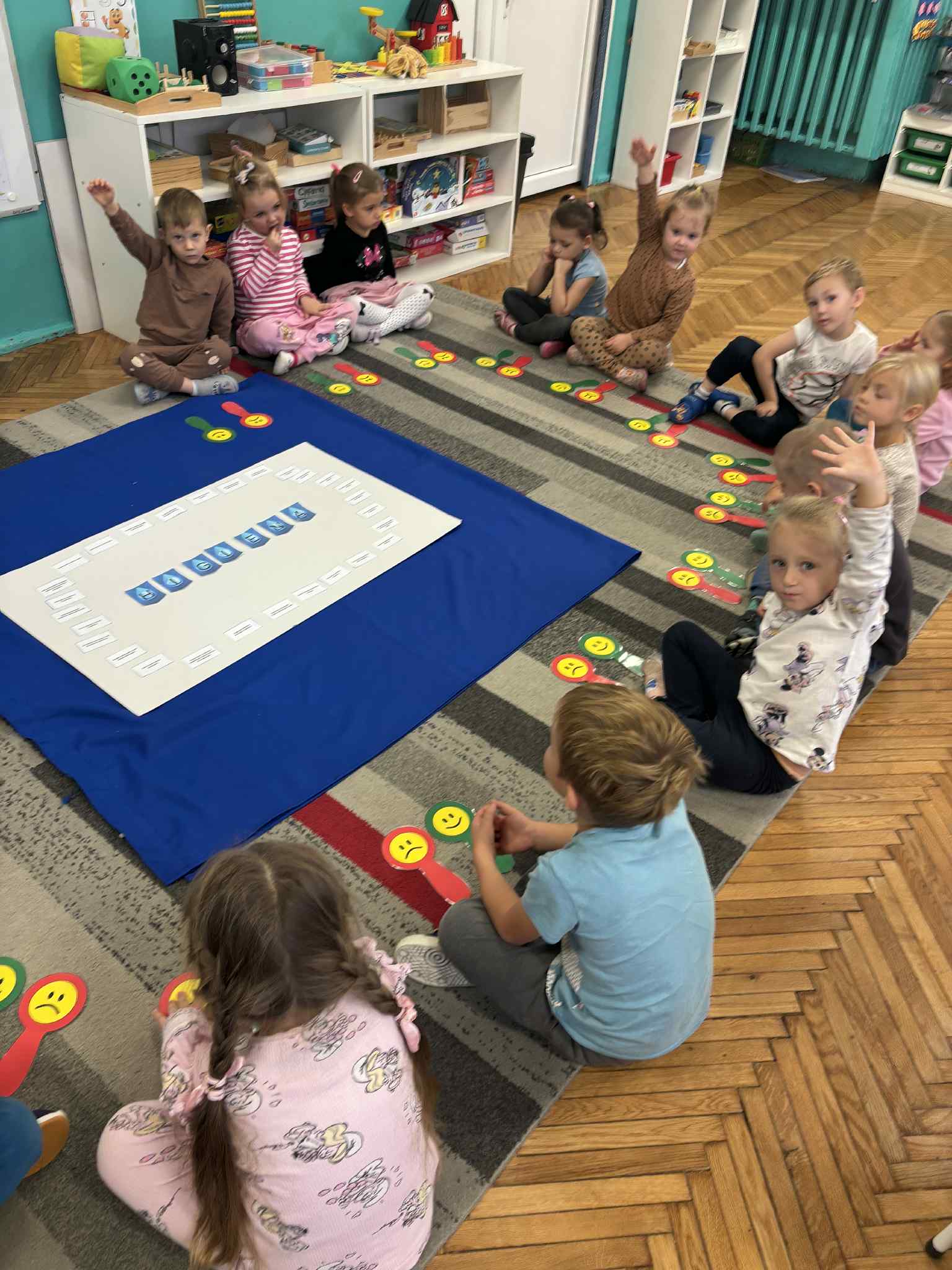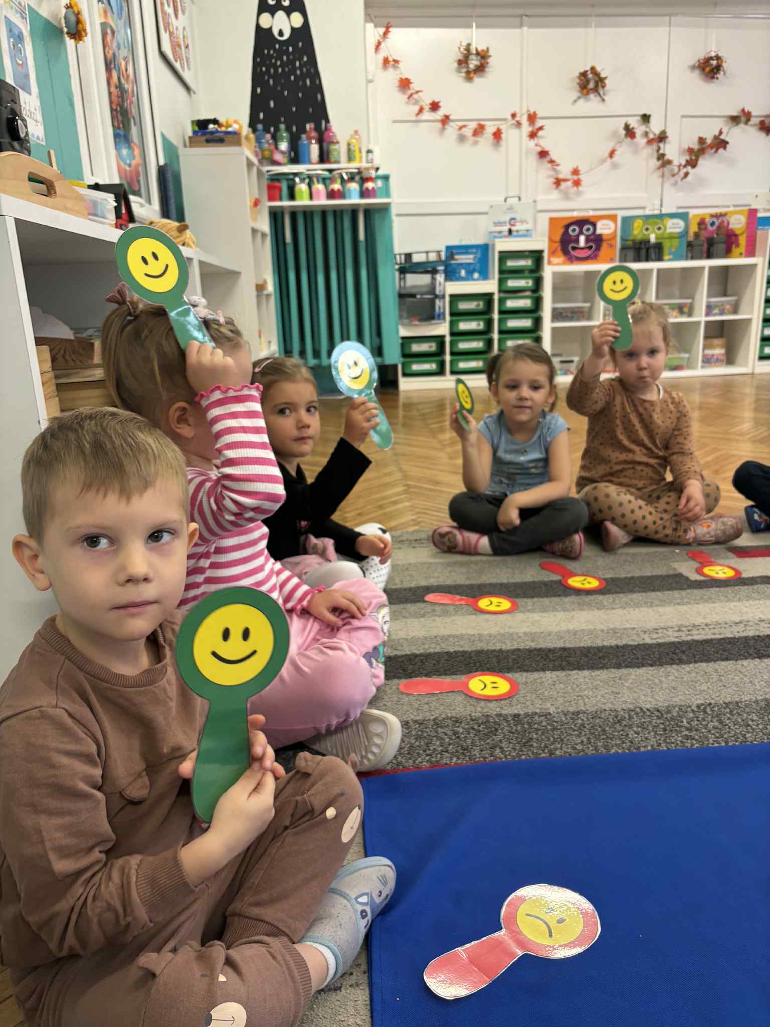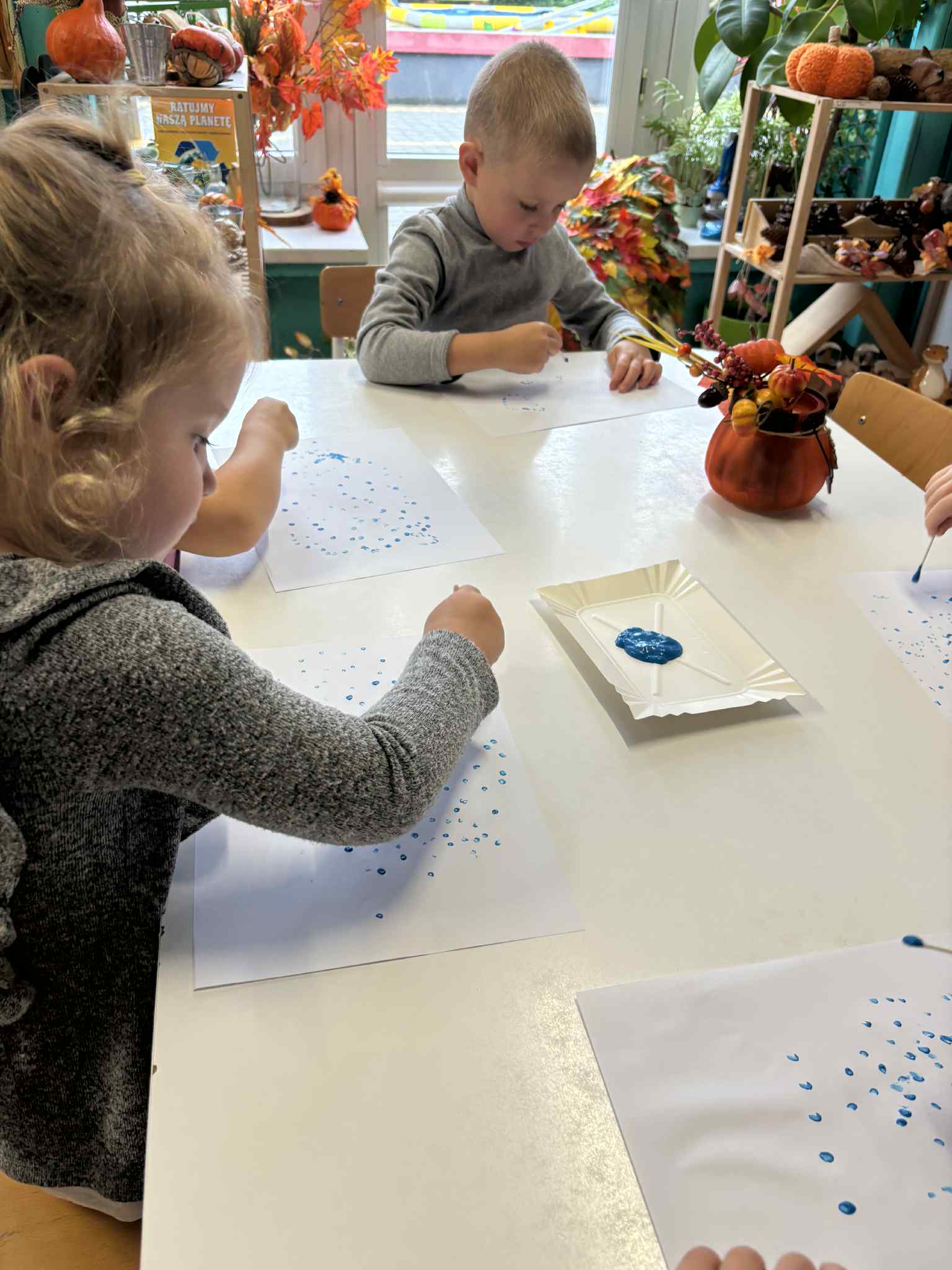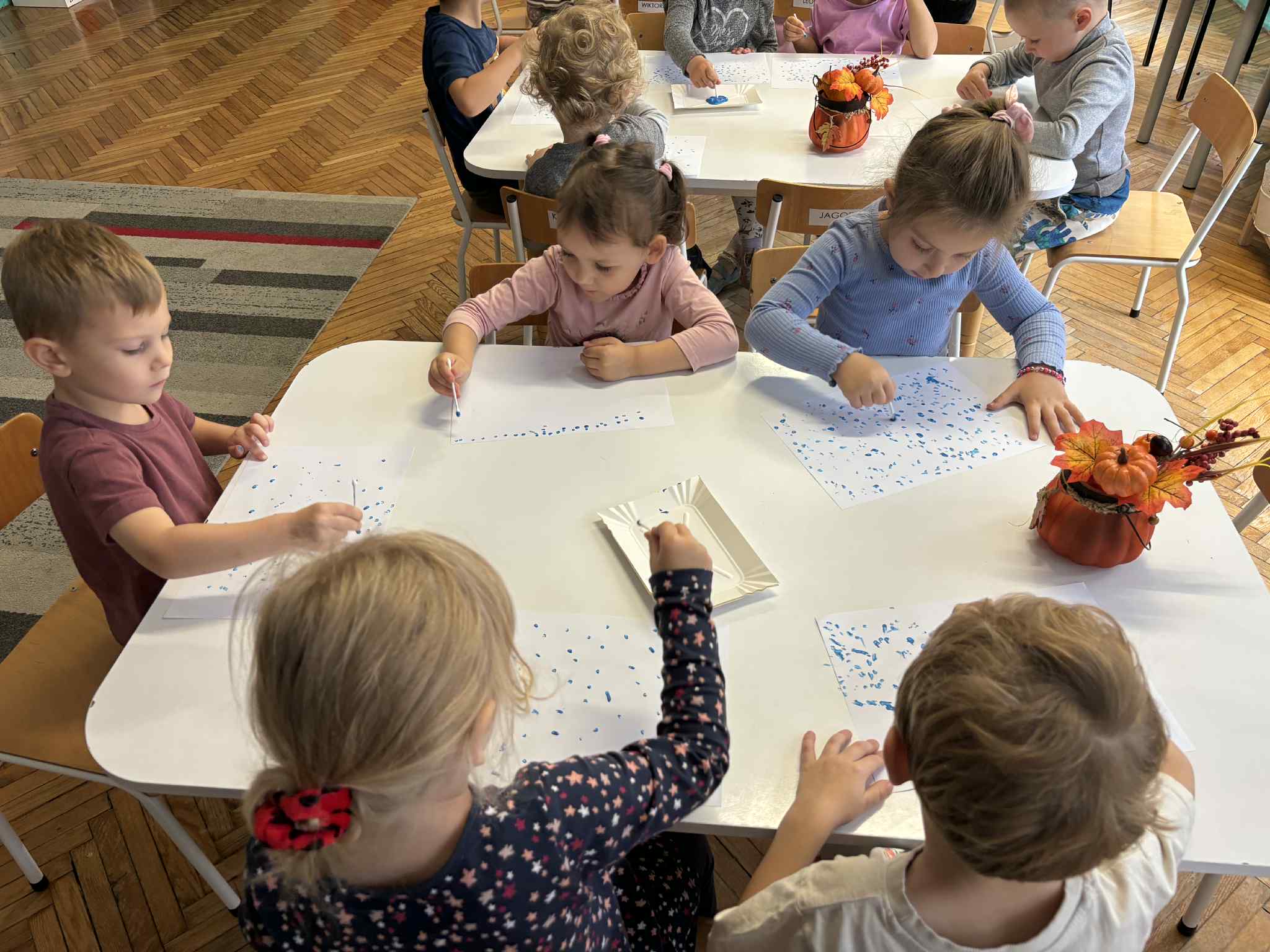 W grupie rozmawialiśmy o tym, jak ważne jest dbanie o czystość i zdrowie każdego dnia. Dzieci wzięły udział w quizie wiedzy o higienie, świetnie odpowiadając na pytania o mycie rąk, zębów i pielęgnację ciała. W części plastycznej powstały piękne prace- kolorowaliśmy krany, odrysowywaliśmy swoje dłonie i malowaliśmy krople wody patyczkami, tworząc wyjątkową, pełną barw kompozycję. Było edukacyjnie, kreatywnie i bardzo wesoło