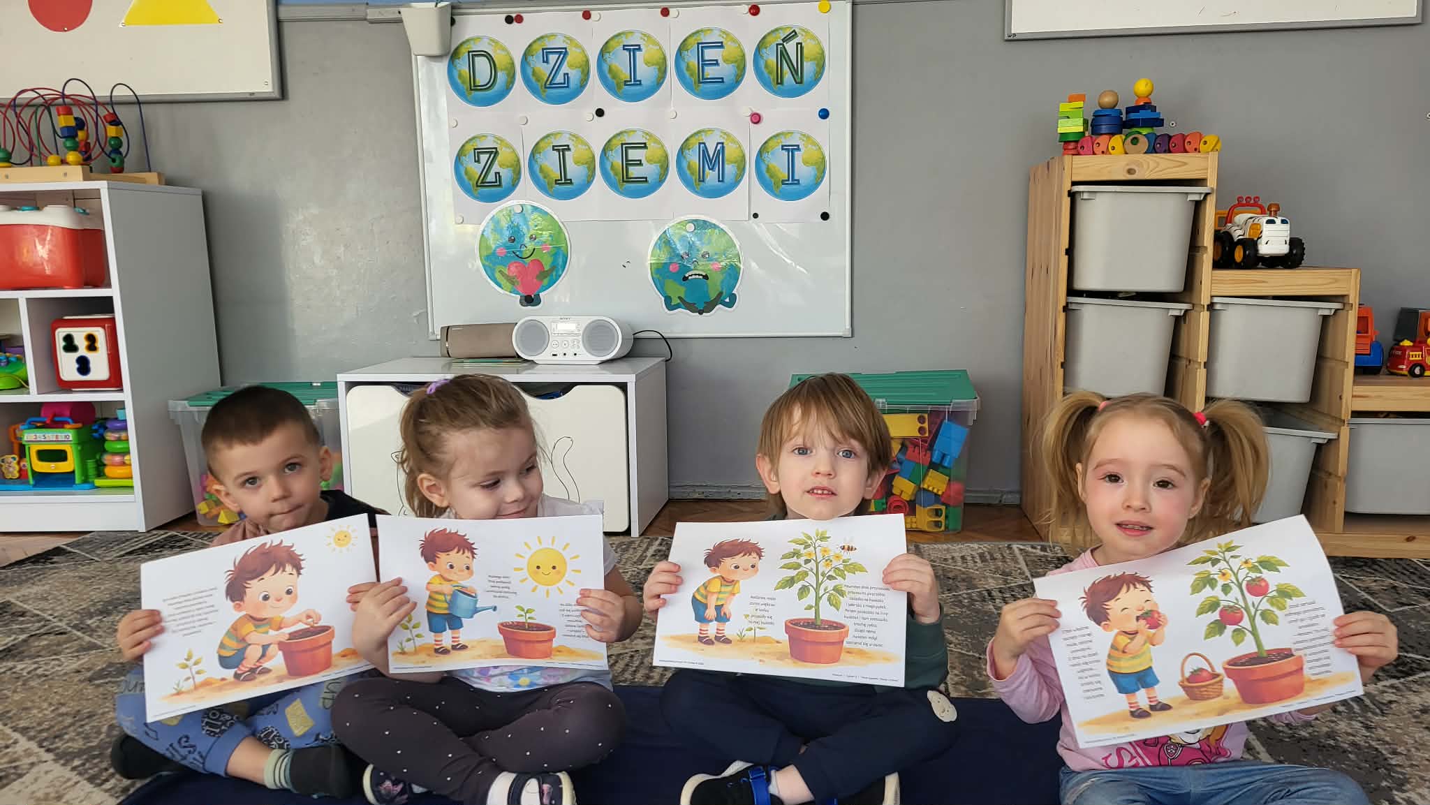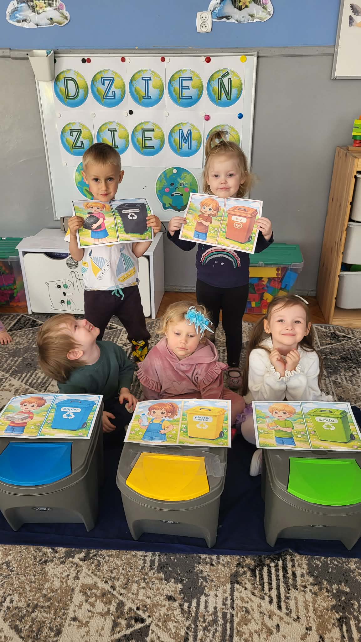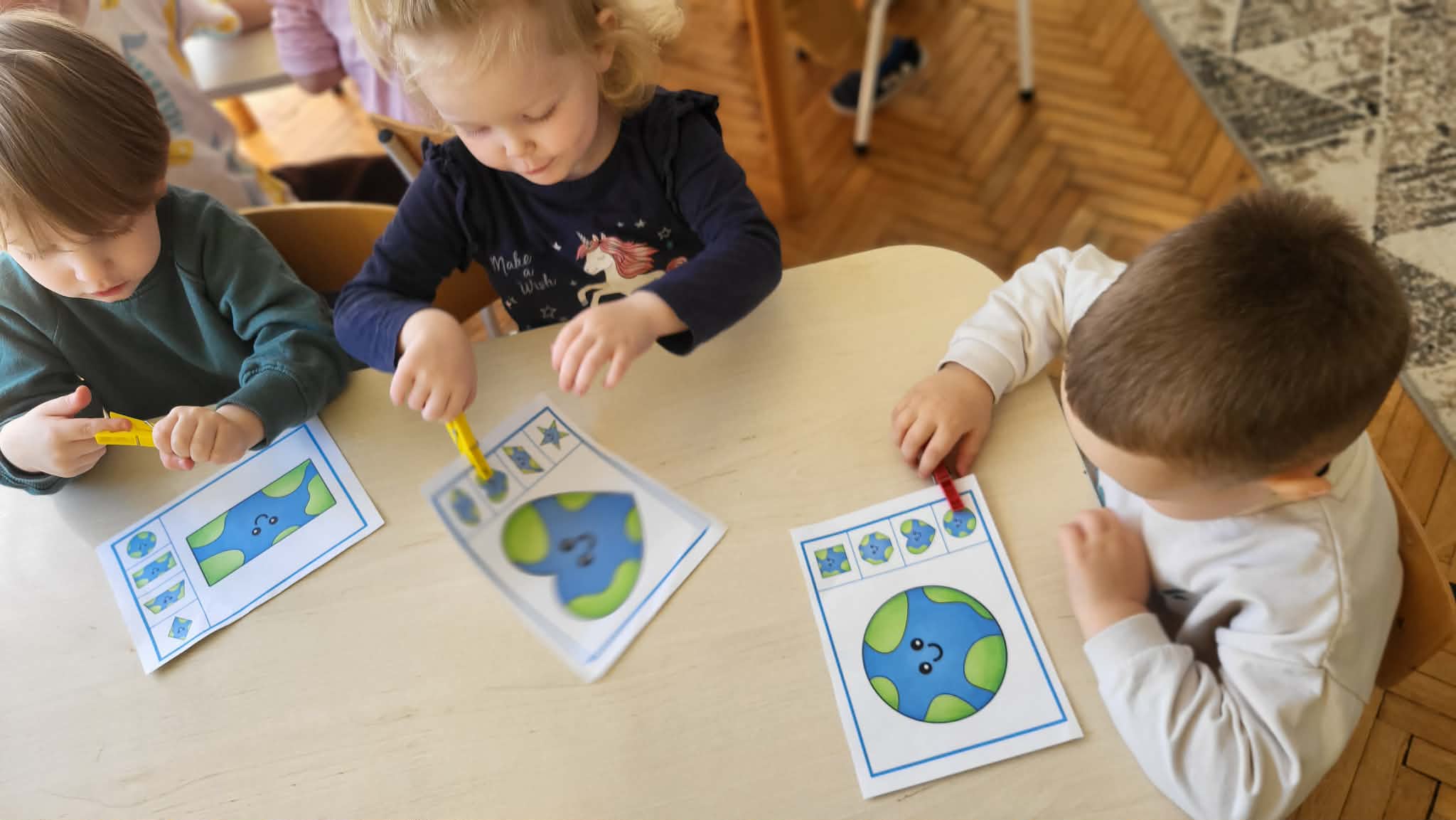 Nasze Maluszki uczą się, jak dbać o naszą planetę na co dzień, m.in. segregując śmieci. Poprzez zabawy klamerkowe ćwiczą chwyt trójpalcowy oraz spostrzegawczość. W wolnych chwilach korzystają z pięknej pogody, bawiąc się w naszym ogrodzie przedszkolnym.