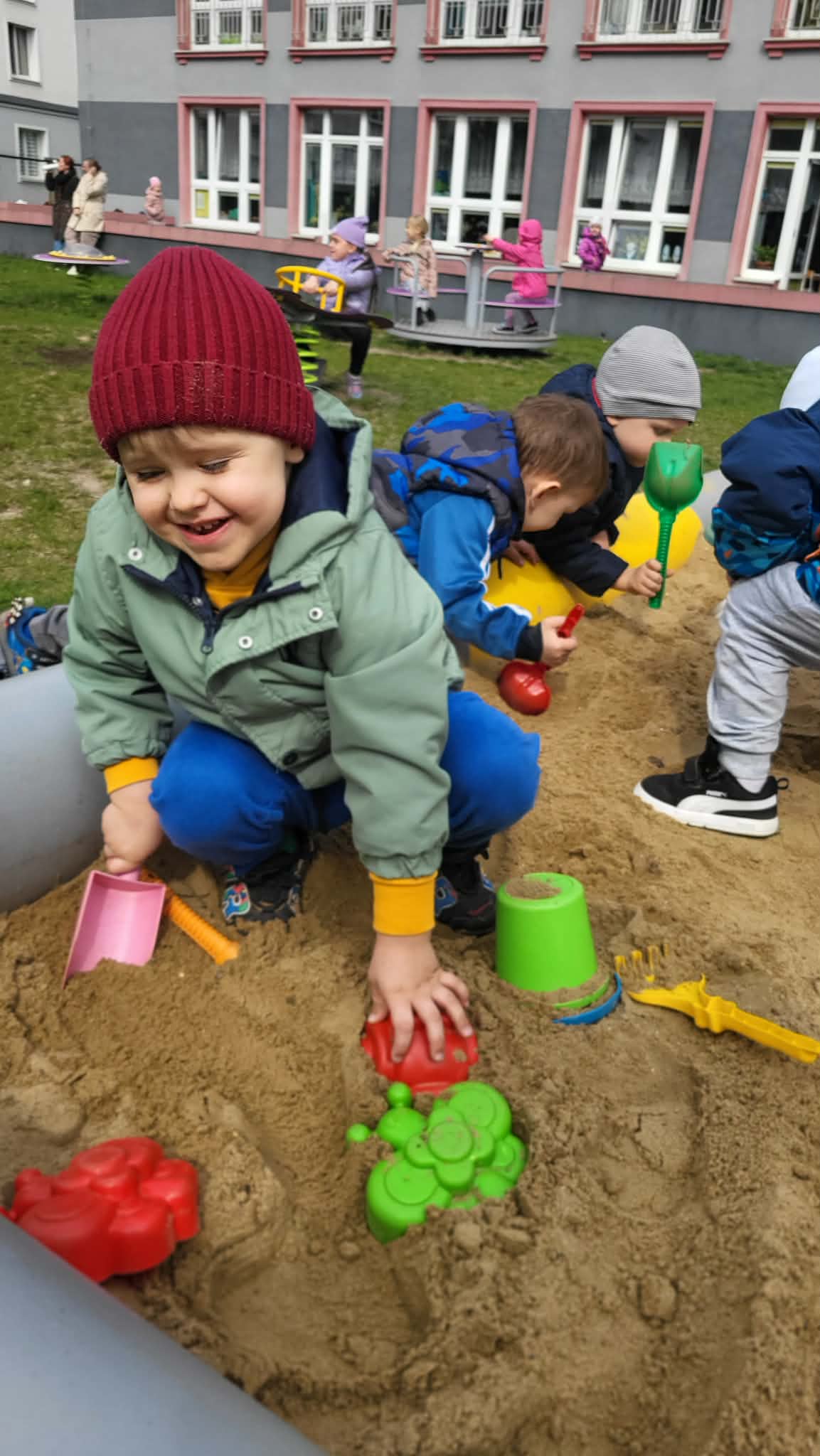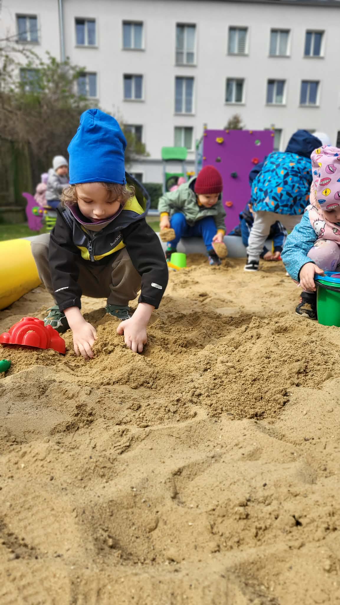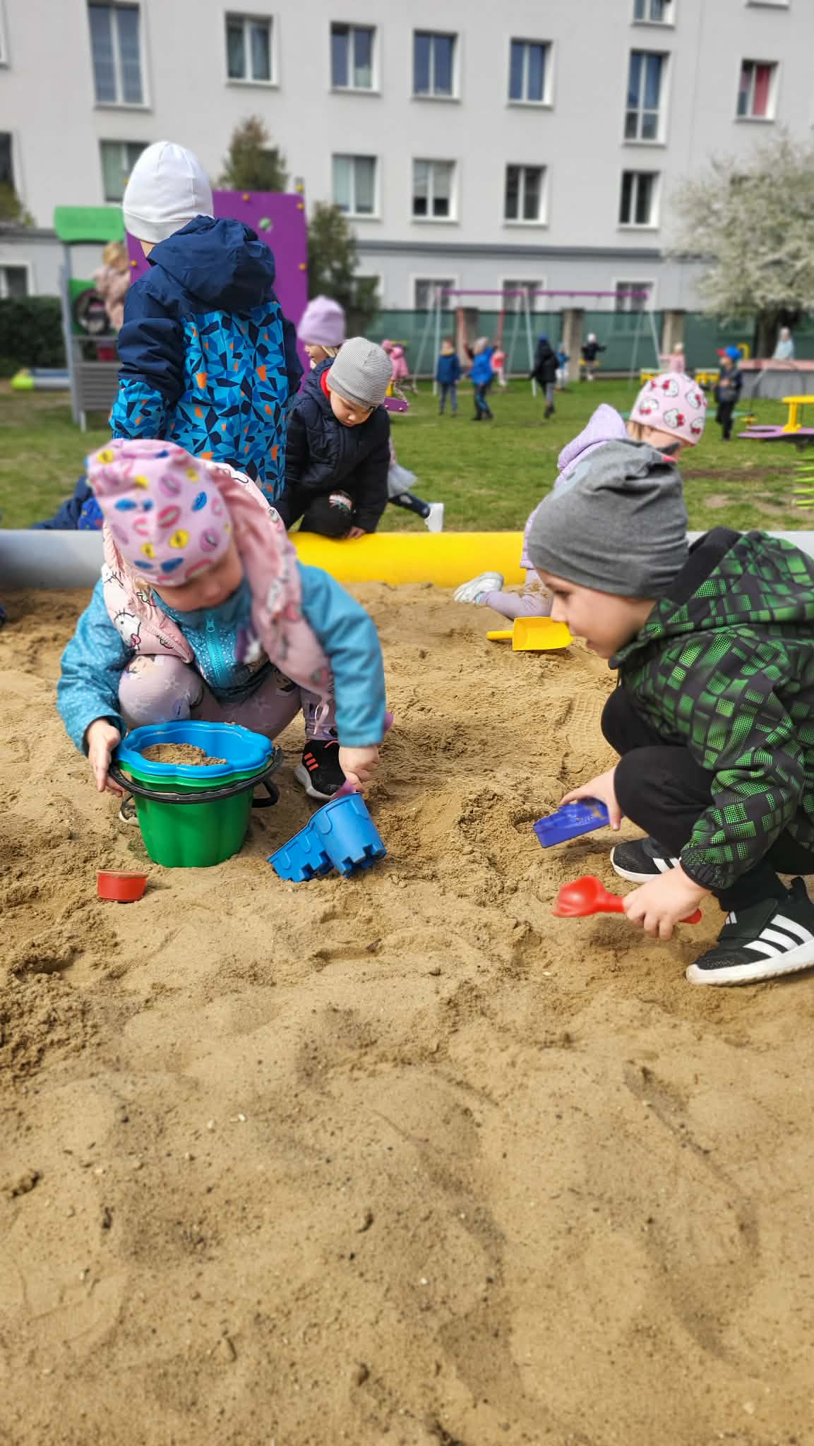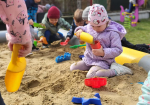 Nasze Maluszki uczą się, jak dbać o naszą planetę na co dzień, m.in. segregując śmieci. Poprzez zabawy klamerkowe ćwiczą chwyt trójpalcowy oraz spostrzegawczość. W wolnych chwilach korzystają z pięknej pogody, bawiąc się w naszym ogrodzie przedszkolnym.