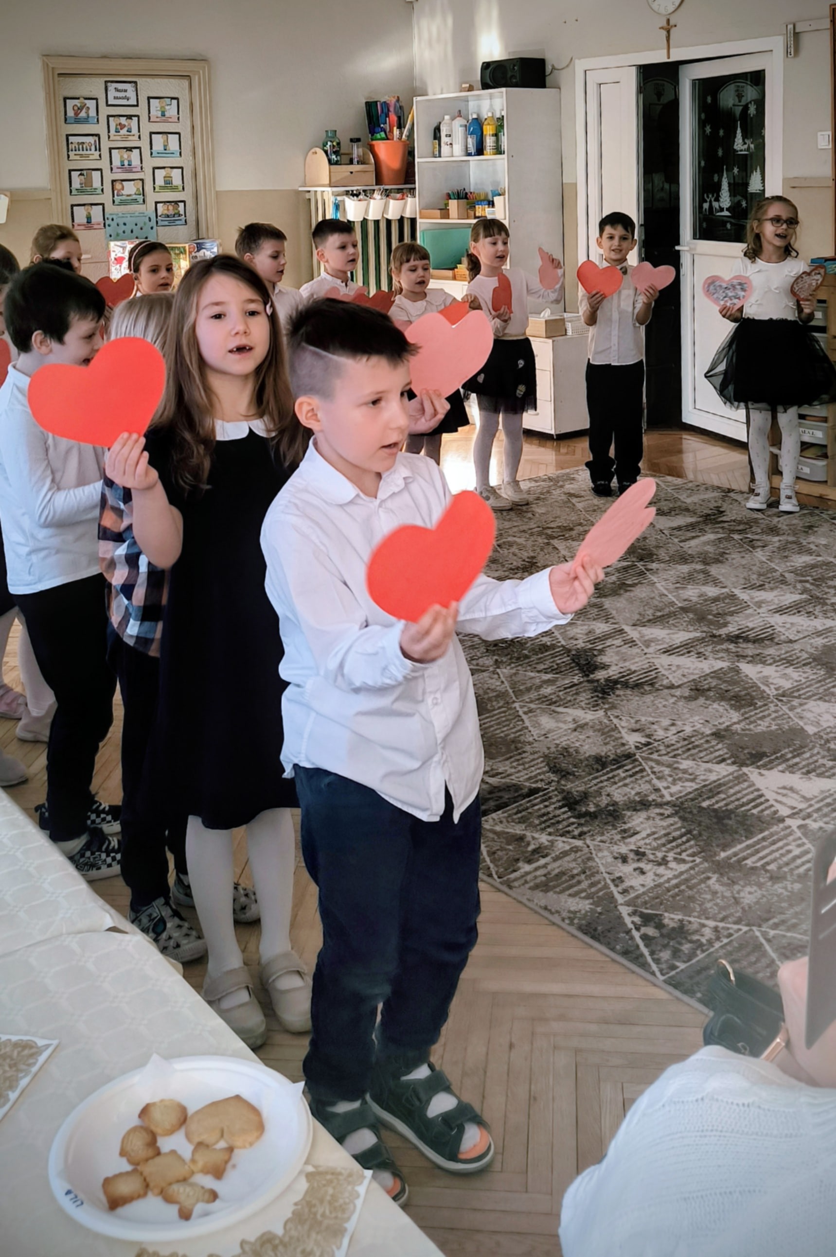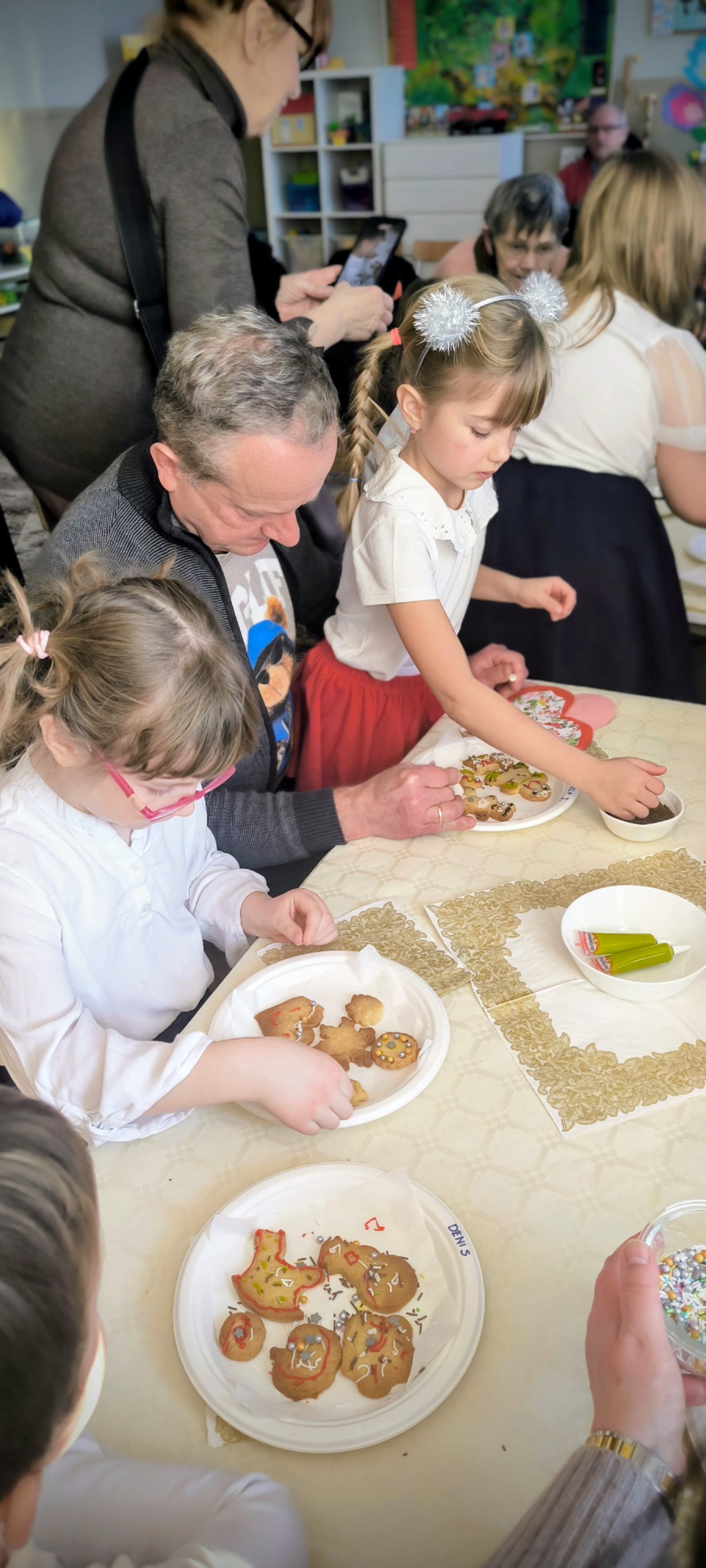 "Babciu,dziadku coś Wam dam, dam Wam serce, które mam, a w tym sercu piękny kwiat, BABCIU, DZIADKU żyj sto lat !!!" Starszaki uhonorowały obchody święta babci i dziadka prezentując w I części program artystyczny. Dziadkowie również mieli swój udział w spotkaniu uczestnicząc we wspólnych zabawach z wnukami. W II części dzieci zaprosiły swoich gości do wspólnego dekorowania maślanych ciasteczek, które samodzielnie pprzygotowały dzień wcześniej. Wspólna zabawa była przednia!