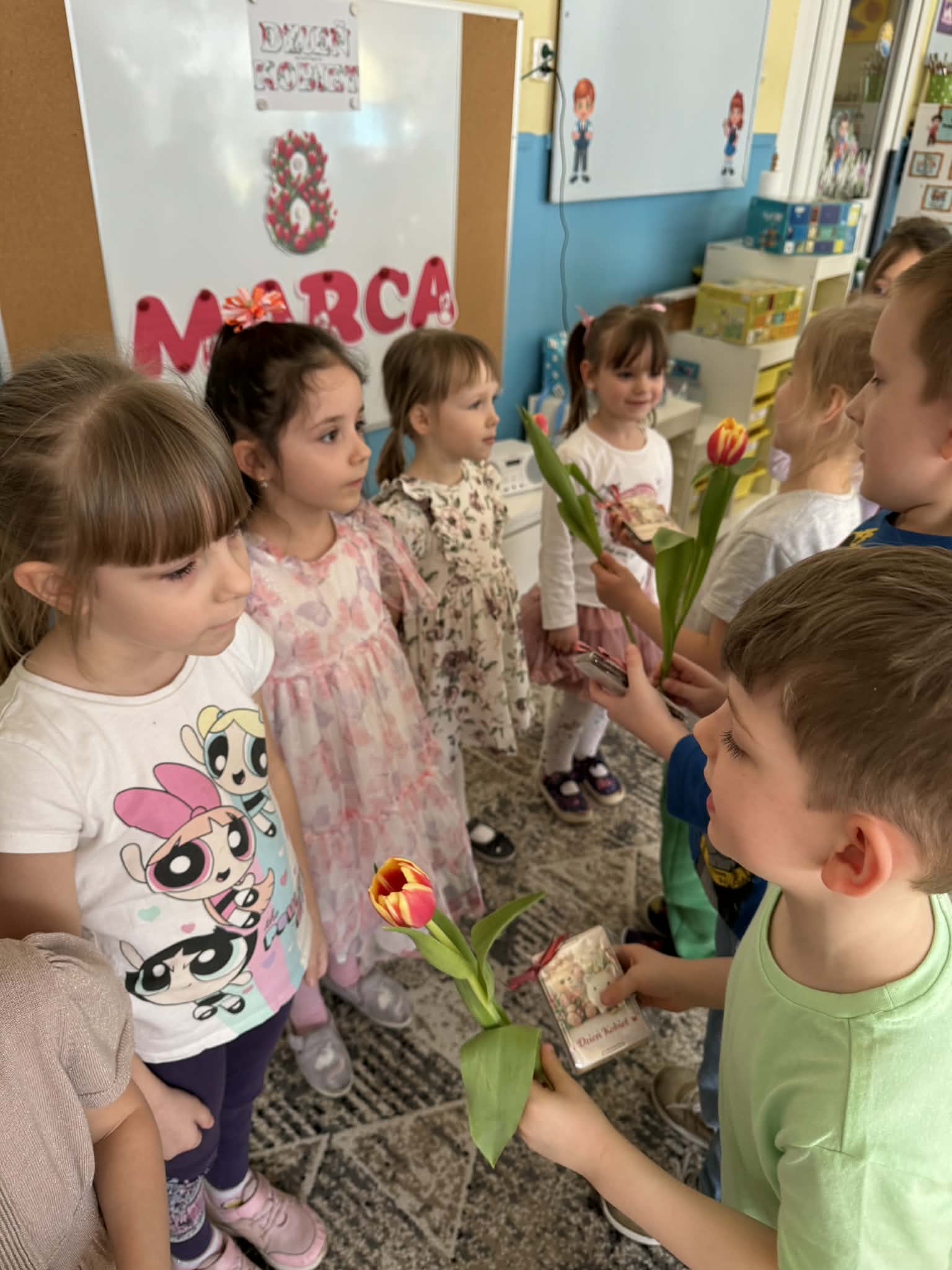Z okazji Dnia Kobiet chłopcy złożyli dziewczynkom serdeczne życzenia oraz wręczyli drobne upominki. Był to dzień pełen uśmiechu, życzliwości i wspólnej zabawy.