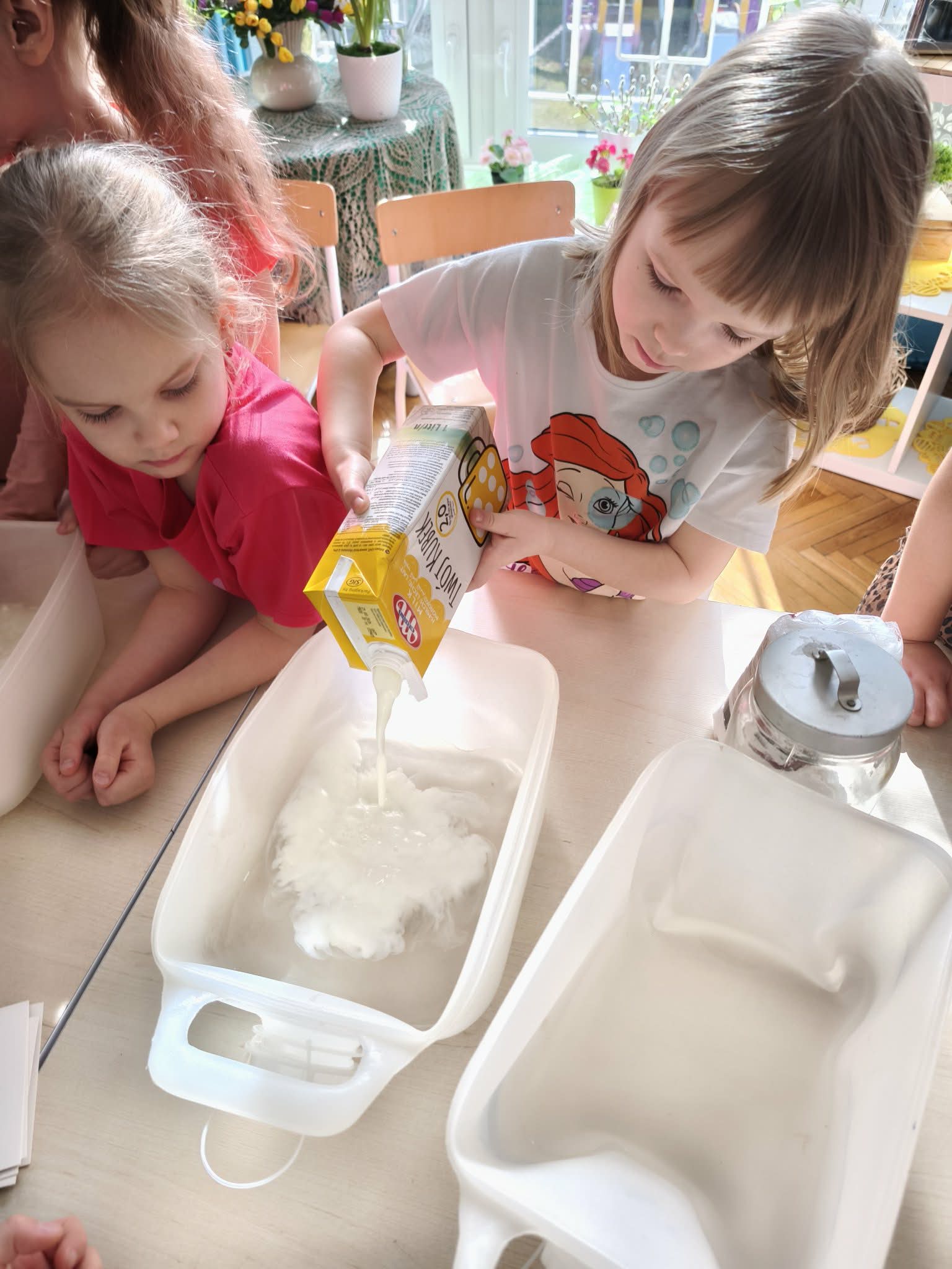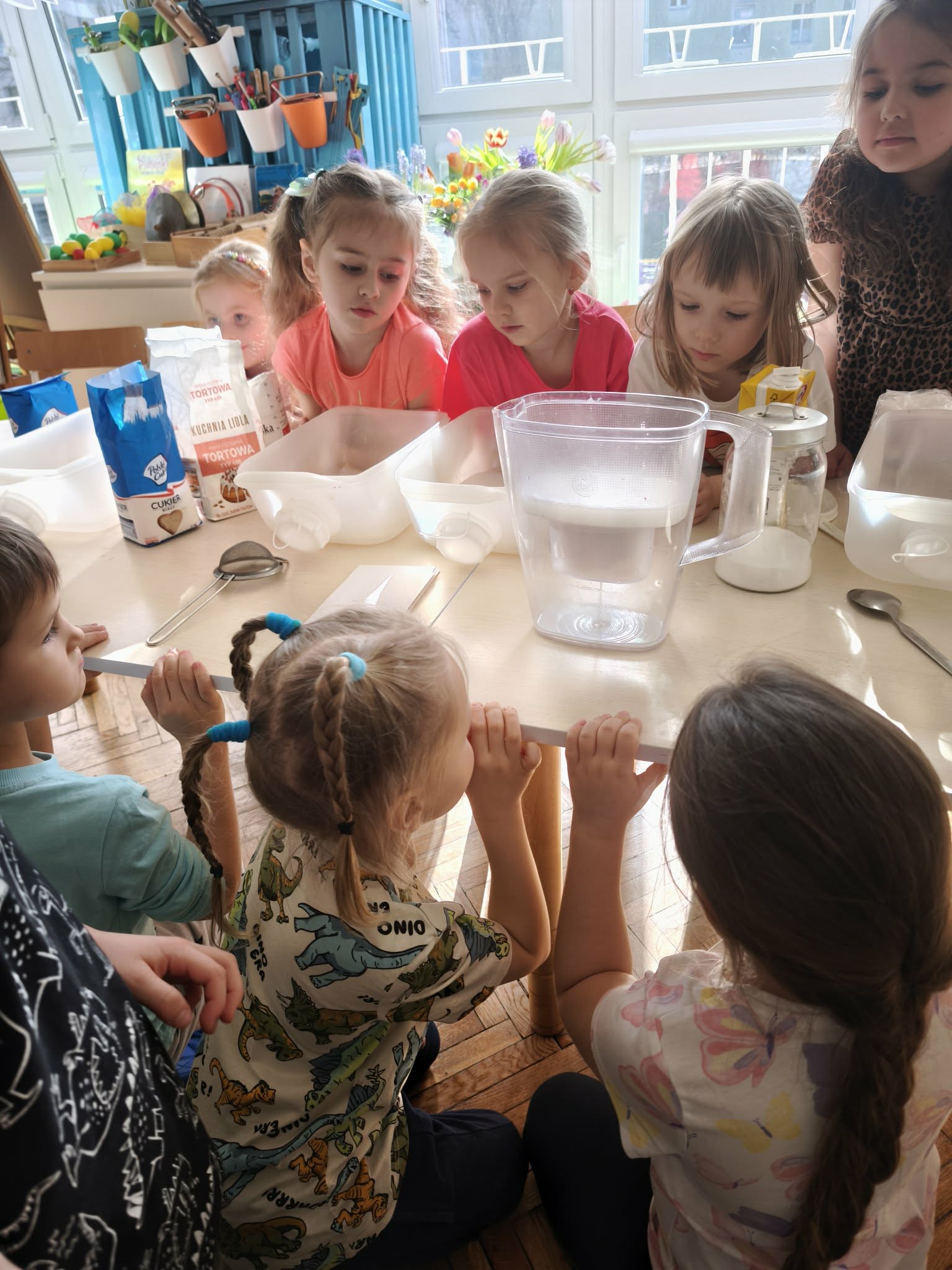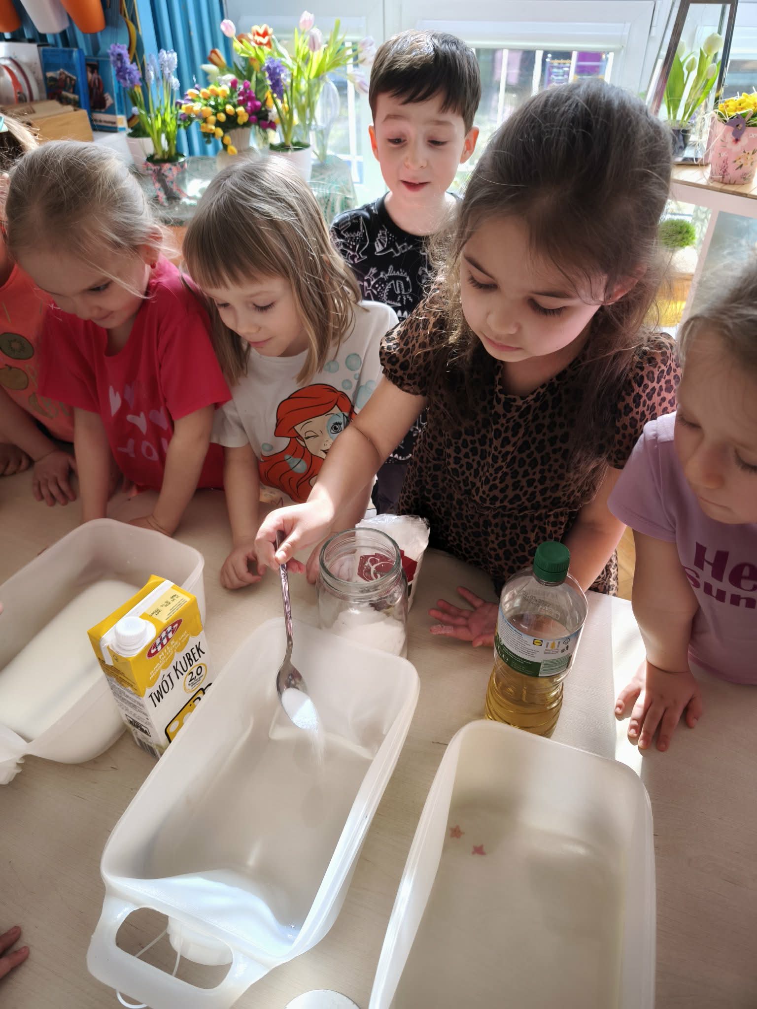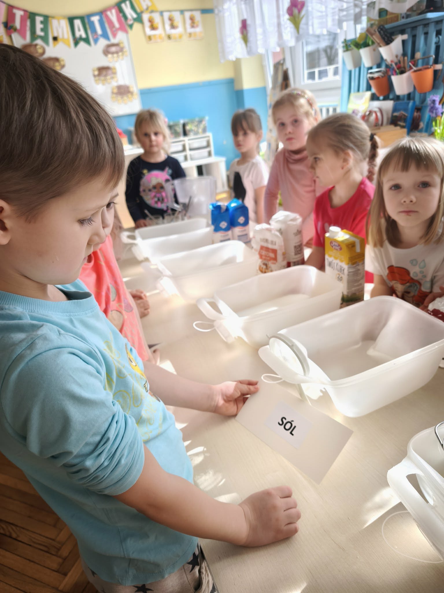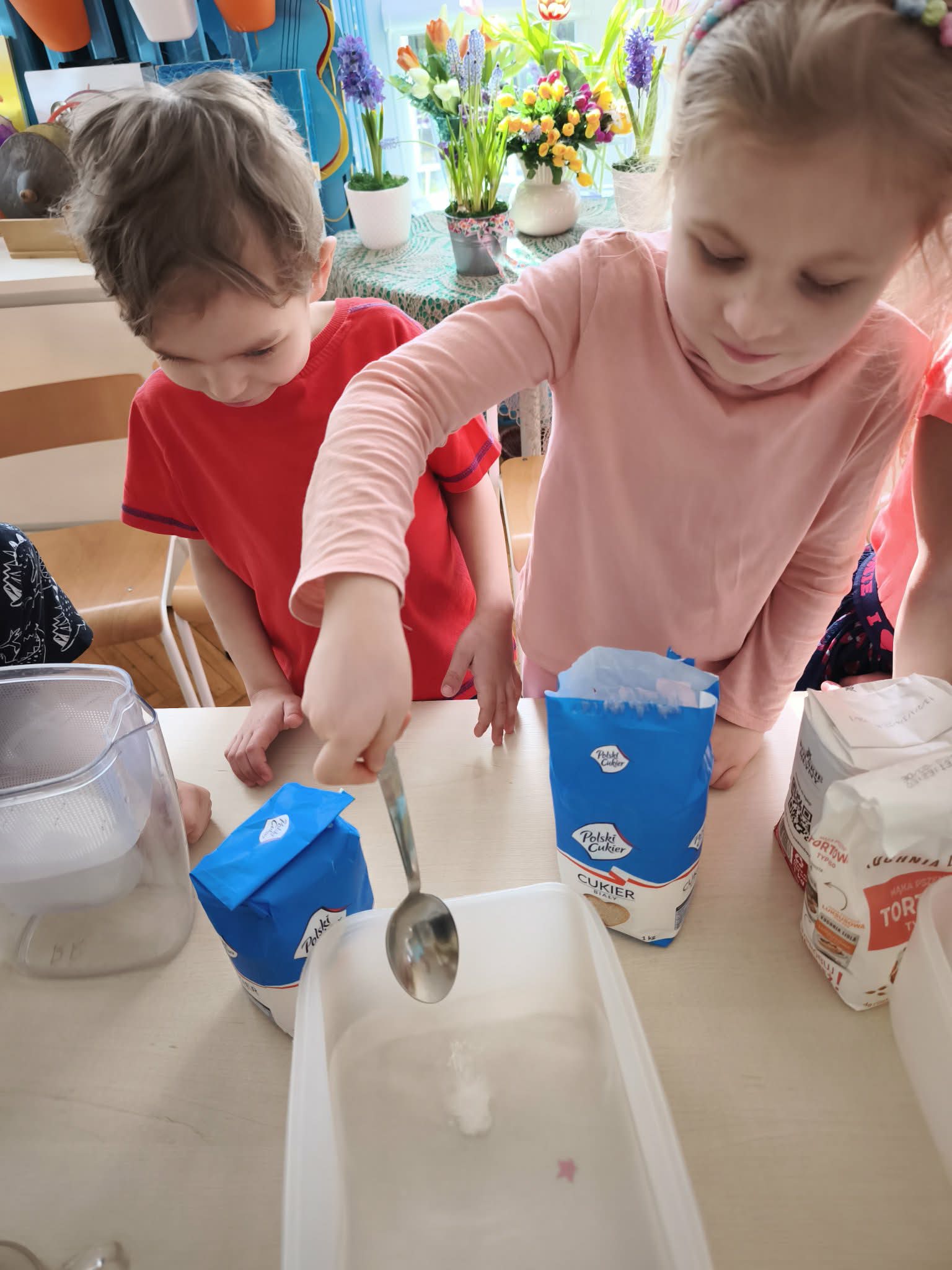 Grupa 3 przeprowadziła dzisiaj eksperymenty z wodą.Badaliśmy, co rozpuszcza się w wodzie. Wsypaliśmy cukier, sól, mąkę. Cukier i sól rozpuściła się. Mąka opadła na dno.Nastepnie do wody dodaliśmy olej i mleko. Woda stała się brudna i mętna.Bardzo łatwo ją zanieczyścić. Próbowaliśmy oczyścić zanieczyszczoną wodę. Użyliśmy sitka, oraz filtra węglowego. Woda nie była już tak czysta. Przekonaliśmy się, że oczyszczanie wody jest trudne i nie zawsze całkowicie skuteczne. Dlatego bardzo ważne jest, aby dbać o czystość wody .