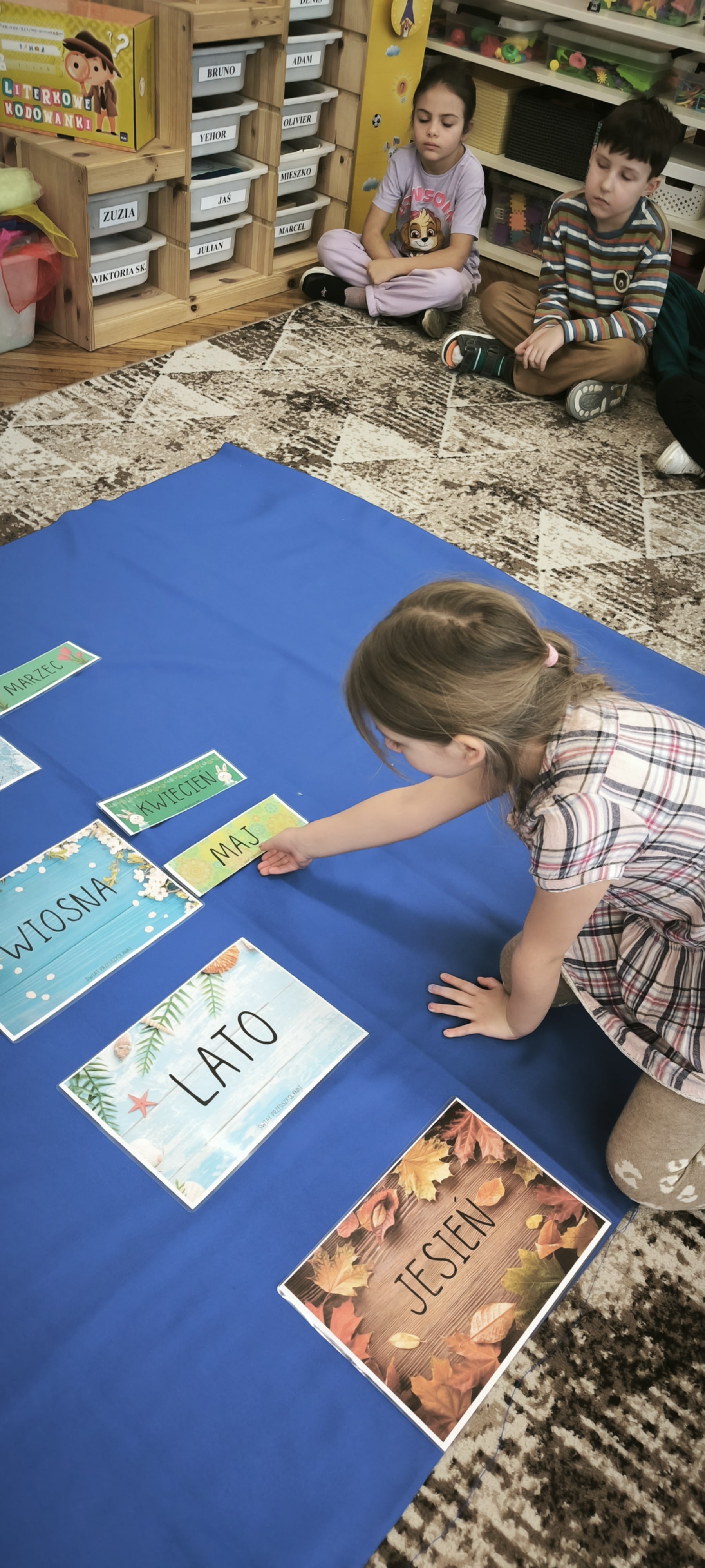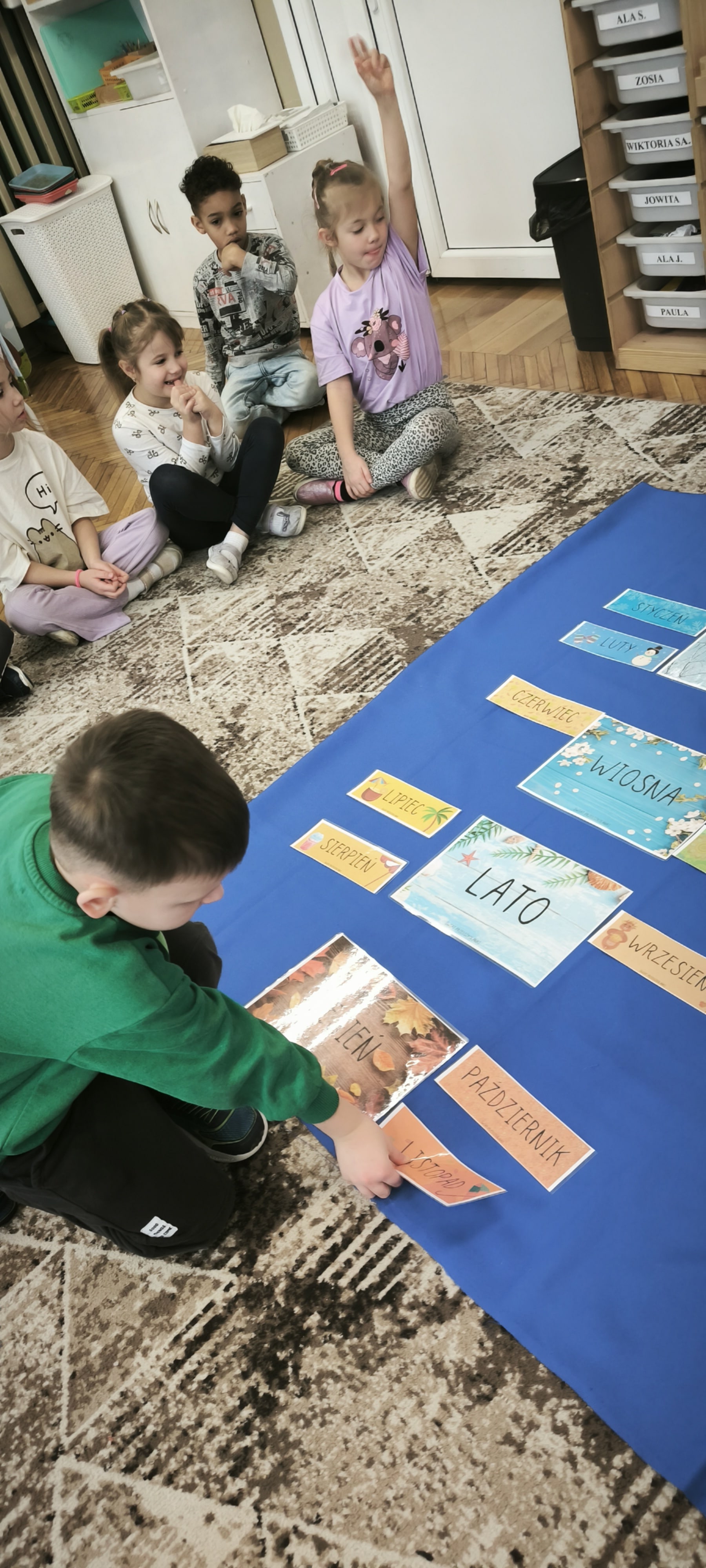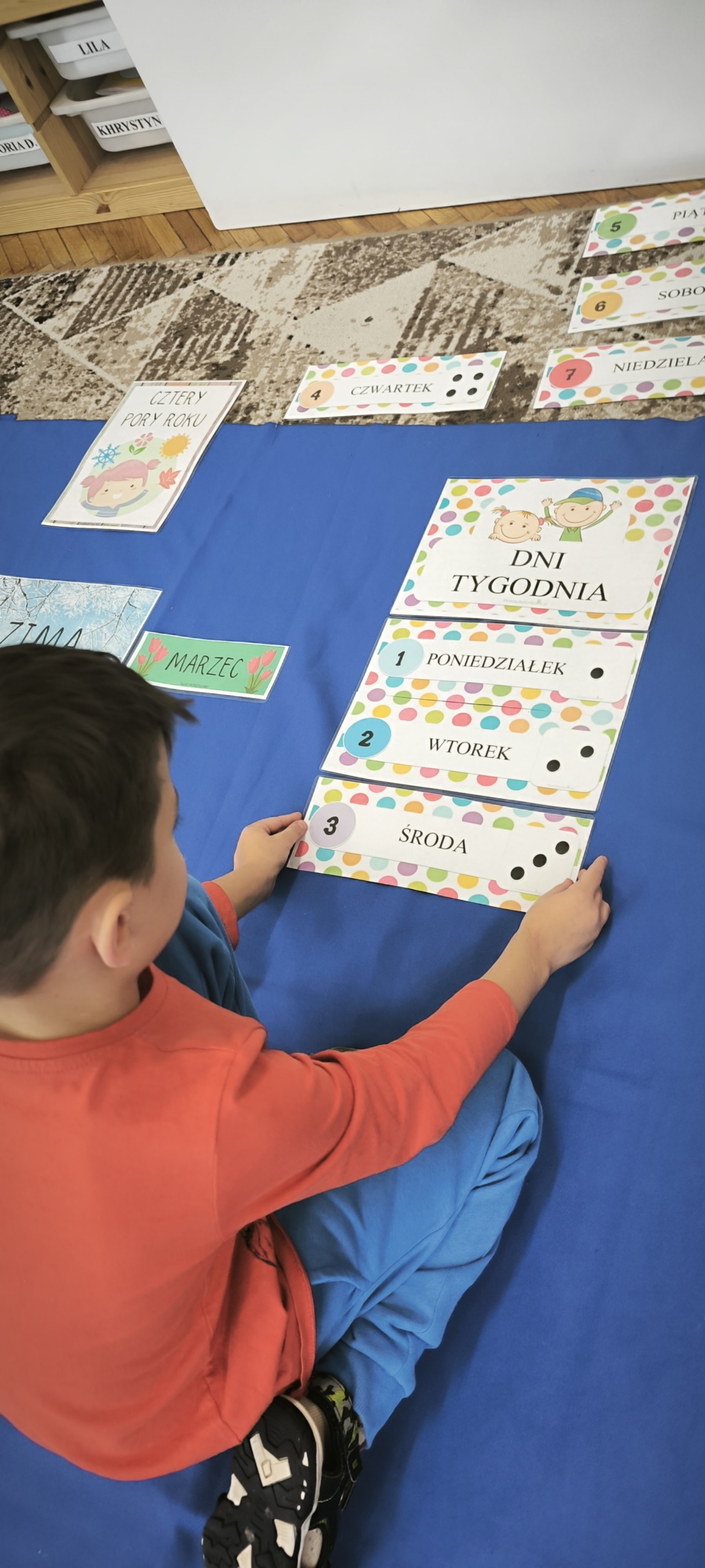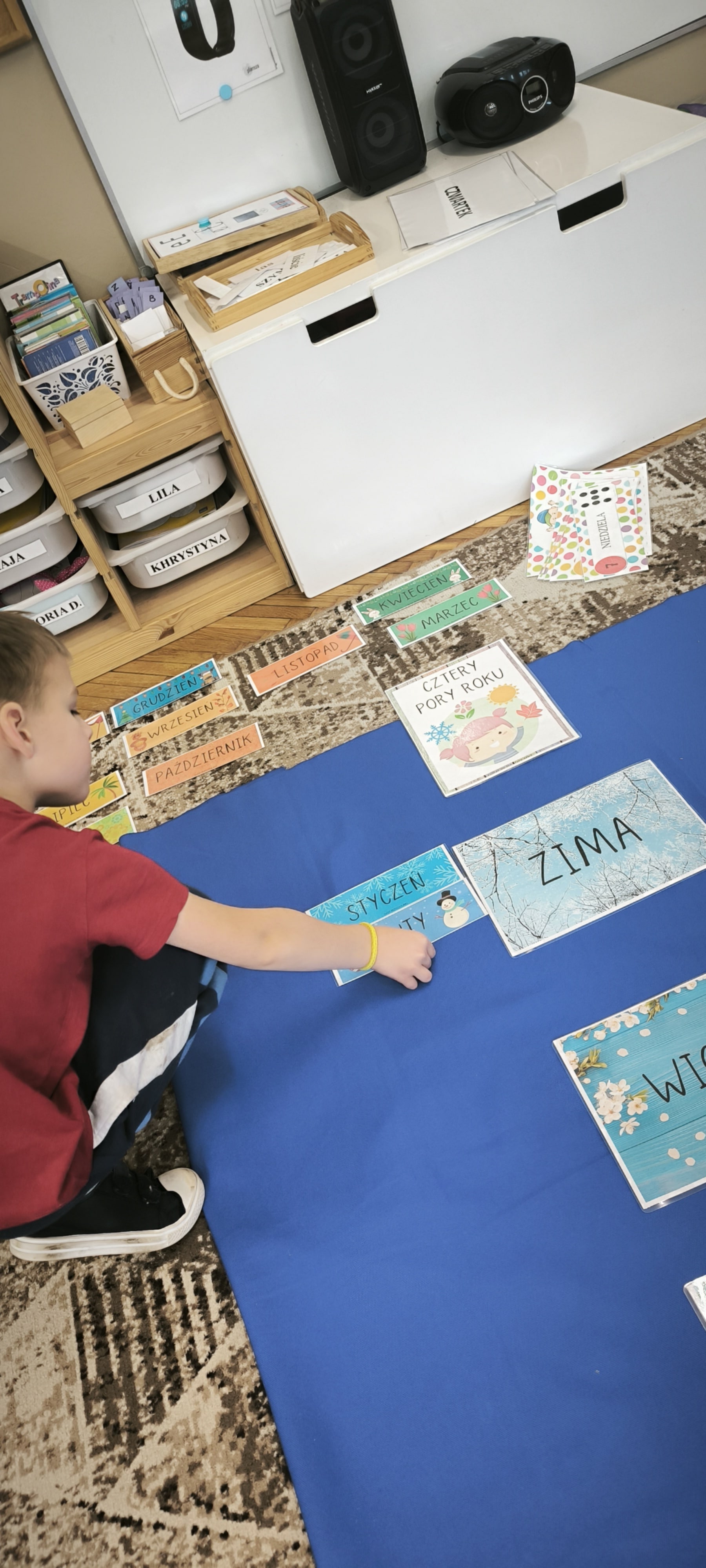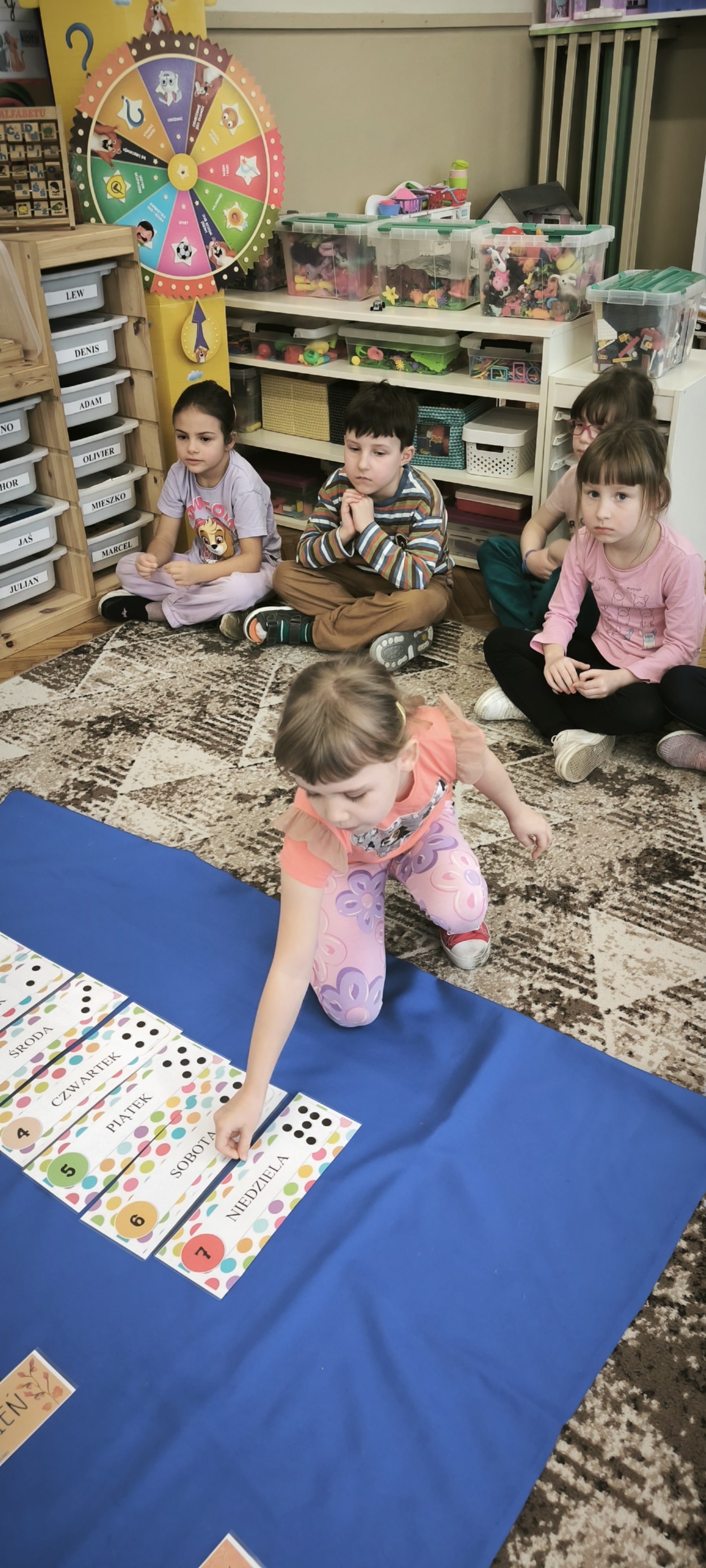 W tym tygodniu przed starszakami bardzo trudne zadanie bowiem muszą rozwiązać zagadkę upływającego czasu. Dzieci samodzielnie dzieliły rok na pory roku, miesiące i utrwalały dni tygodnia. Poznały różne sposoby mierzenia czasu za pomocą zegarów. Oglądały również kalendarze. Wykonały papierowe zegary. Wytężona praca umysłowa musi być przeplatana oczywiście ruchem. W tym tygodniu dzięki pięknej zimowej aurze starszaki mogły cieszyć się śniegiem podczas zabaw w ogrodzie.