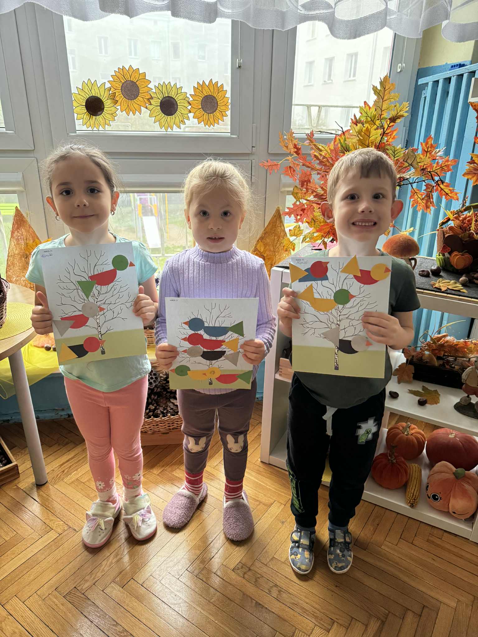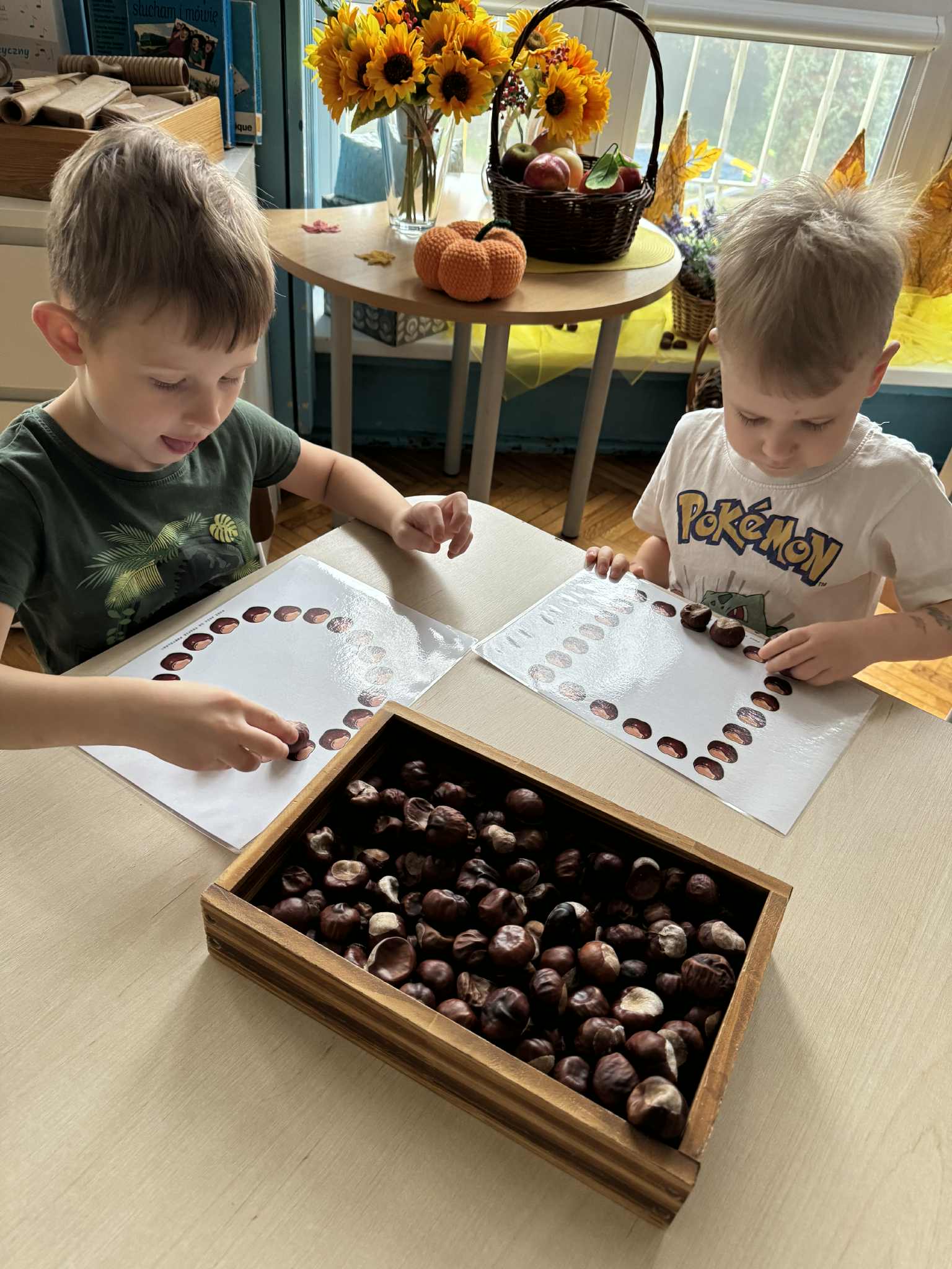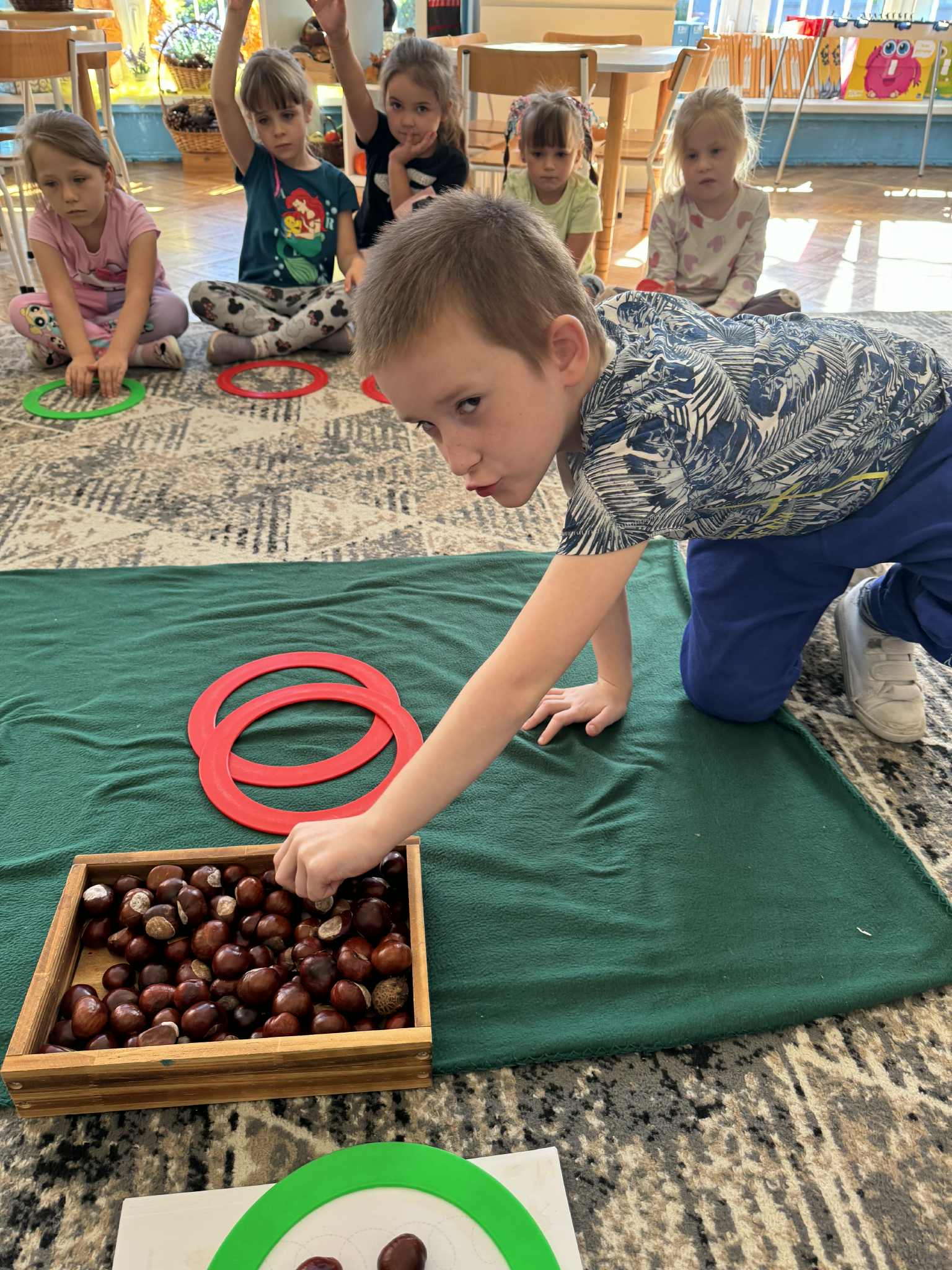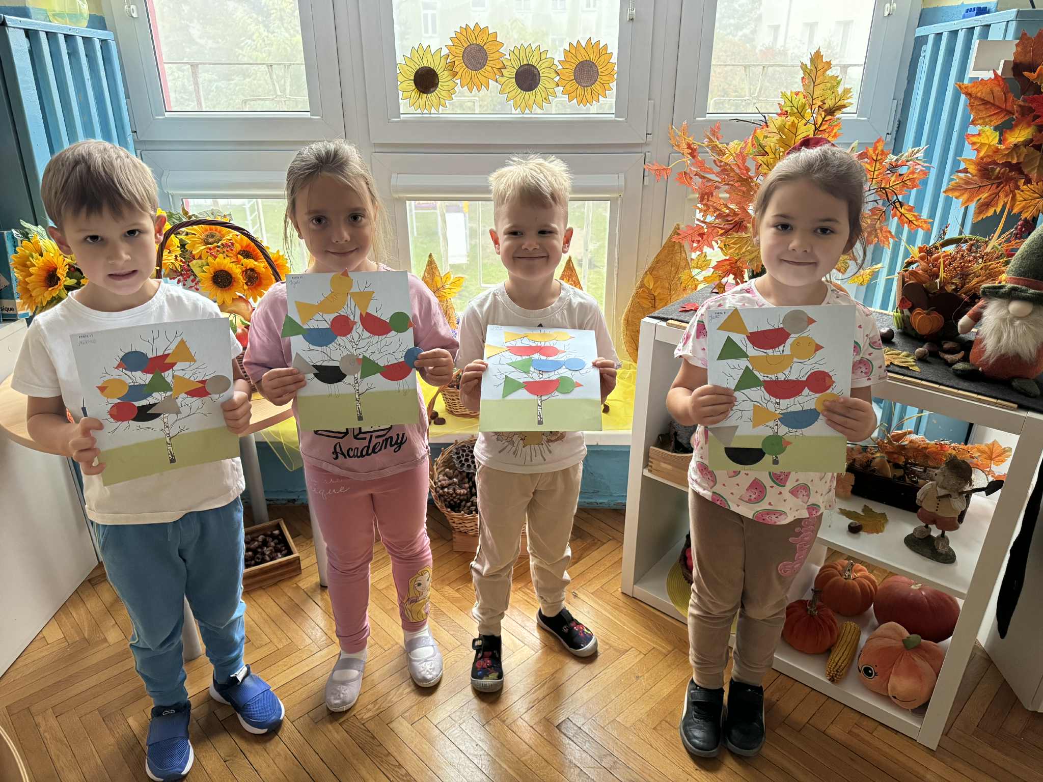Nasze przedszkolaki uwielbiają zabawy jesiennymi skarbami. Poprzez zabawę uczyły się nazywać cyfry i przeliczać oraz utrwalały nazwy figur geometrycznych. Nie zabrakło również zabawy integrującej grupę pt. ,,Wędrująca dynia’’, której celem było wspólne działanie, wzmocnienie więzi, rozwijanie kreatywności i umiejętności współpracy