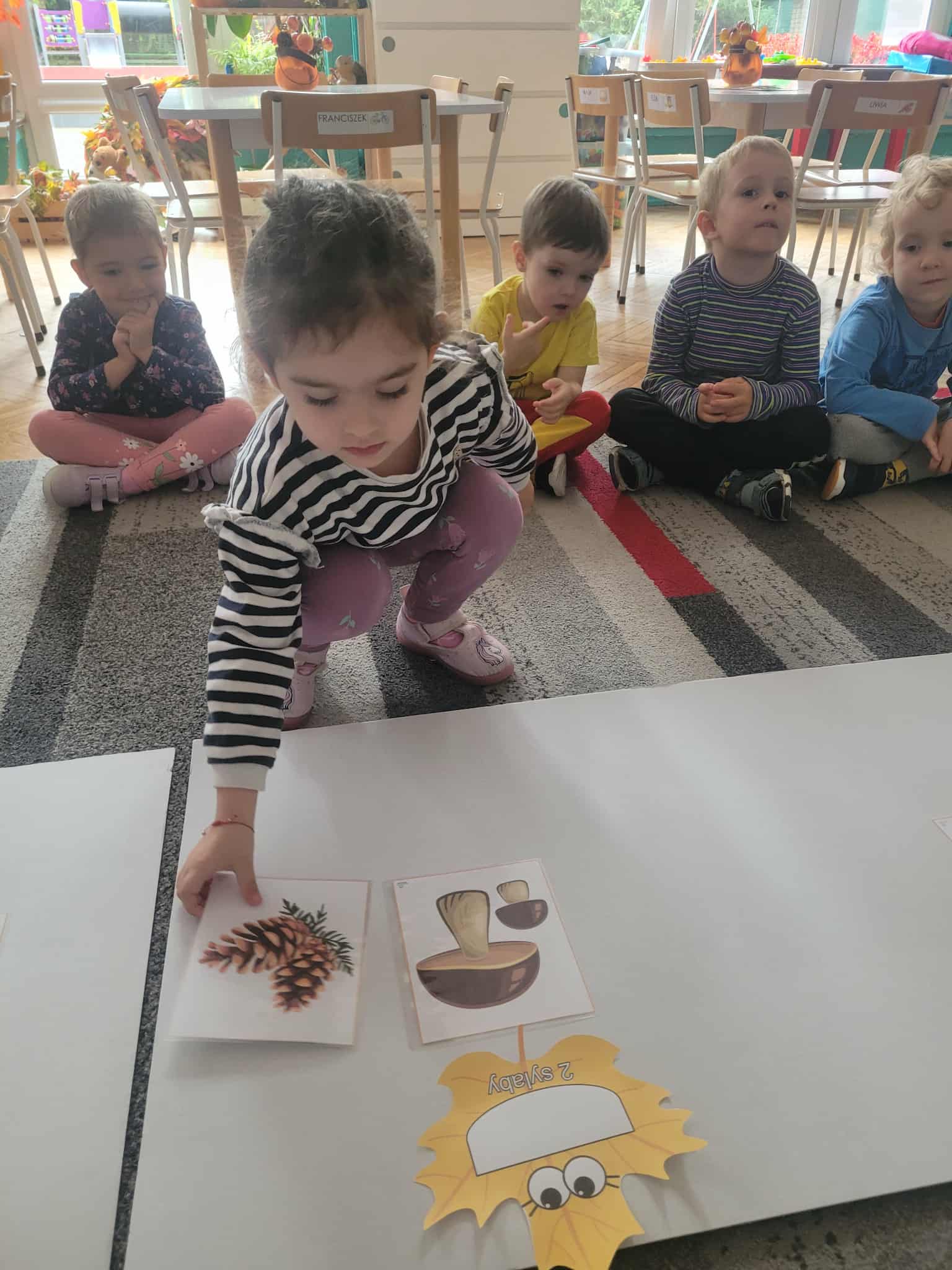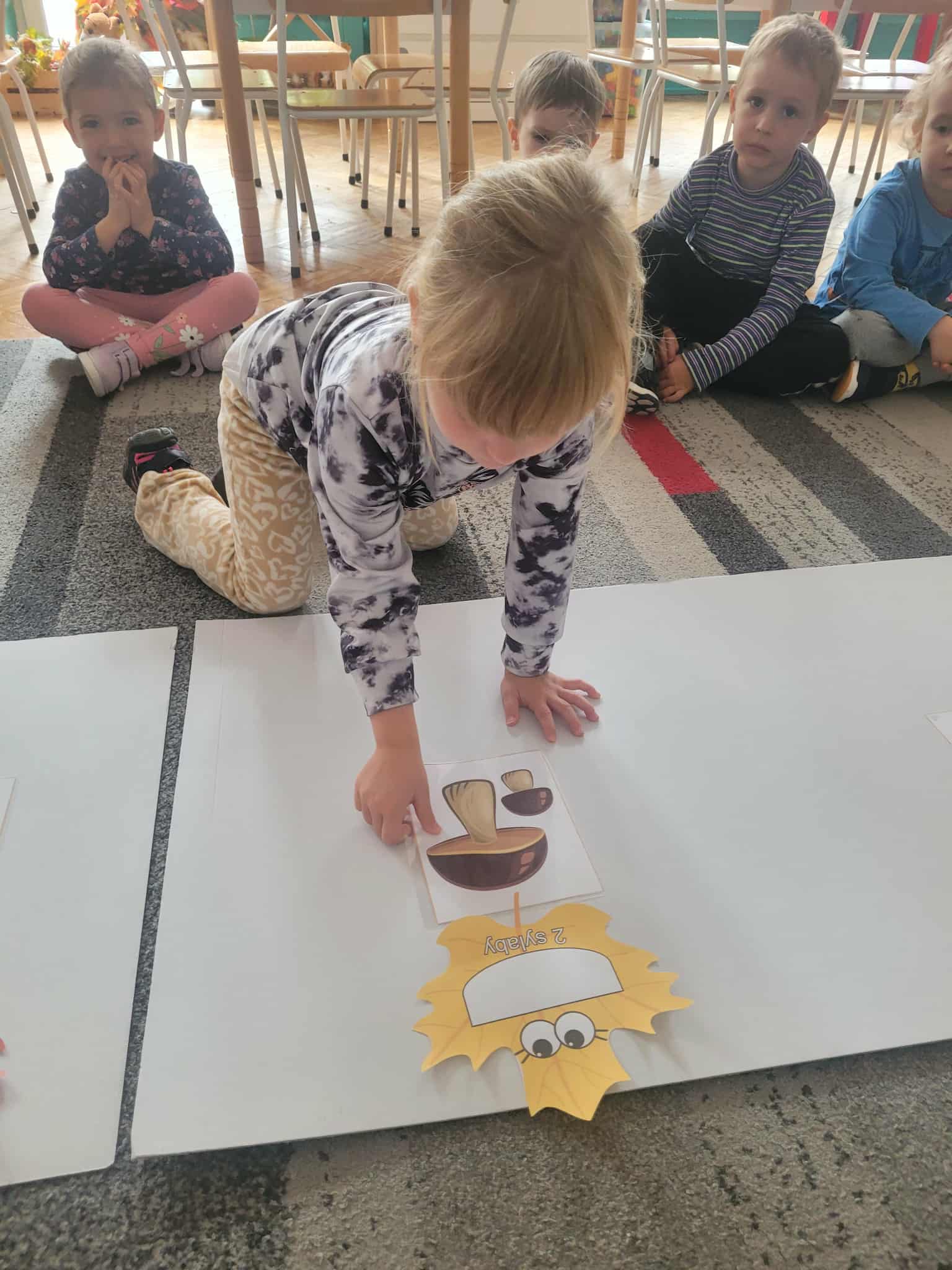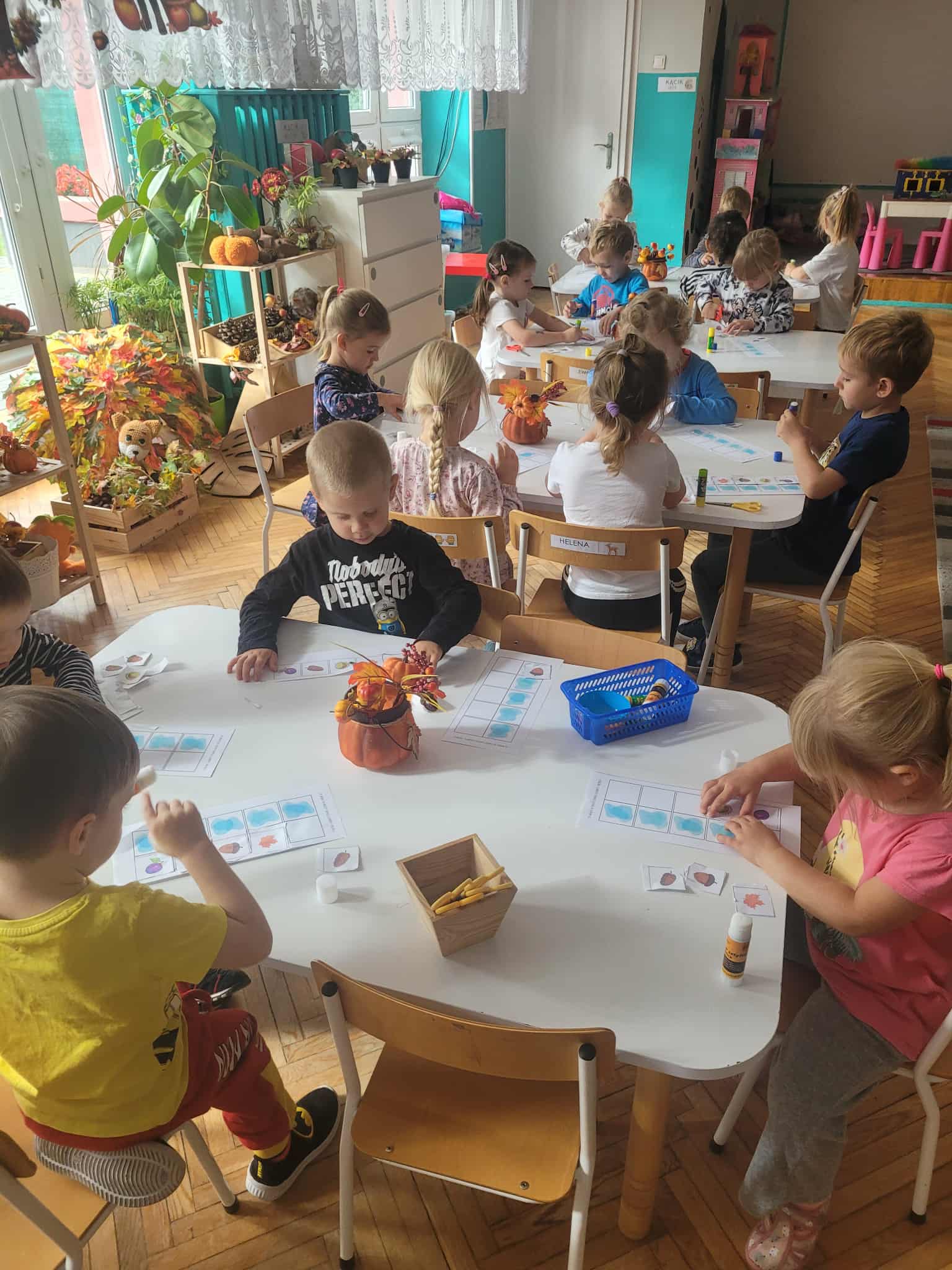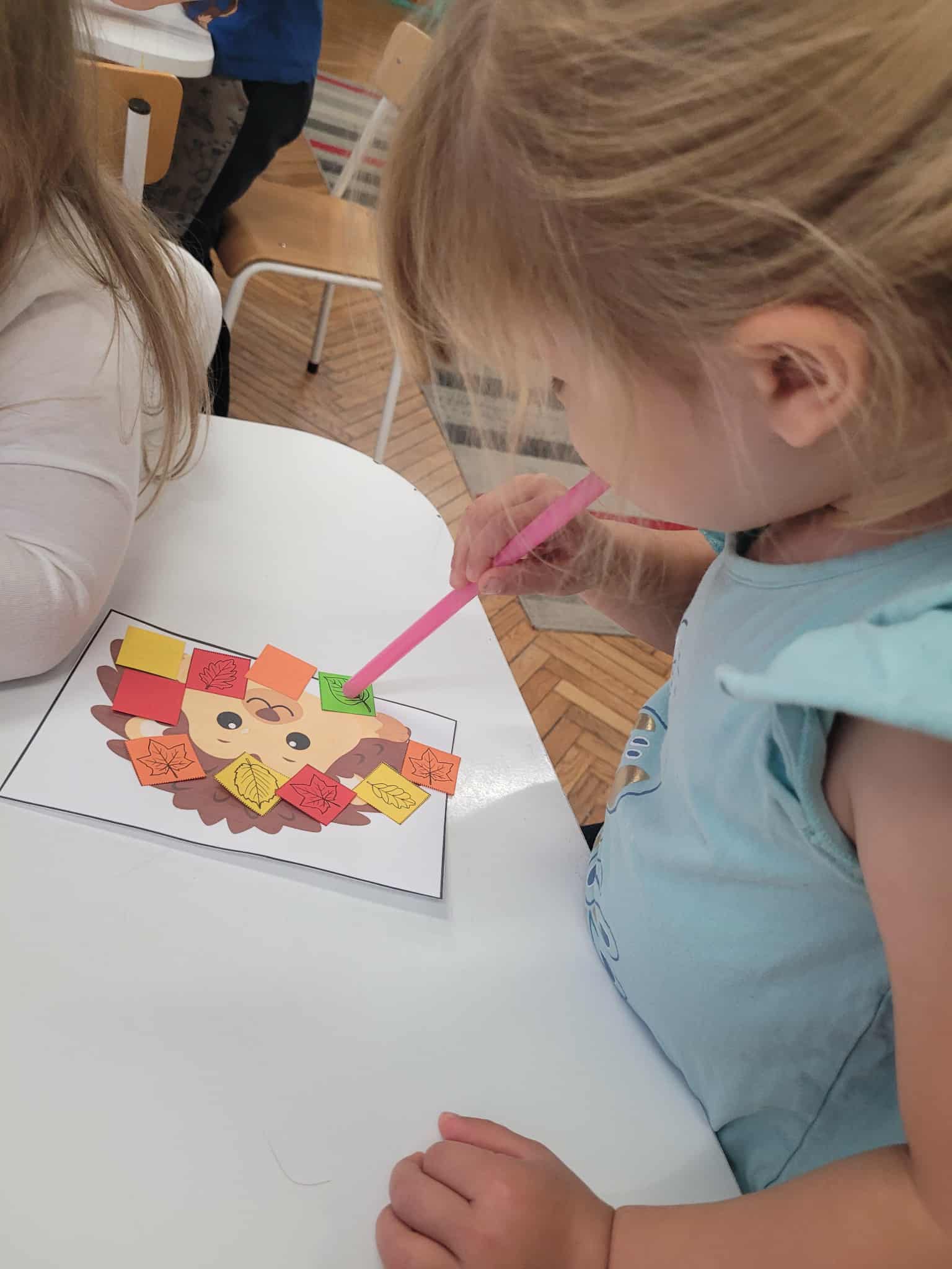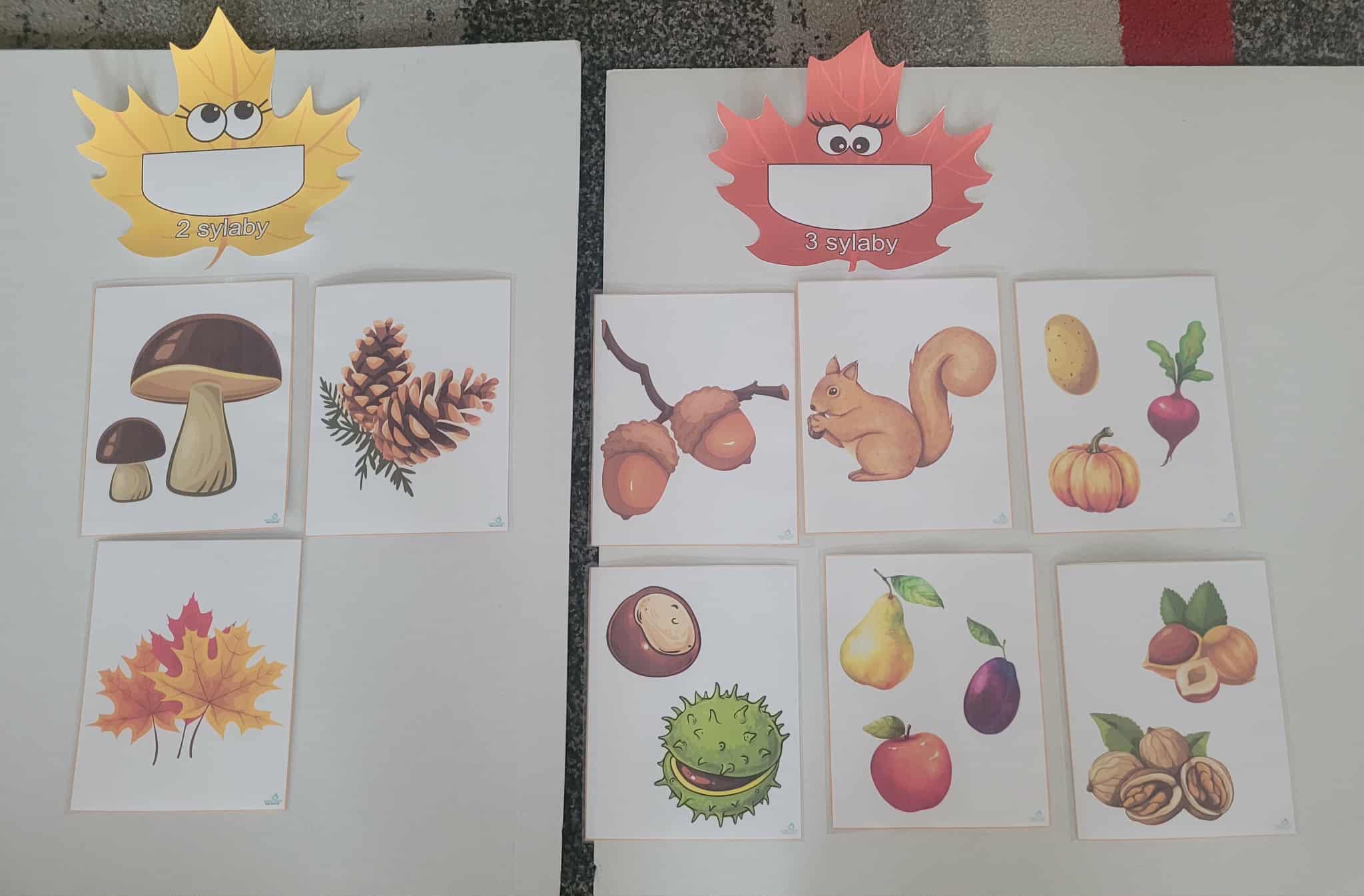 Jesień to przepiękna pora roku mieniąca się pięknymi barwami ale i dobrą słoneczną i ciepłą pogodą. Dlatego dzieci za pomocą ilustracji odkrywały czym różni się lato od jesieni. Nazywają zwiastuny jesieni i potrafia podzielic wyrazy na sylaby. Znają wybrane nazwy drzew parkowych oraz ich owoce. Wiedzą, że nie tylko jeż potrafi kłuć i na podstawie historyjki obrazkowej znają zwyczaje jeży w okresie jesiennym. Poprzez zabawę logopedyczną przykrywały kołderką z liści zasypiającego jeża. Odkodowywały róznież rysunek kolczastego przyjaciela.