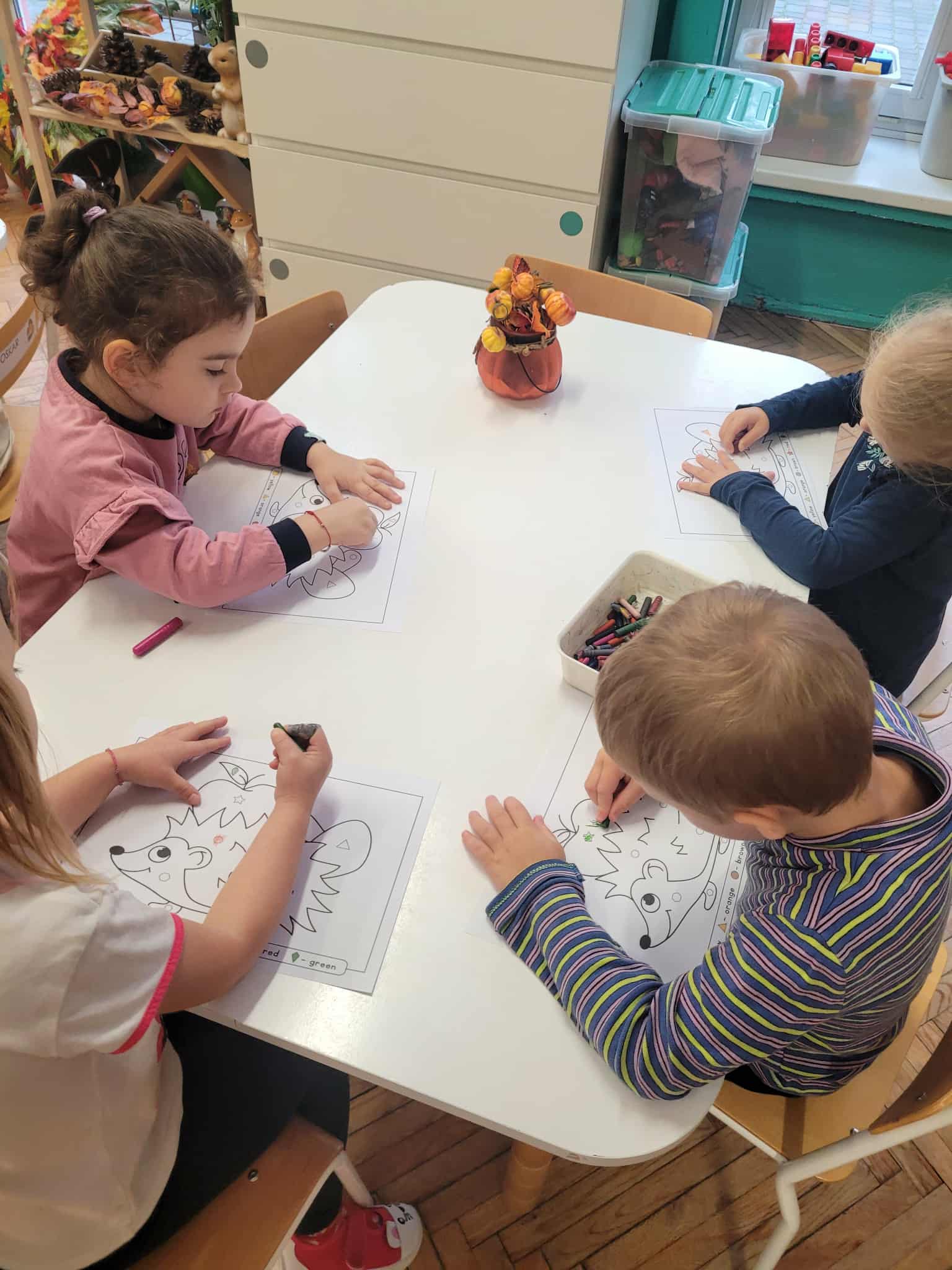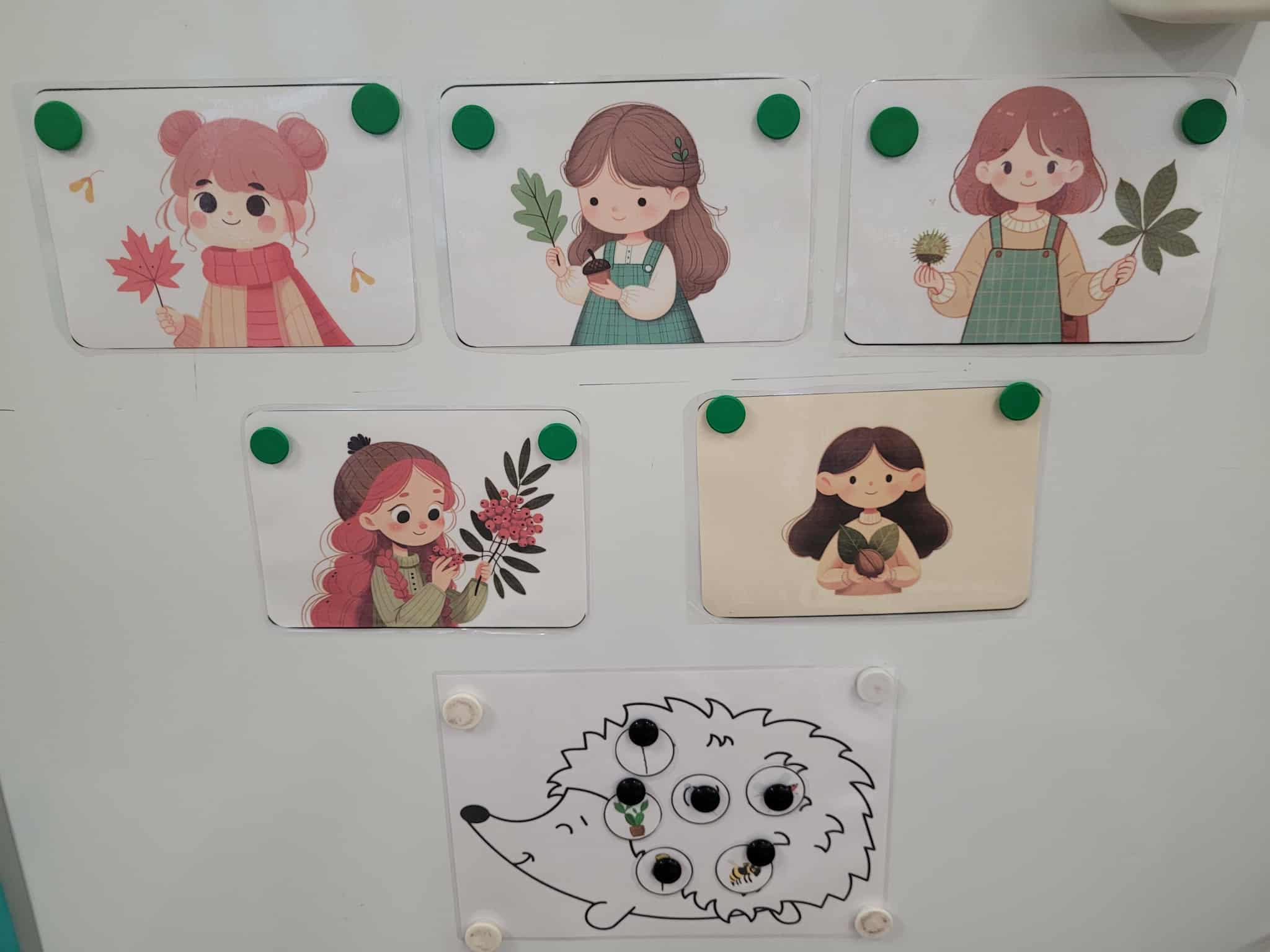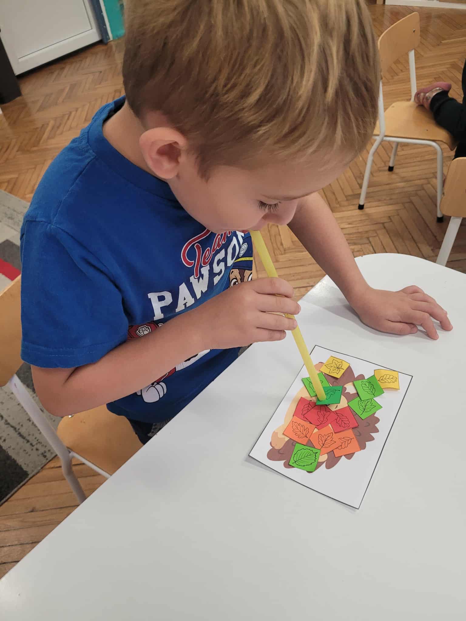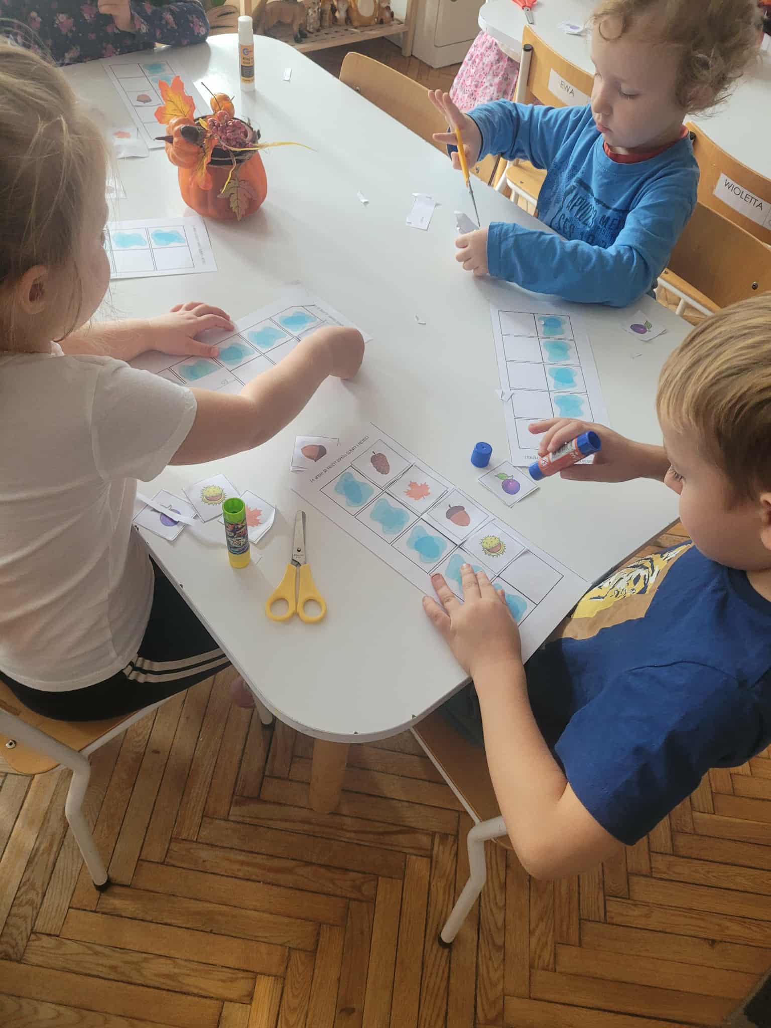 Jesień to przepiękna pora roku mieniąca się pięknymi barwami ale i dobrą słoneczną i ciepłą pogodą. Dlatego dzieci za pomocą ilustracji odkrywały czym różni się lato od jesieni. Nazywają zwiastuny jesieni i potrafia podzielic wyrazy na sylaby. Znają wybrane nazwy drzew parkowych oraz ich owoce. Wiedzą, że nie tylko jeż potrafi kłuć i na podstawie historyjki obrazkowej znają zwyczaje jeży w okresie jesiennym. Poprzez zabawę logopedyczną przykrywały kołderką z liści zasypiającego jeża. Odkodowywały róznież rysunek kolczastego przyjaciela.