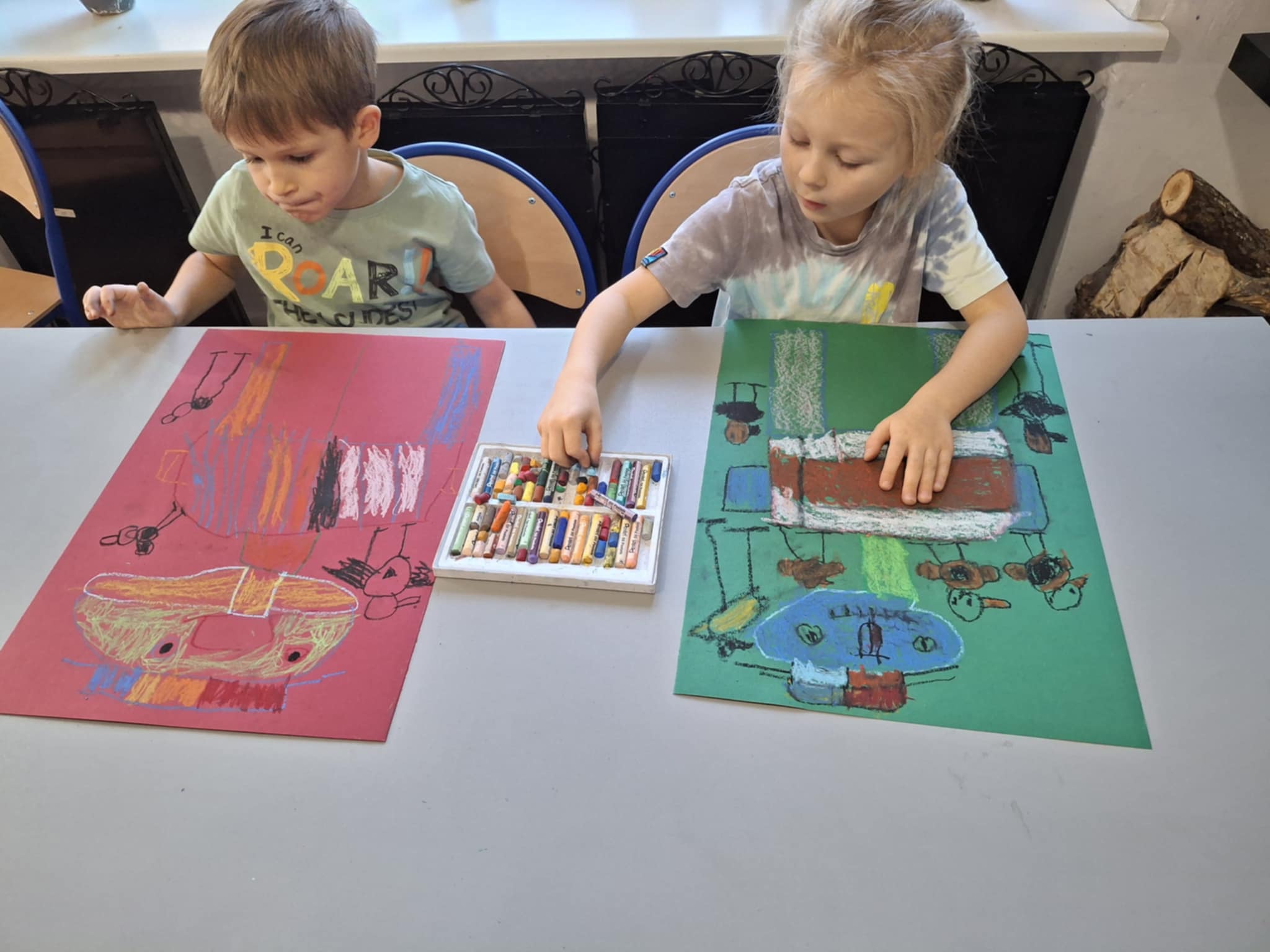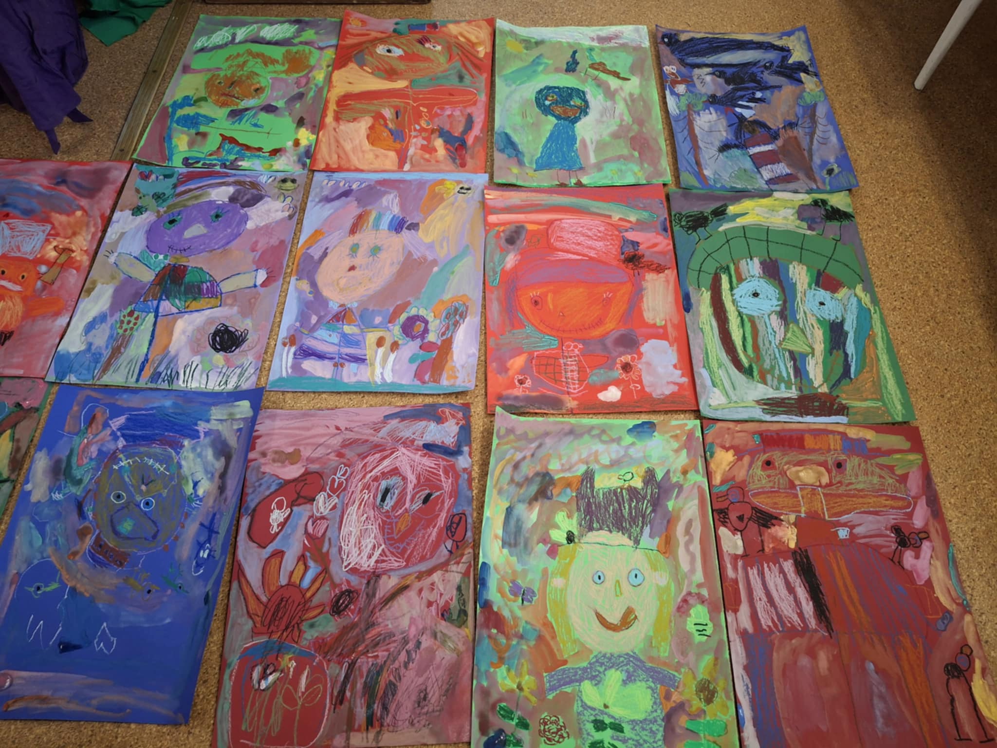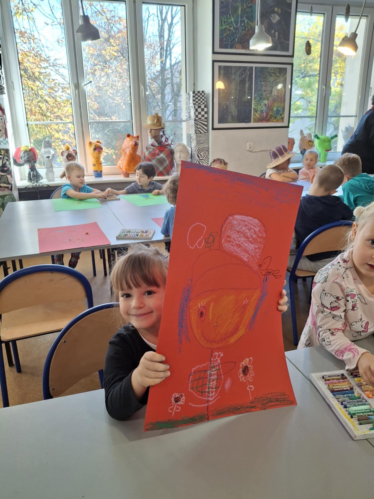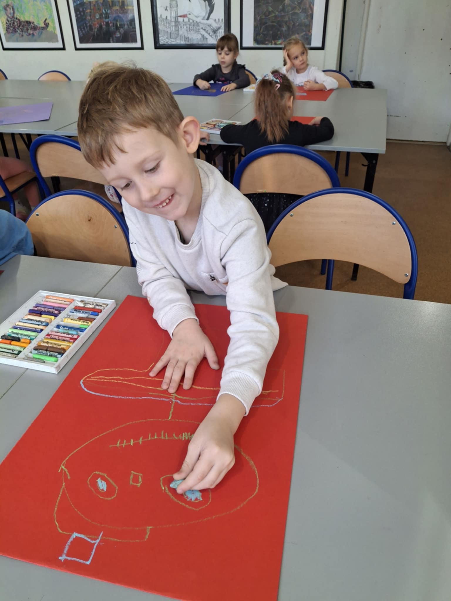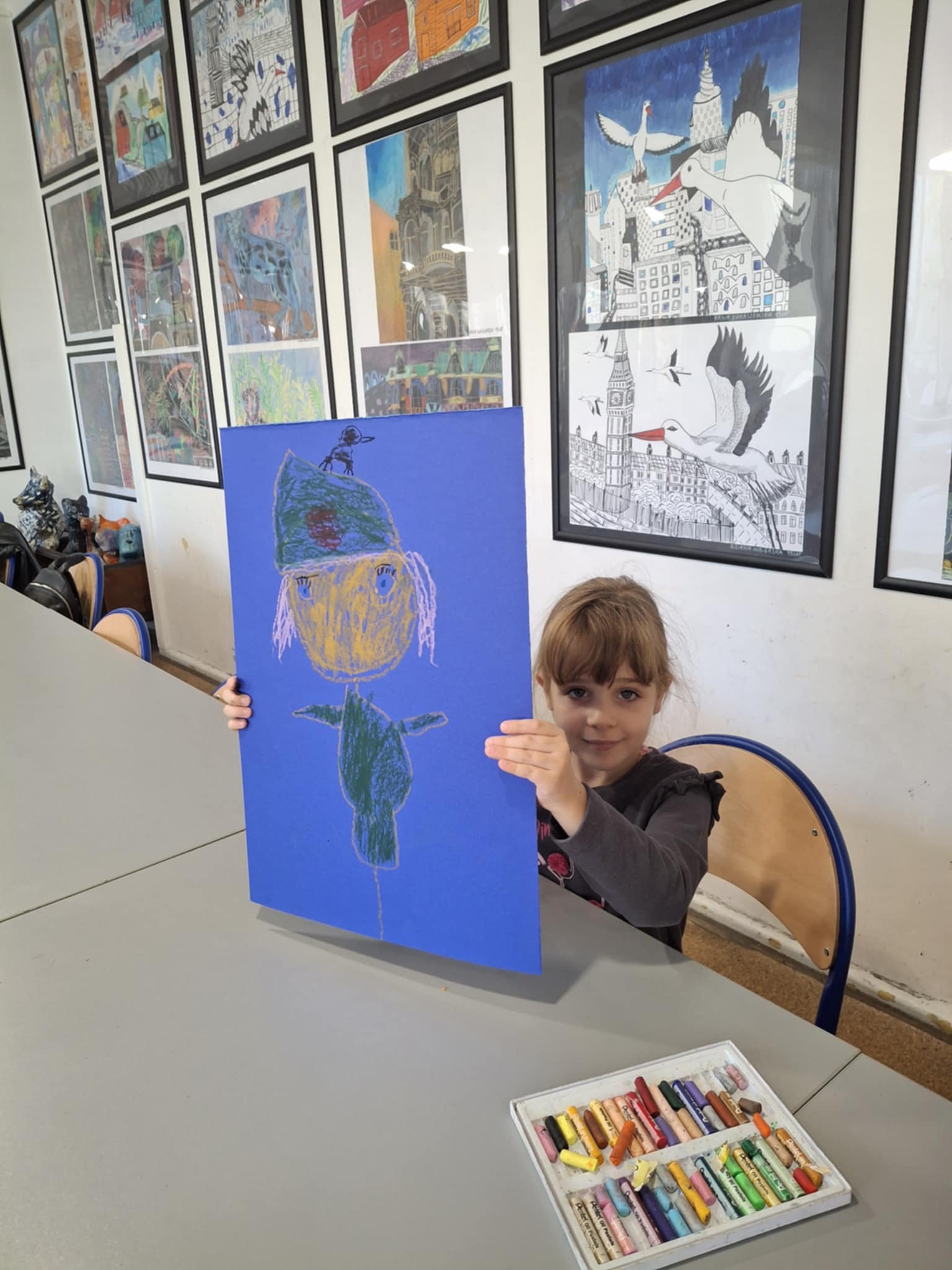 Pewien kolorowy strach na wróble stał w polu,odstraszał wróble i szpaki przez całą wiosnę i lato. Ale nadeszła już jesień. Plony zostały zebrane i strach zaczynał się nudzić. Szukał i znalazł przyjaciół wśród dzieci.Tak wyobraziły sobie dzieci ,,Kolorowego stracha na wróble,,.