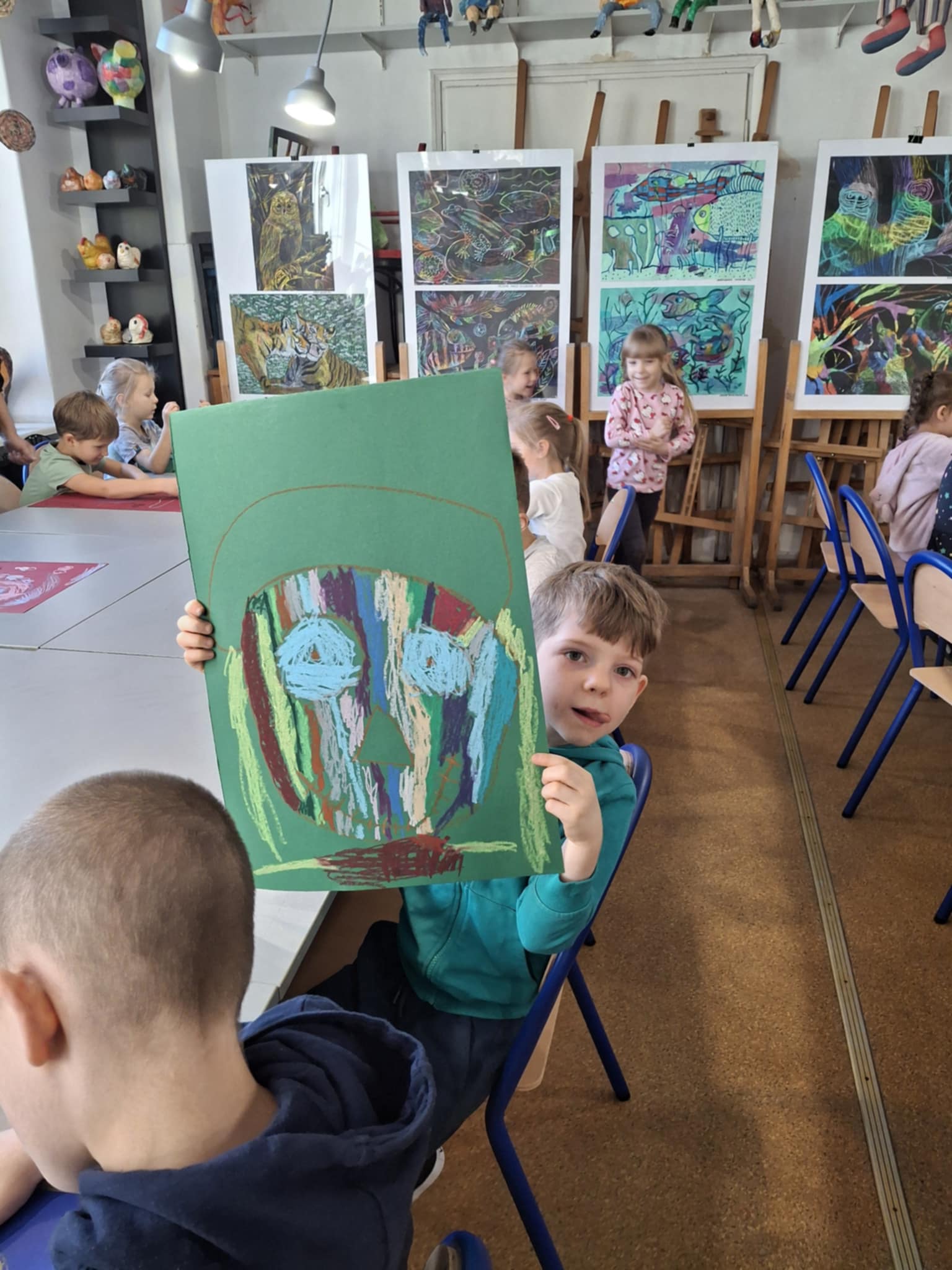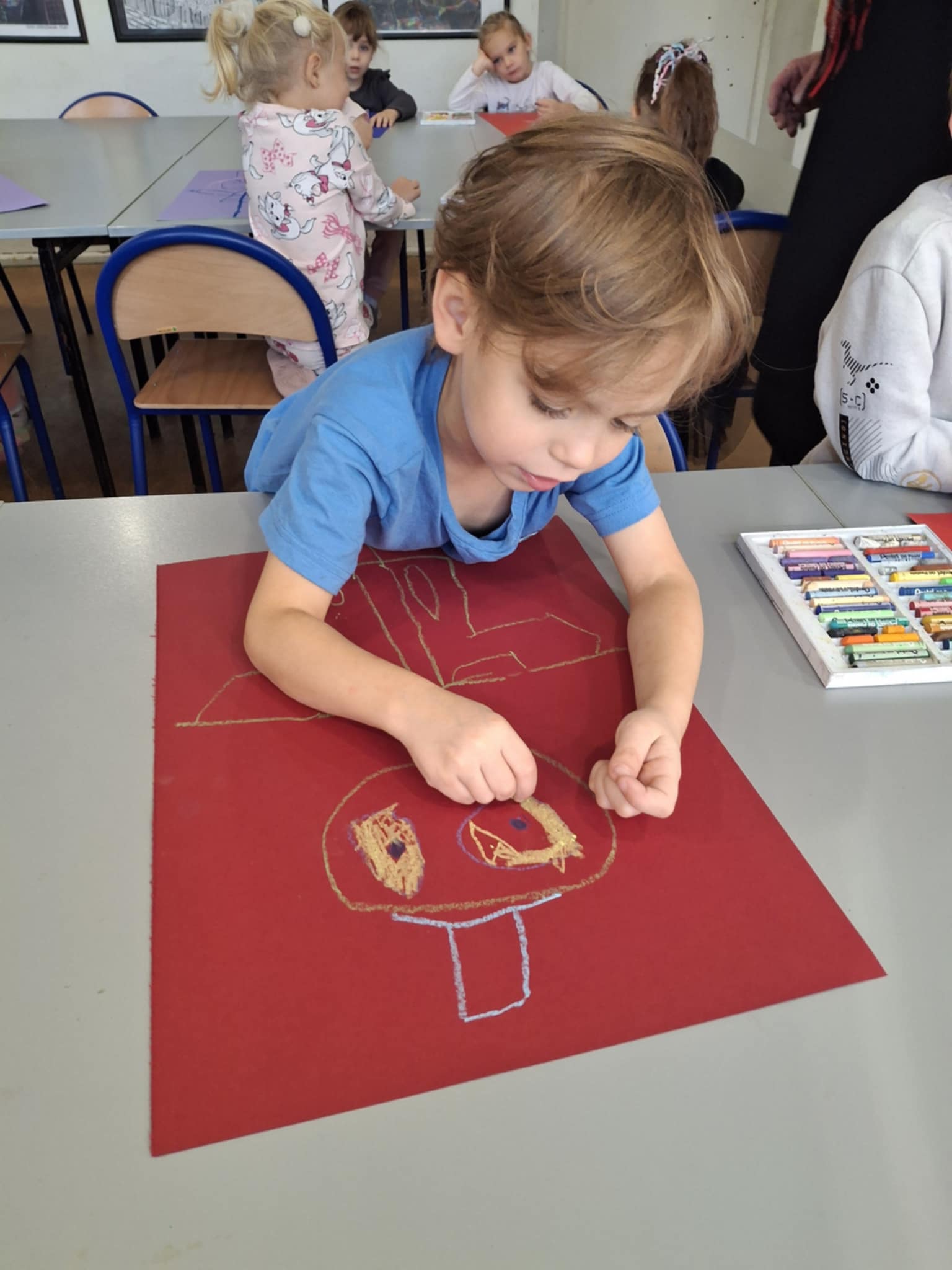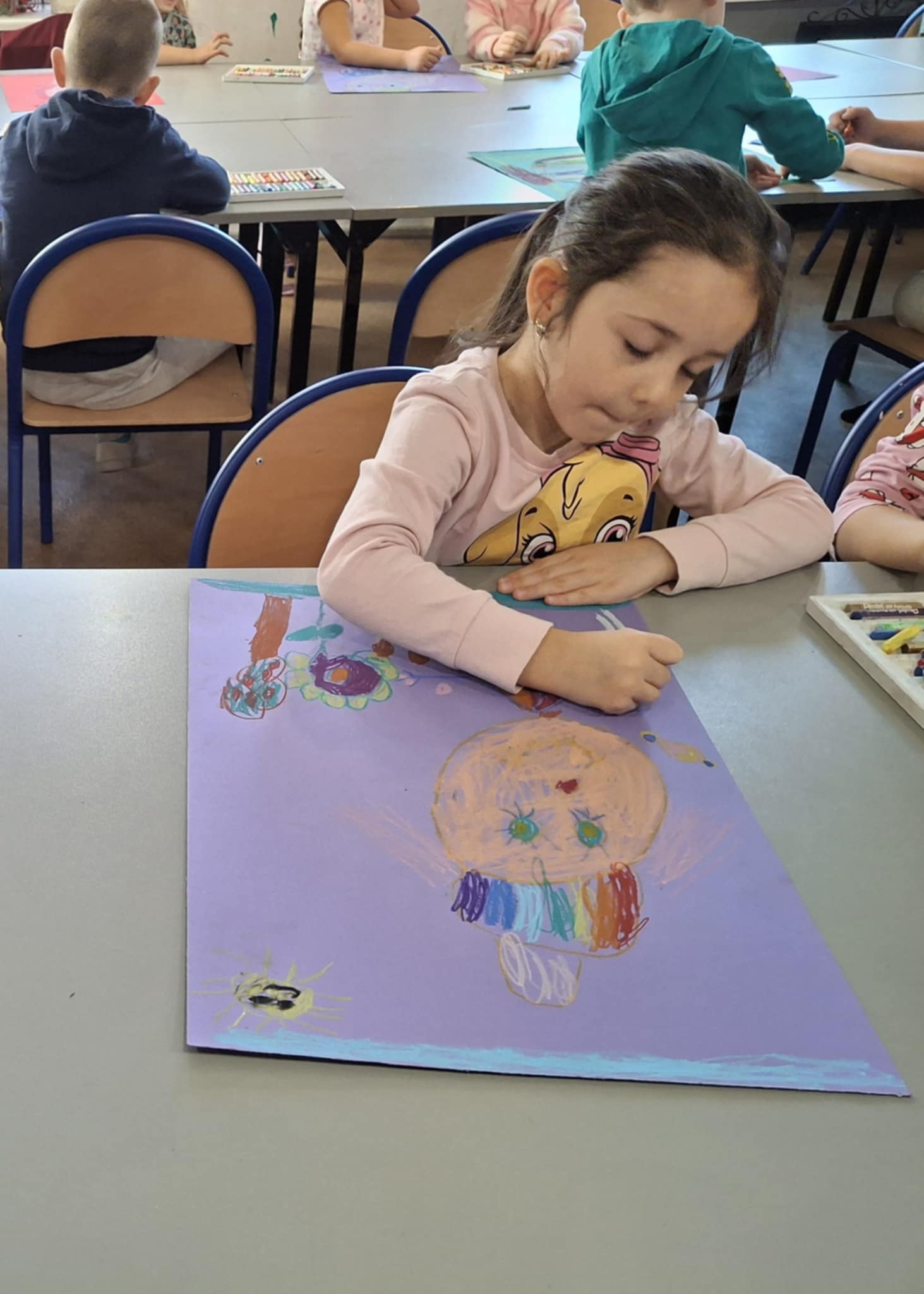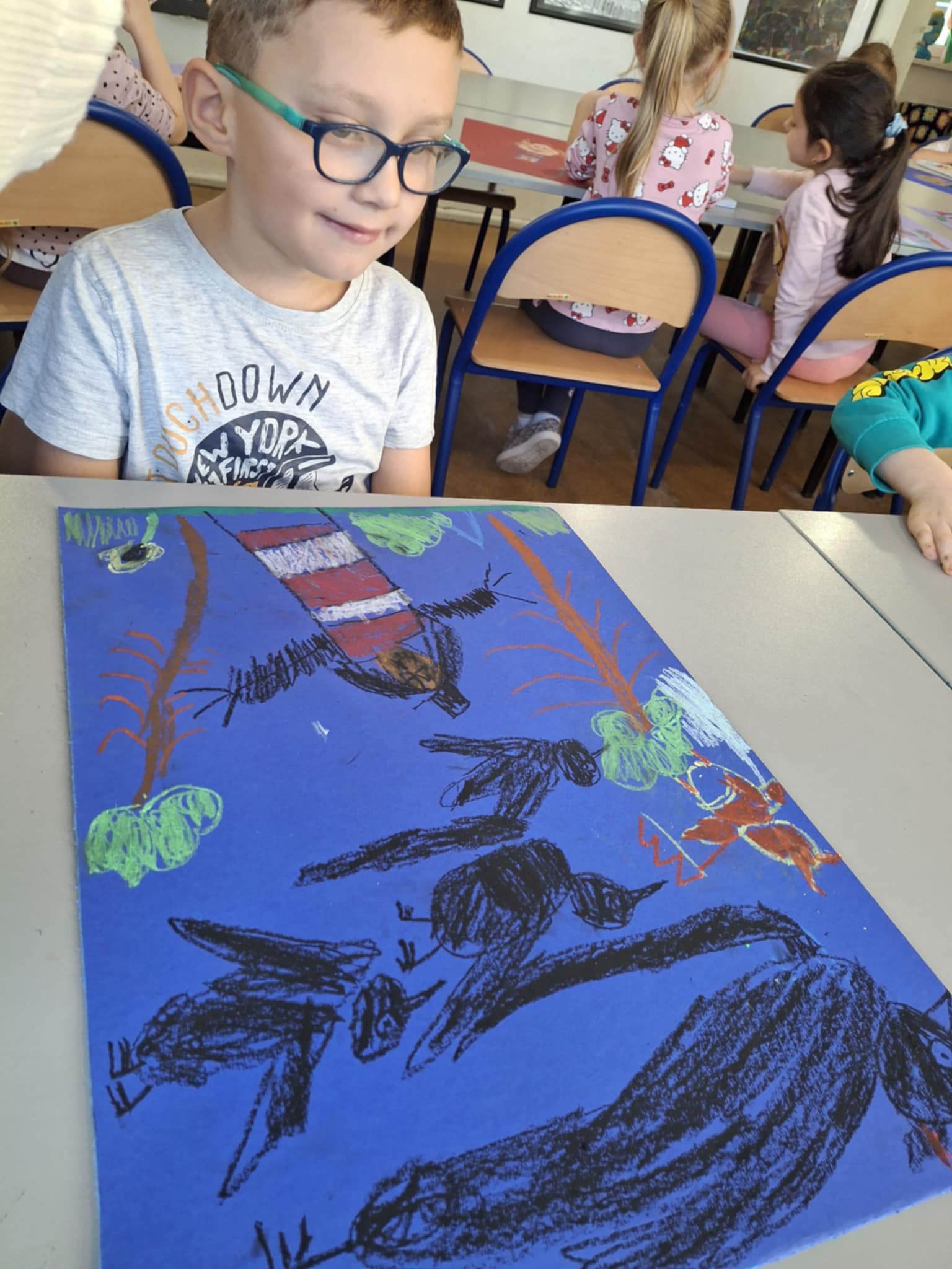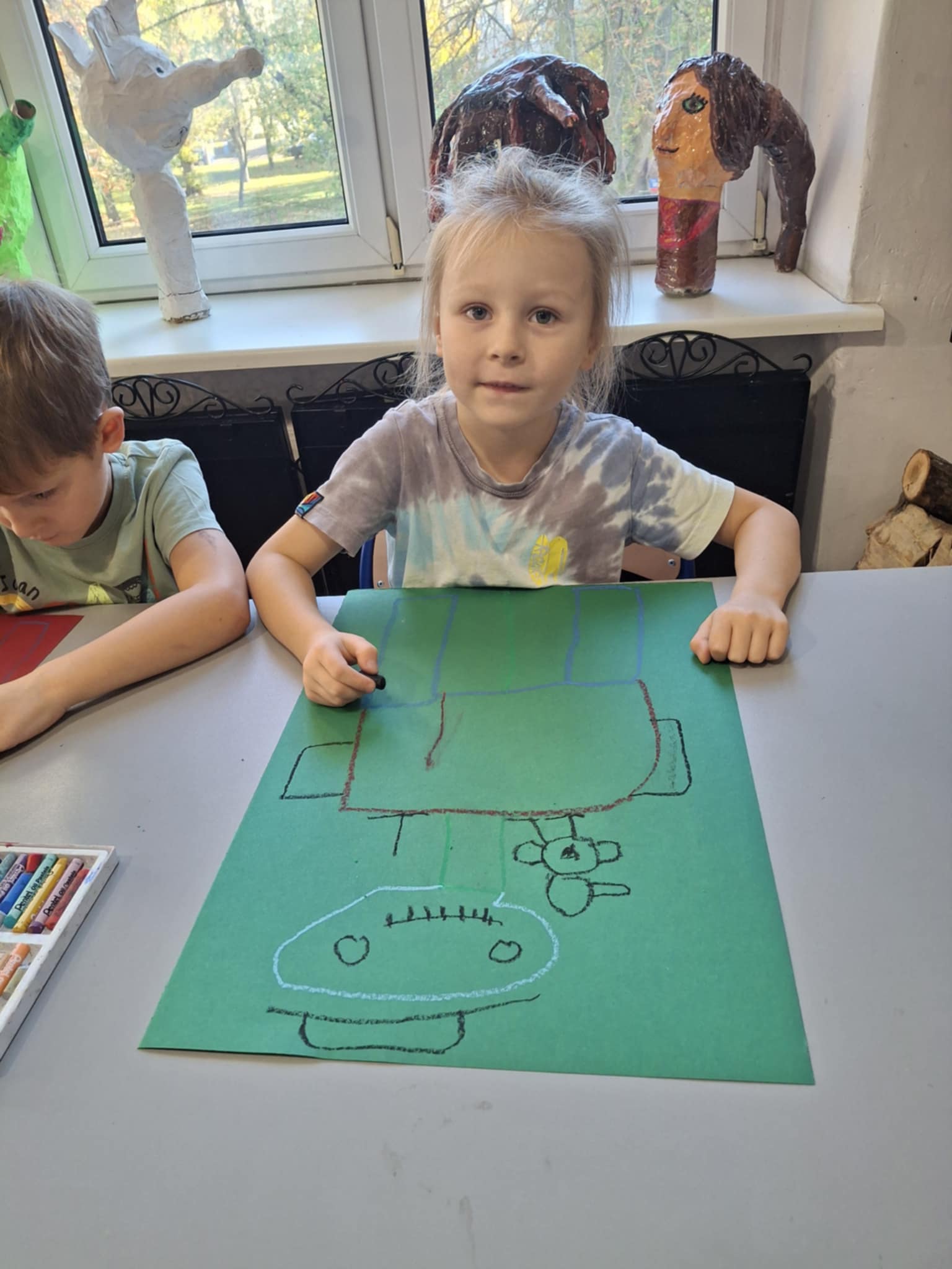 Pewien kolorowy strach na wróble stał w polu,odstraszał wróble i szpaki przez całą wiosnę i lato. Ale nadeszła już jesień. Plony zostały zebrane i strach zaczynał się nudzić. Szukał i znalazł przyjaciół wśród dzieci.Tak wyobraziły sobie dzieci ,,Kolorowego stracha na wróble,,.
