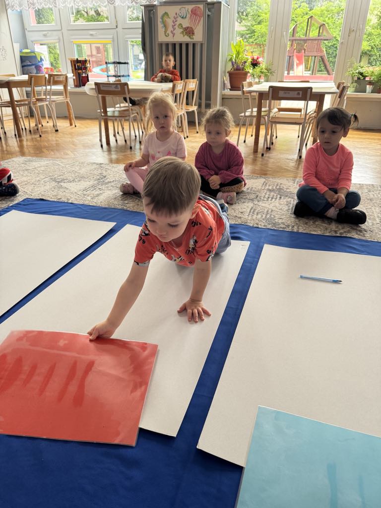 Celem dzisiejszych zajęć było utrwalenie, rozróżnianie kolorów oraz nazywanie ich poprzez zabawy i aktywności artystyczne, wspierając rozwój percepcji wzrokowej, zdolności manualnych oraz kreatywność u dzieci. Dzień zaczęliśmy od rozmowy o kolorach, ich znaczeniu oraz przykładach występowaniu kolorów w codziennym życiu. Następnie dzieci odnajdywały w sali przedmioty w podanym kolorze. Na koniec wykonały kartę pracy związaną z kolorami.