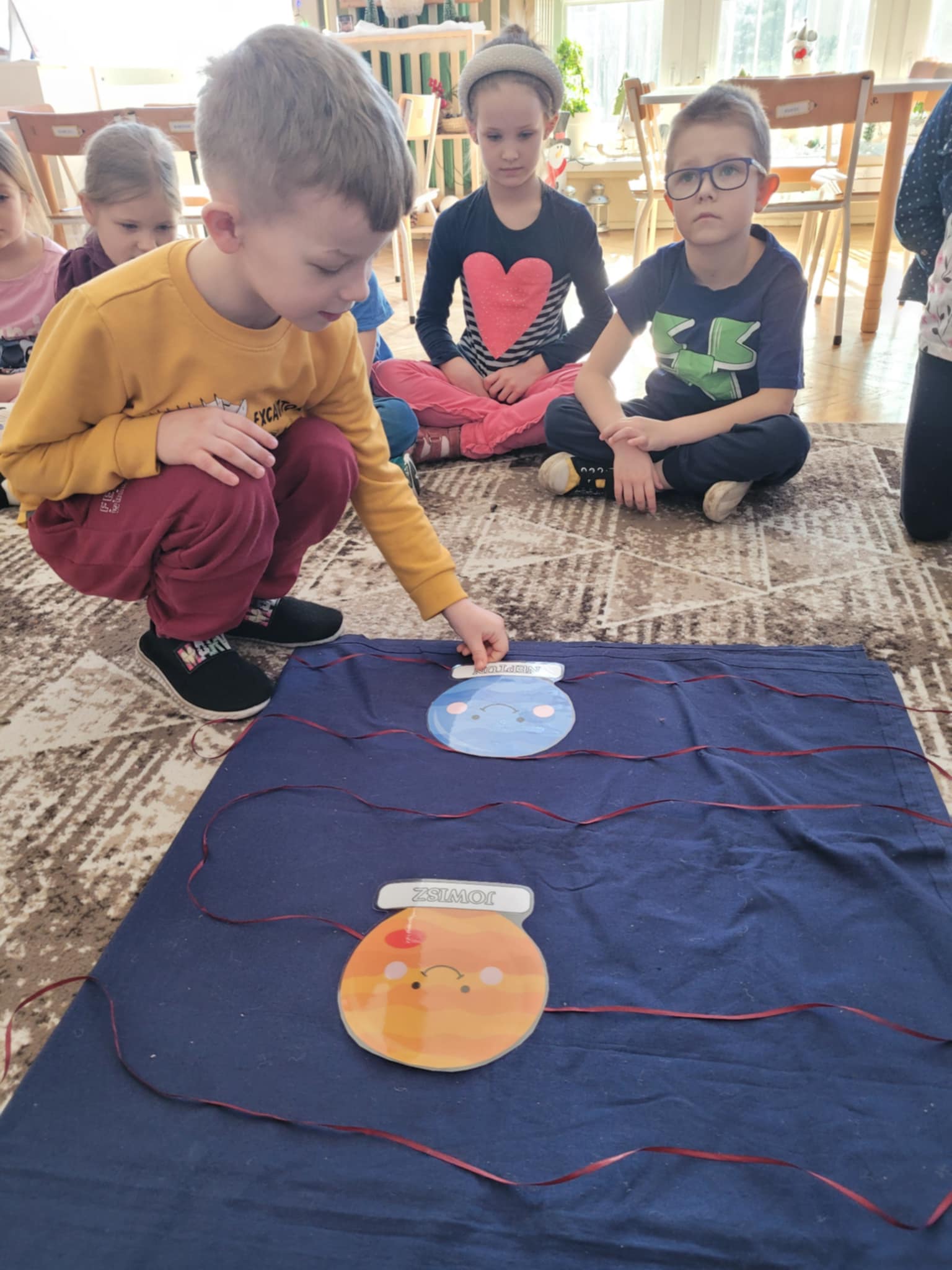 Dzieci lubią wszystko co tajemnicze i fascynujące. Taką zagadką dla przedszkolaków jest wszechświat. Kosmos jest bardzo wdzięcznym tematem do poznawania wielokierunkowego i daje dzieciom nieograniczoną możliwość do wyrażania swoich emocji, marzeń i autoprezentacji w dowolnie wybranej formie. Właśnie ten tajemniczy temat dzieci z grupy czwartej odkrywają w tym tygodniu poznały już Układ Słoneczny, nazwy planet oraz ciekawostki na ich temat.