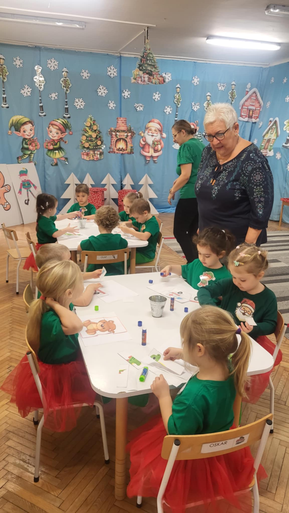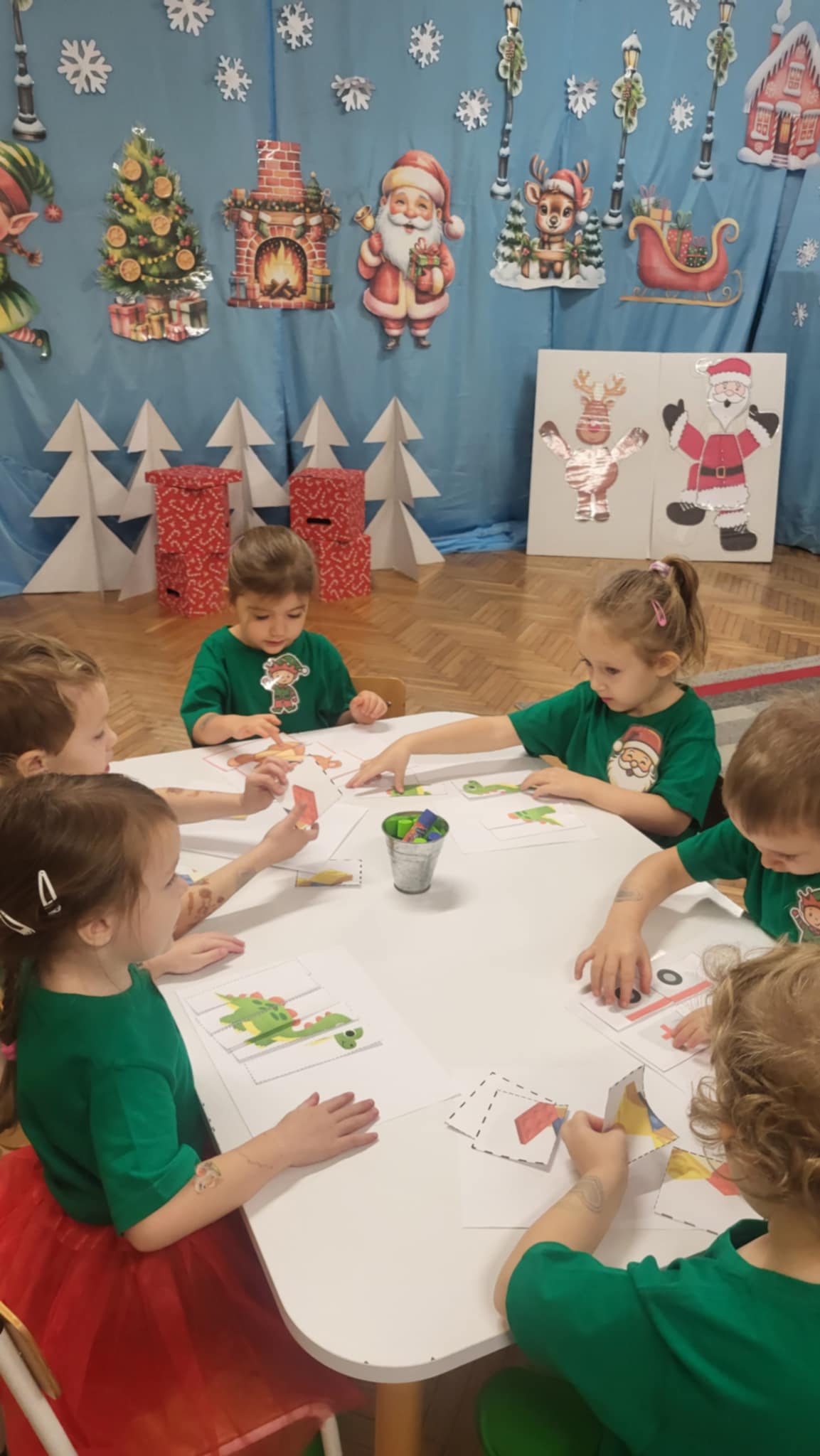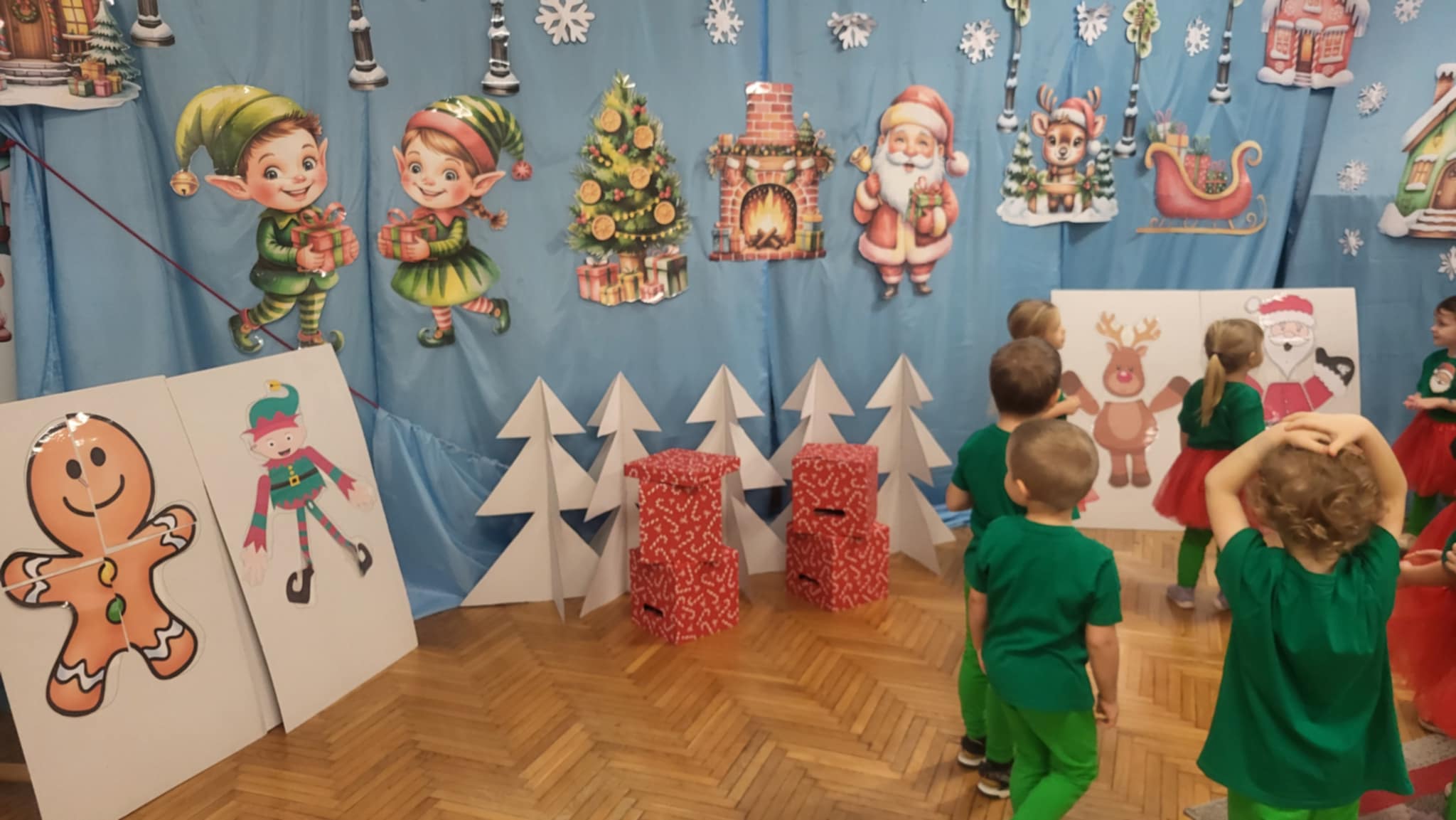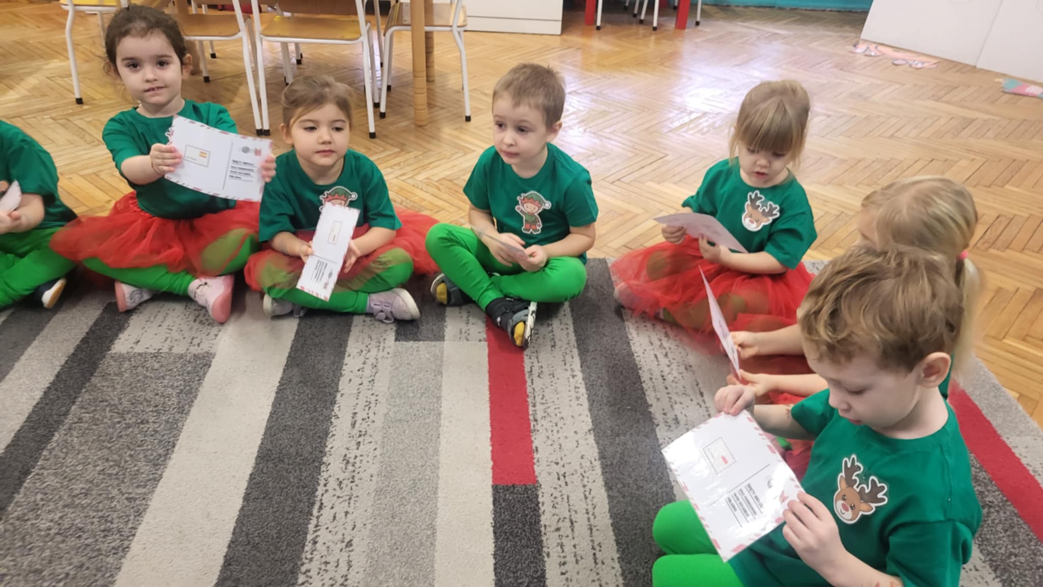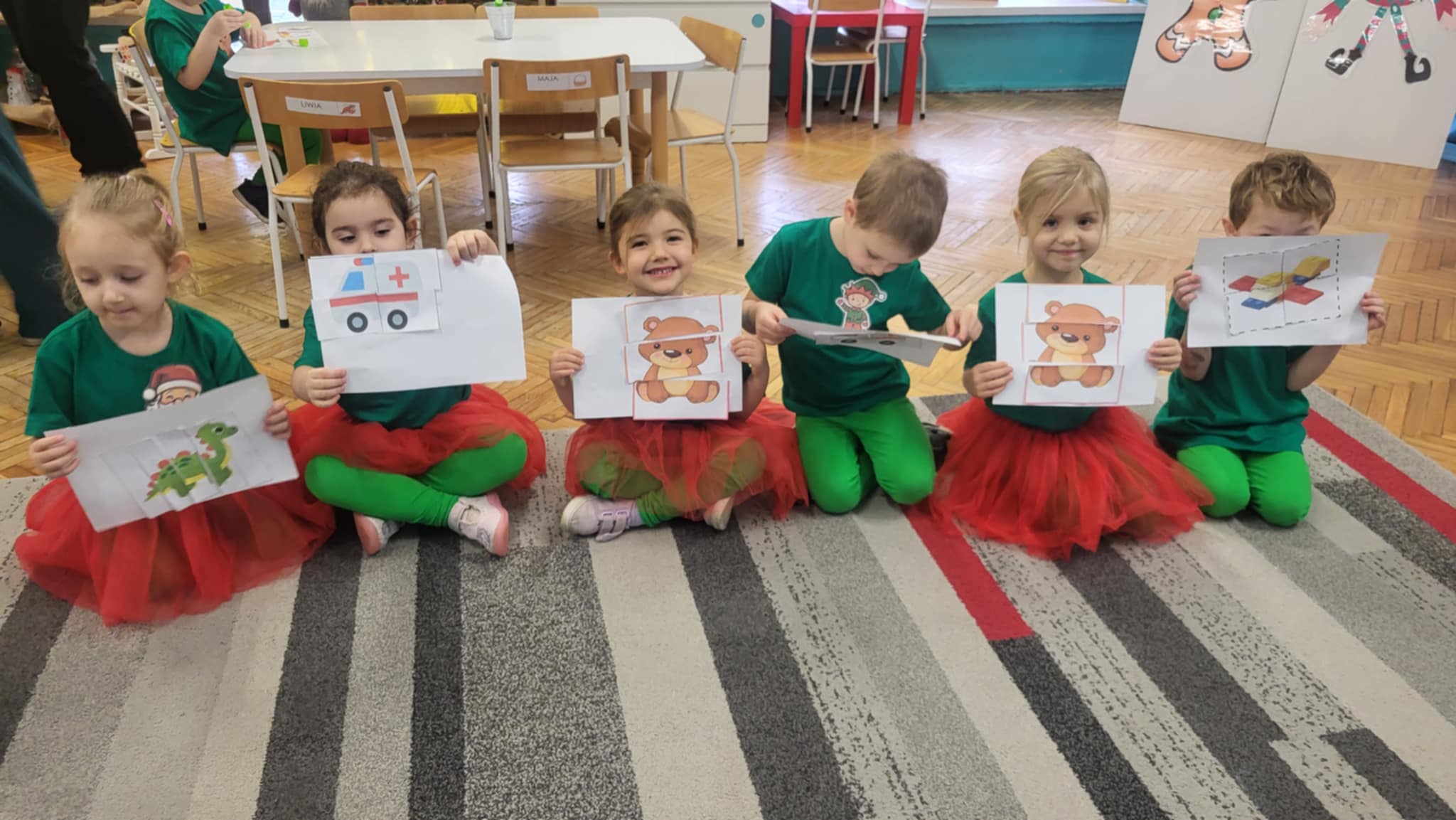 W grupie na jeden dzień dzieci zamieniły się w pomocników Mikołaja-Elfów. Wysłuchały historyjki obrazkowej o pewnym chłopcu Olku, który napisał list od Świętego Mikołaja. A o co poprosił?- tego dowiedziały się elfy rozwiązując zagadki. Segregowały listy do odpowiednich skrzynek pocztowych, potem wybrały się do wioski Mikolaja na daleką północ. Tam odkryły jakieś postacie, które musiały dopasować do cienia. Okazałao się, że to sam Mikołaj, elfy, renifer i piernikowy ludek ukryły się na ilustracjach. Grały również na instrumentach do piosenki "Mikołaju, chodź". Na końcu układały puzzle, by dowiedzieć się w końcu o czym marzył Olek. Okazało się, że jego marzeniem był pluszowy miś, klocki, dinozaur oraz samochodzi. Na zakończenie wybrane dzieci same spróbowały opowiedziec historyjkę obrazkową. Zaspiewały również piosenkę o Mikołaju, żeby nie zapomniał i onich i przybył w najbliższych dniach do przedszkola. Zajęcie pokazowe i obserwowane przez dyrektora oraz rade pedagogiczną.