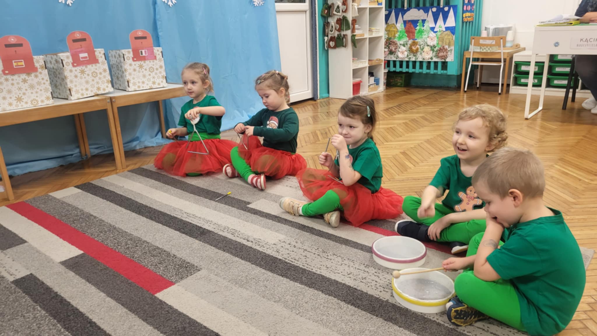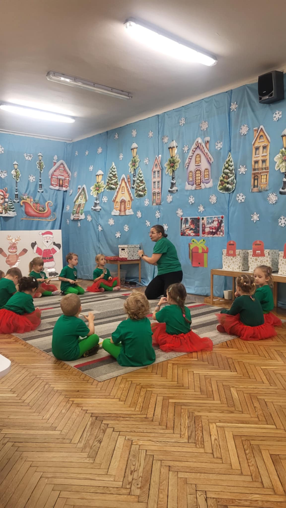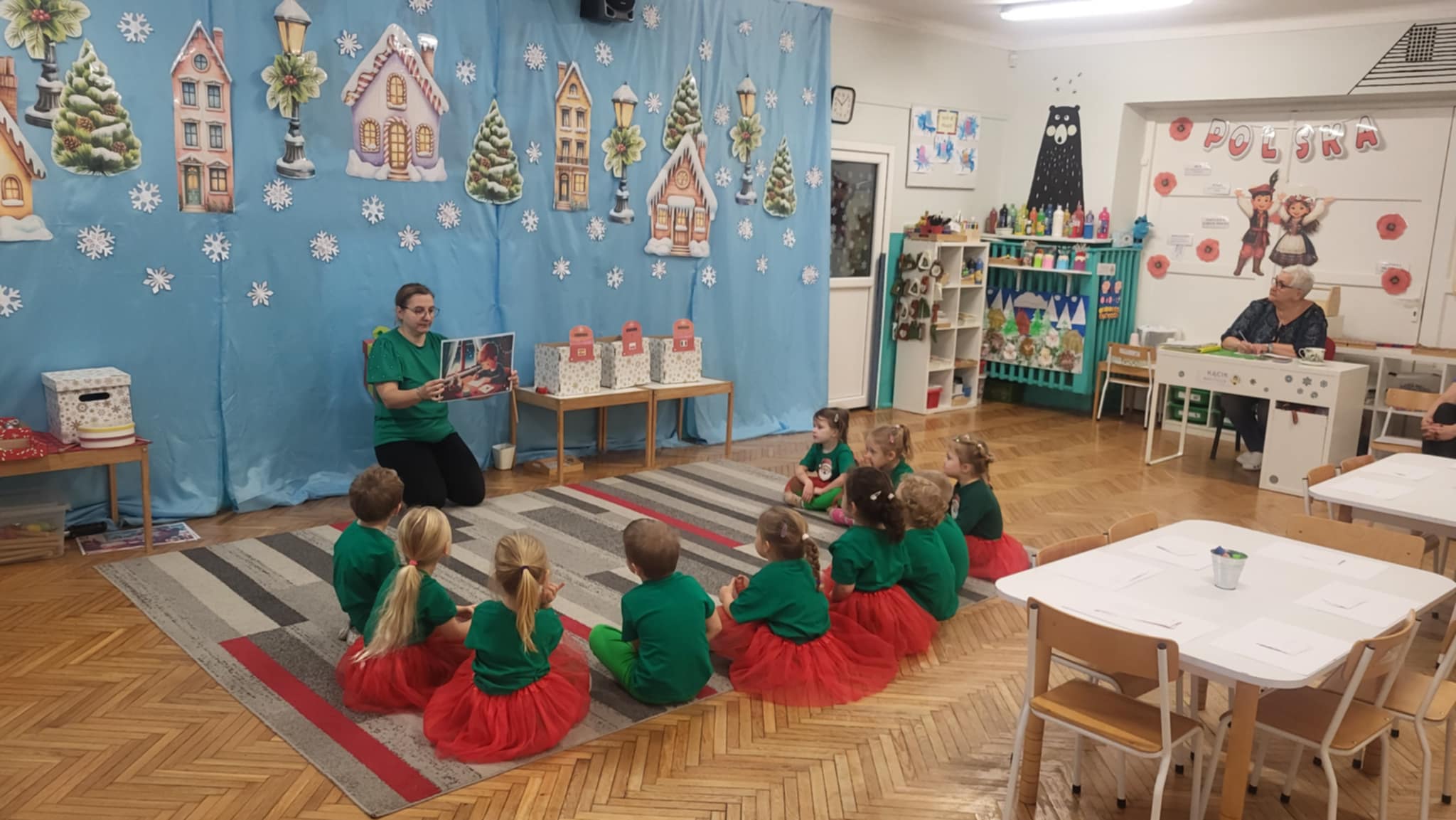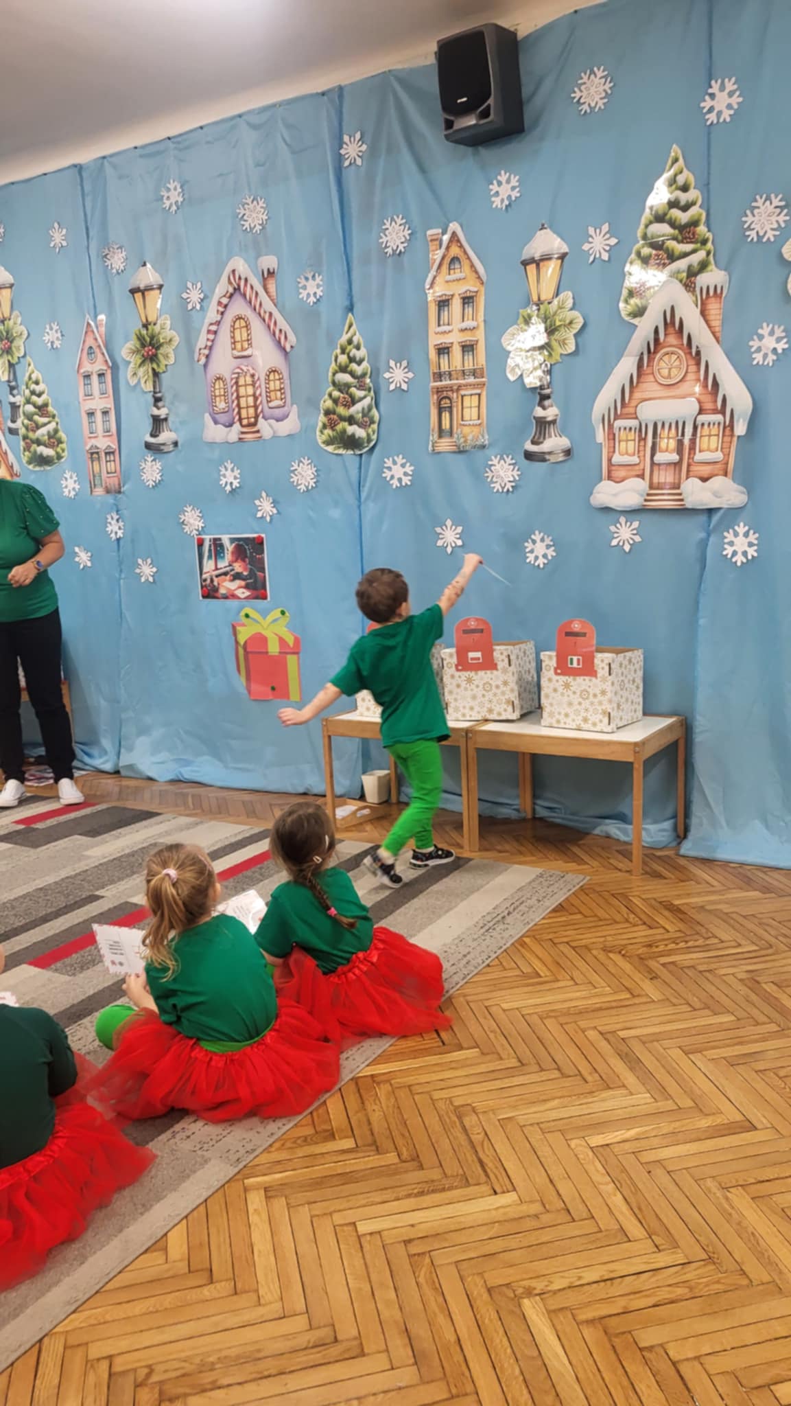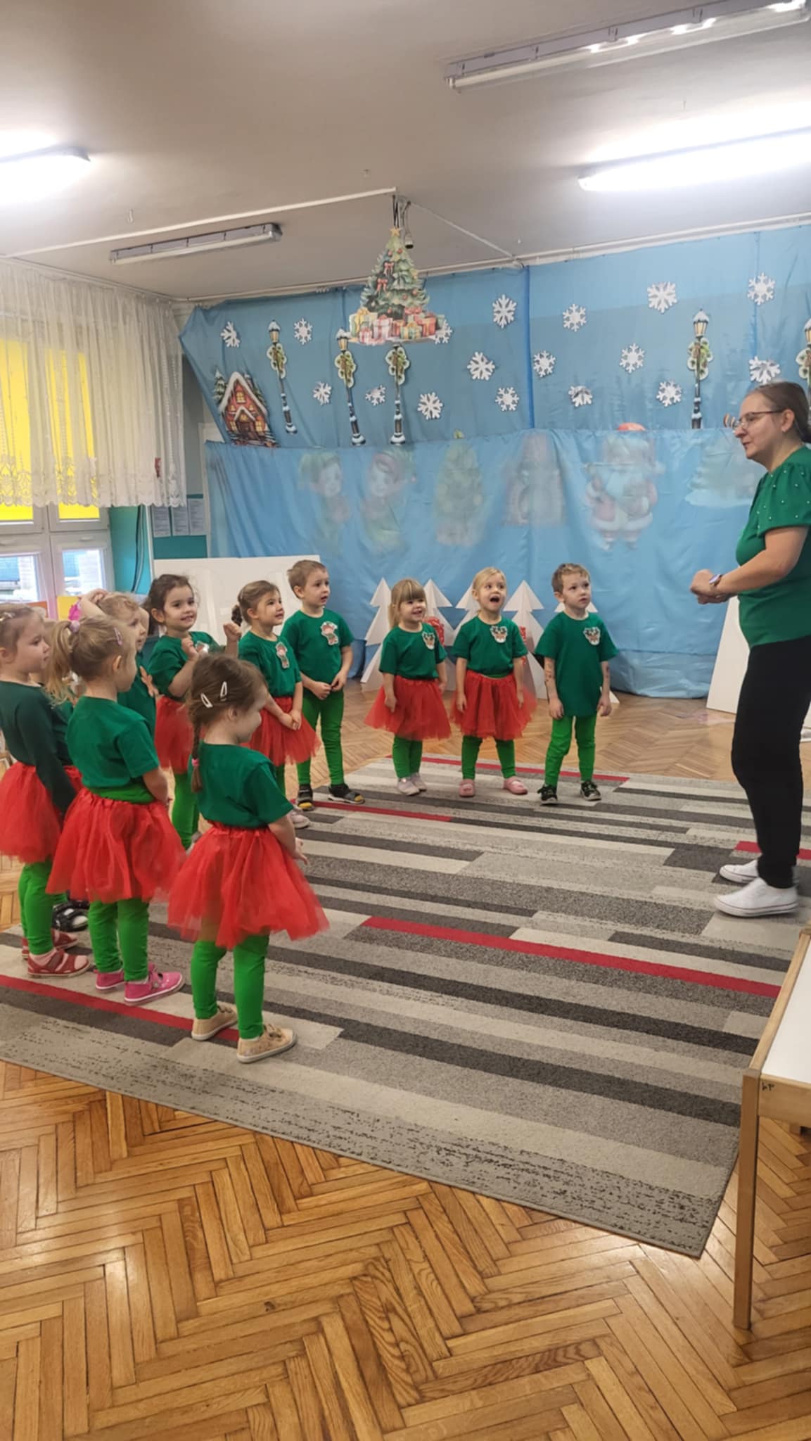 W grupie na jeden dzień dzieci zamieniły się w pomocników Mikołaja-Elfów. Wysłuchały historyjki obrazkowej o pewnym chłopcu Olku, który napisał list od Świętego Mikołaja. A o co poprosił?- tego dowiedziały się elfy rozwiązując zagadki. Segregowały listy do odpowiednich skrzynek pocztowych, potem wybrały się do wioski Mikolaja na daleką północ. Tam odkryły jakieś postacie, które musiały dopasować do cienia. Okazałao się, że to sam Mikołaj, elfy, renifer i piernikowy ludek ukryły się na ilustracjach. Grały również na instrumentach do piosenki "Mikołaju, chodź". Na końcu układały puzzle, by dowiedzieć się w końcu o czym marzył Olek. Okazało się, że jego marzeniem był pluszowy miś, klocki, dinozaur oraz samochodzi. Na zakończenie wybrane dzieci same spróbowały opowiedziec historyjkę obrazkową. Zaspiewały również piosenkę o Mikołaju, żeby nie zapomniał i onich i przybył w najbliższych dniach do przedszkola. Zajęcie pokazowe i obserwowane przez dyrektora oraz rade pedagogiczną.