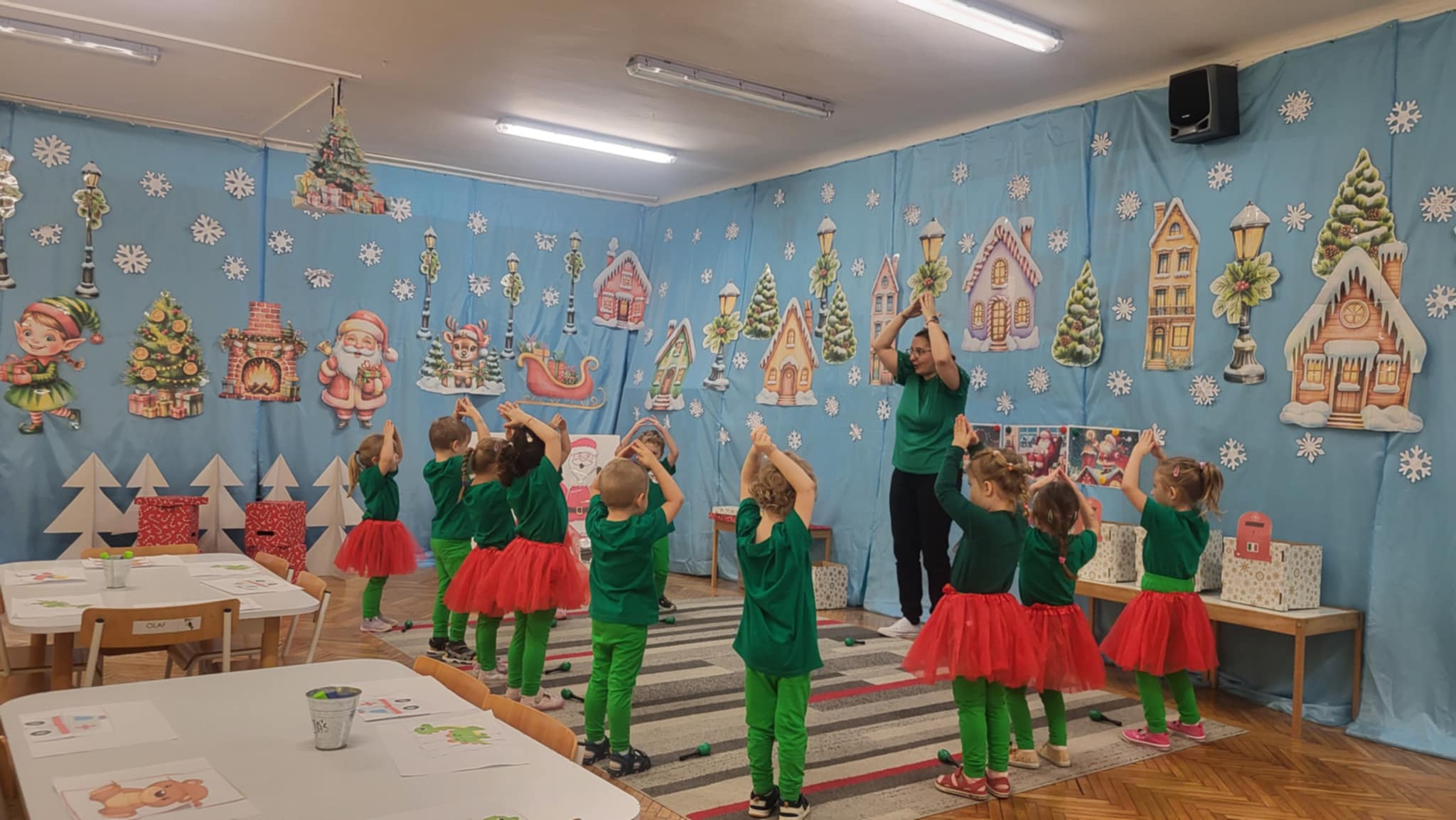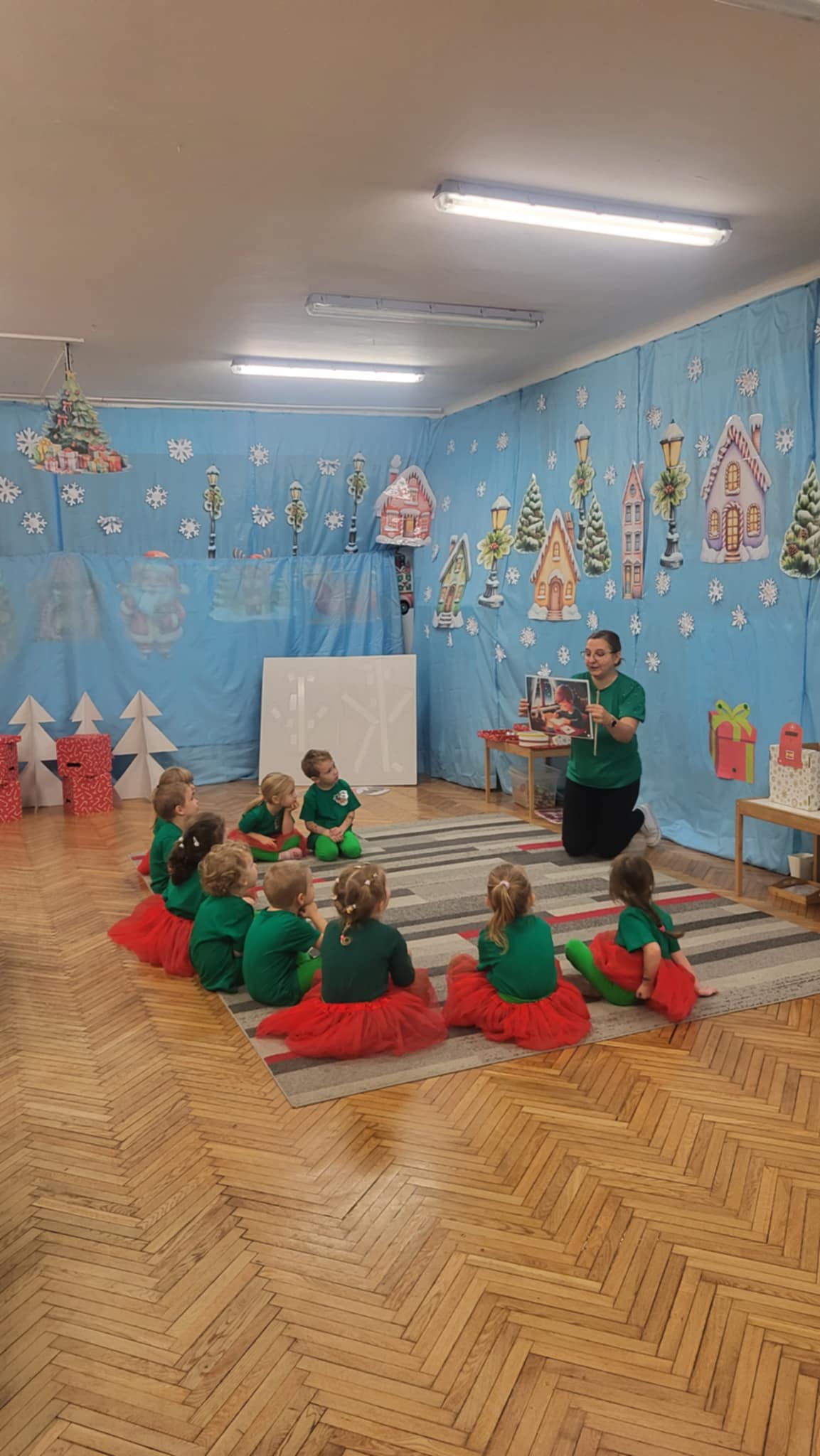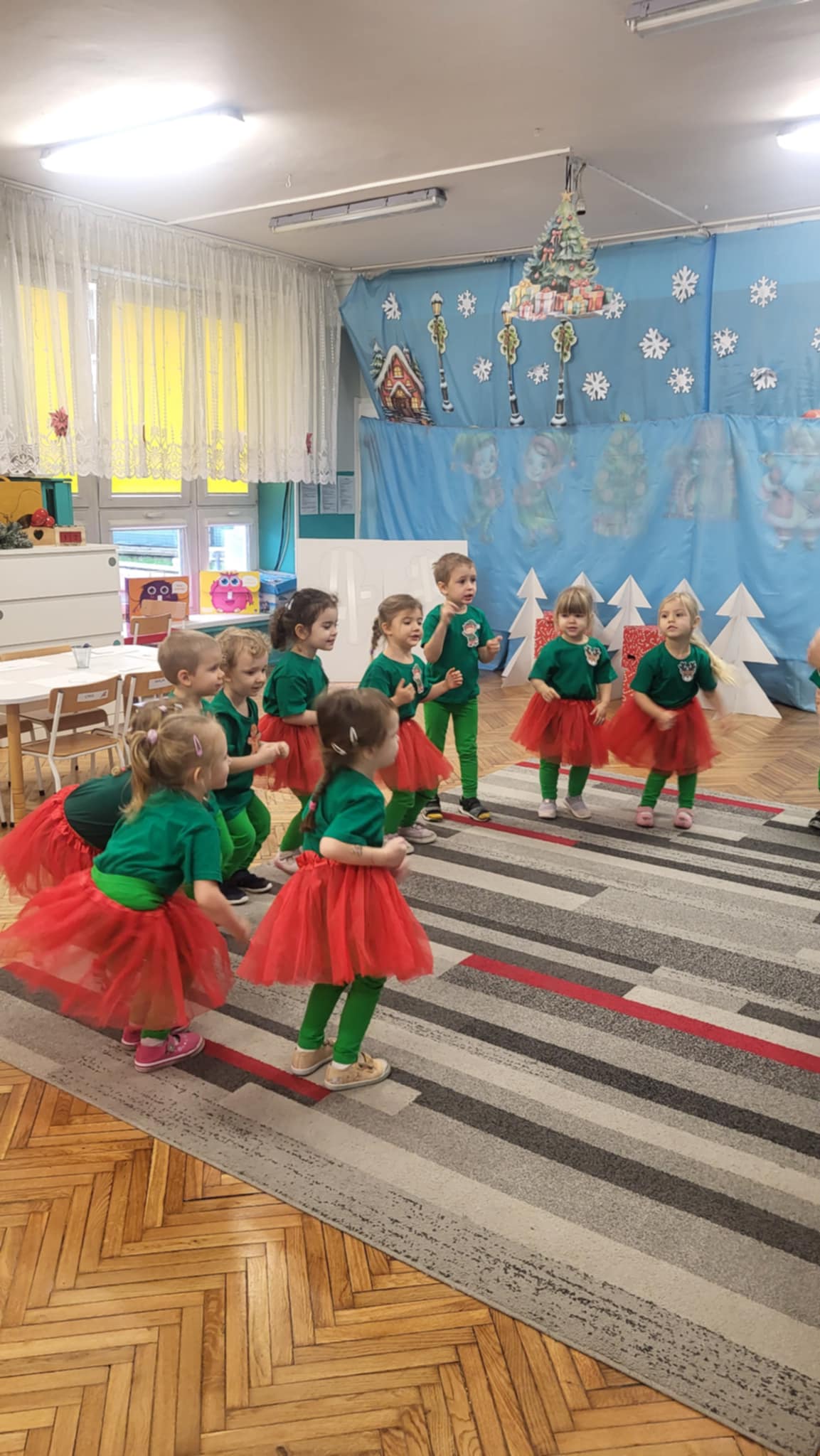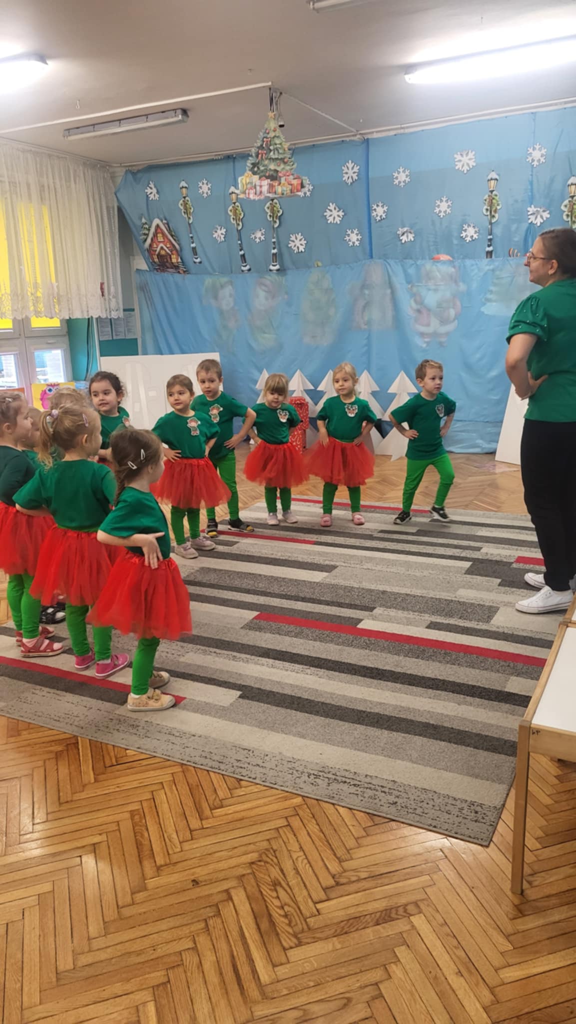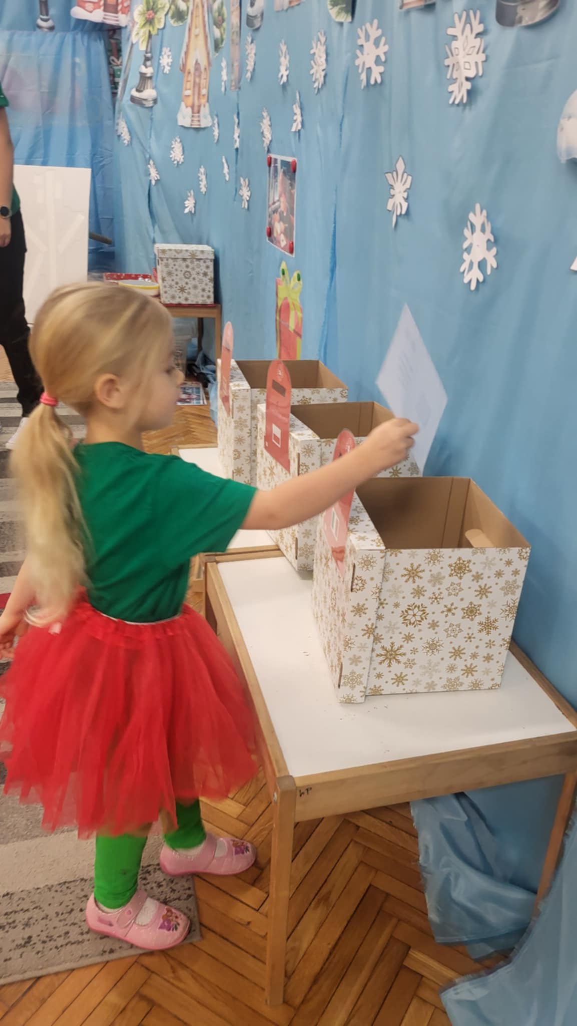 W grupie na jeden dzień dzieci zamieniły się w pomocników Mikołaja-Elfów. Wysłuchały historyjki obrazkowej o pewnym chłopcu Olku, który napisał list od Świętego Mikołaja. A o co poprosił?- tego dowiedziały się elfy rozwiązując zagadki. Segregowały listy do odpowiednich skrzynek pocztowych, potem wybrały się do wioski Mikolaja na daleką północ. Tam odkryły jakieś postacie, które musiały dopasować do cienia. Okazałao się, że to sam Mikołaj, elfy, renifer i piernikowy ludek ukryły się na ilustracjach. Grały również na instrumentach do piosenki "Mikołaju, chodź". Na końcu układały puzzle, by dowiedzieć się w końcu o czym marzył Olek. Okazało się, że jego marzeniem był pluszowy miś, klocki, dinozaur oraz samochodzi. Na zakończenie wybrane dzieci same spróbowały opowiedziec historyjkę obrazkową. Zaspiewały również piosenkę o Mikołaju, żeby nie zapomniał i onich i przybył w najbliższych dniach do przedszkola. Zajęcie pokazowe i obserwowane przez dyrektora oraz rade pedagogiczną.