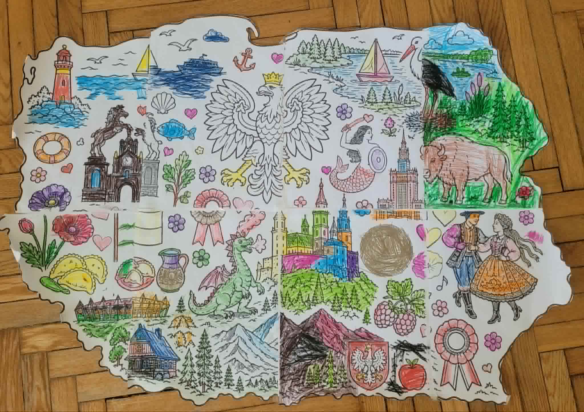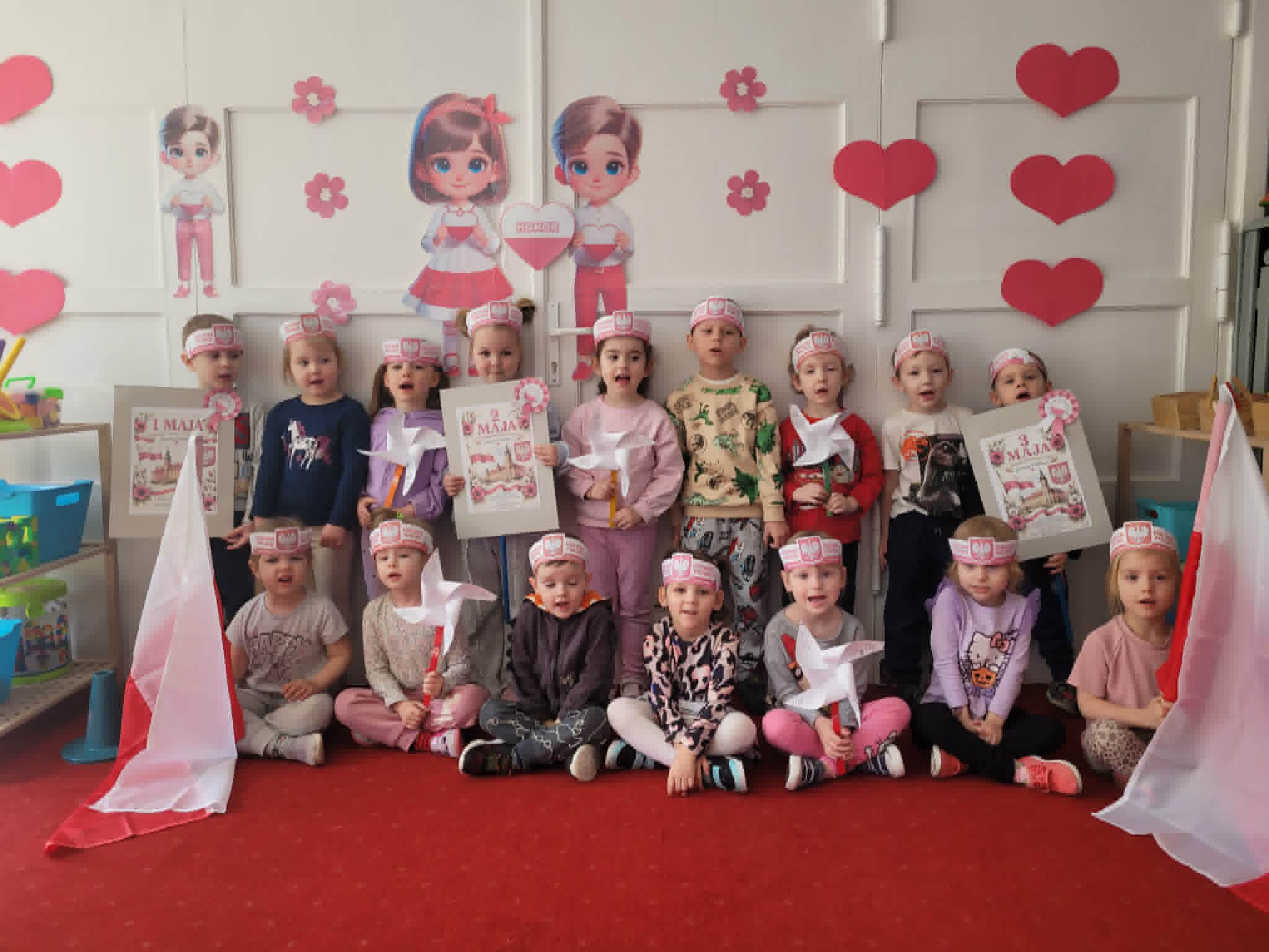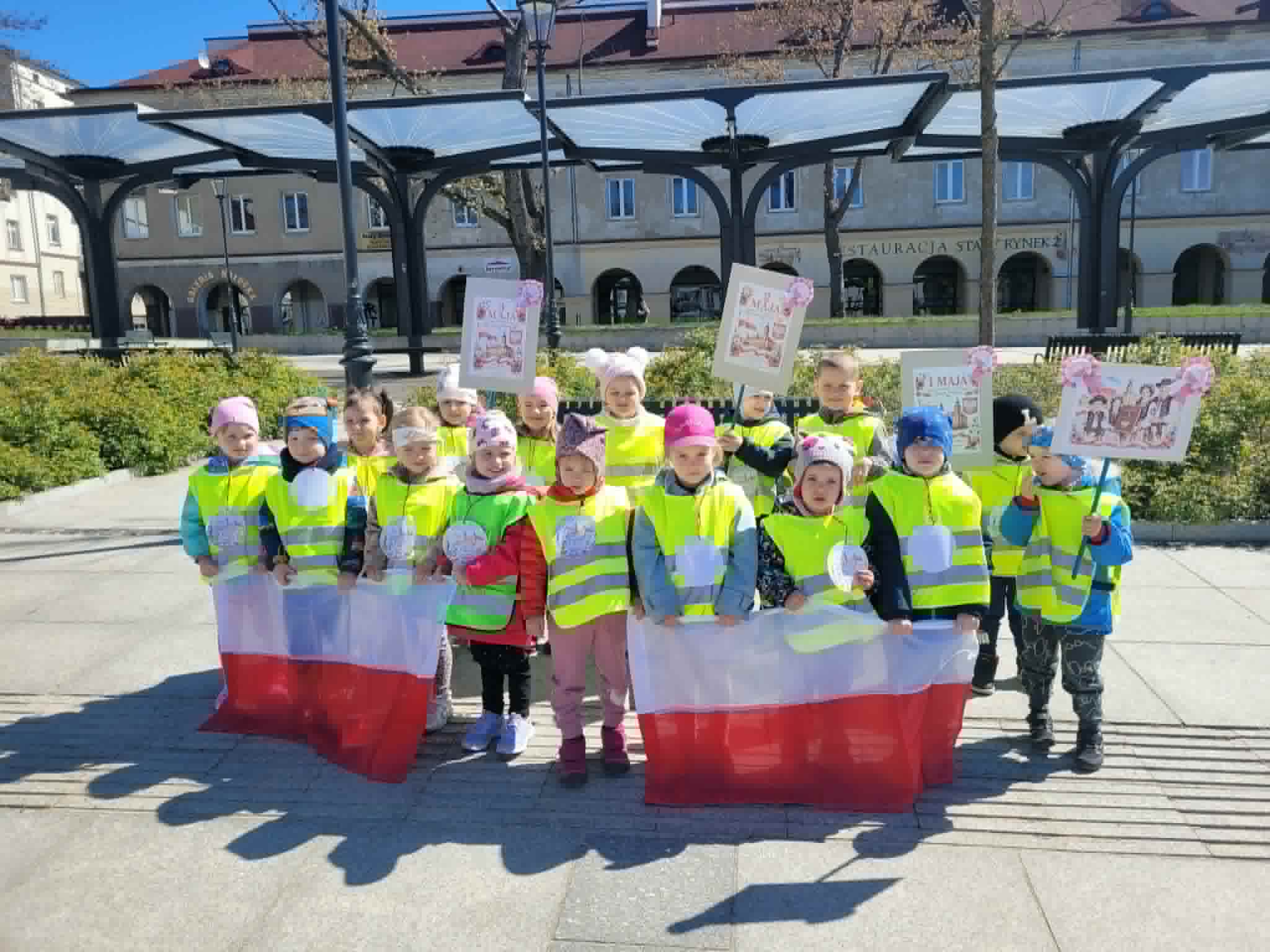 Jak co roku przedszkolaki uczciły ważne majowe święta patriotyczne – Święto Pracy, Dzień Flagi czy rocznicę uchwalenia Konstytucji 3 maja. Niezwykle ważne jest by od najmłodszych lat budować poczucie dumy, że jesteśmy Polakami i wszystko co polskie jest dla nas ważne i bliskie. Dzieci na podstawie opowiadania i teatrzyku sylwet „Praca, flaga, majowa książka” przybliżyły sobie znaczenia majowych świąt. Utrwaliły sobie nazwy miast, które odwiedziły podczas realizacji programu „Sensoryczna podróż po Polsce” oraz symbole narodowe Polski. Wykonały również w parach kolorowankę patriotyczną. Zwieńczeniem działań był pochód na Stary Rynek z flagami oraz planszami mówiącymi o majowych świętach. Jesteśmy dumni z naszych małych patriotów!