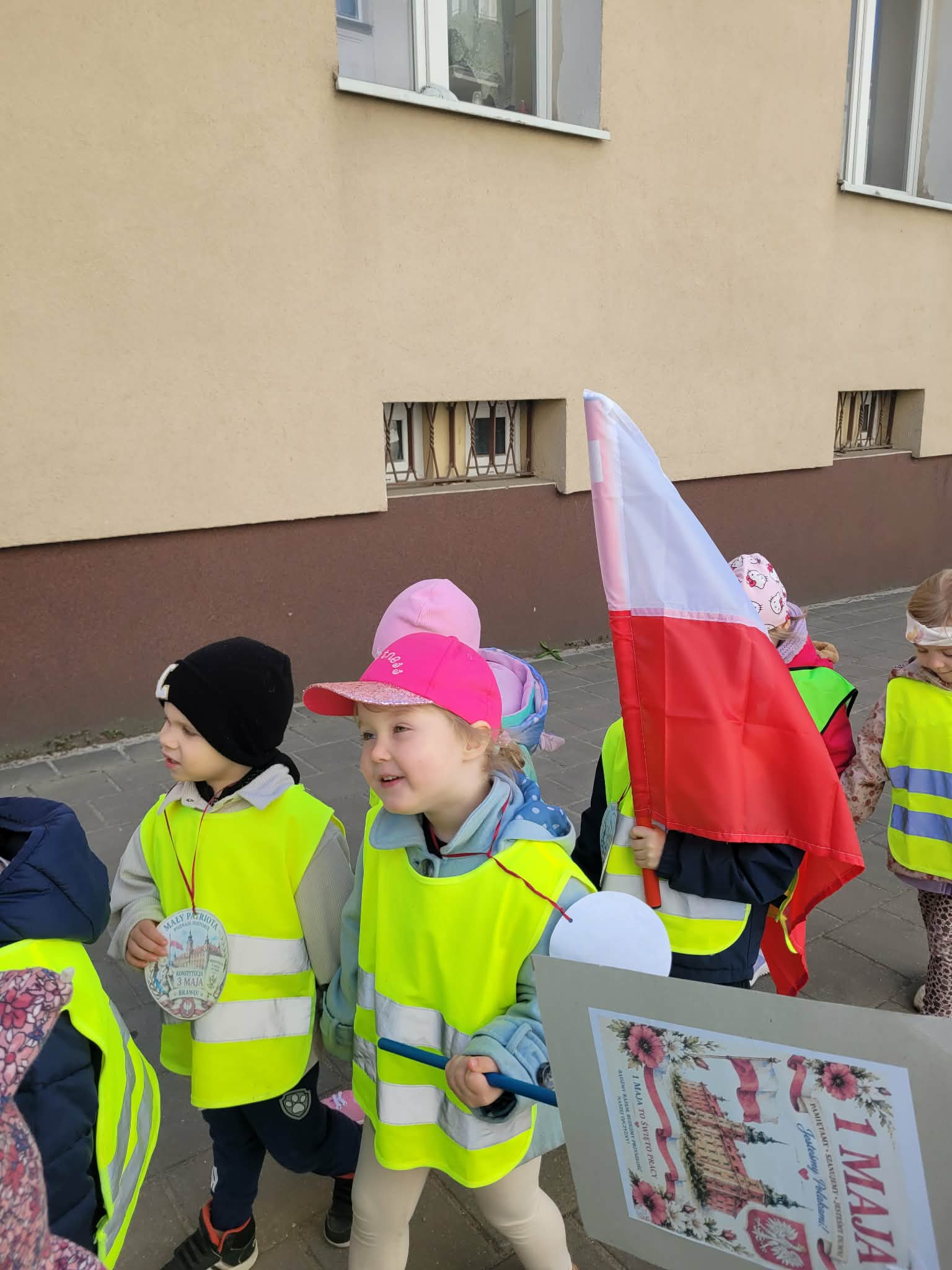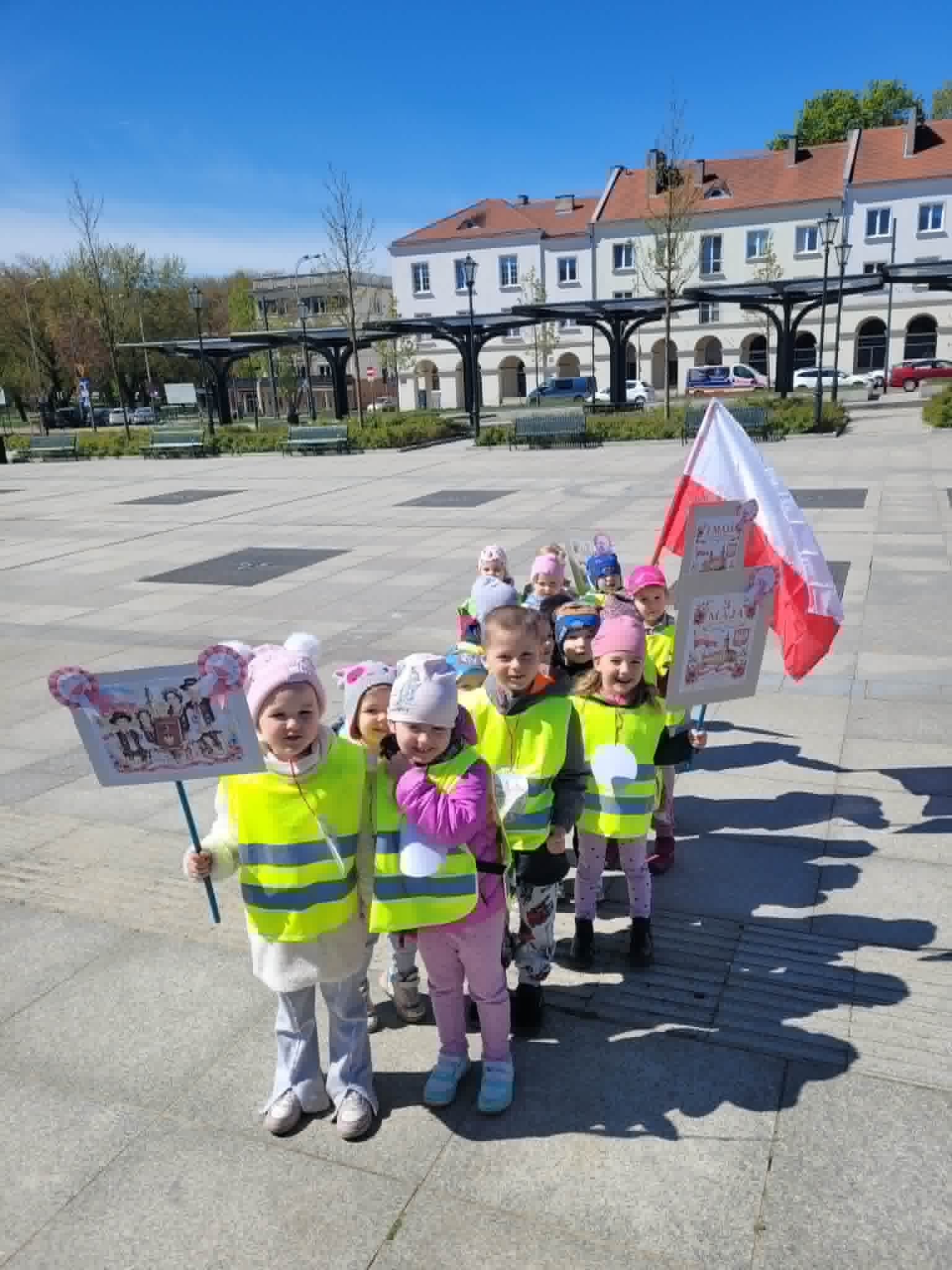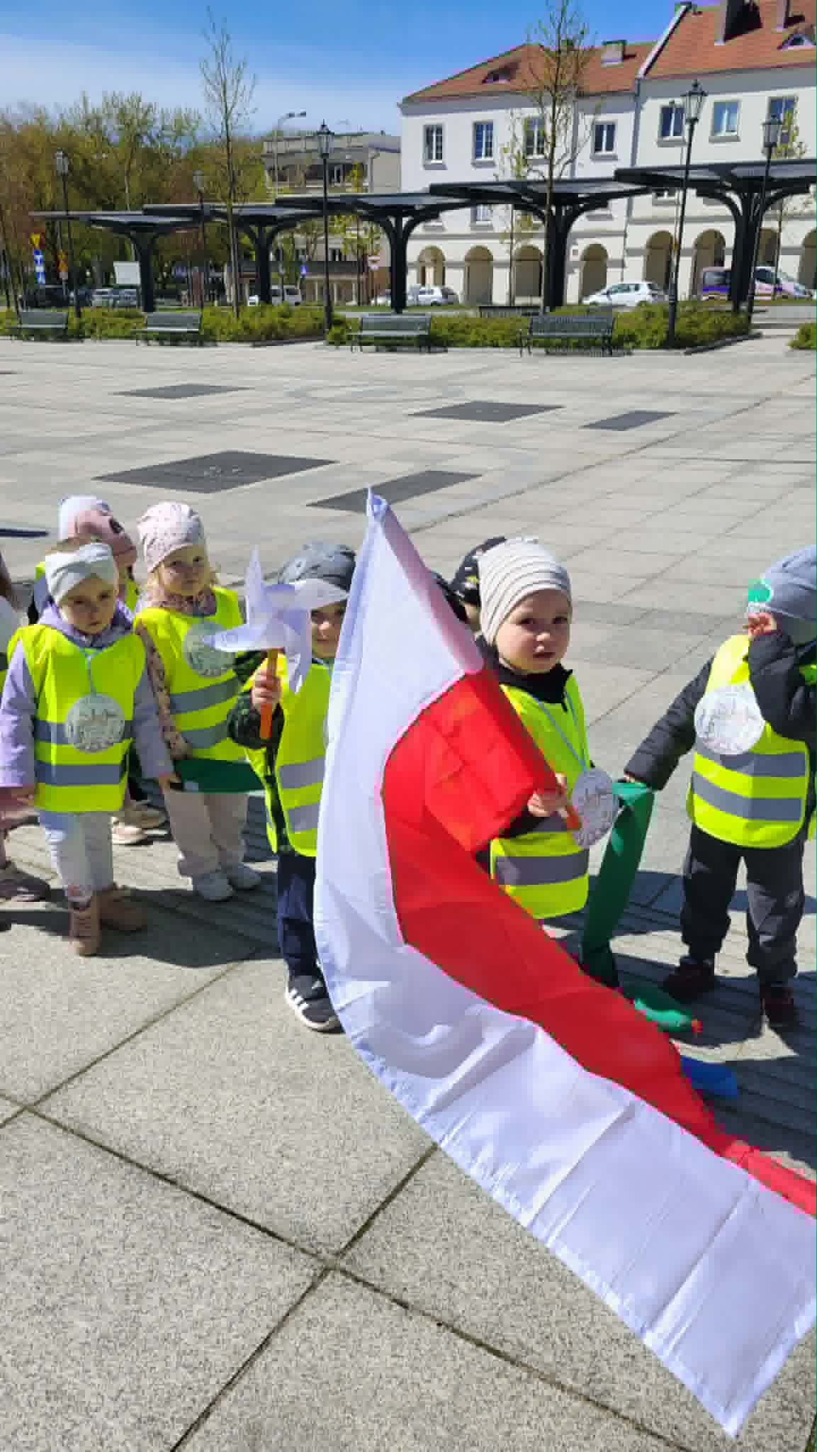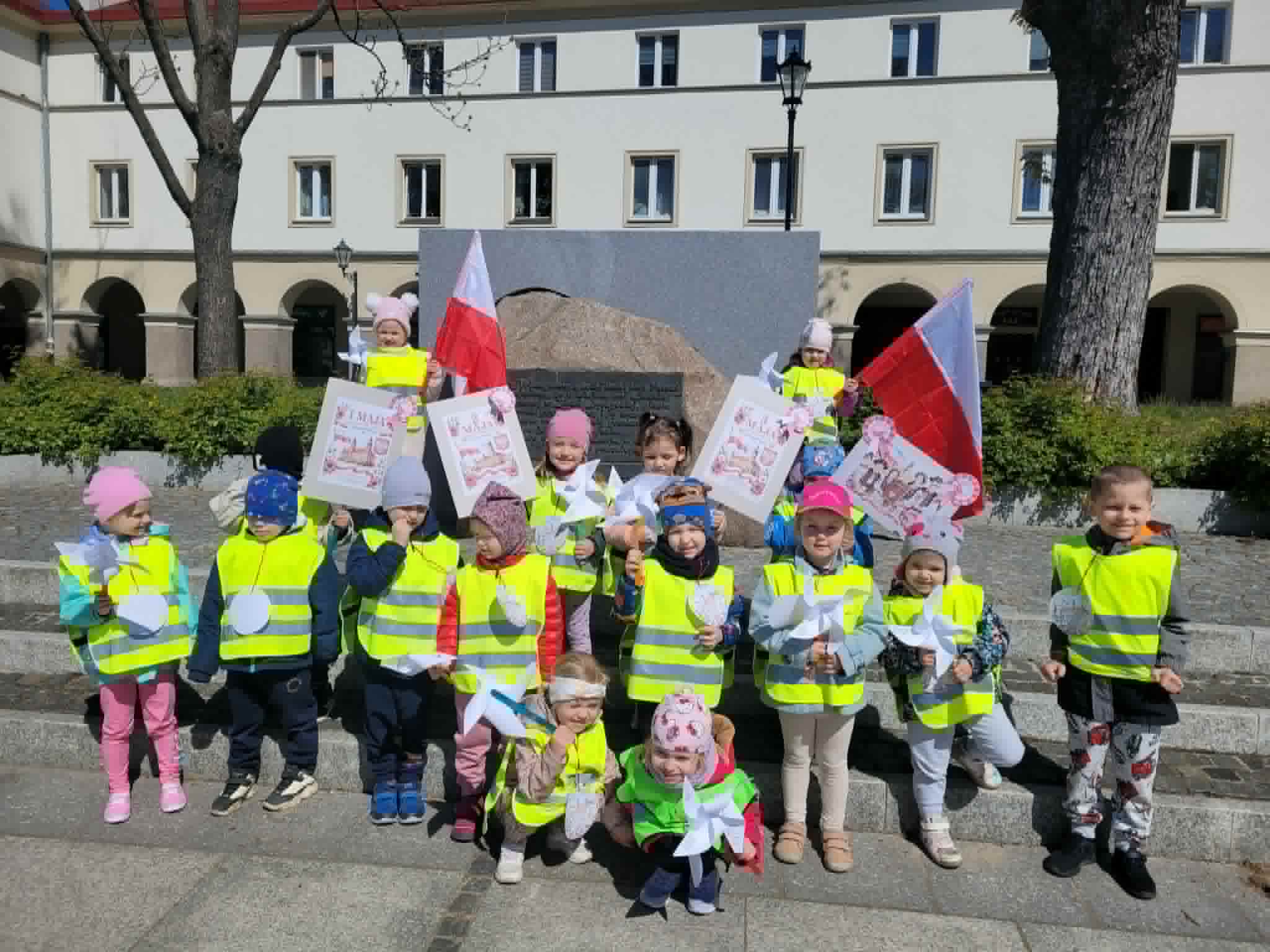 Dzieci z grupy I i II wybrały się na przemarsz, na Stary Rynek z flagami oraz transparentami by uczcić święta majowe. pierwszy maja to święto pracy, drugi maja to święto flagi a trzeci maja to święto konstytucji. Już od najmłodszych lat krzewimy w dzieciach postawę patriotyczną.