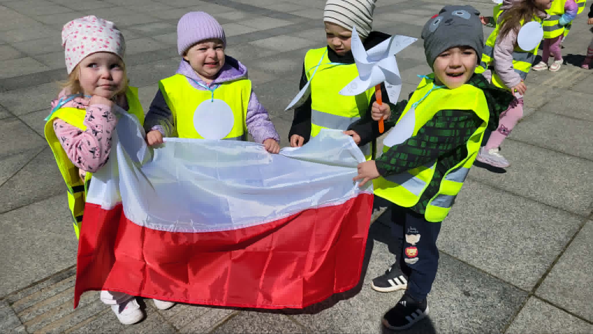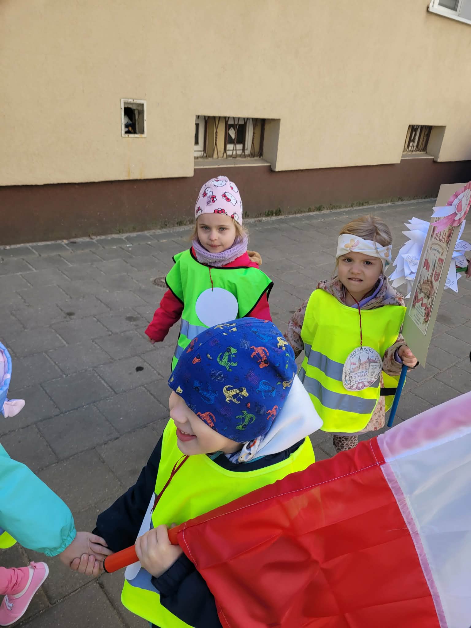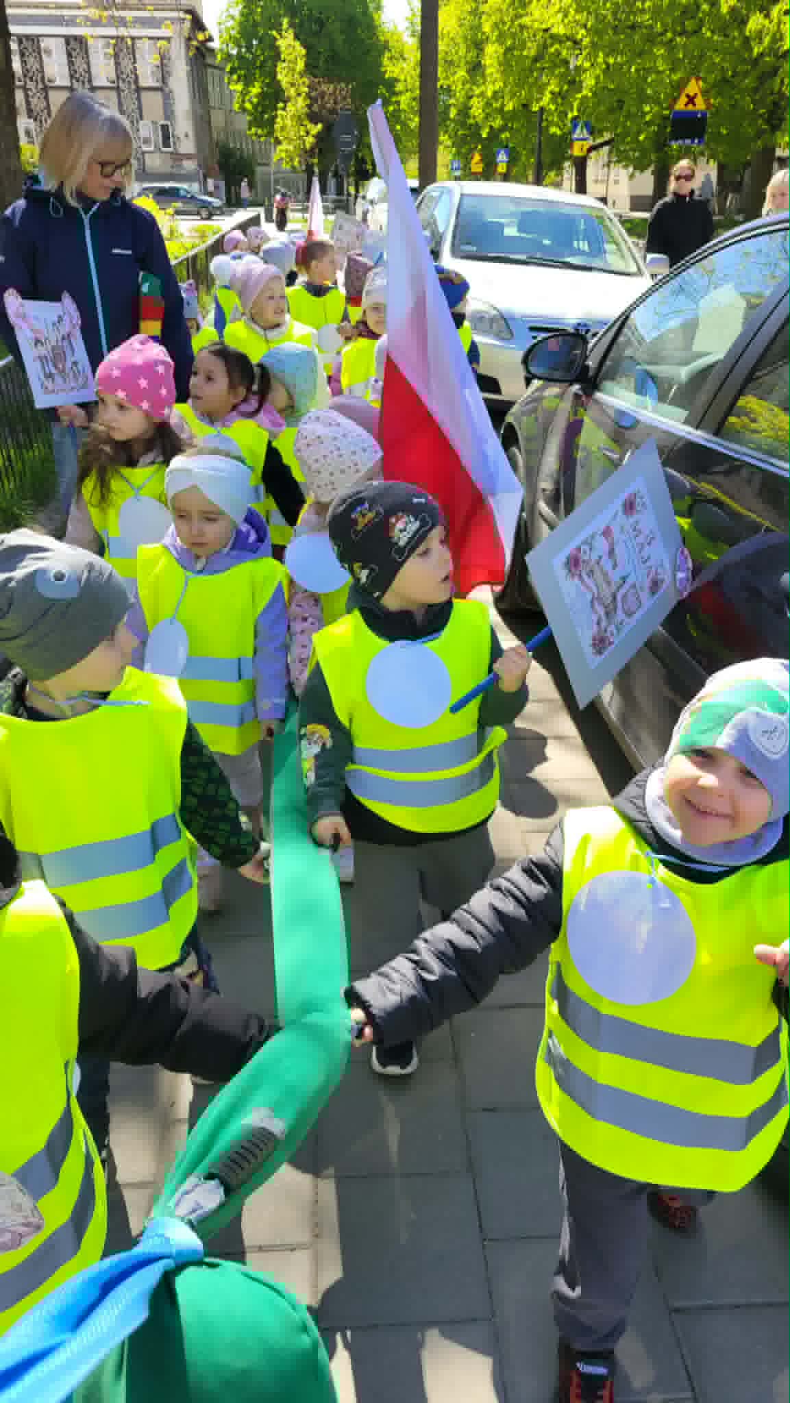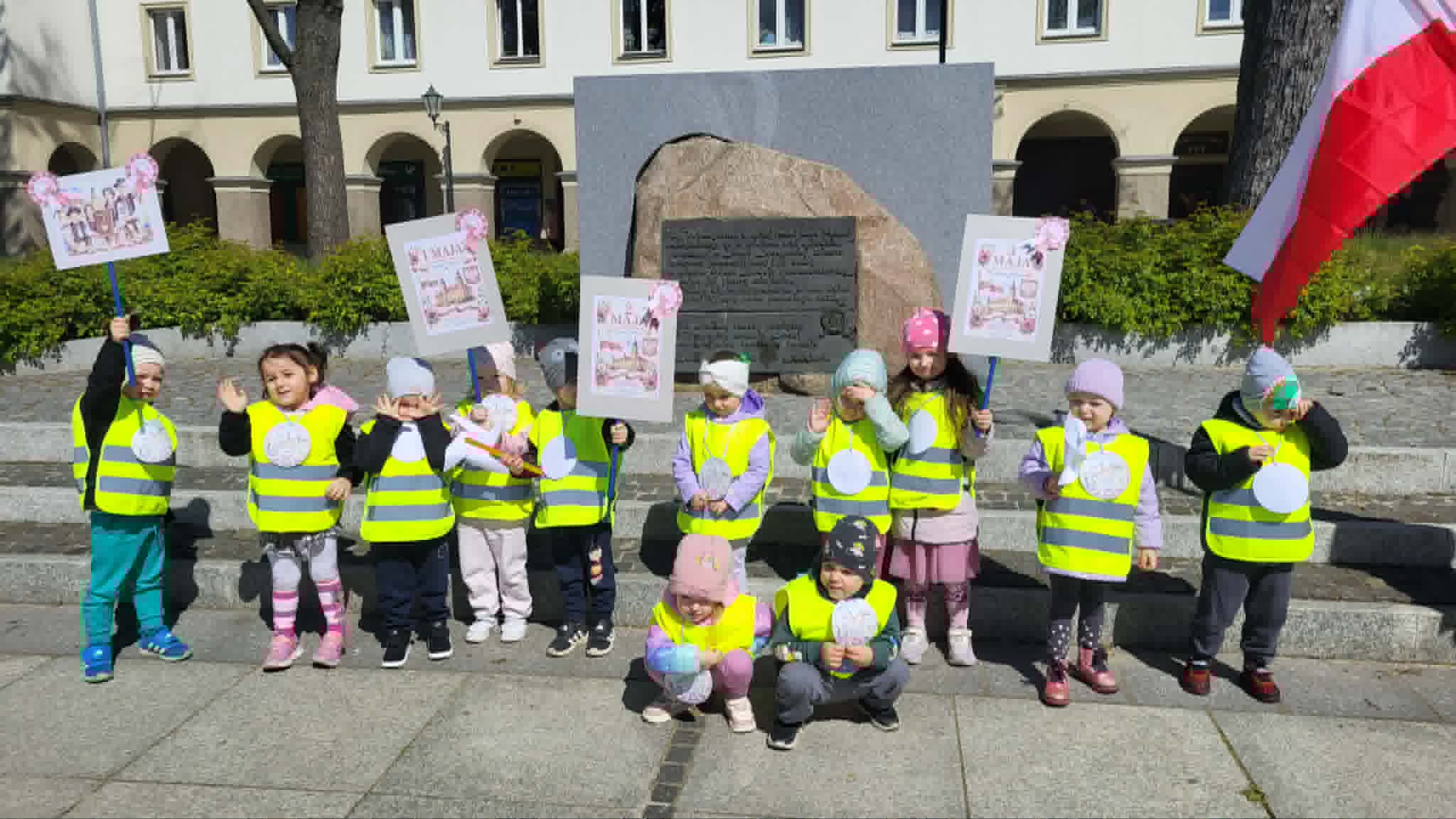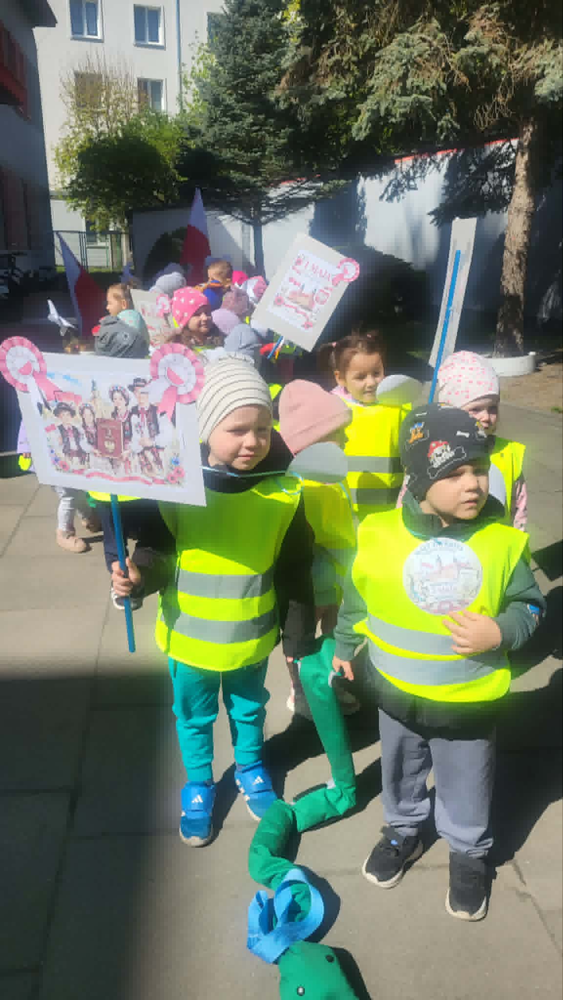 Dzieci z grupy I i II wybrały się na przemarsz, na Stary Rynek z flagami oraz transparentami by uczcić święta majowe. pierwszy maja to święto pracy, drugi maja to święto flagi a trzeci maja to święto konstytucji. Już od najmłodszych lat krzewimy w dzieciach postawę patriotyczną.