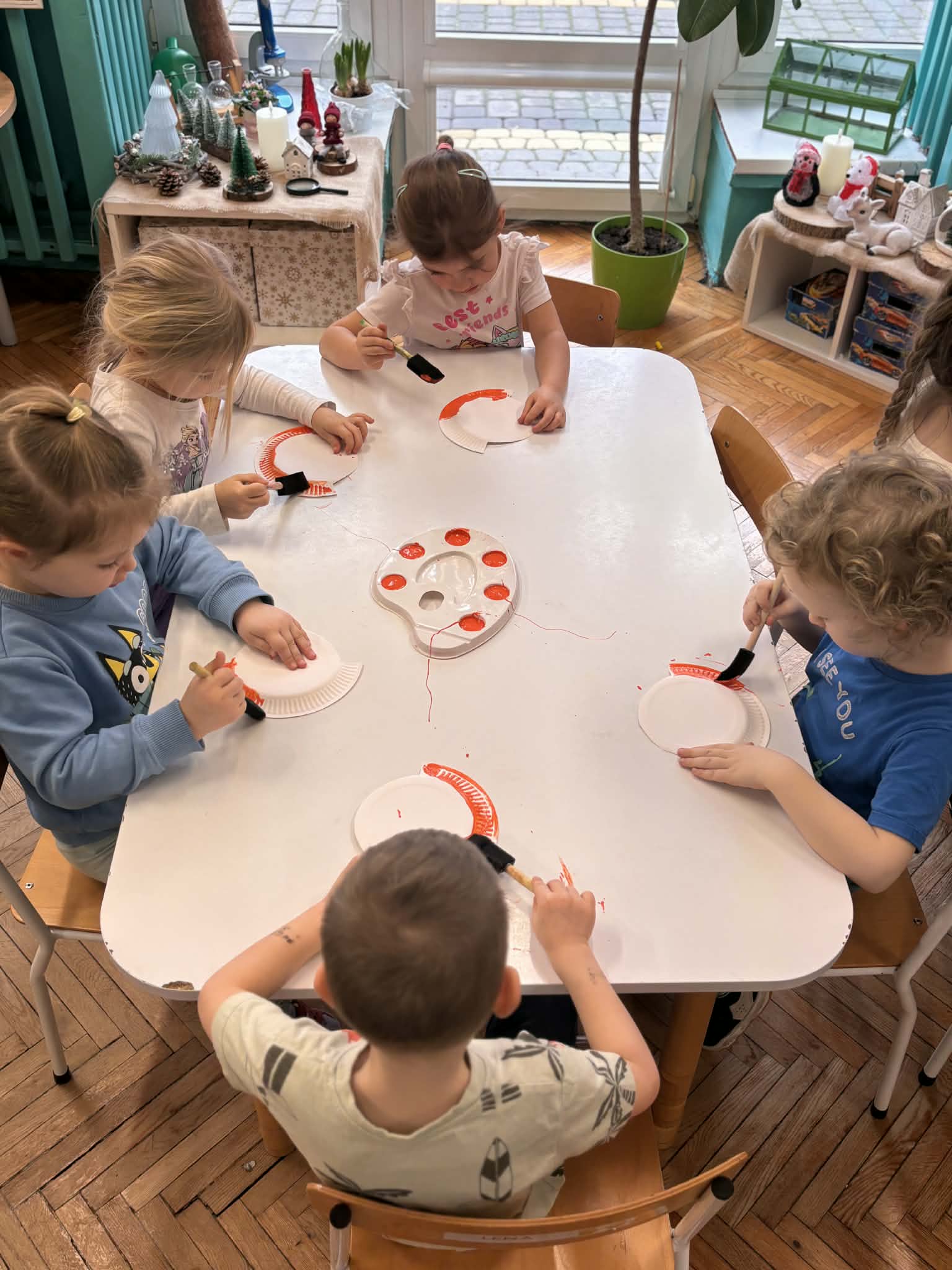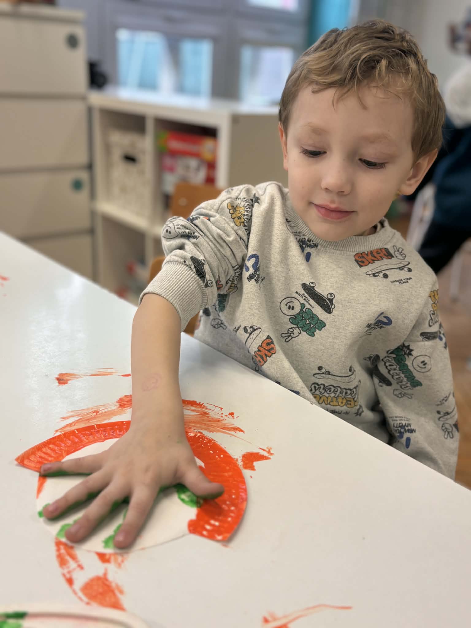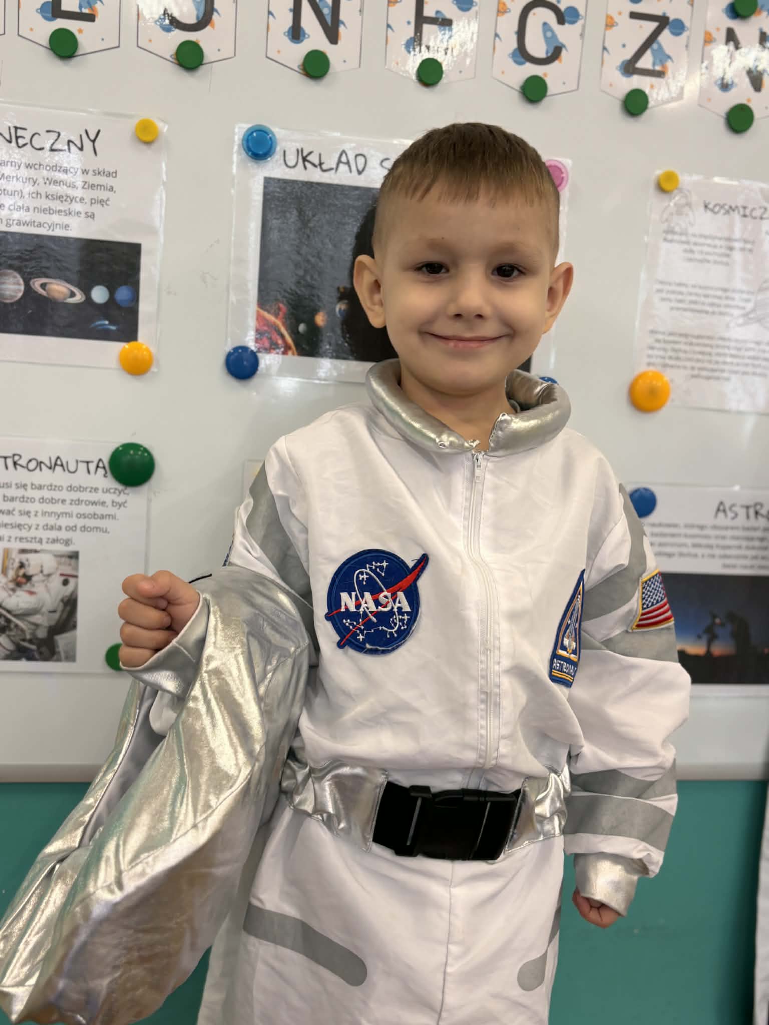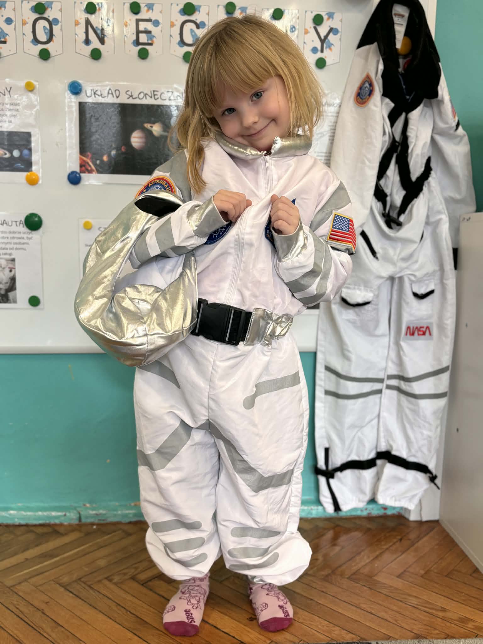 W tym tygodniu w grupie 2 poznawaliśmy Układ Słoneczny. Dzieci pracowały z kartami Montessori, dzięki którym utrwaliły nazwy i cechy planet: Merkury, Wenus, Ziemia, Mars, Jowisz, Saturn, Uran i Neptun. Rozmawialiśmy o ich wyglądzie, wielkości i ciekawostkach. Korzystając z tabliczek gradacji kolorów, dzieci ćwiczyły rozróżnianie i układanie odcieni. Na zakończenie powstała praca plastyczna „Ufoludek”– odcisk rączki w statku kosmicznym. To był tydzień pełen kosmicznych odkryć