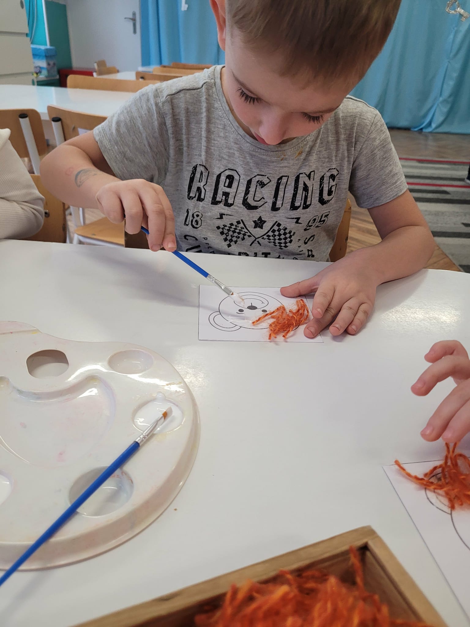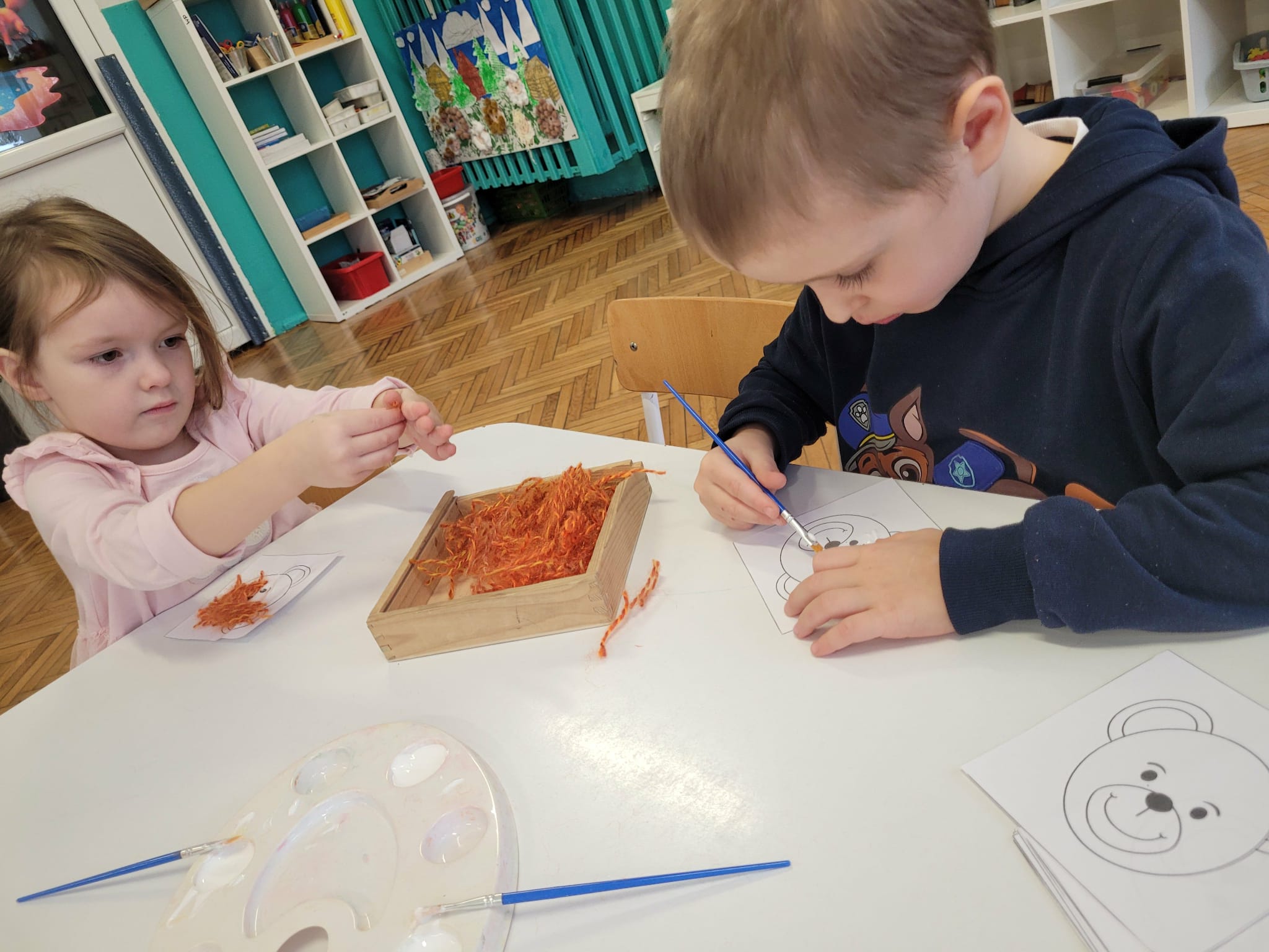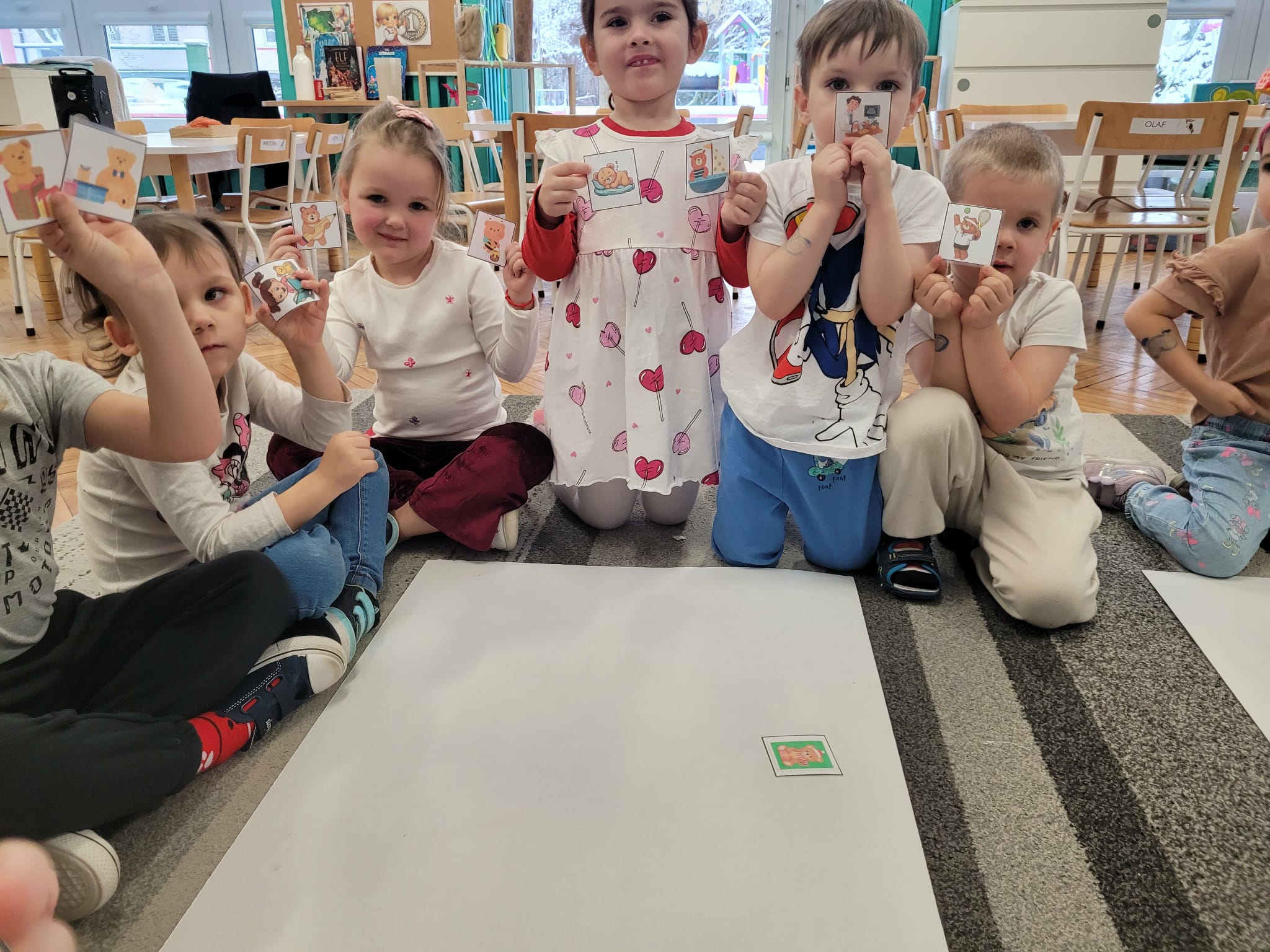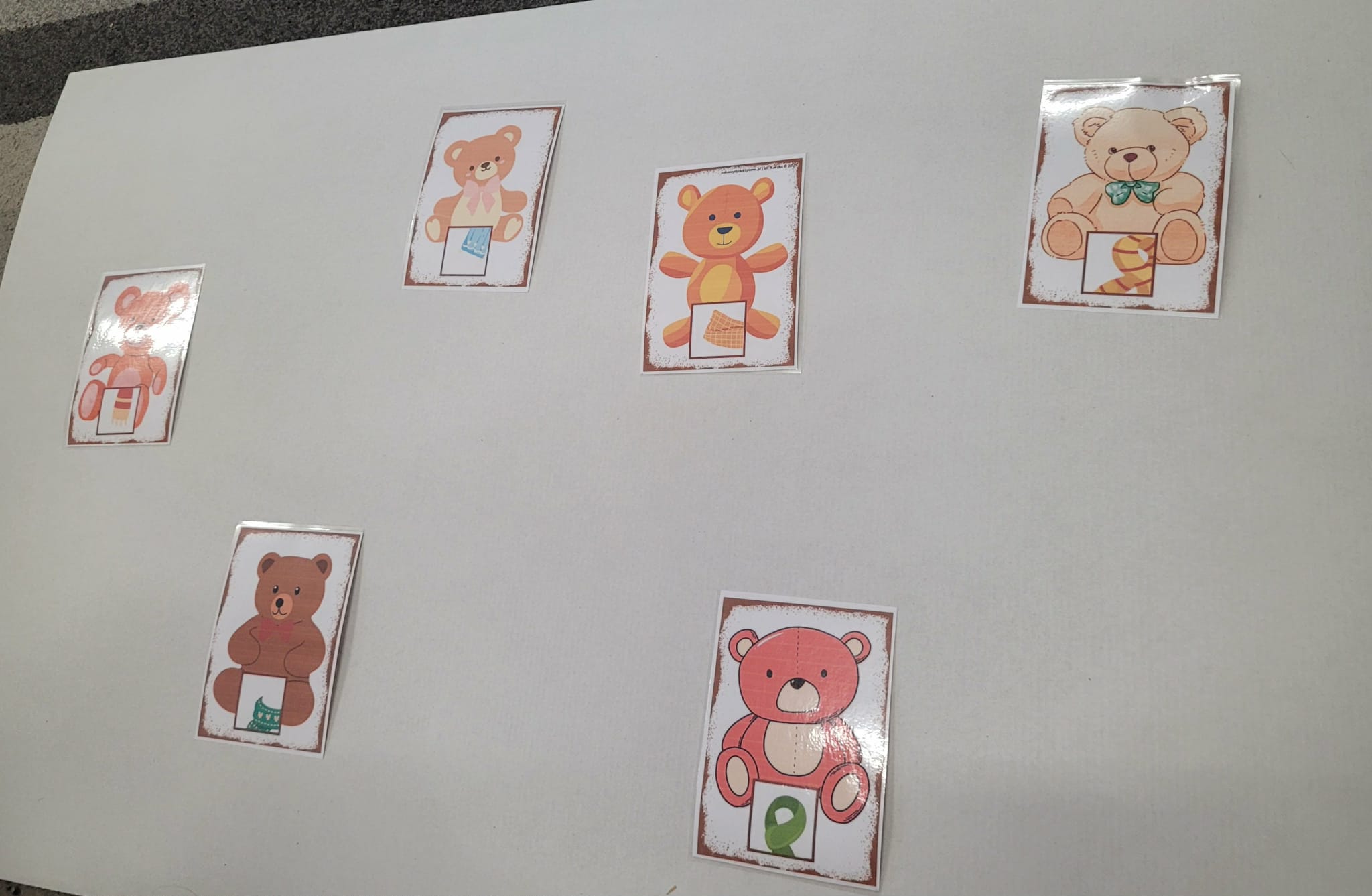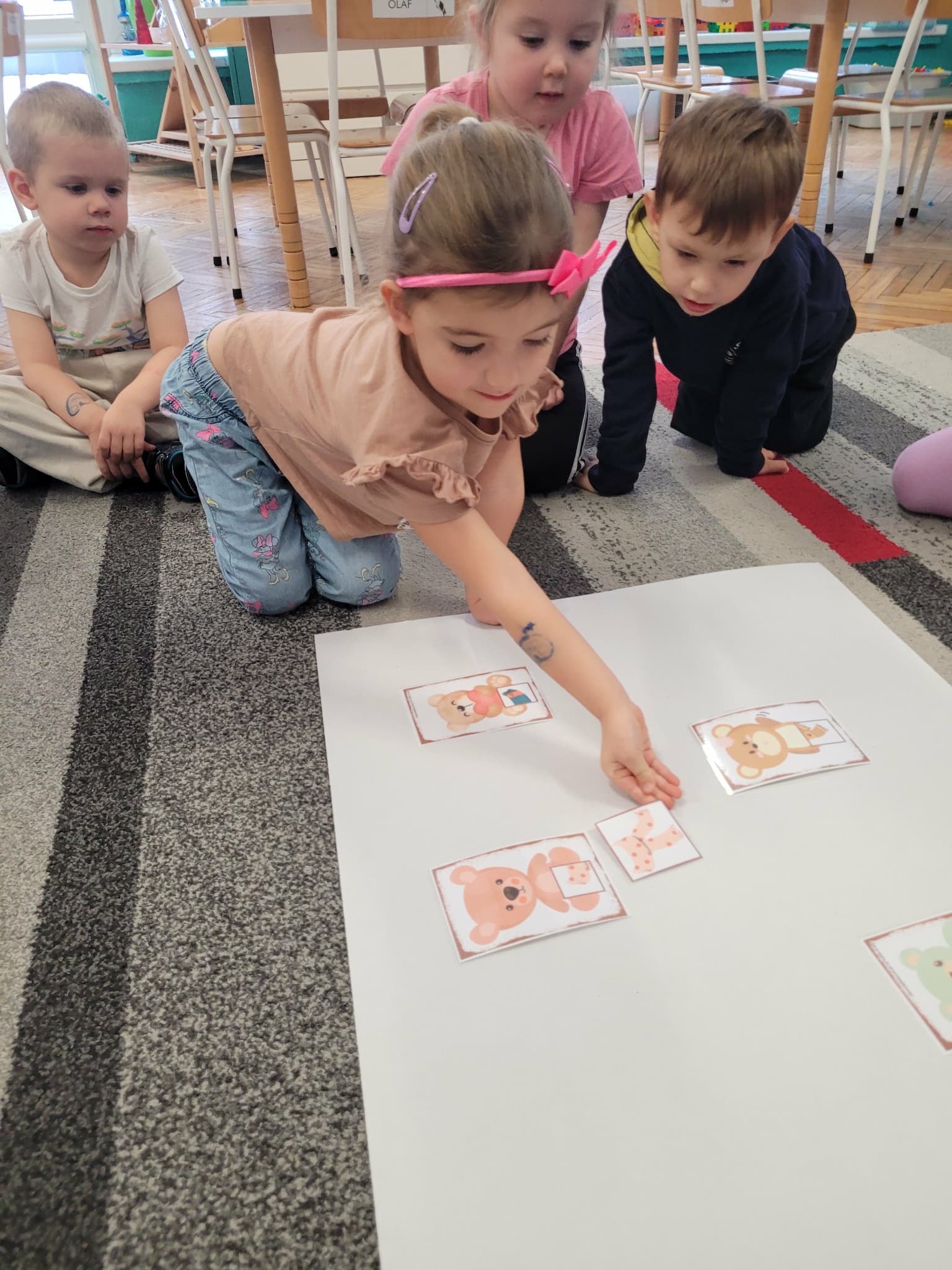 Matematyka wcale nie mjusi być trudna a z taką postacia jak pluszowy miś to wręcz łatwizna. Przekonaly się o tym dzieci, wykonując różnorodne zadania matematyczne. Dopasowywały cienie oraz szaliki do misiów. Ćwiczyliśmy percepcję wzrokową i wyszukiwaliśmy w zespołach misia zgodnego z opisem słownym. Potem na czas ukladaliśmy misie według kodu. Na zakończenie zajęć kazde dziecko wykonalo swojego misia i wkleiło go w ramkę.