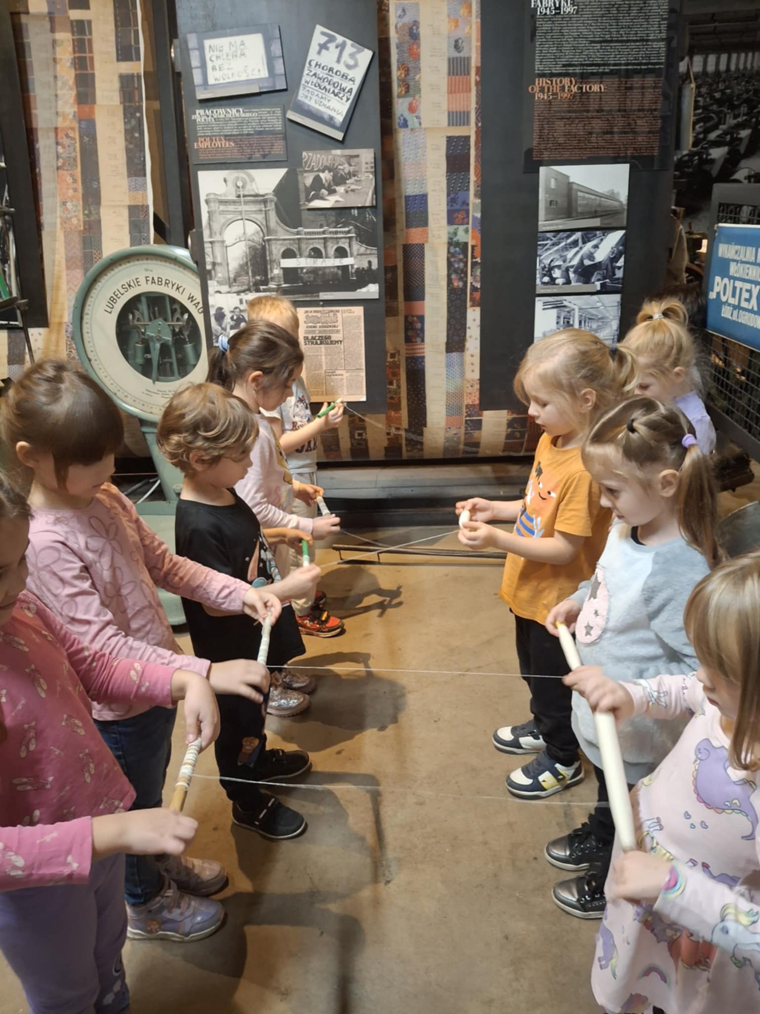 Grupa 3 odwiedziła Muzeum Fabryki.Poprzez aktywne zwiedzanie ekspozycji, którego rytm wyznaczyła zabawa gry planszowej, przy użyciu kostki i pionków, pojechały Pociągiem pełnym bawełny do czasów Prząśniczek, do odległej historii Łodzi