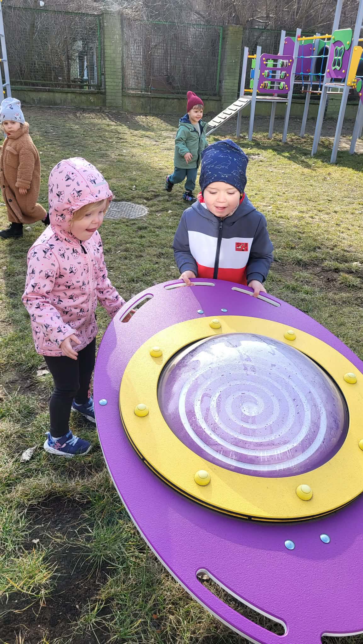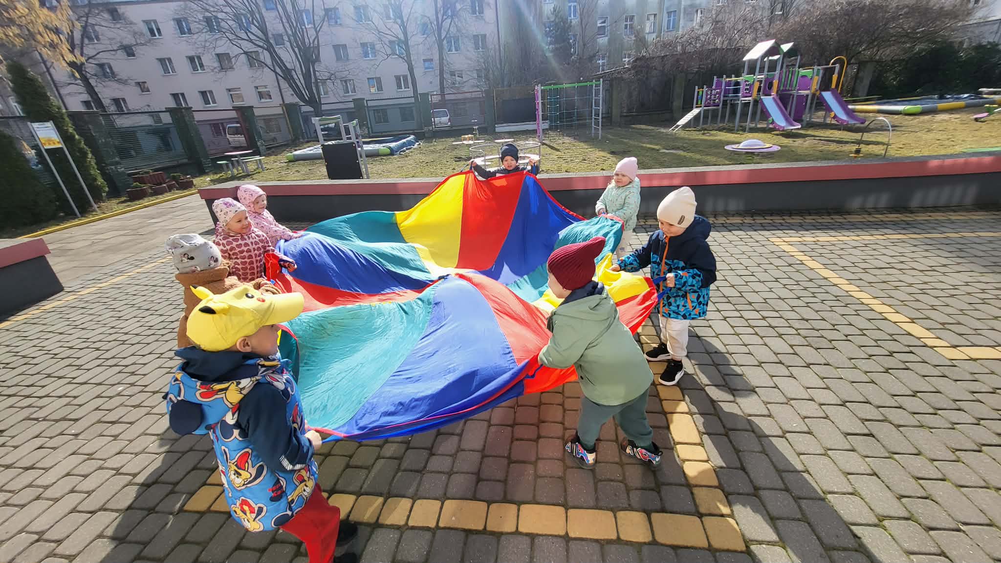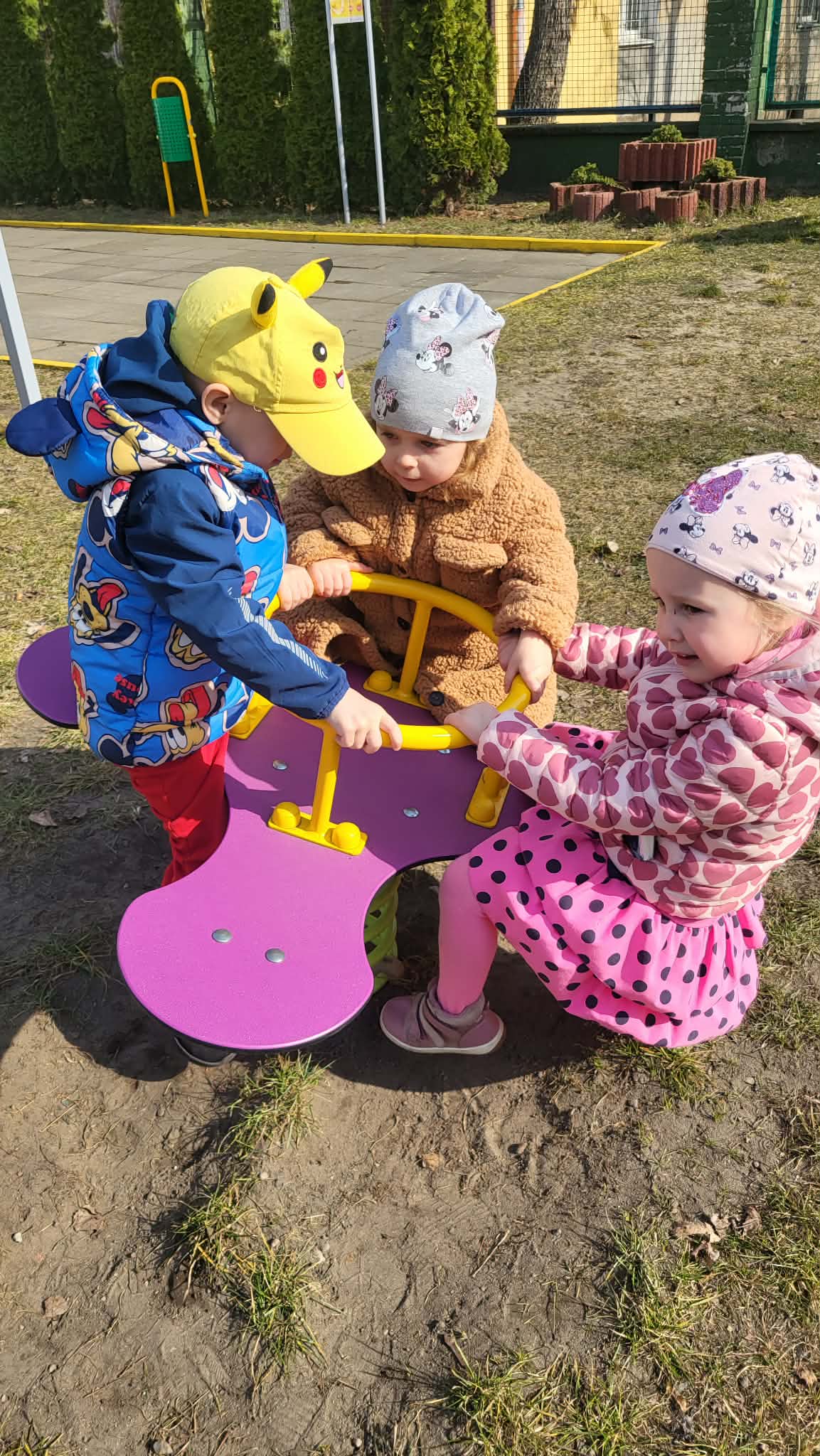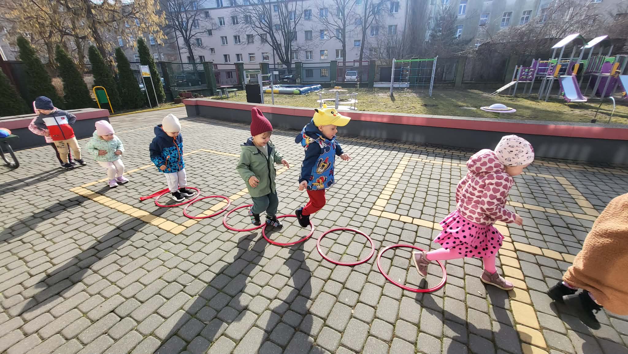 Zabawy w ogrodzie przedszkolnym mają na celu wszechstronny rozwój dziecka: fizyczny (motoryka, koordynacja), społeczny (współpraca, zasady bezpieczeństwa) oraz poznawczy (ciekawość przyrody, kreatywność). Codzienne przebywanie na świeżym powietrzu wzmacnia odporność, redukuje napięcia, rozwija wyobraźnię i uczy dzieci funkcjonowania w grupie poprzez swobodną zabawę i aktywność ruchową. Nasze Maluszki bardzo lubią zabawy na powietrzu, zwłaszcza na naszym świetnie wyposażonym placu zabaw.