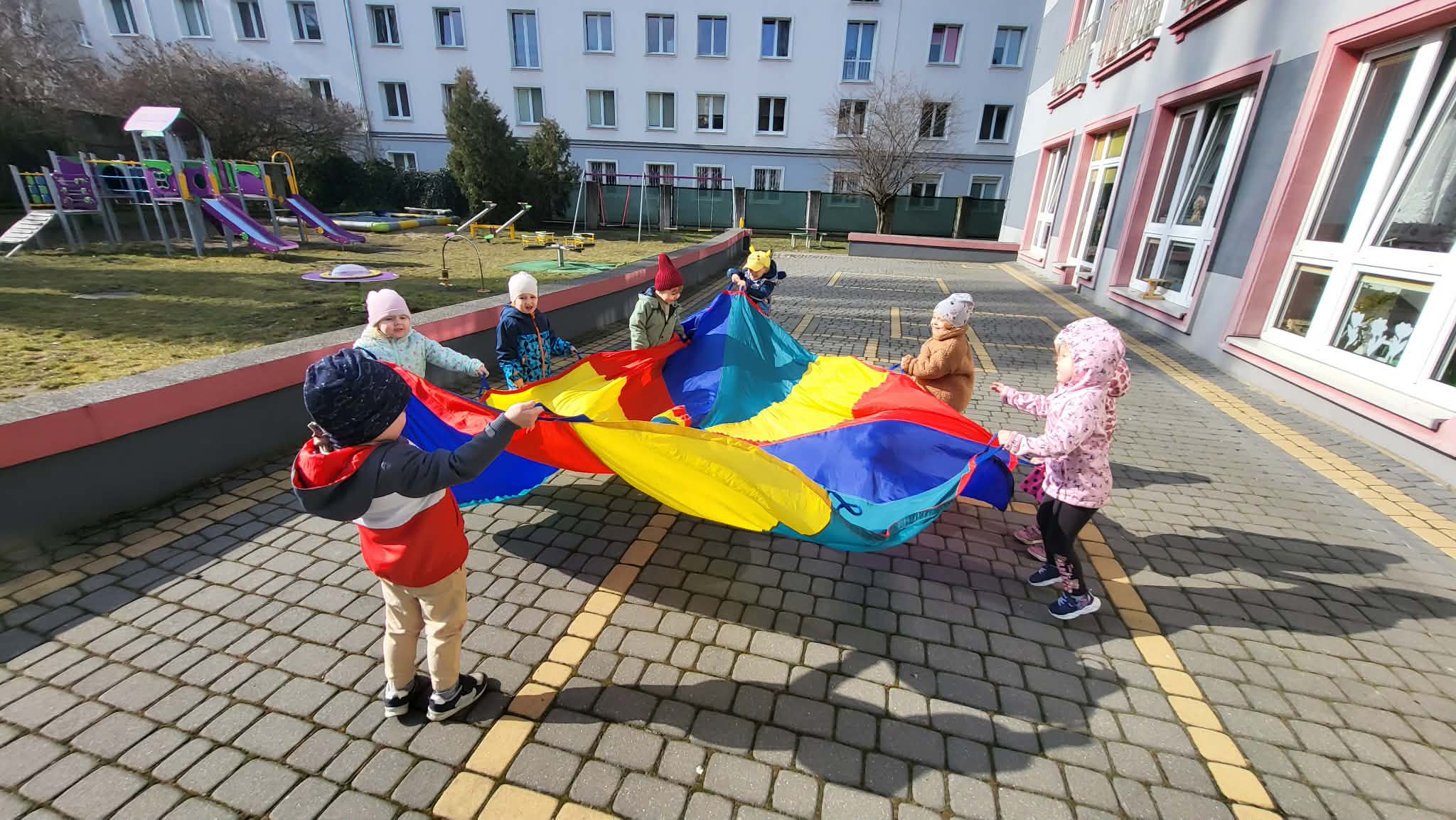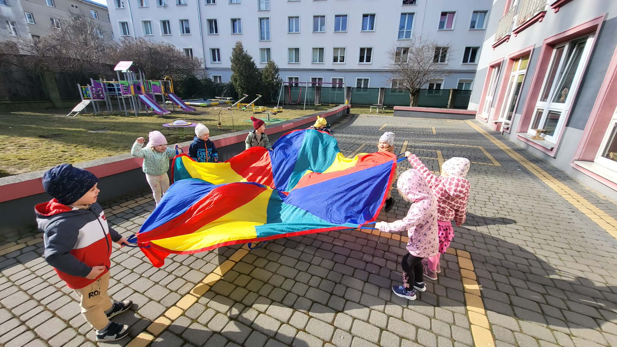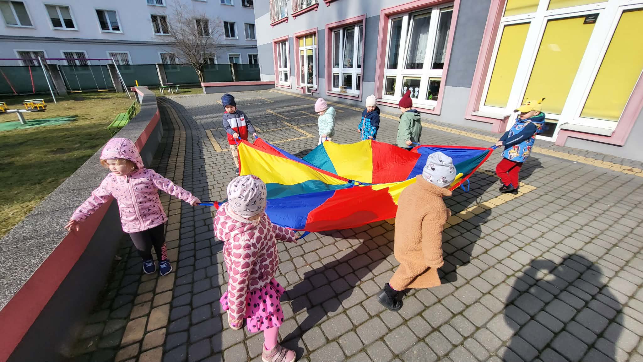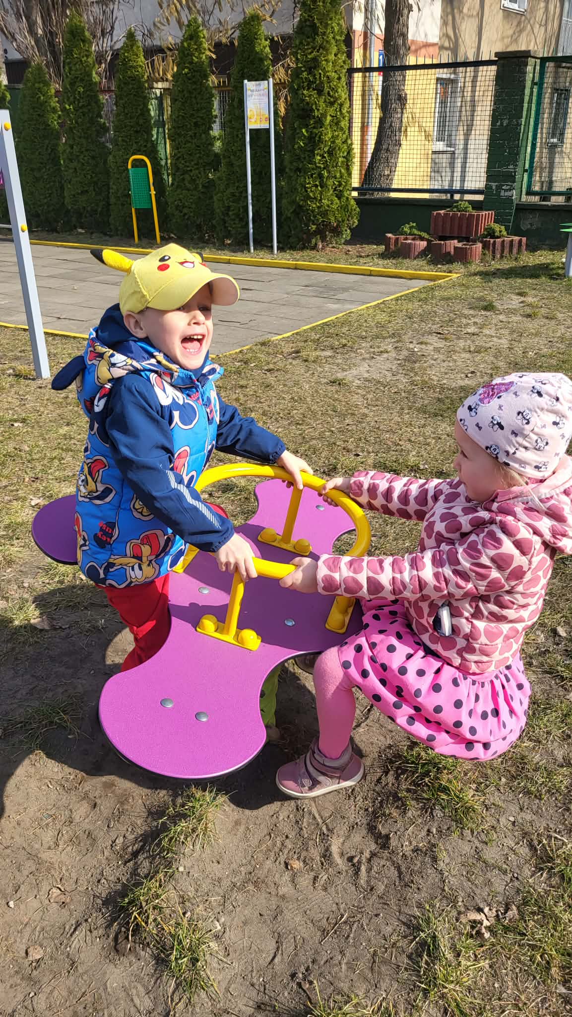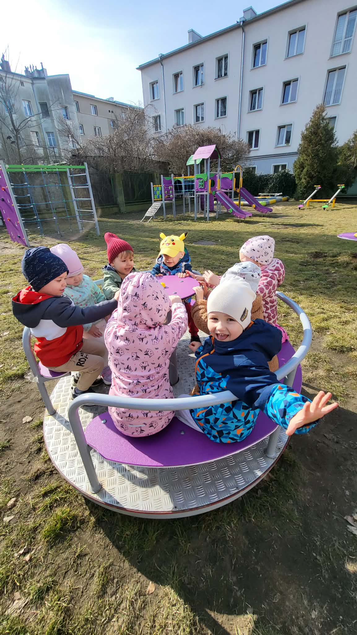 Zabawy w ogrodzie przedszkolnym mają na celu wszechstronny rozwój dziecka: fizyczny (motoryka, koordynacja), społeczny (współpraca, zasady bezpieczeństwa) oraz poznawczy (ciekawość przyrody, kreatywność). Codzienne przebywanie na świeżym powietrzu wzmacnia odporność, redukuje napięcia, rozwija wyobraźnię i uczy dzieci funkcjonowania w grupie poprzez swobodną zabawę i aktywność ruchową. Nasze Maluszki bardzo lubią zabawy na powietrzu, zwłaszcza na naszym świetnie wyposażonym placu zabaw.