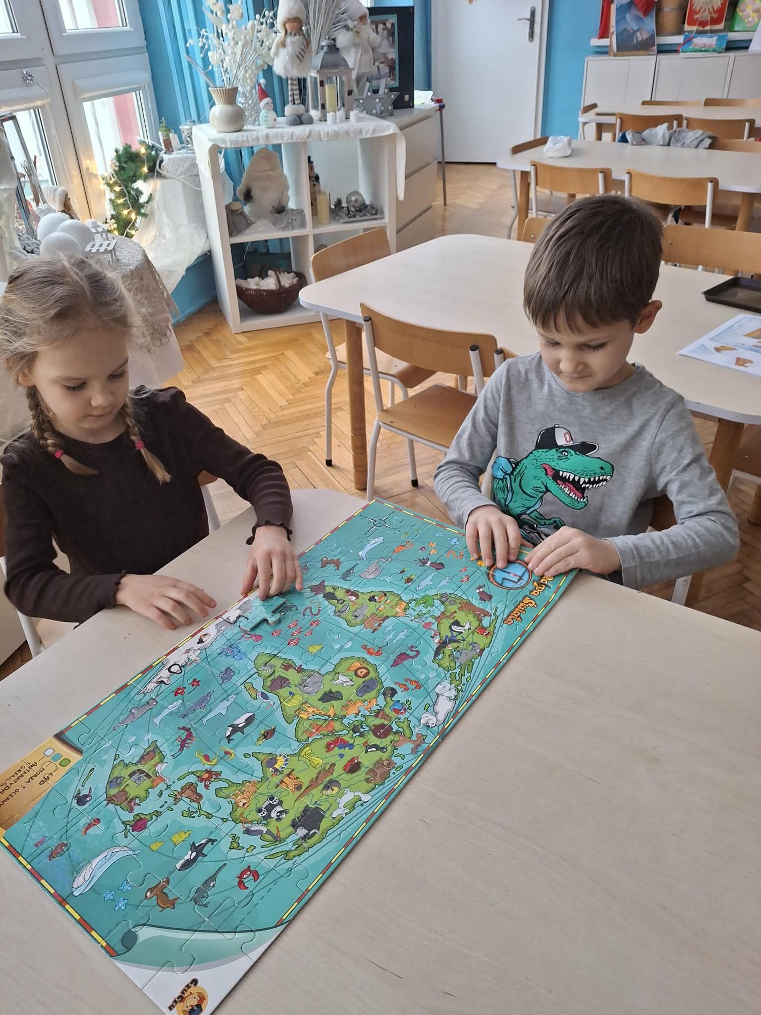 Grupa 3 dzielnie wróciła do codziennych aktywności. Już od rana w sali panowała radosna atmosfera – dzieci opowiadały o świątecznych przygodach, rodzinnych spotkaniach. Z ogromnym entuzjazmem brały udział w zabawach, zajęciach plastycznych oraz wspólnych rozmowach w kręgu. Współpraca w grupach przebiegała bardzo dobrze, a uśmiech i energia towarzyszyły przedszkolakom przez cały dzień.