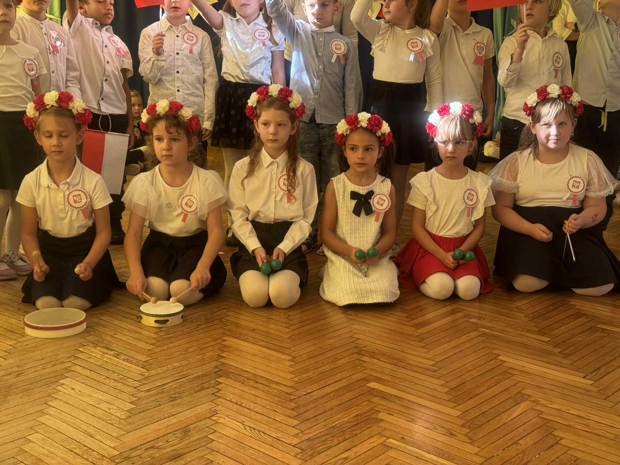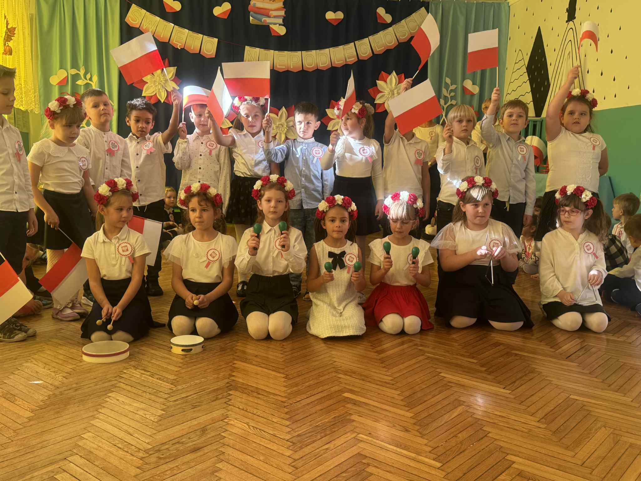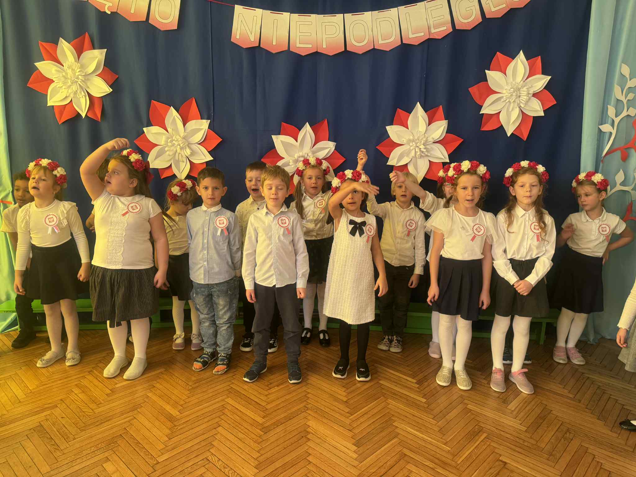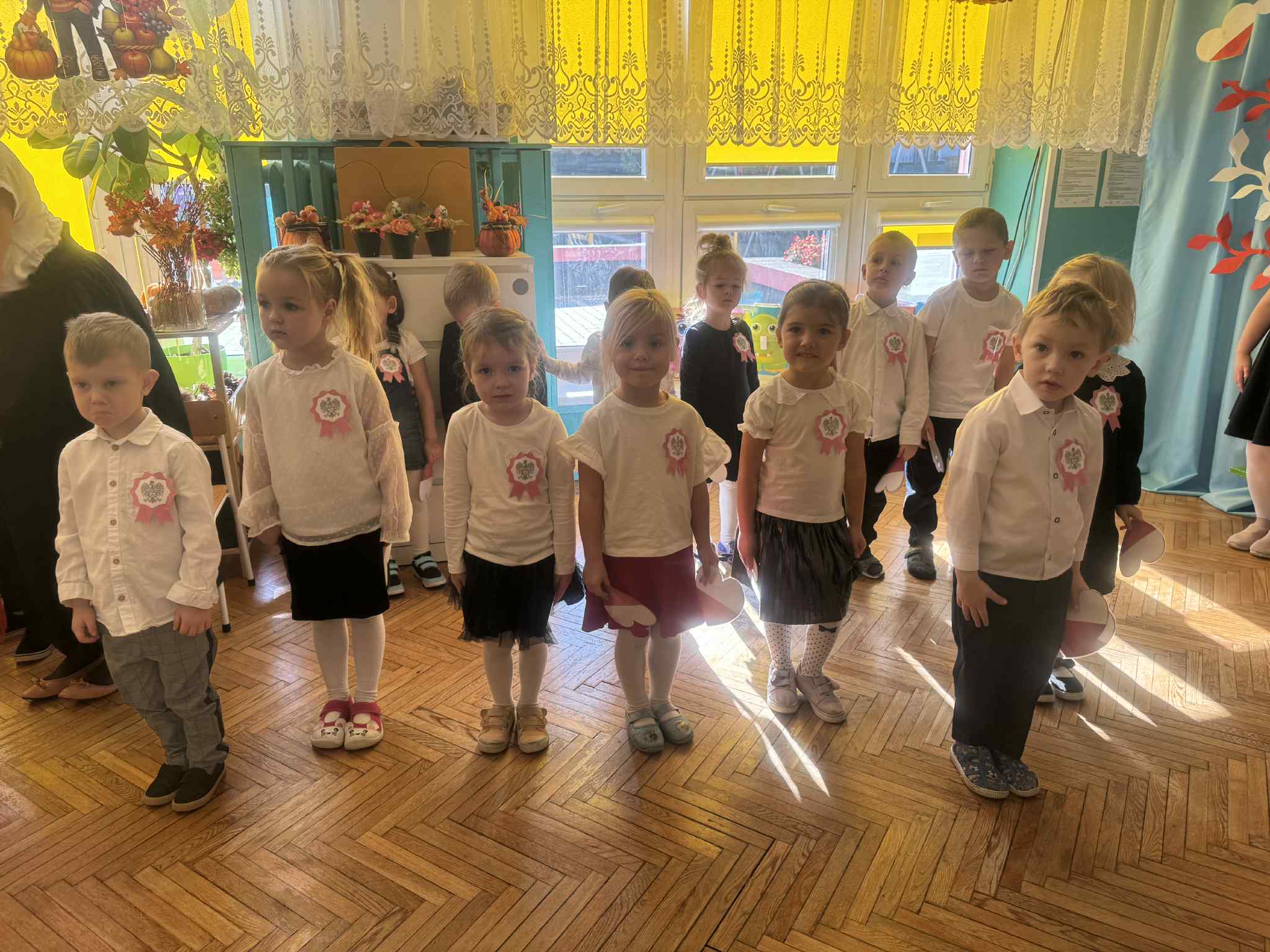 Odświętne stroje (kotyliony, wianuszki biało- czerwone), piękna kolorystyka sprawiła, że w tym dniu towarzyszyła nam niesamowita atmosfera.