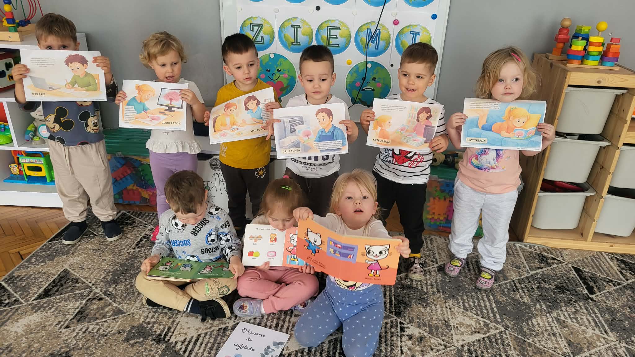 Książki towarzyszą dzieciom od najmłodszych lat. To one wprowadzają nas w świat bajek i baśni, pobudzają wyobraźnię oraz uczą. Nasze Maluszki poznały proces powstawania książki. Wykonały również prace plastyczne na ten temat, ćwicząc przy tym motorykę, chwyt trójpalcowy.