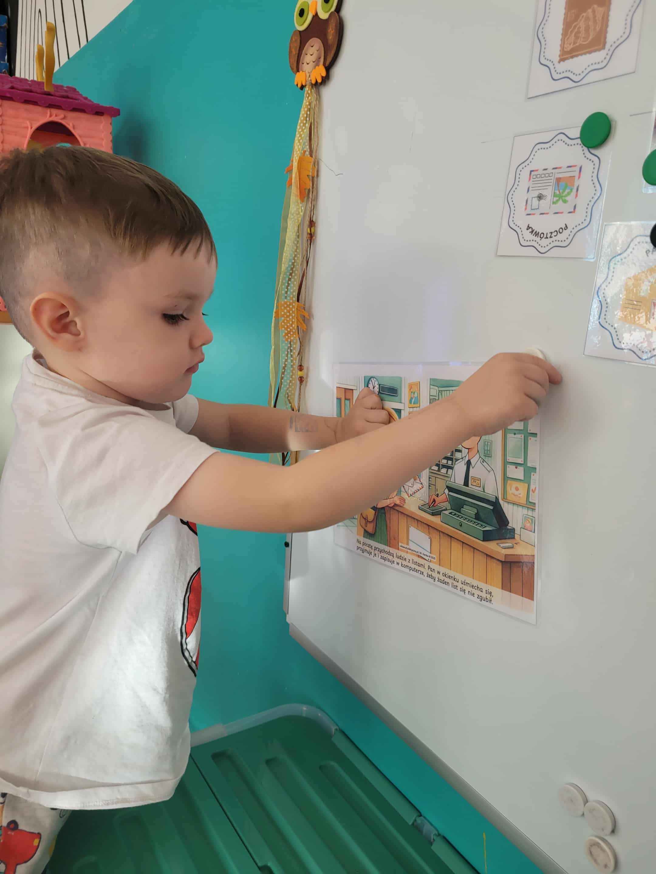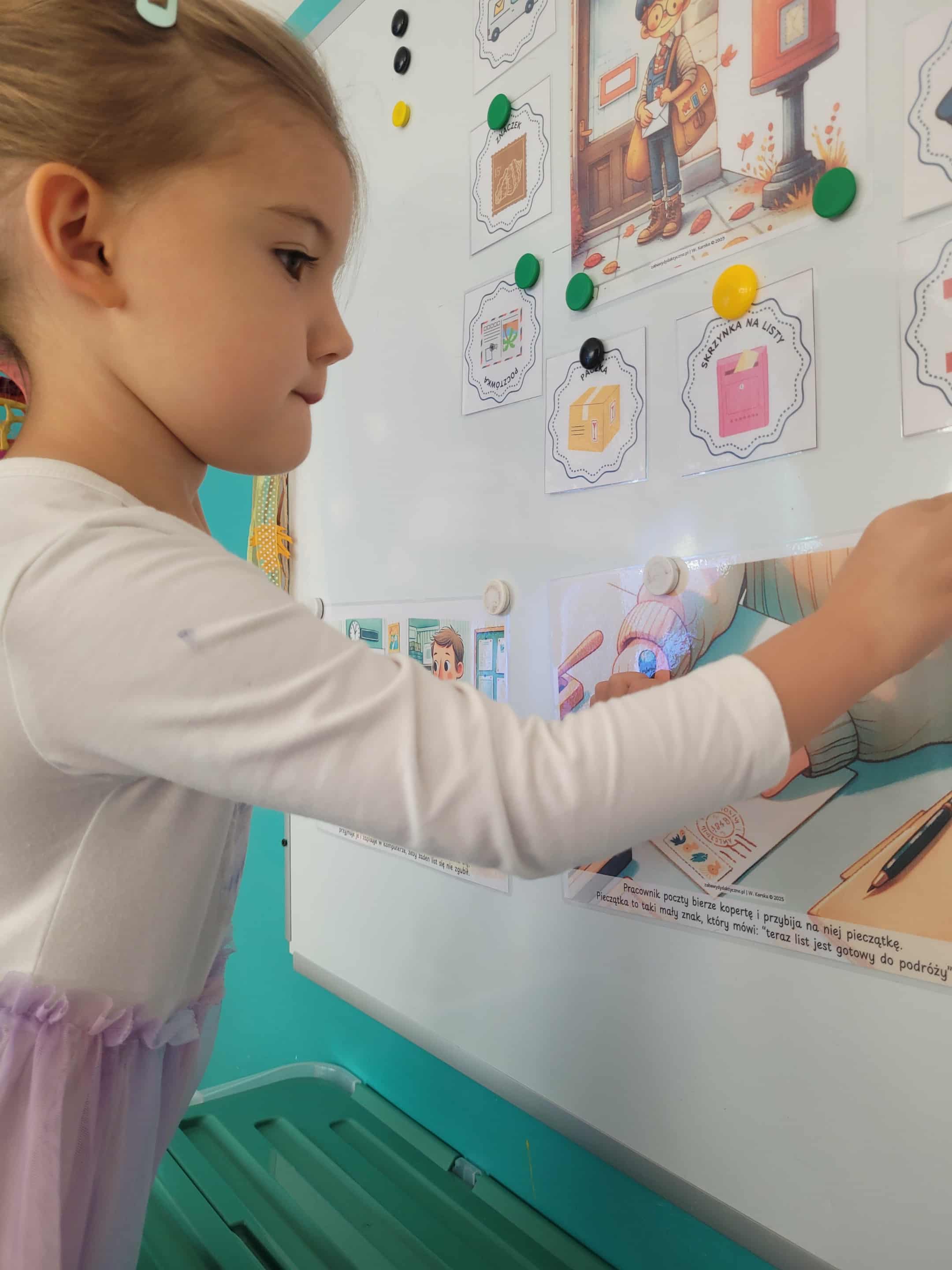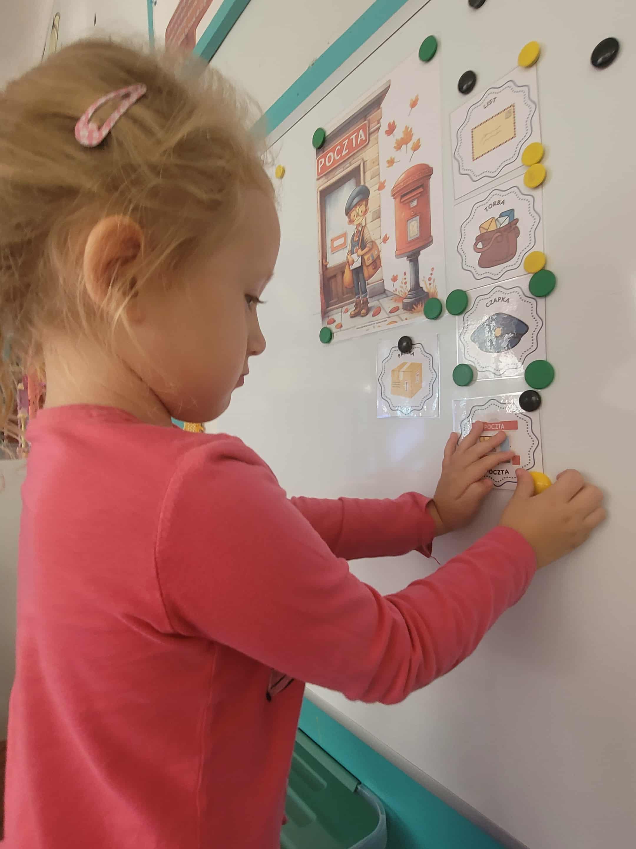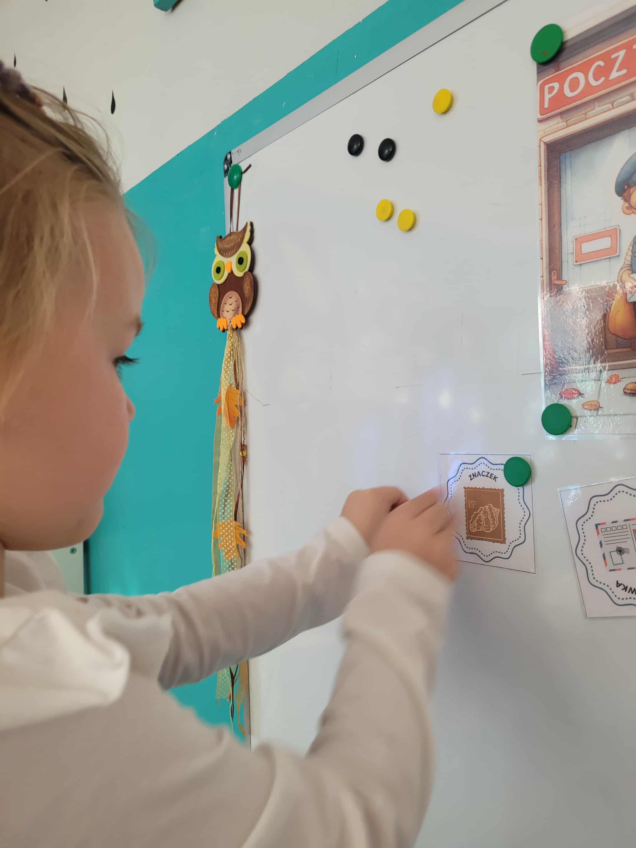 17 października obchodzimy dzień Poczty Polskiej i Listonosza. Dzieci dowiedziały się czym zajmuje się pan listonosz, jak jest ubrany, gdzie pracuje i jakie są jego atrybuty. Na podstawie hisotryjki obrazkowej wiedzą czym jest Urząd Pocztowy i co można w nim zrobić i kupić. Dzieci starały sie połączyć ze soba kropki w celu odszyfrowania obrazka. Jak zawsze wszystkie nasze katywności przeplatają się z zabawami muzyczno-ruchowymi.
