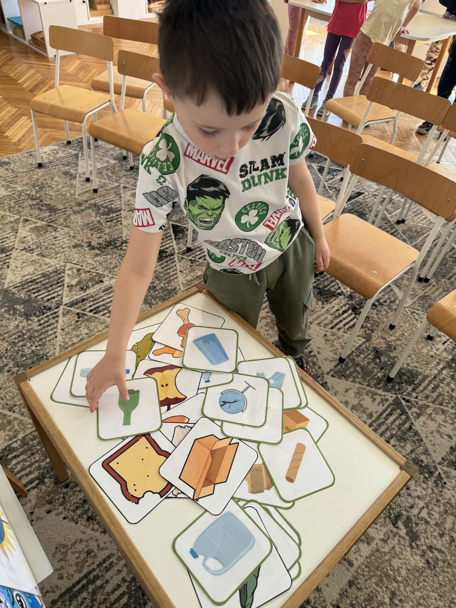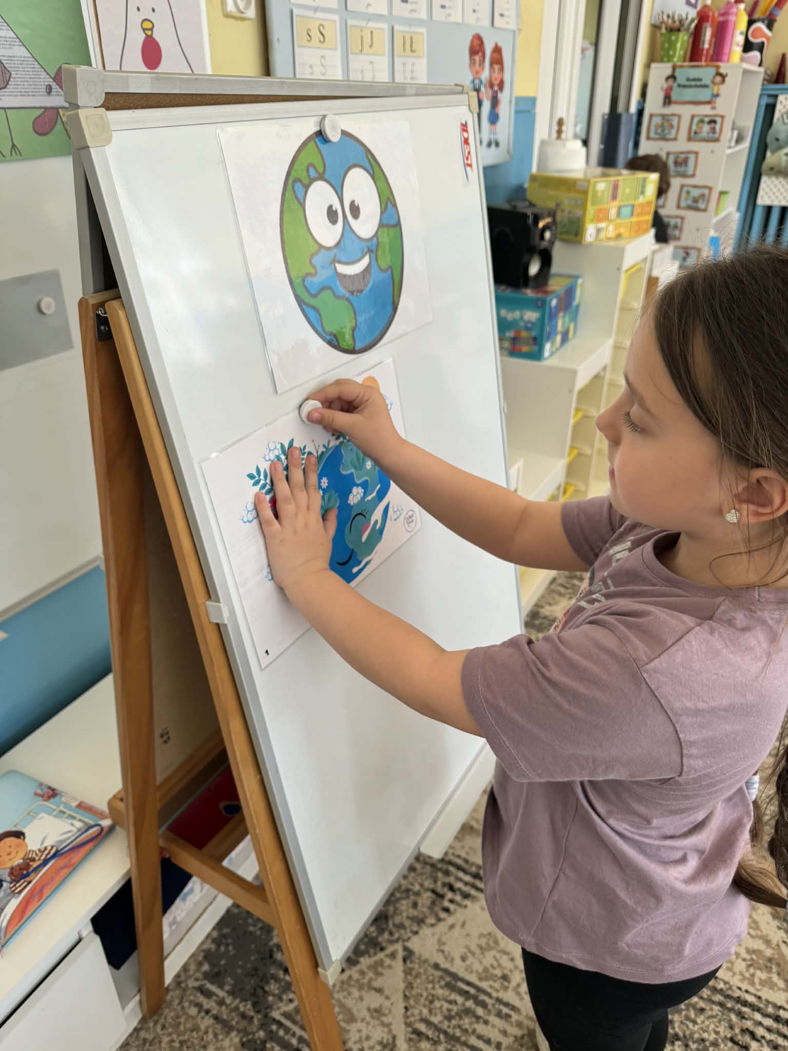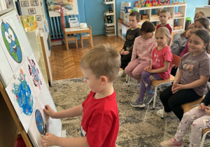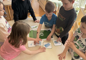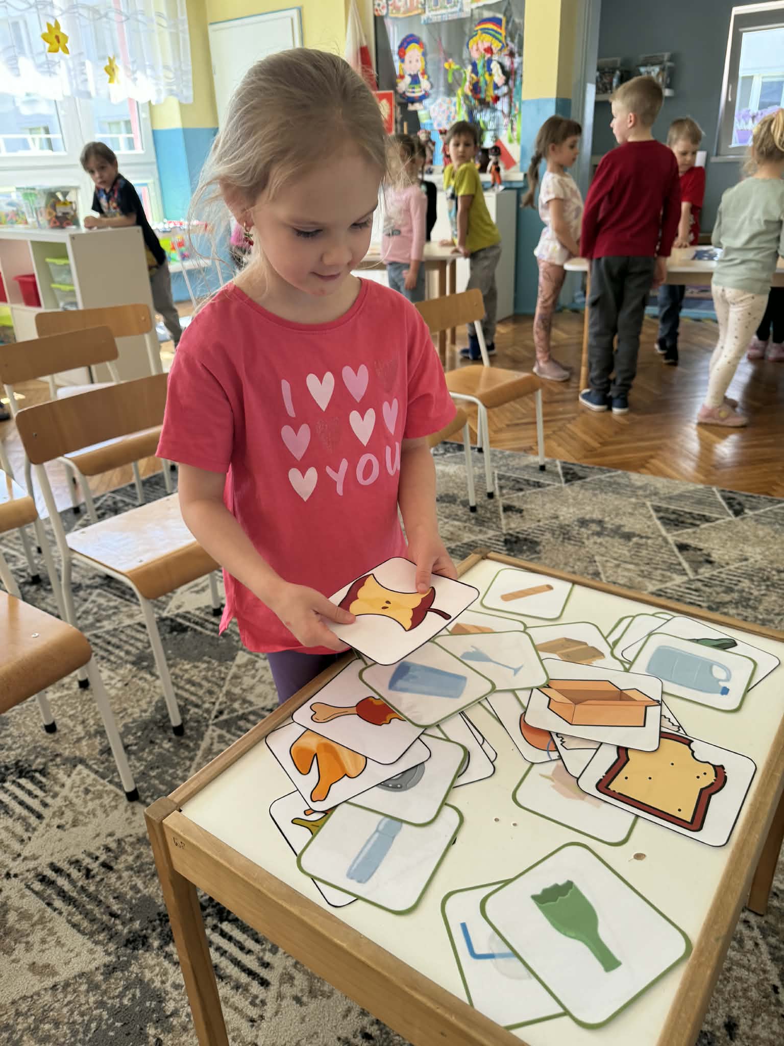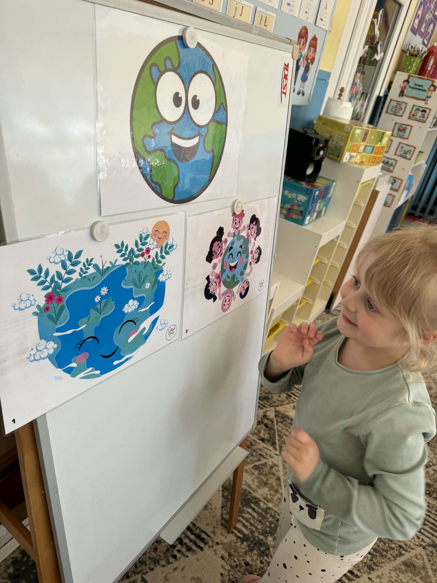 Dzieci rozpoczęły zajęcia od wysłuchania historyjki obrazkowej dotyczącej naszej planety. Następnie układały ilustracje w odpowiedniej kolejności, tworząc spójną opowieść o Ziemi i ucząc się, jak należy o nią dbać. Kolejnym etapem była zabawa edukacyjna związana z ekologią. Przedszkolaki segregowały obrazki odpadów, dopasowując je do właściwych koszy. Dzięki temu utrwalały wiedzę na temat recyklingu i zasad prawidłowej segregacji śmieci. Na zakończenie, korzystając z pięknej, słonecznej pogody, dzieci spędziły czas na świeżym powietrzu, bawiąc się w ogrodzie przedszkolnym. Radosna zabawa była doskonałym podsumowaniem dnia pełnego nauki i nowych doświadczeń.