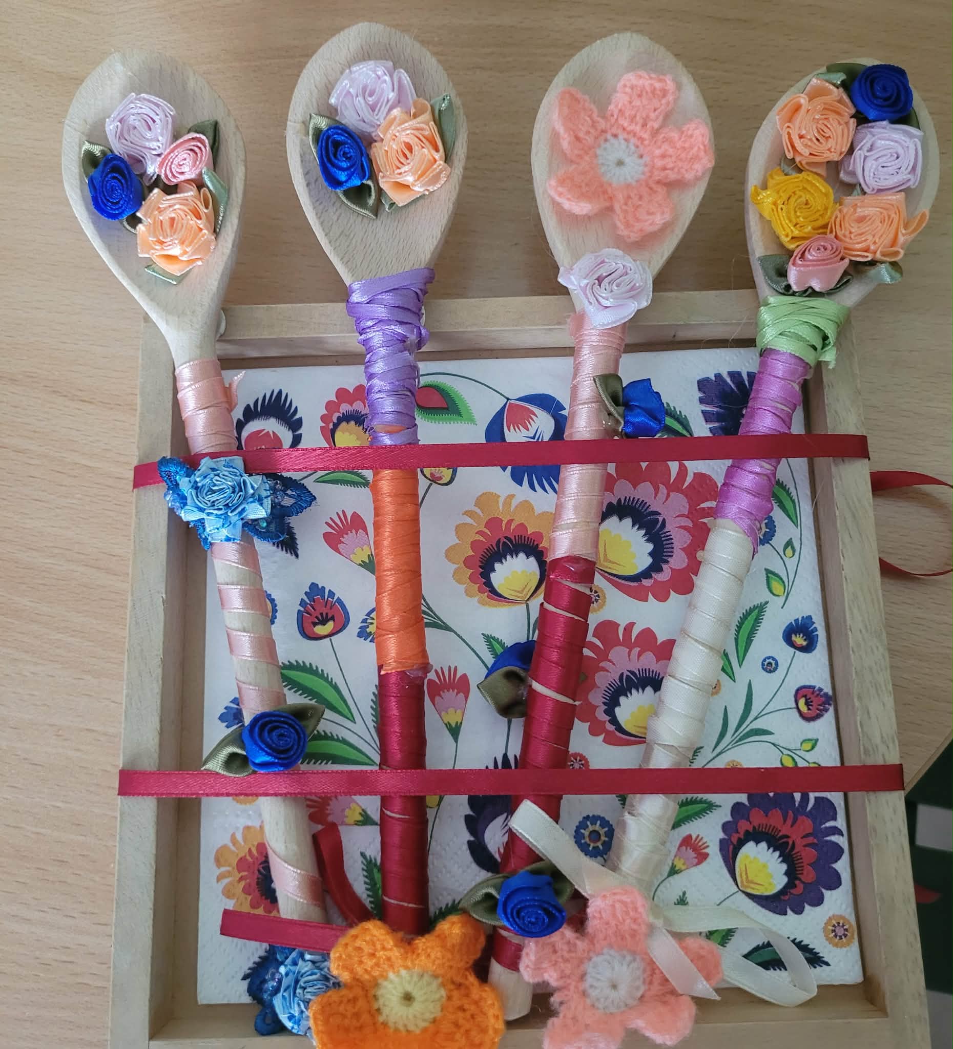W przedszkolu realizowany jest projekt edukacyjno-artystyczny pt. „Polska Sztuka Ludowa-Mali artyści tradycji”, którego celem jest przybliżenie dzieciom kultury ludowej oraz rozwijanie ich kreatywności poprzez działania plastyczne. W trakcie zajęć dzieci poznają elementy sztuki ludowej oraz tradycyjnego rzemiosła, inspirując się wzorami charakterystycznymi dla polskiego folkloru. W ramach projektu przedszkolaki wykonywały różnorodne prace: * tworzyły mandale inspirowane motywami ludowymi, * przygotowywały ozdoby wielkanocne – zajączki metodą decoupage. * ozdabiały drewniane łyżki przy użyciu kolorowych wstążek i kwiatów. Działania te pozwoliły dzieciom rozwijać zdolności manualne, wyobraźnię oraz poczucie estetyki, a także zachęcały do eksperymentowania z różnymi technikami plastycznymi.
