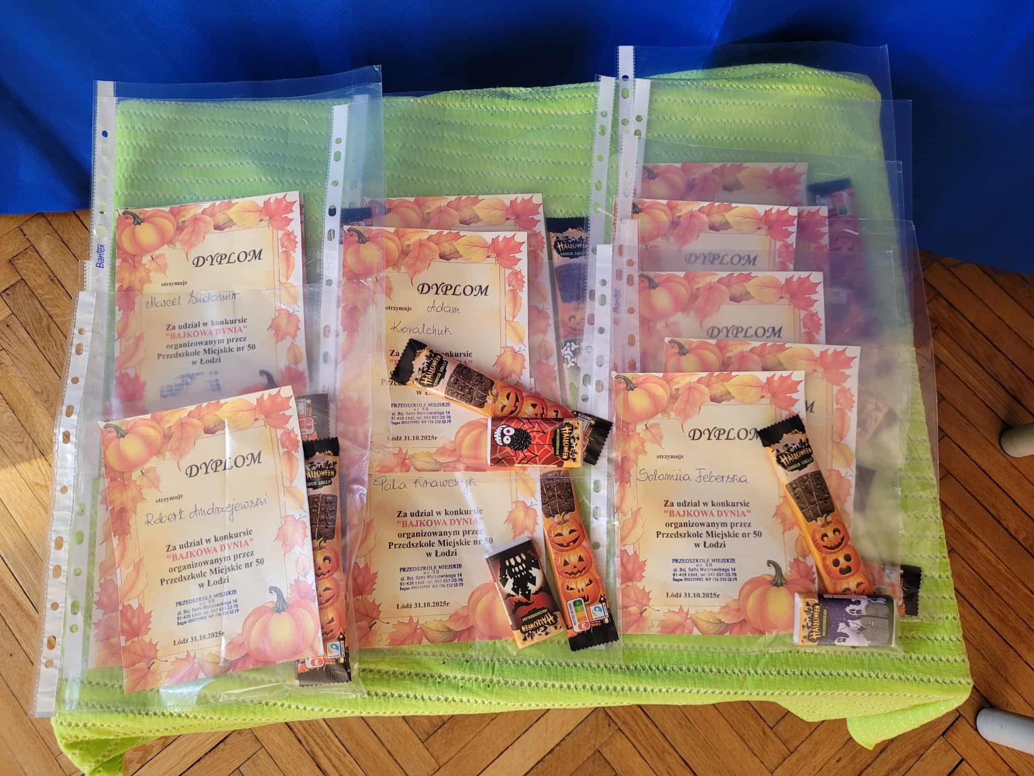 Podczas zorganizowanego balu jesieni nastąpiło rozstrzygnięcie przedszkolnego konkursu 'Bajkowa dynia". Napłynęło ponad 20 prac. Wszystkie były wyjątkowe i niepowtarzalne. Jury postanowiło przyznać wszystkim pierwsze miejsce. Nagrodzone dzieci dostały dyplomy oraz coś słodkiego.