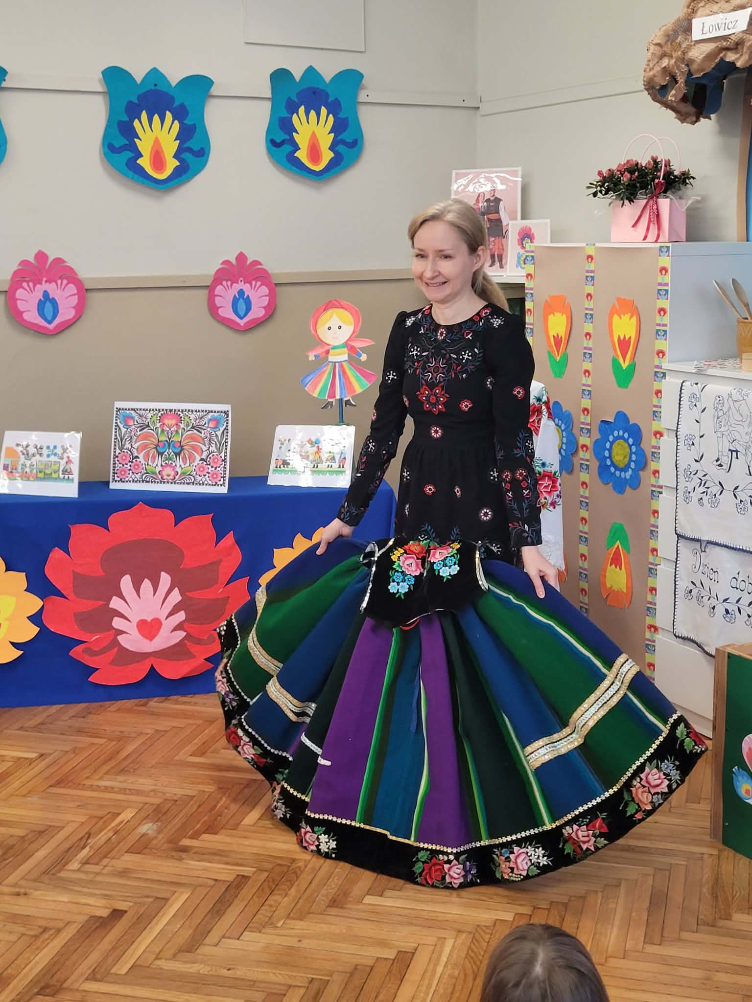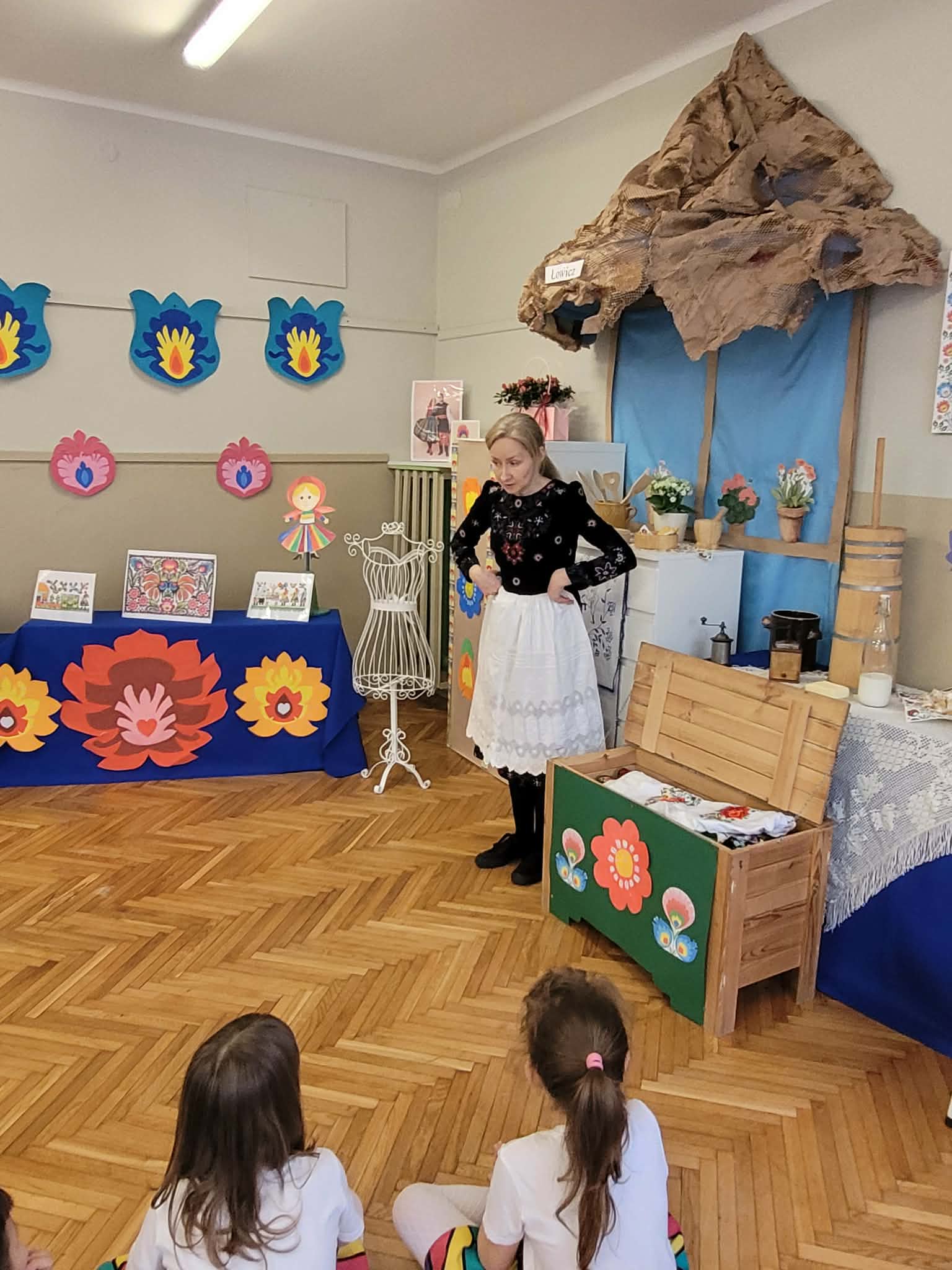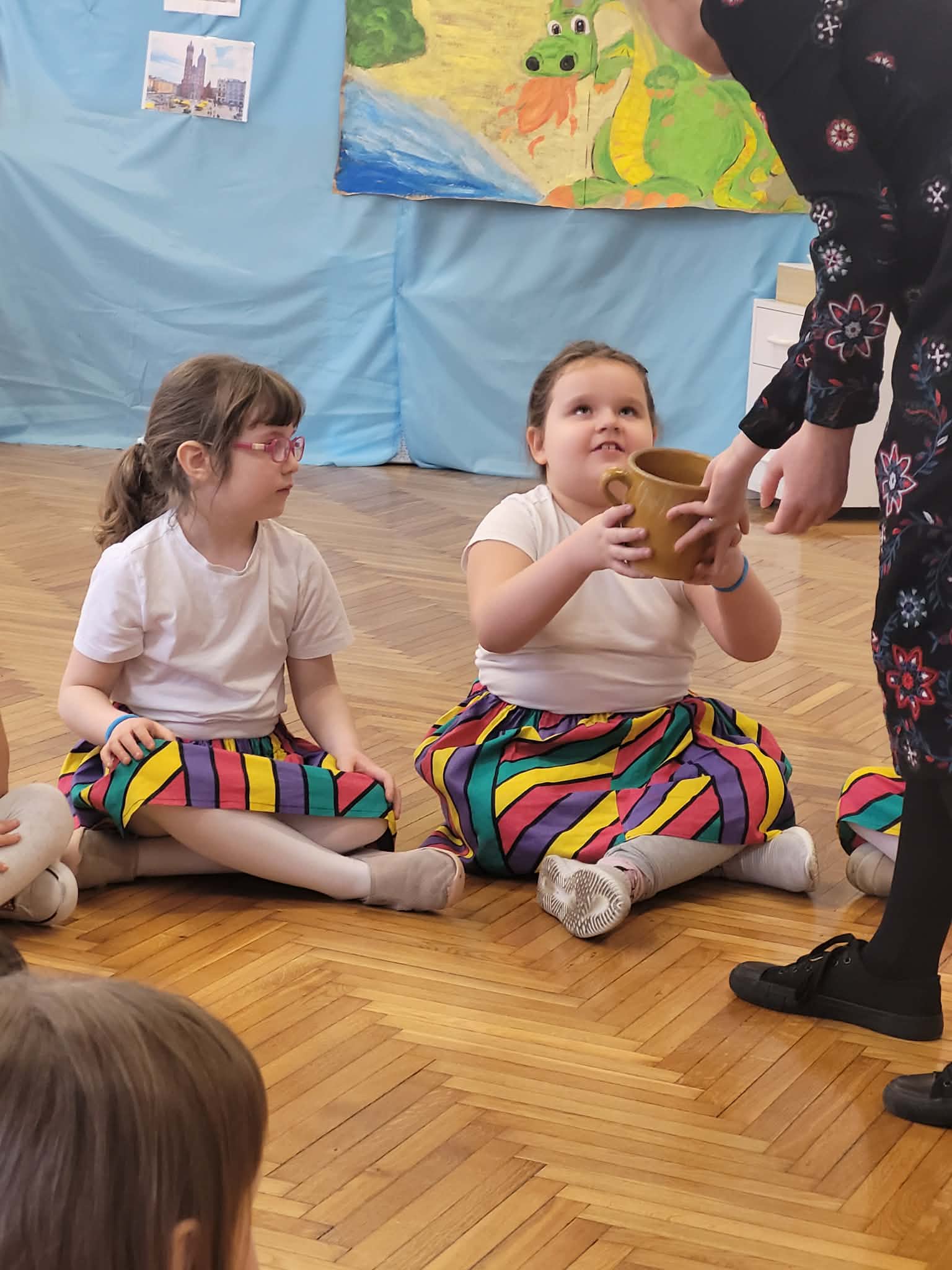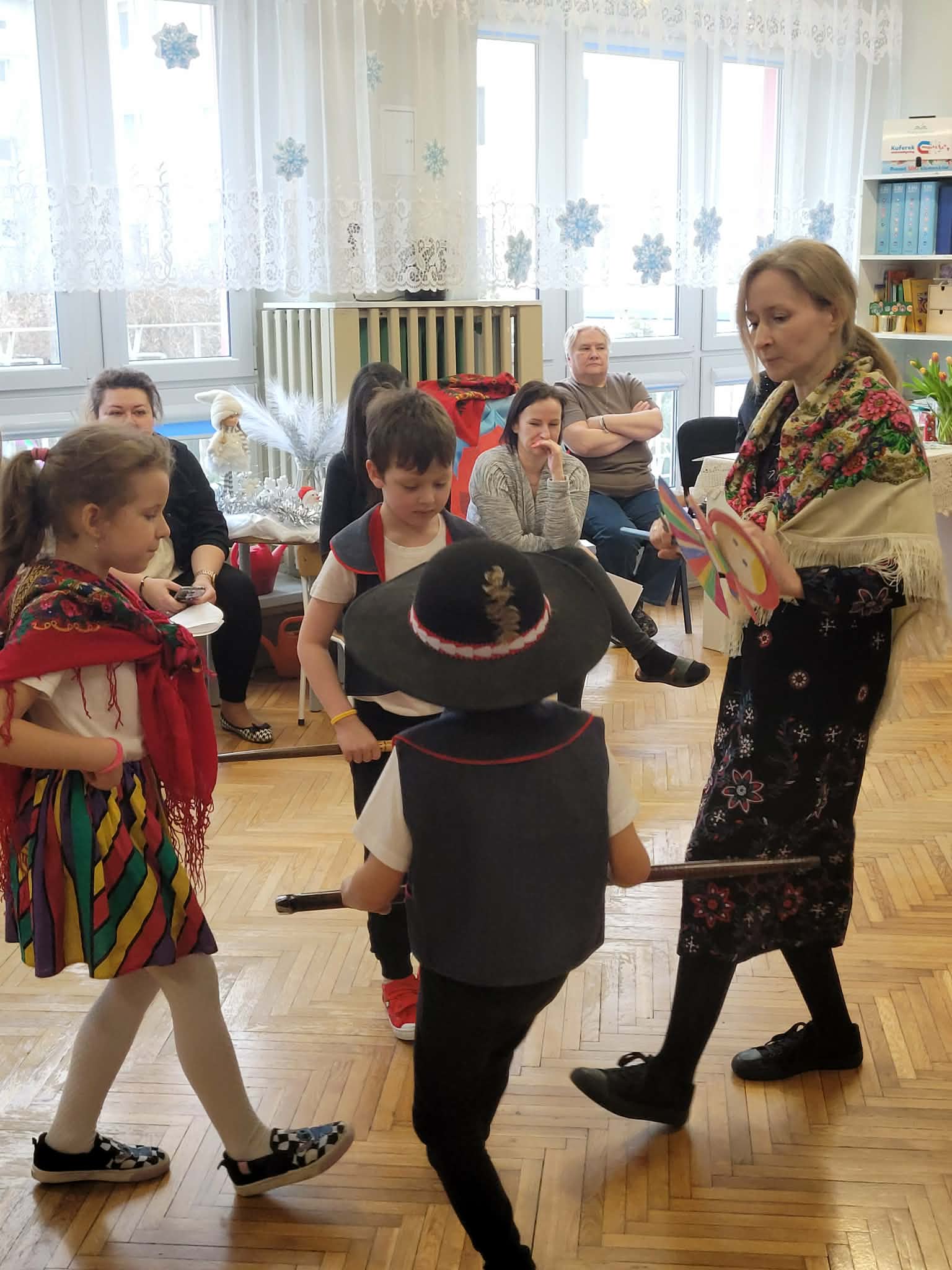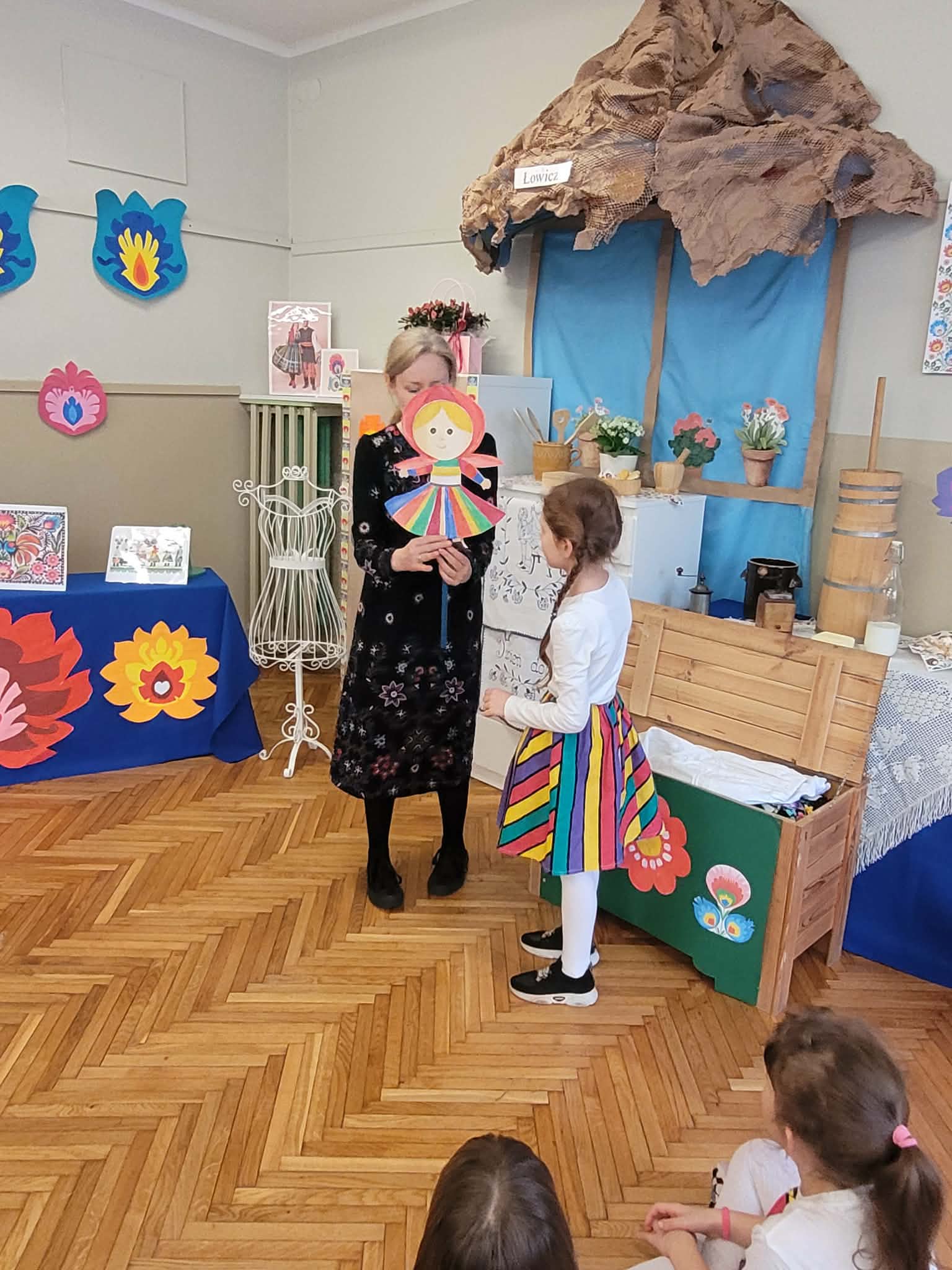 Dzieci z grupy 4 wybrały się na wycieczkę z Pyzą. Zwiedziły region łowicki, gdzie oglądały stara wiejską chatę, przybory drewniane i gliniane dzbany oraz prawdziwy strój łowiczanki. W Krakowie zatańczyły z Lajkonikiem krakowiaka a wgórach zbójnickiego. Dzieci wiedzą jak wyglądają stroje ludowe z tych regionów oraz mogły spróbowac wyrobów takich jak oscypek. Na zakończenie ułożyły i opwiedziały hisoryjkę obrazkową o przygodach Pyzy. W zajęciu modelowym prowadzonym przez panią Dominikę wzięły udział dwie rady pedagogiczne PM 50 oraz Mały Domek. Dziękujemy pani oraz dzieciom za zaproszenie. Było pięknie.