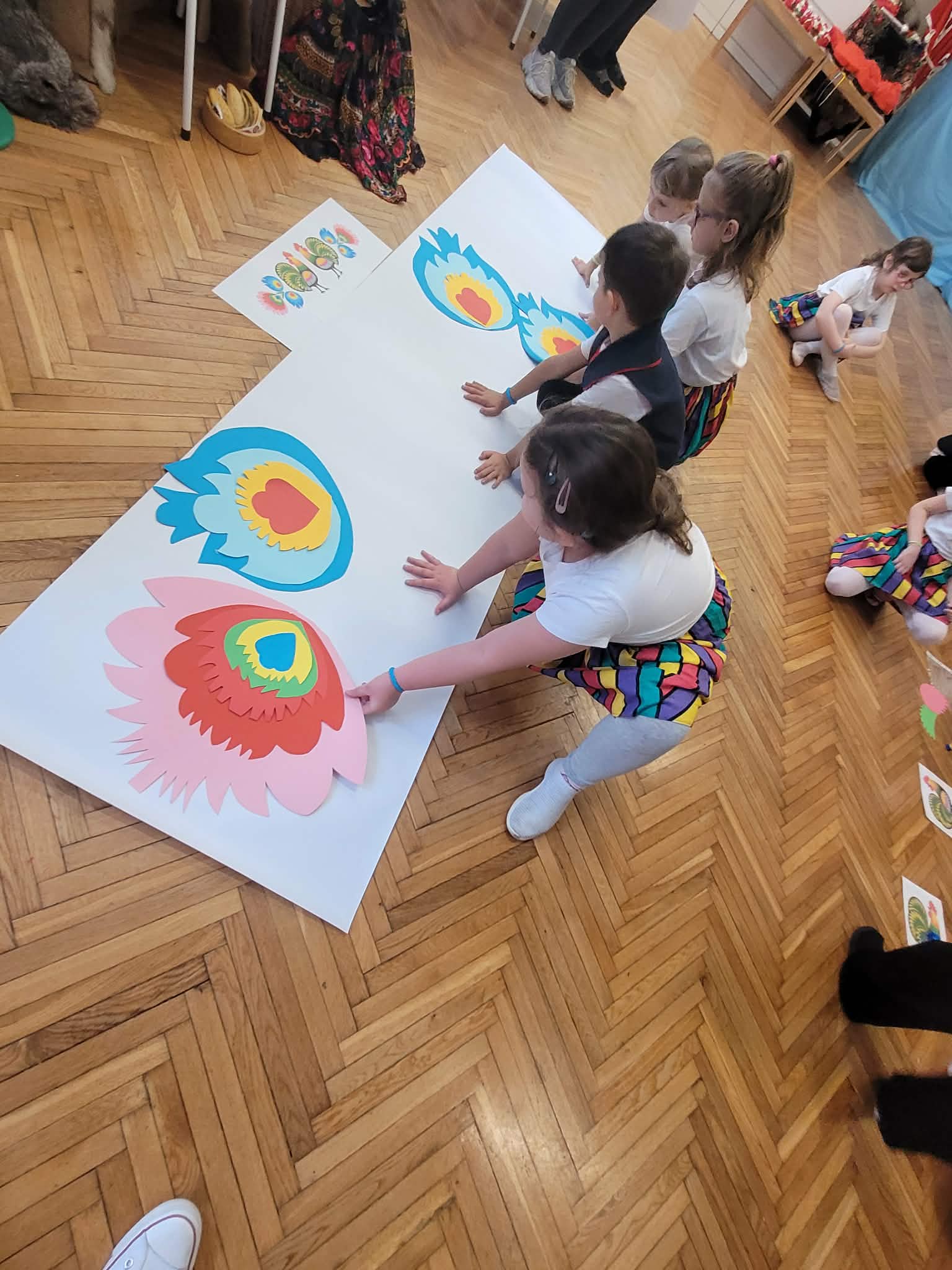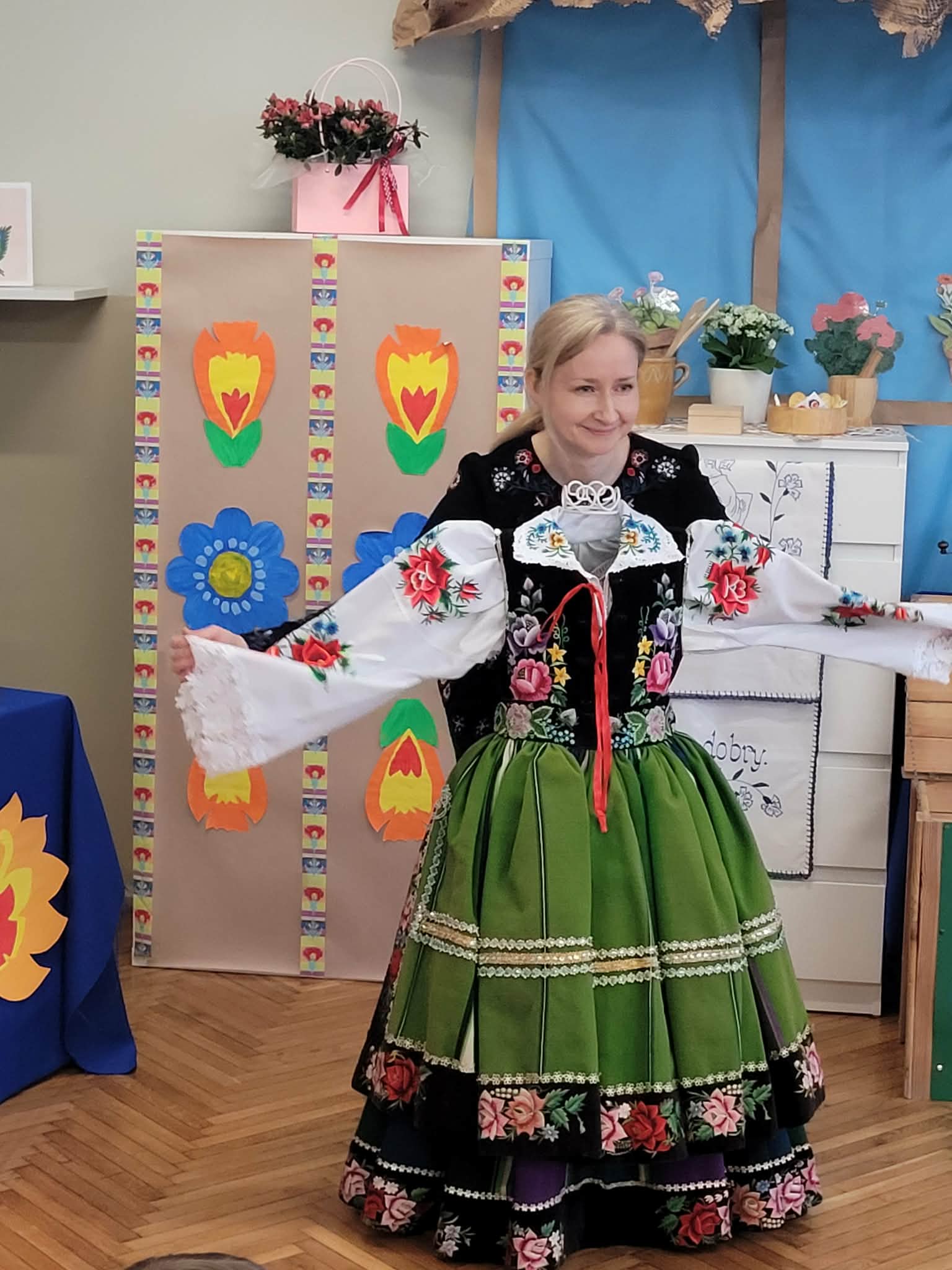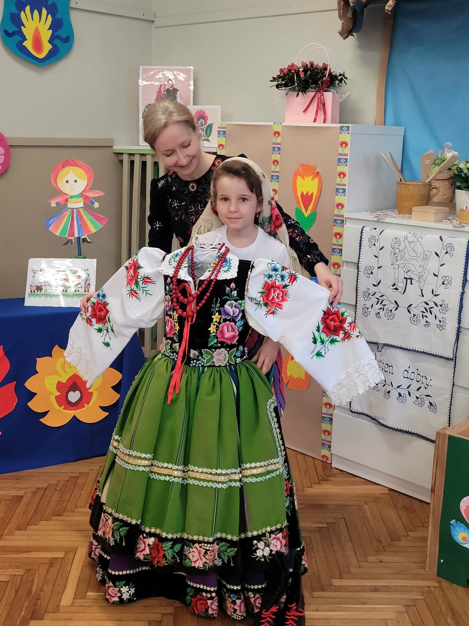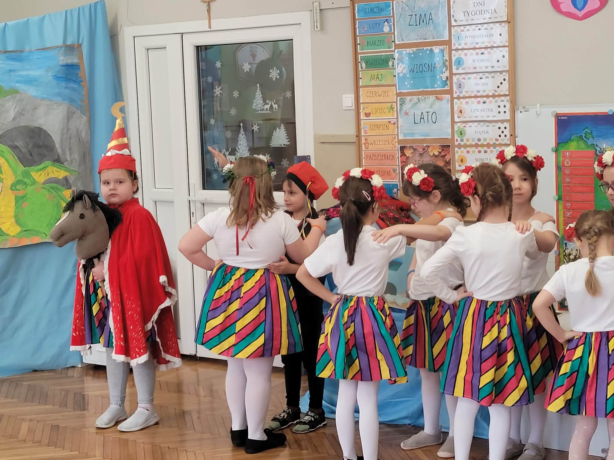 Dzieci z grupy 4 wybrały się na wycieczkę z Pyzą. Zwiedziły region łowicki, gdzie oglądały stara wiejską chatę, przybory drewniane i gliniane dzbany oraz prawdziwy strój łowiczanki. W Krakowie zatańczyły z Lajkonikiem krakowiaka a wgórach zbójnickiego. Dzieci wiedzą jak wyglądają stroje ludowe z tych regionów oraz mogły spróbowac wyrobów takich jak oscypek. Na zakończenie ułożyły i opwiedziały hisoryjkę obrazkową o przygodach Pyzy. W zajęciu modelowym prowadzonym przez panią Dominikę wzięły udział dwie rady pedagogiczne PM 50 oraz Mały Domek. Dziękujemy pani oraz dzieciom za zaproszenie. Było pięknie.