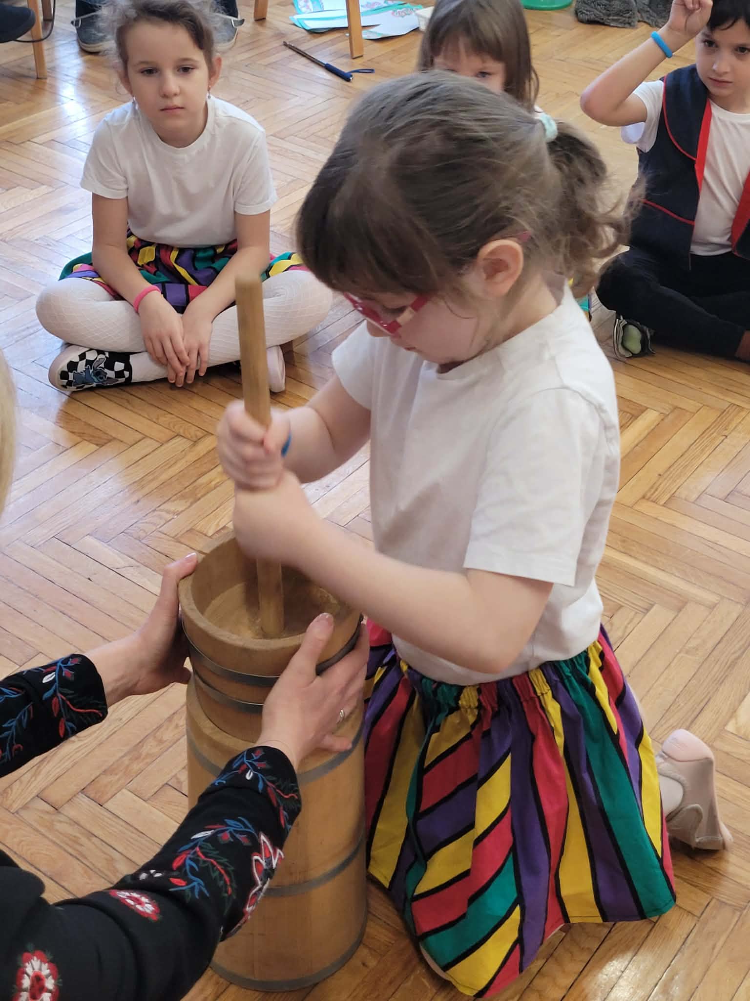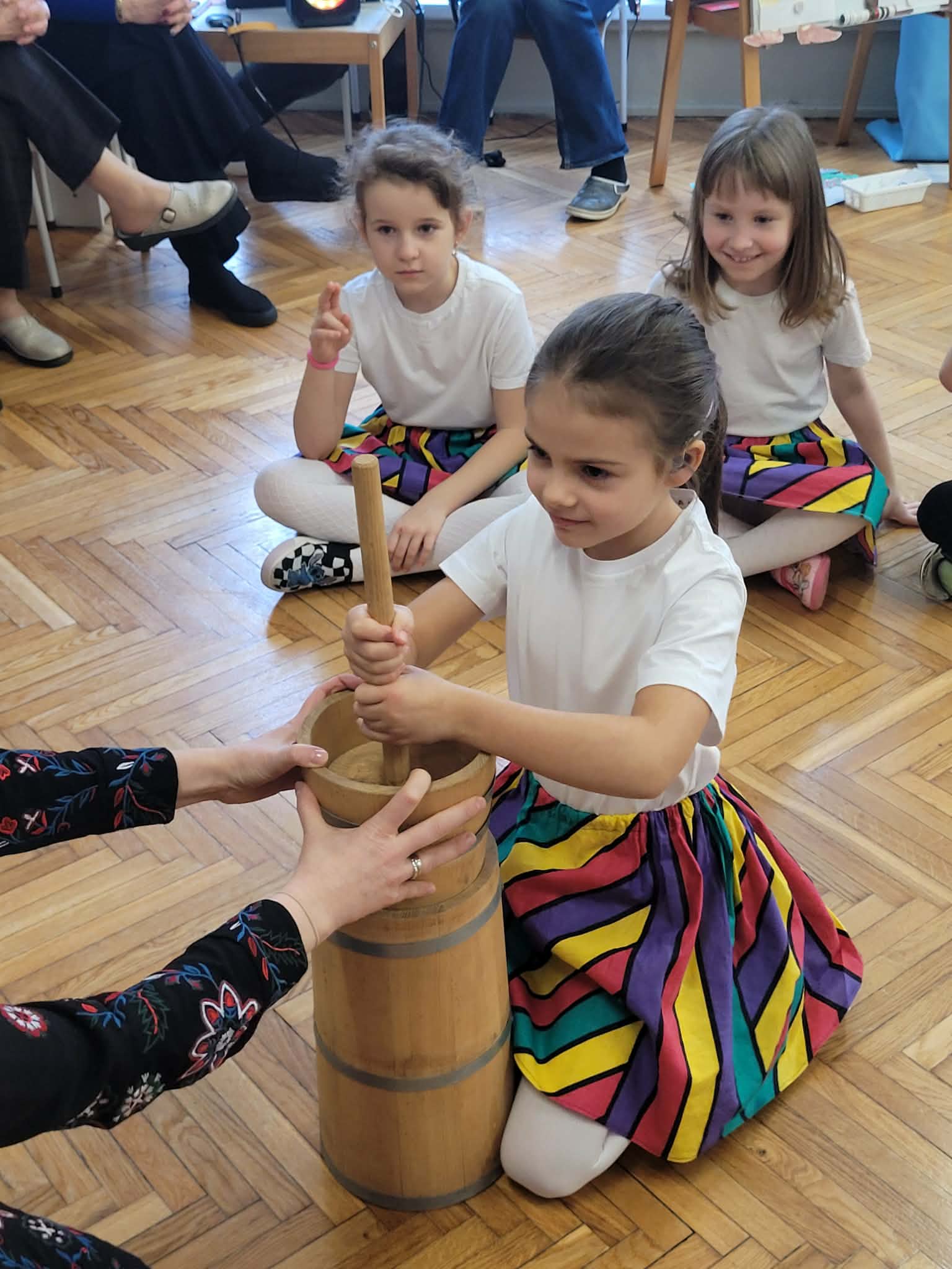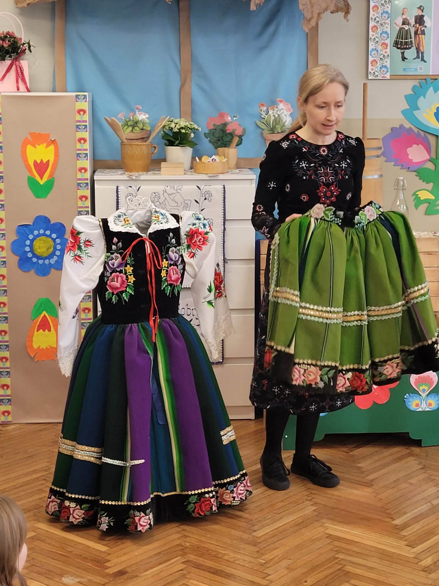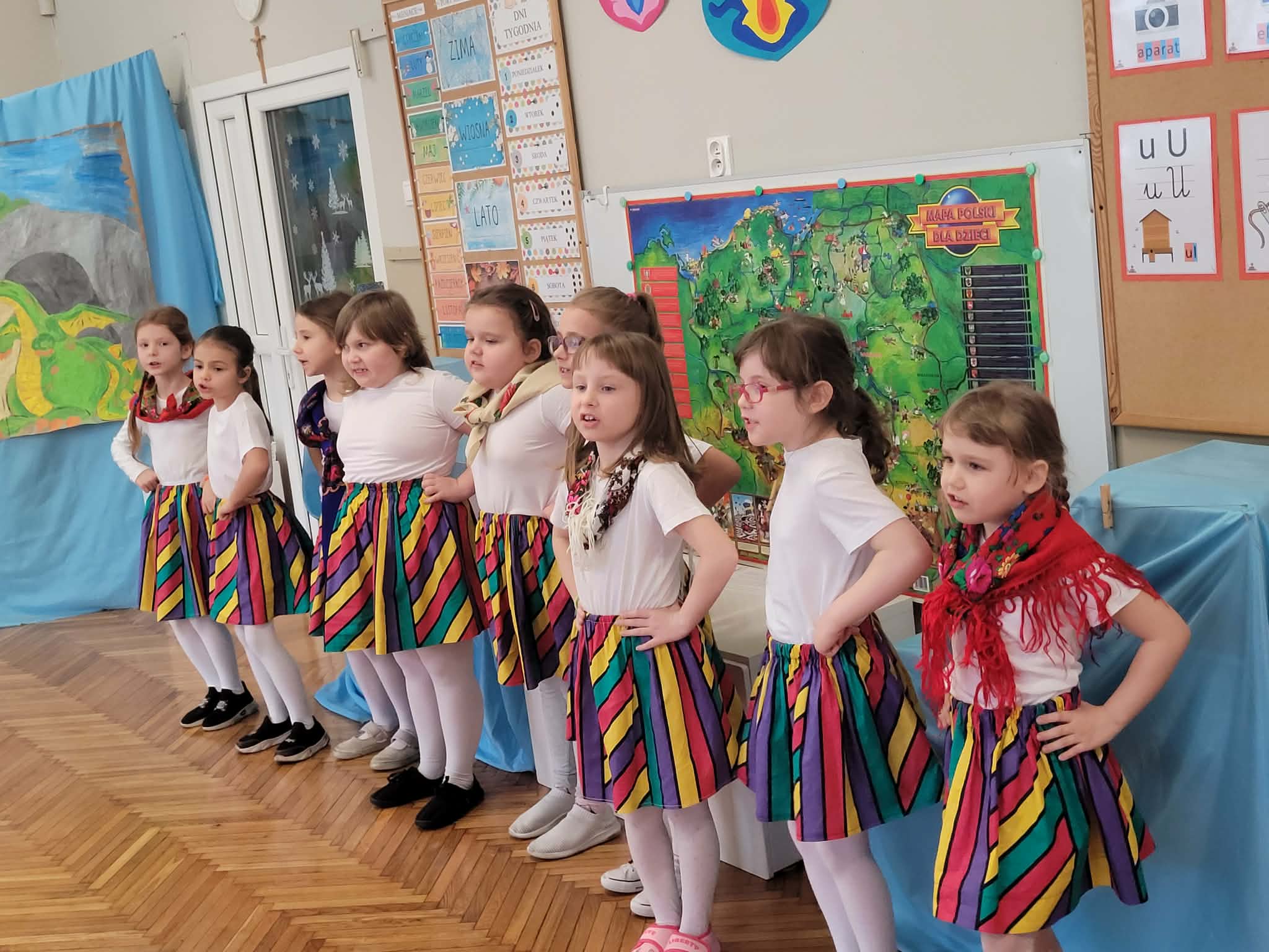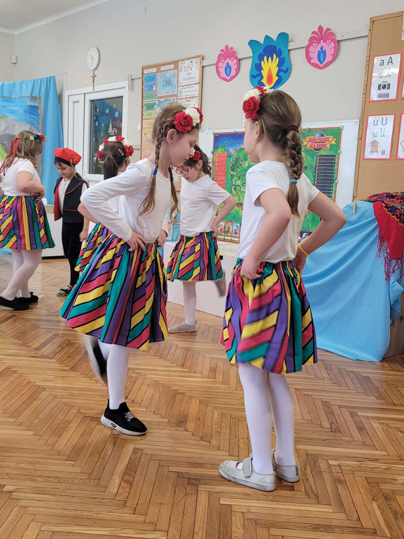Dzieci z grupy 4 wybrały się na wycieczkę z Pyzą. Zwiedziły region łowicki, gdzie oglądały stara wiejską chatę, przybory drewniane i gliniane dzbany oraz prawdziwy strój łowiczanki. W Krakowie zatańczyły z Lajkonikiem krakowiaka a wgórach zbójnickiego. Dzieci wiedzą jak wyglądają stroje ludowe z tych regionów oraz mogły spróbowac wyrobów takich jak oscypek. Na zakończenie ułożyły i opwiedziały hisoryjkę obrazkową o przygodach Pyzy. W zajęciu modelowym prowadzonym przez panią Dominikę wzięły udział dwie rady pedagogiczne PM 50 oraz Mały Domek. Dziękujemy pani oraz dzieciom za zaproszenie. Było pięknie.