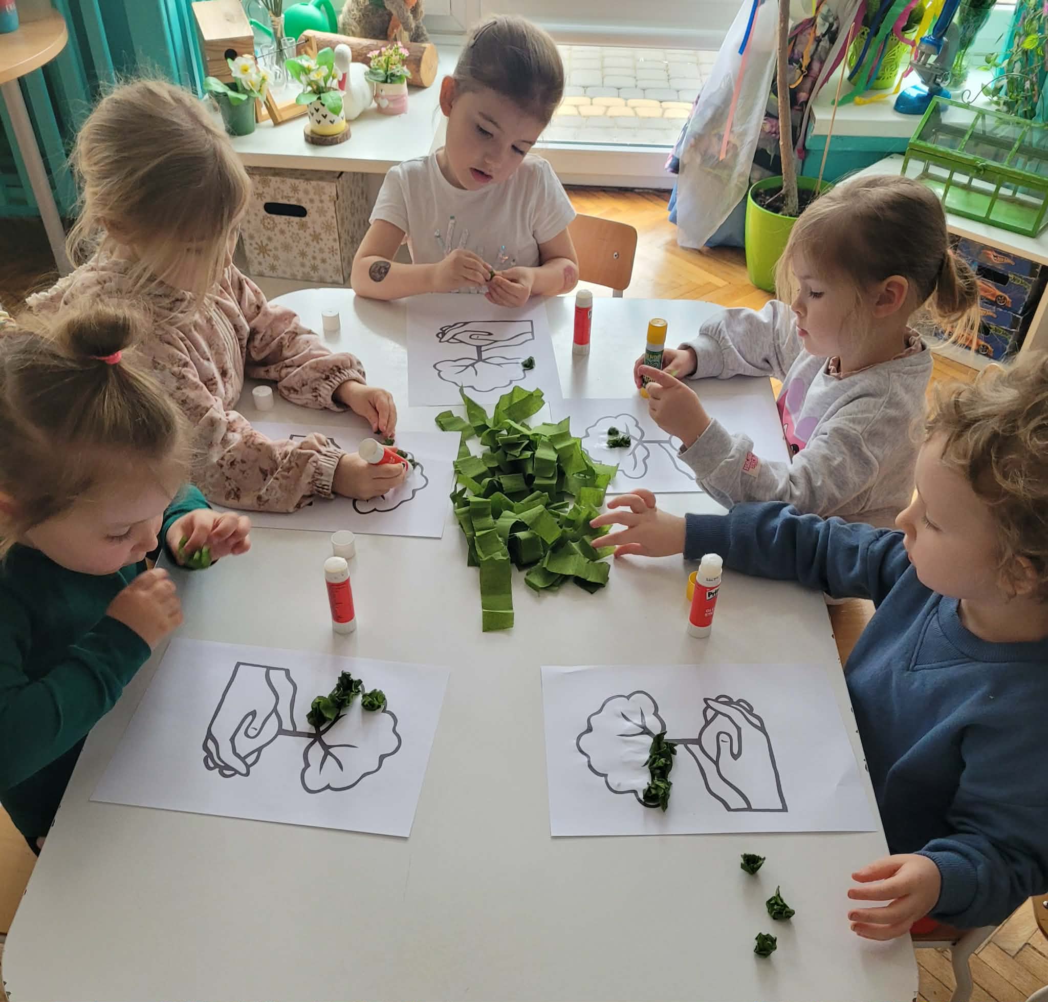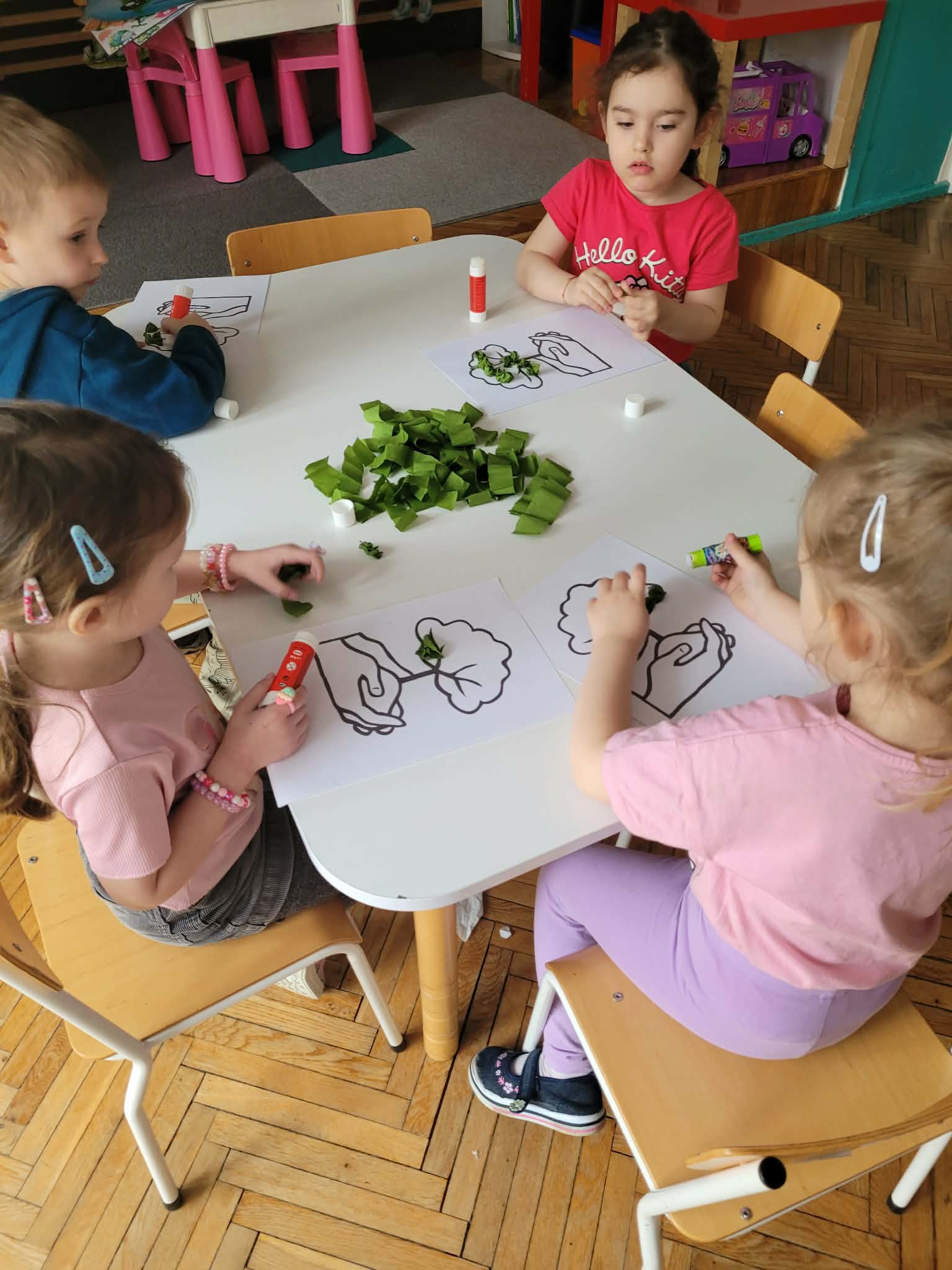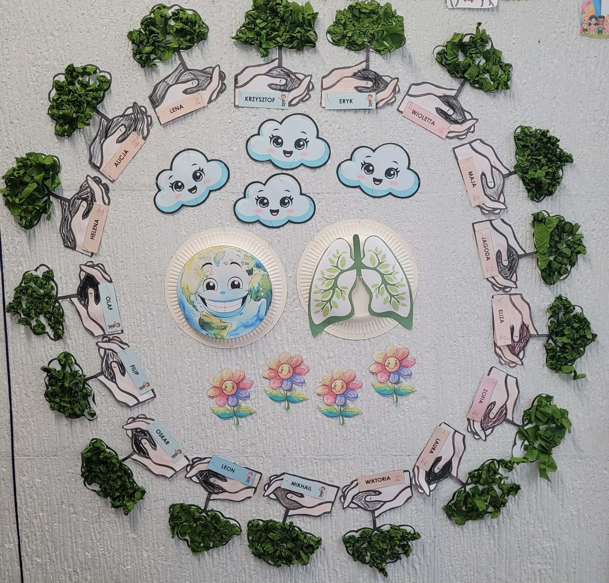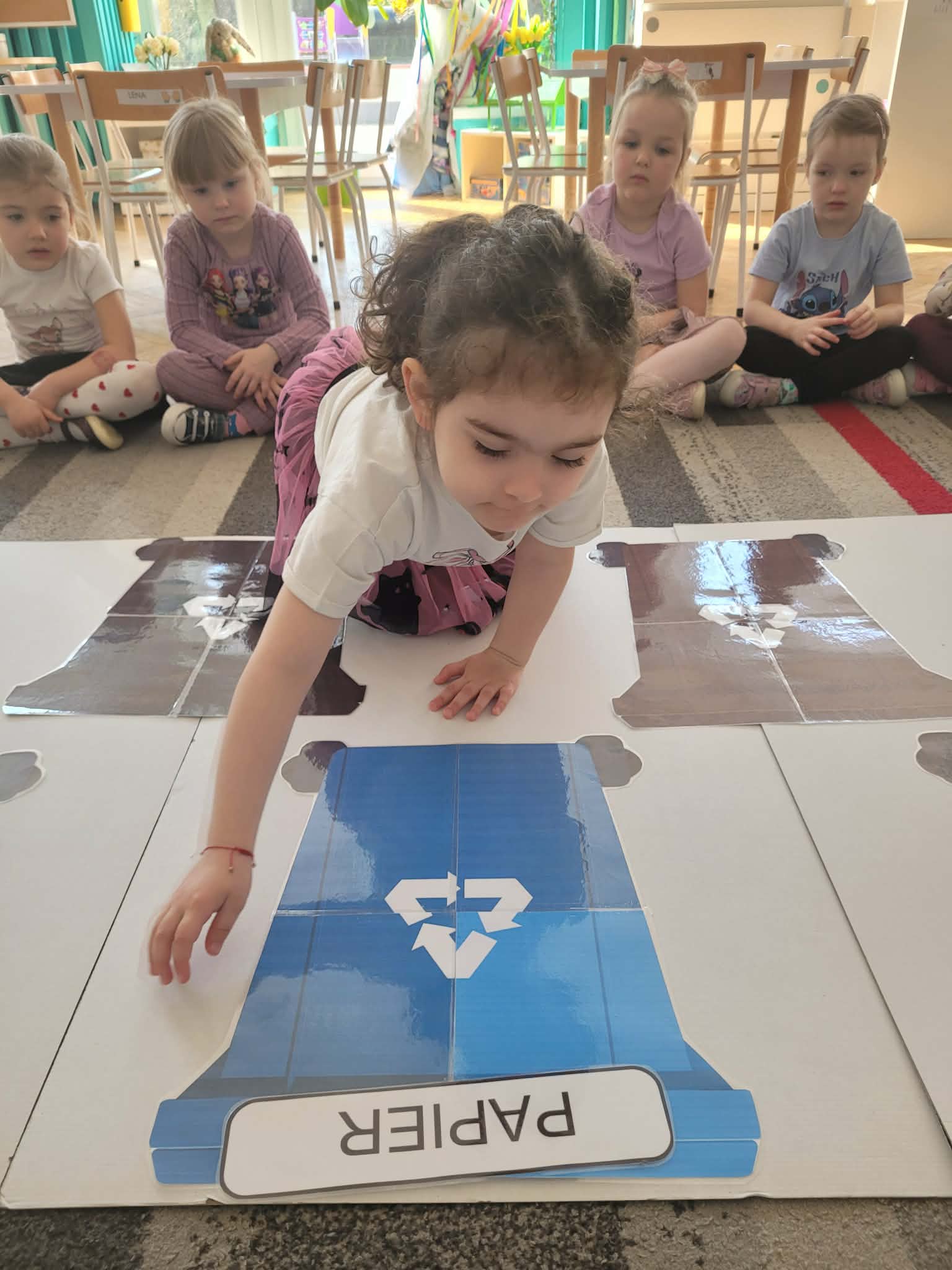 Recykling w przedszkolu to kluczowy element edukacji ekologicznej, uczący dzieci segregacji odpadów, dbania o środowisko oraz kreatywnego powtórnego wykorzystania materiałów. Dzieci rozpoznają kolorypojemników (niebieski – papier, żółty – plastik/metal, zielony – szkło) poprzez wrzucanie odpadków do odpowiednich koszy. Zajęcia dydaktyczne pokazują dzieciom, jak wygląda znak recyklingu i co oznacza. Dzieci wykonaly również kodeks małego ekologa oraz wykonały prace plastyczną "Czyste powietrze wokół nas"