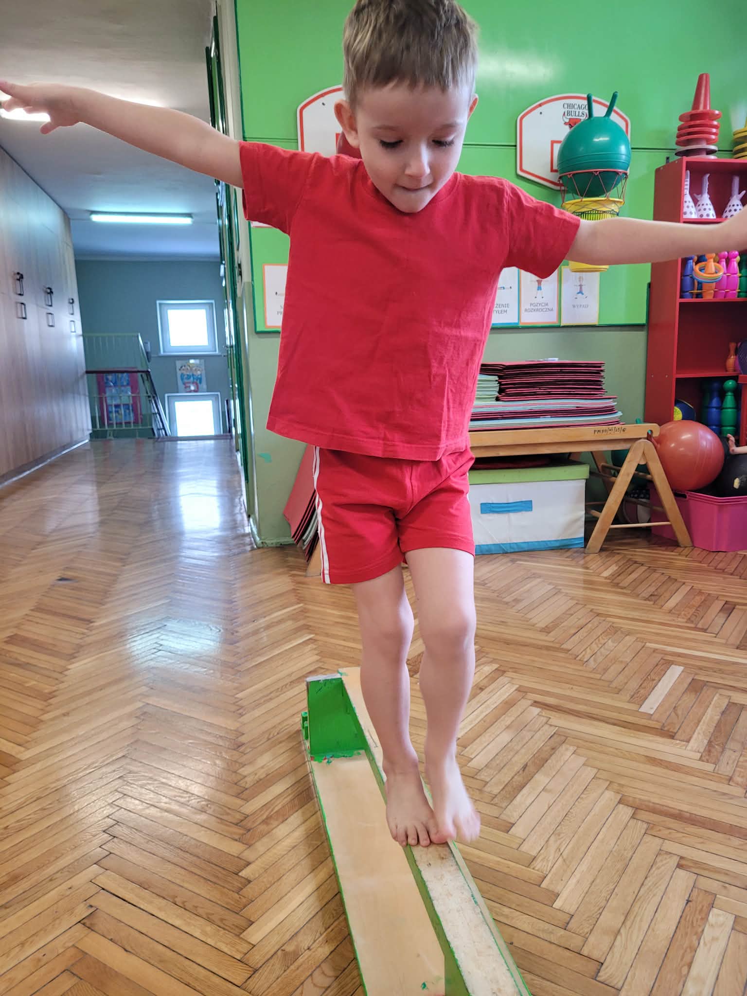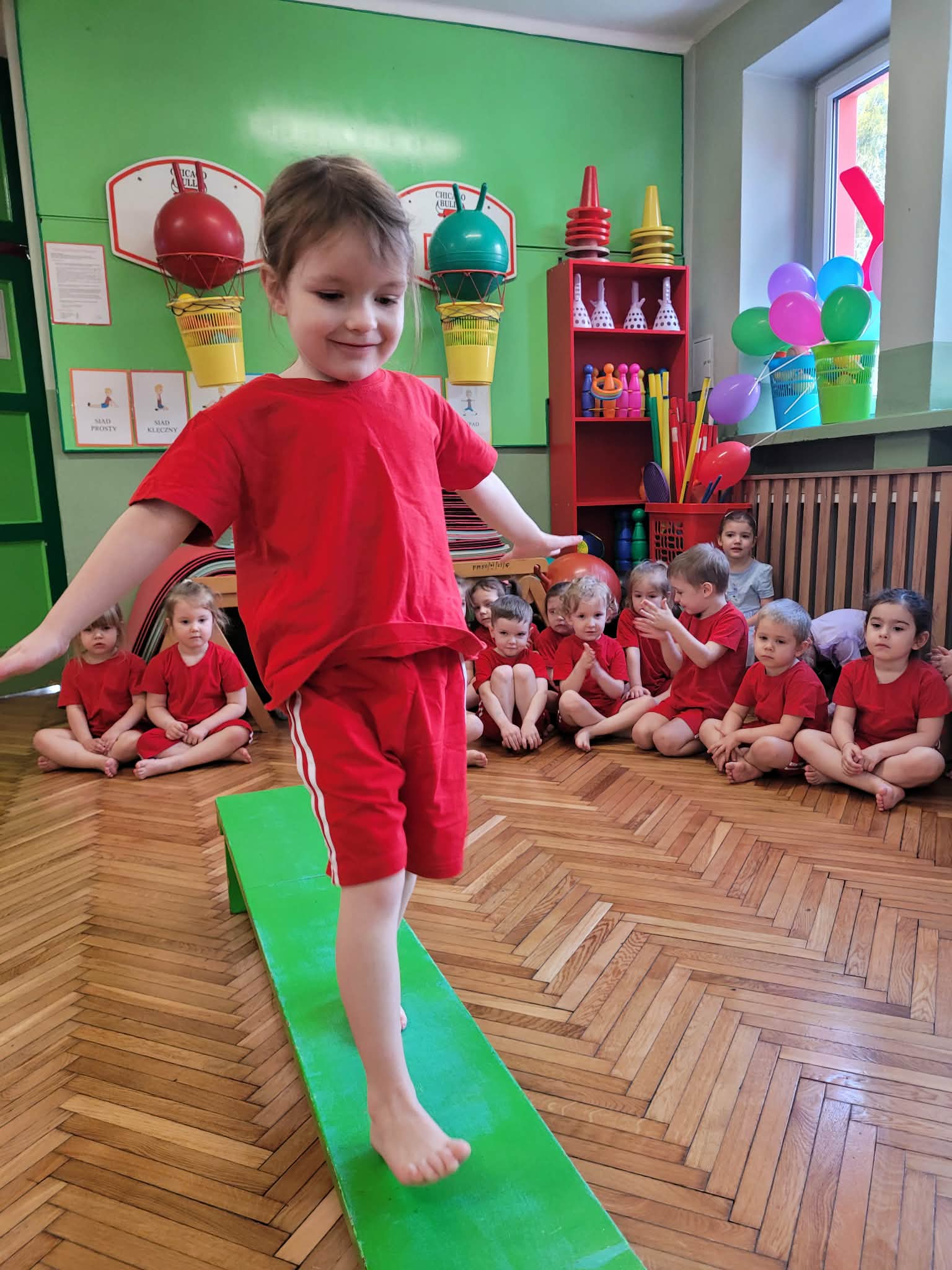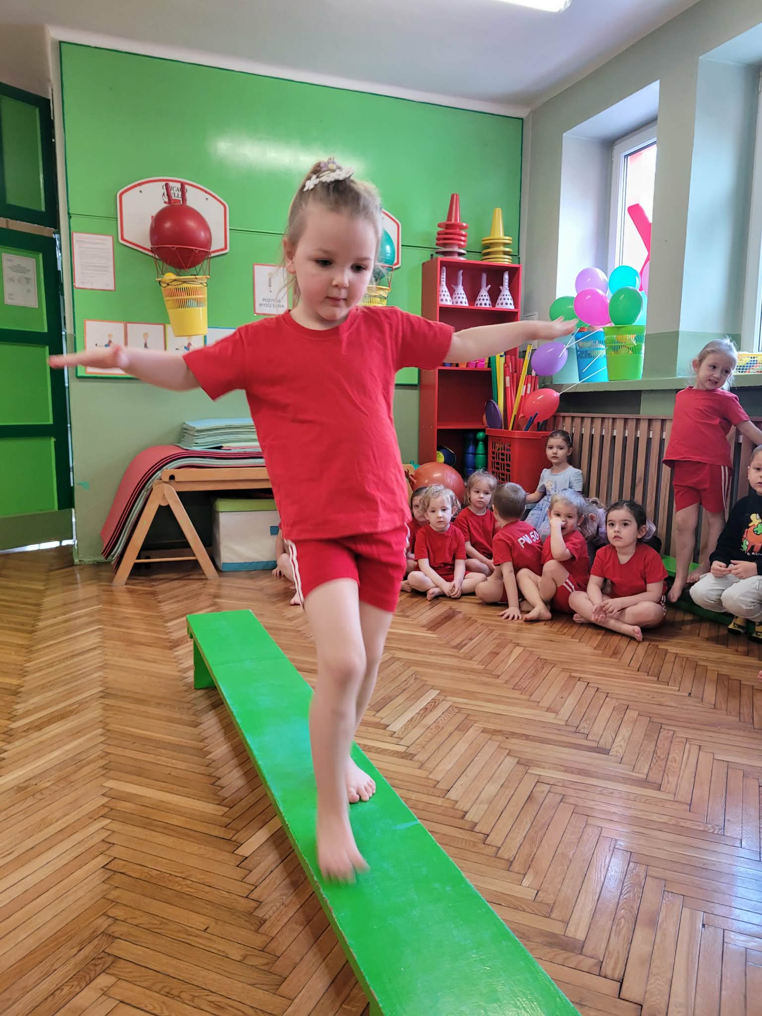 Aktywność fizyczna jest bardzo ważna dla zdrowego rozwoju dziecka, a zabawy ruchowe to doskonały sposób na połączenie ruchu ze świetną zabawą. Dzieci uwielbiają biegać, skakać i śmiać się, a odpowiednio dobrane gry wspierają ich rozwój fizyczny, koordynację i sprawność. Dzieci wybrały się na salę gimnastyczną i ćwiczyły głównie prawidłową postawę oraz ćwiczenia na płaską stopę. Nie zabrakło też zabaw przy muzyce, które świetnie rozwijają koncentrację i uwagę.