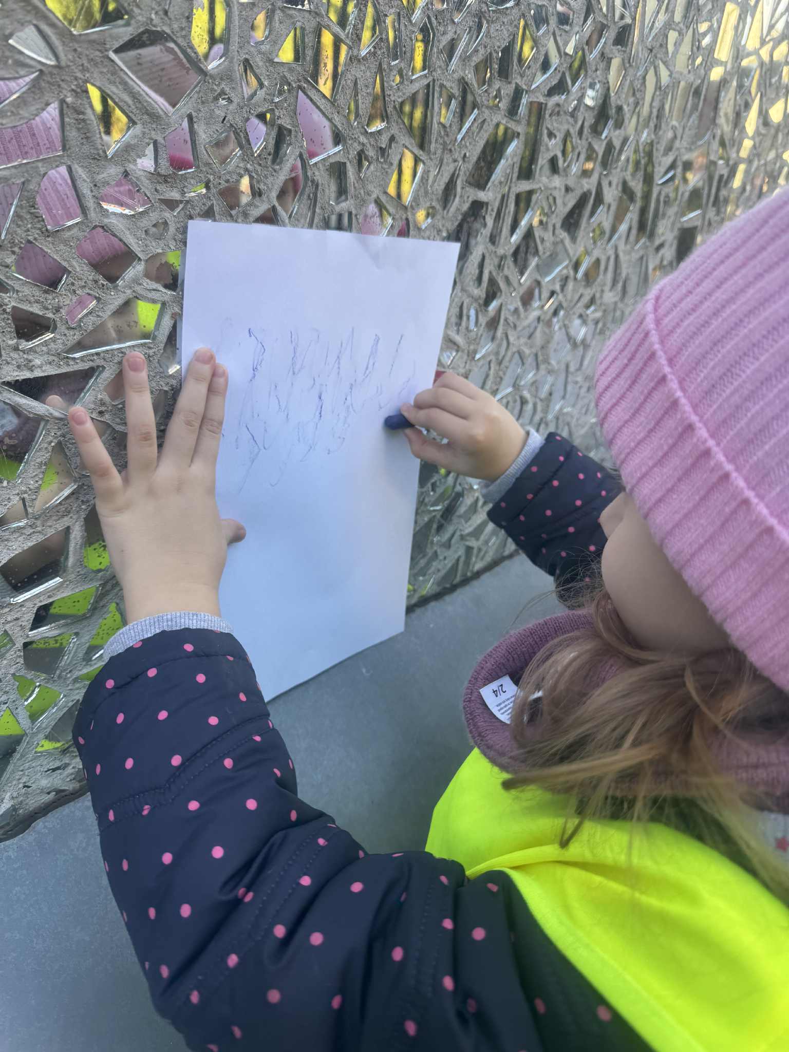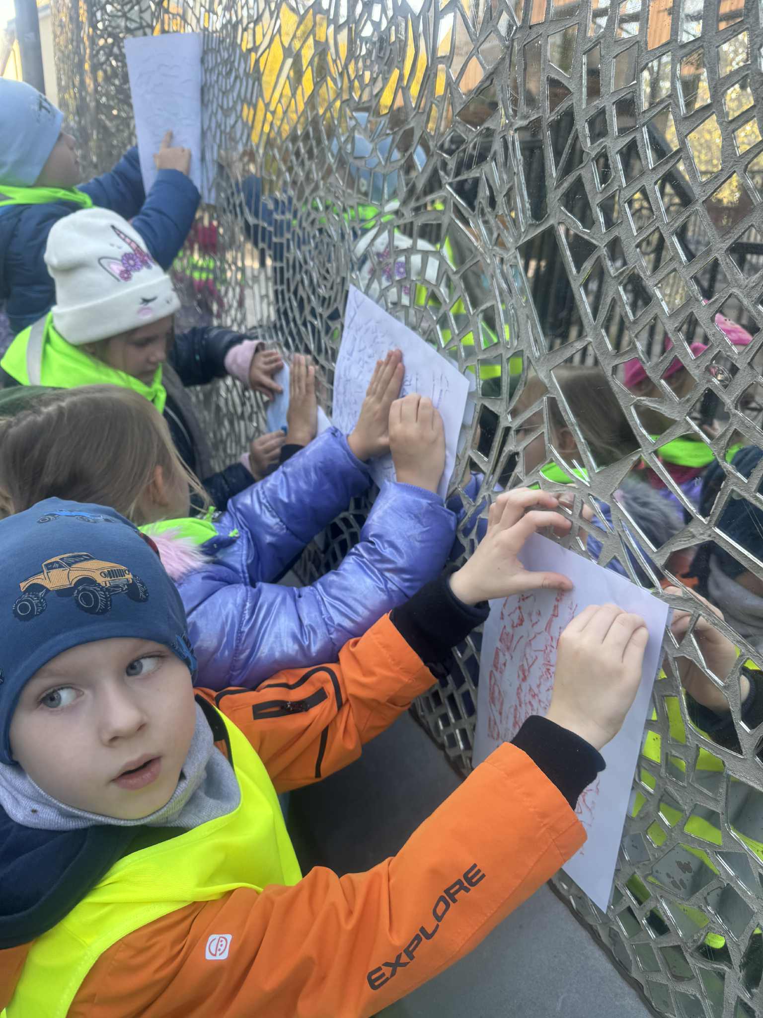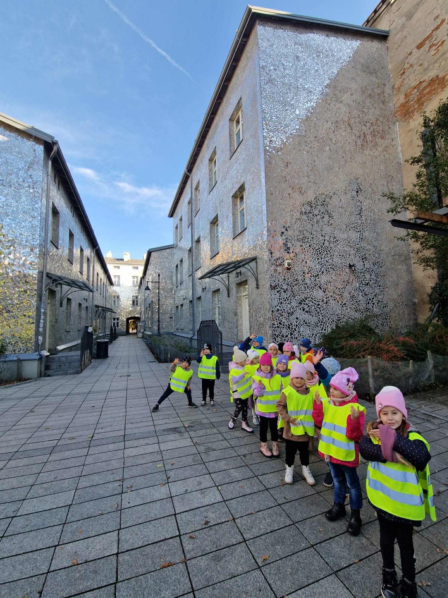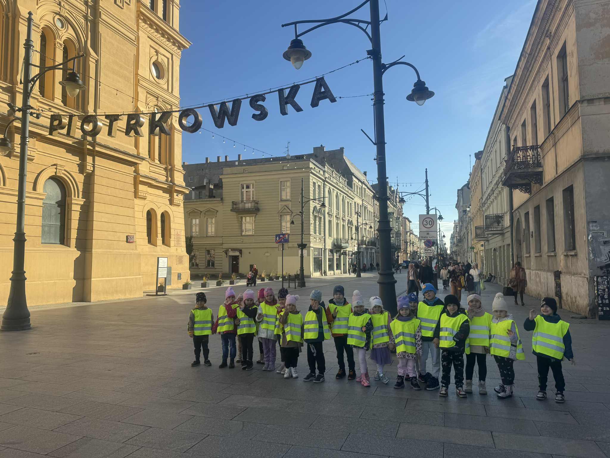Dzieci wyruszyły na spacer po Łodzi. Zwiedziły Pasaż Róży , czyli stare łódzkie kamienice, całe pokryte małymi lusterkami ułożonymi na kształt róży. Następnie podziwiały Plac Wolności, na którym stoi pomnik Tadeusza Kościuszki. Spacer był bardzo ciekawy, a pogoda dopisywała!