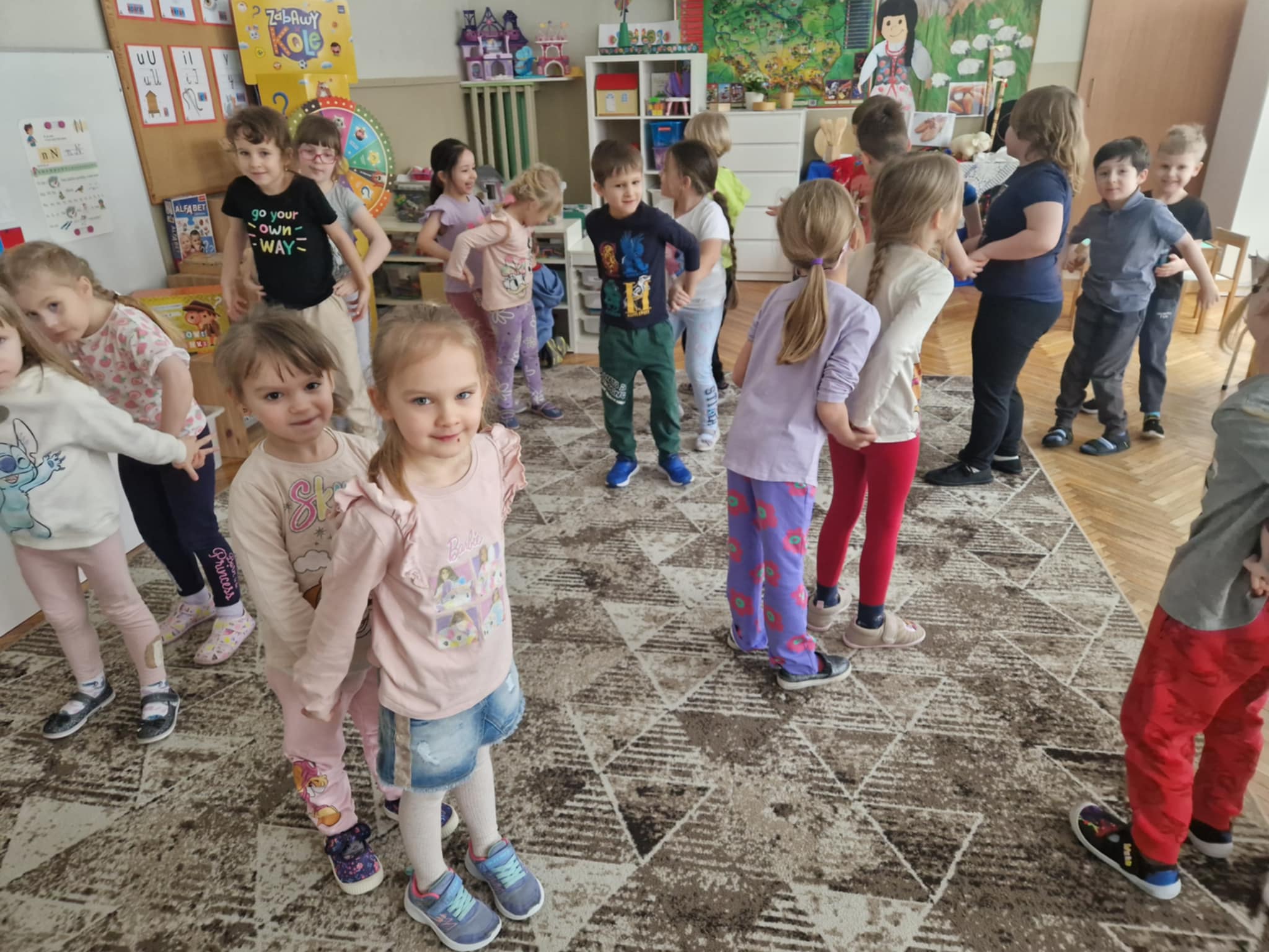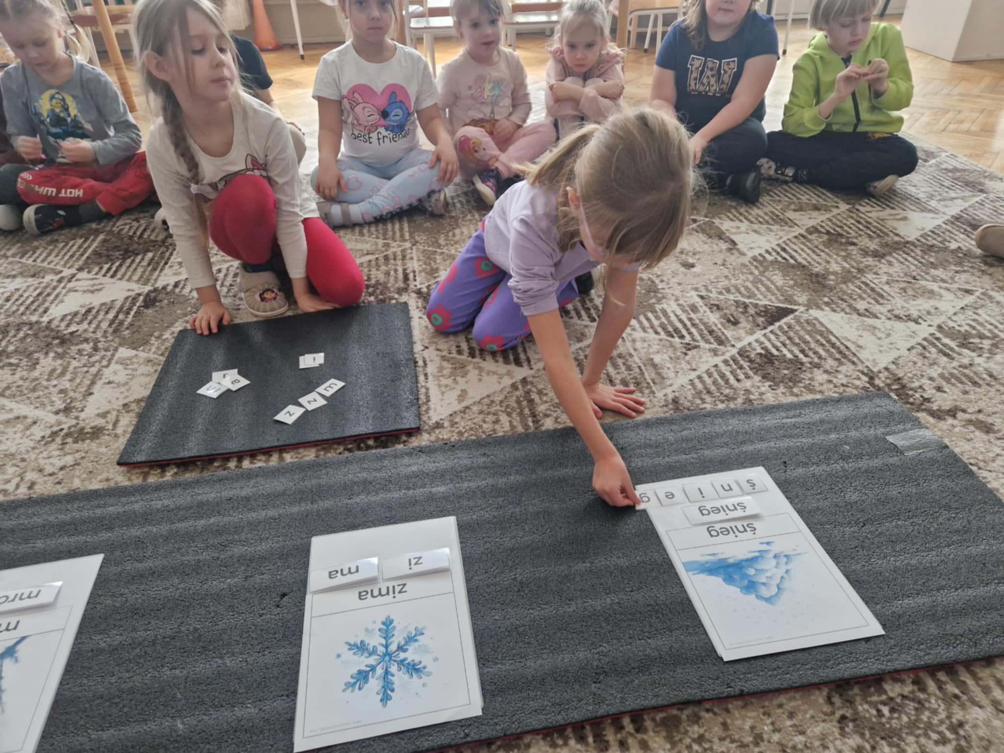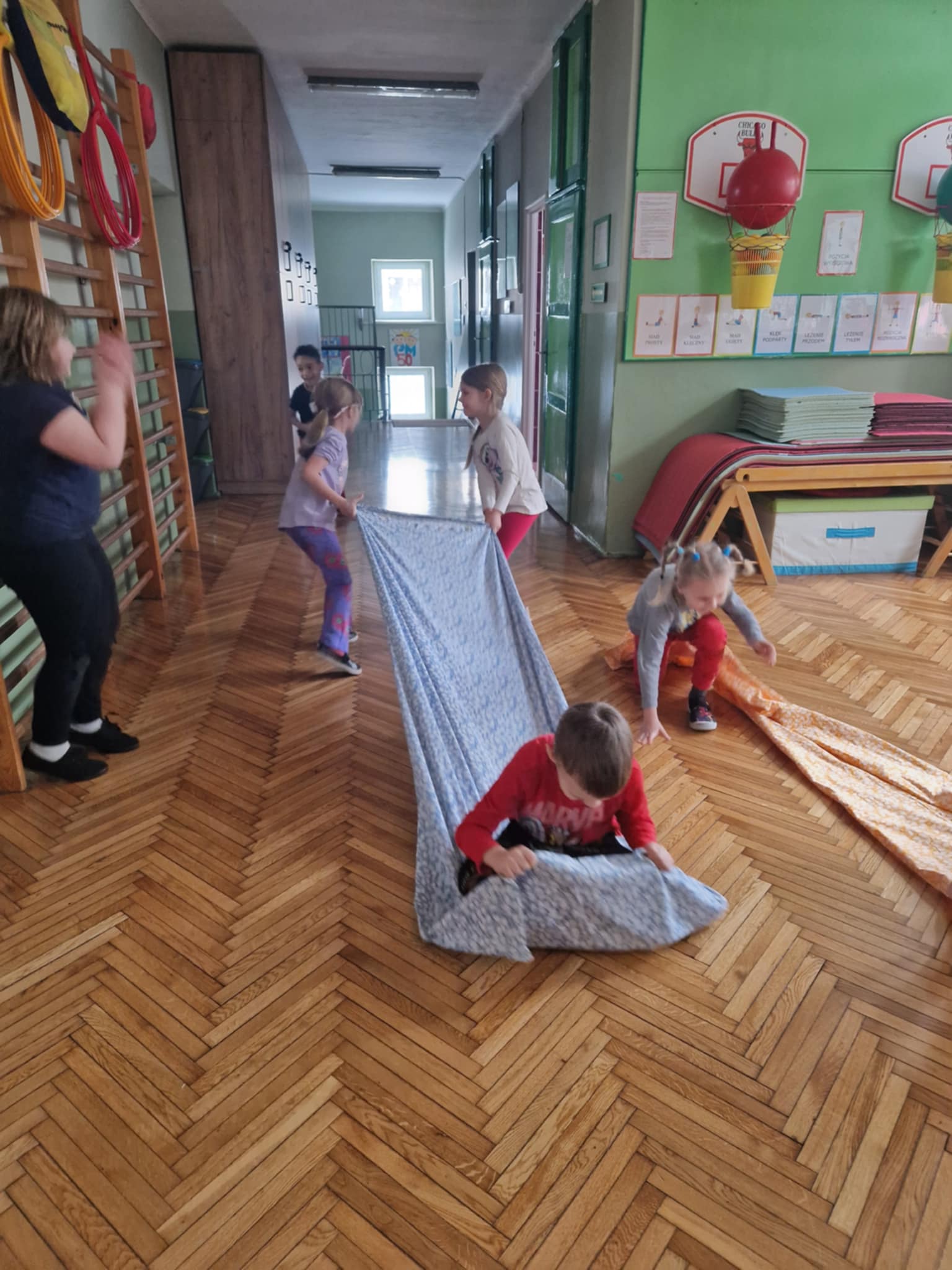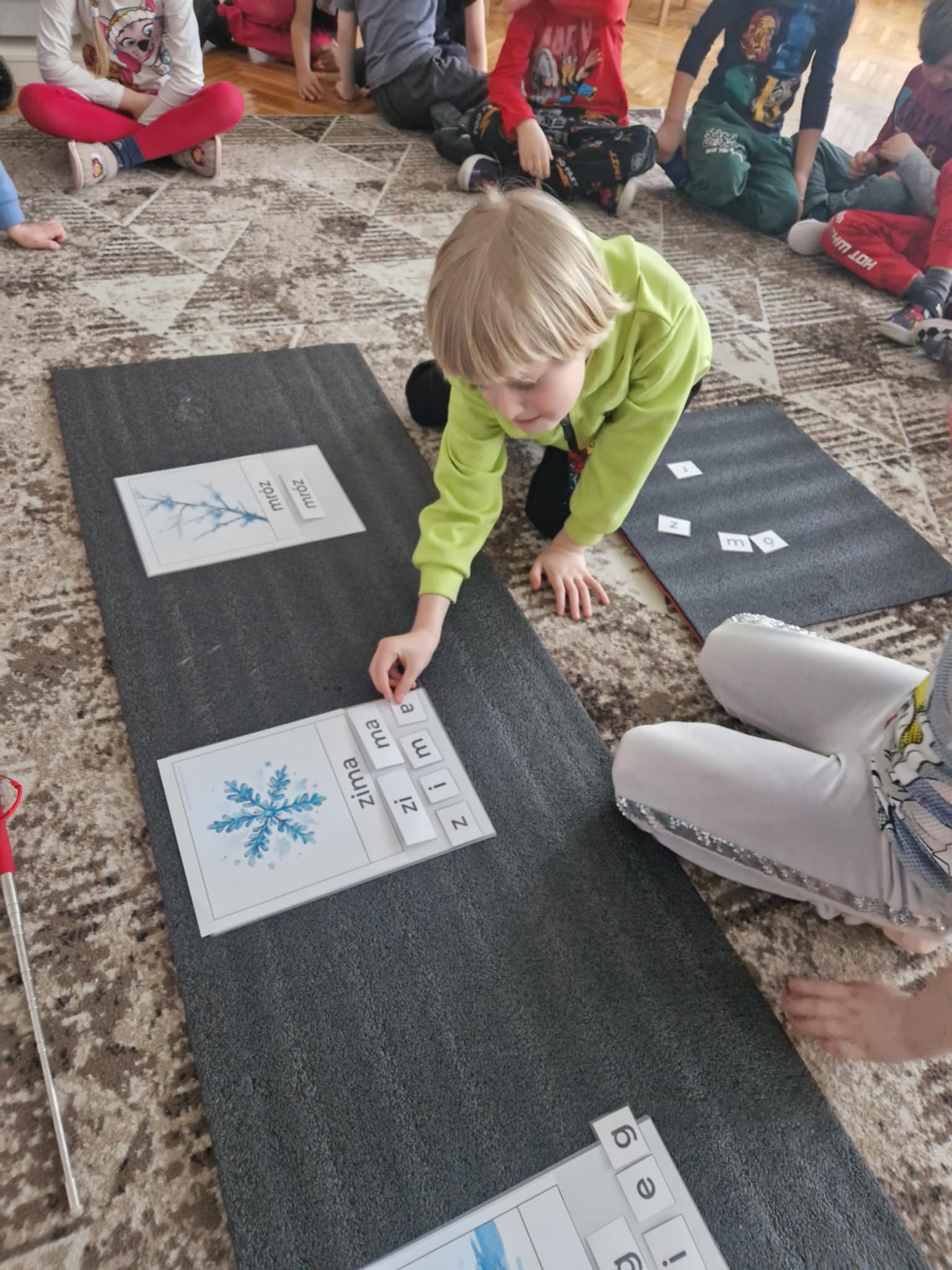 Dzieci z grupy 3 i 4 poznawały sporty zimowe, w których wykorzystywane są sanki, łyżwy i narty. Mówiliśmy o dyscyplinach sportowych takich jak saneczkarstwo, skoki narciarskie czy jazda figurowa na lodzie. Była zabawa w saneczki i skoczków narciarskich. Następnie dzieci wykonały pracę plastyczne utrwalając poznane sporty zimowe.