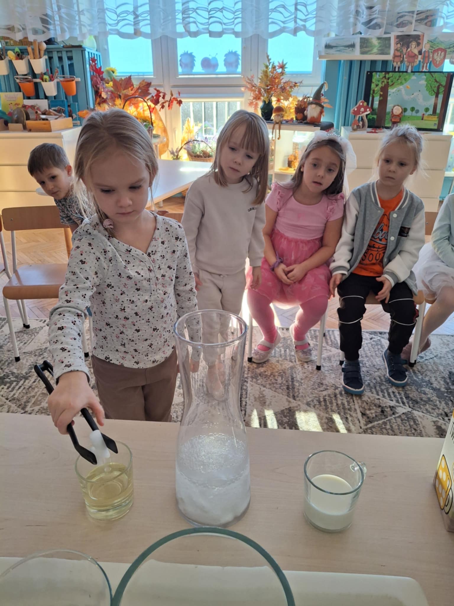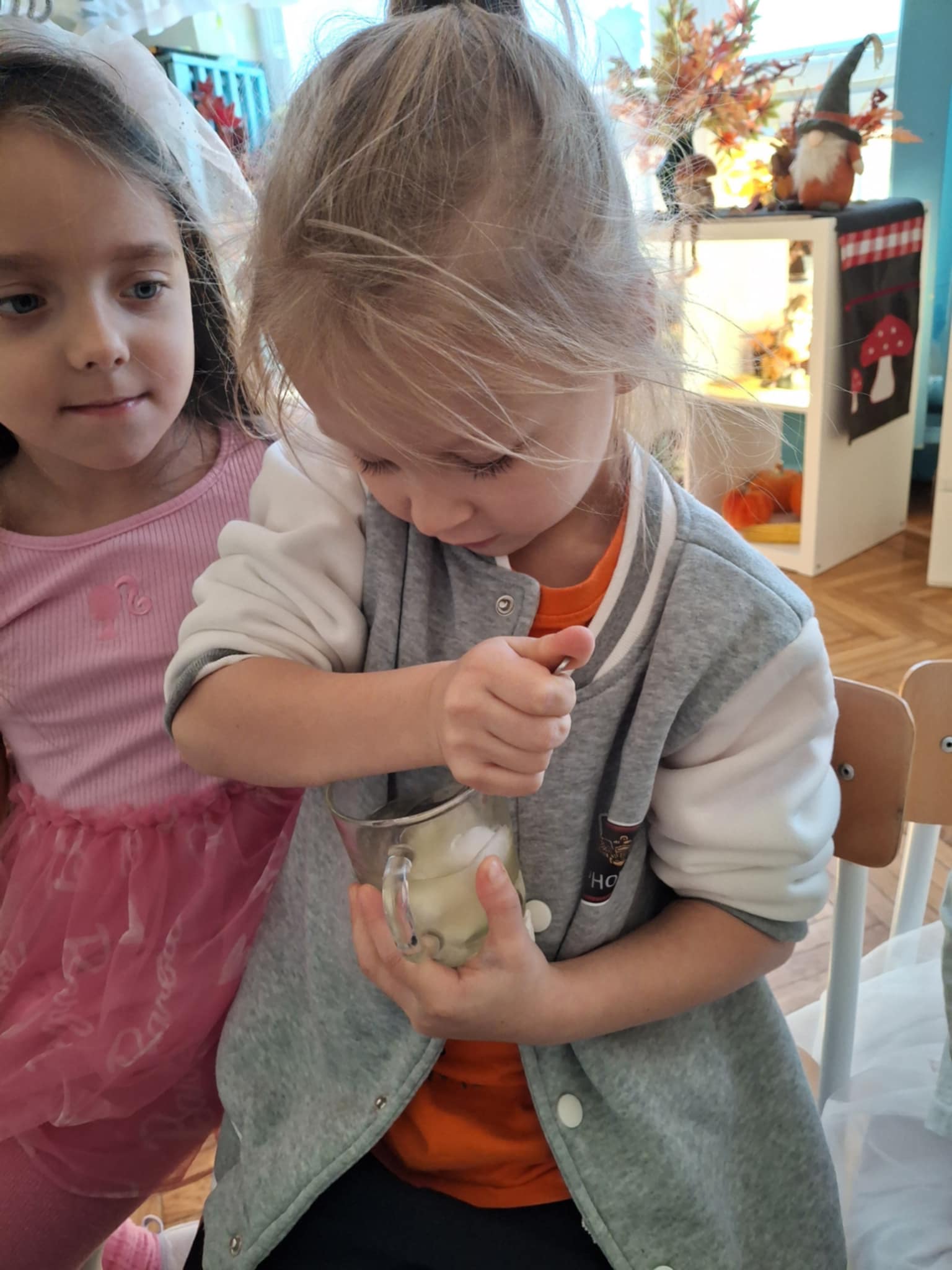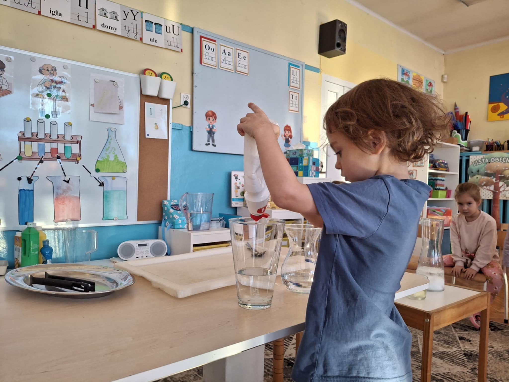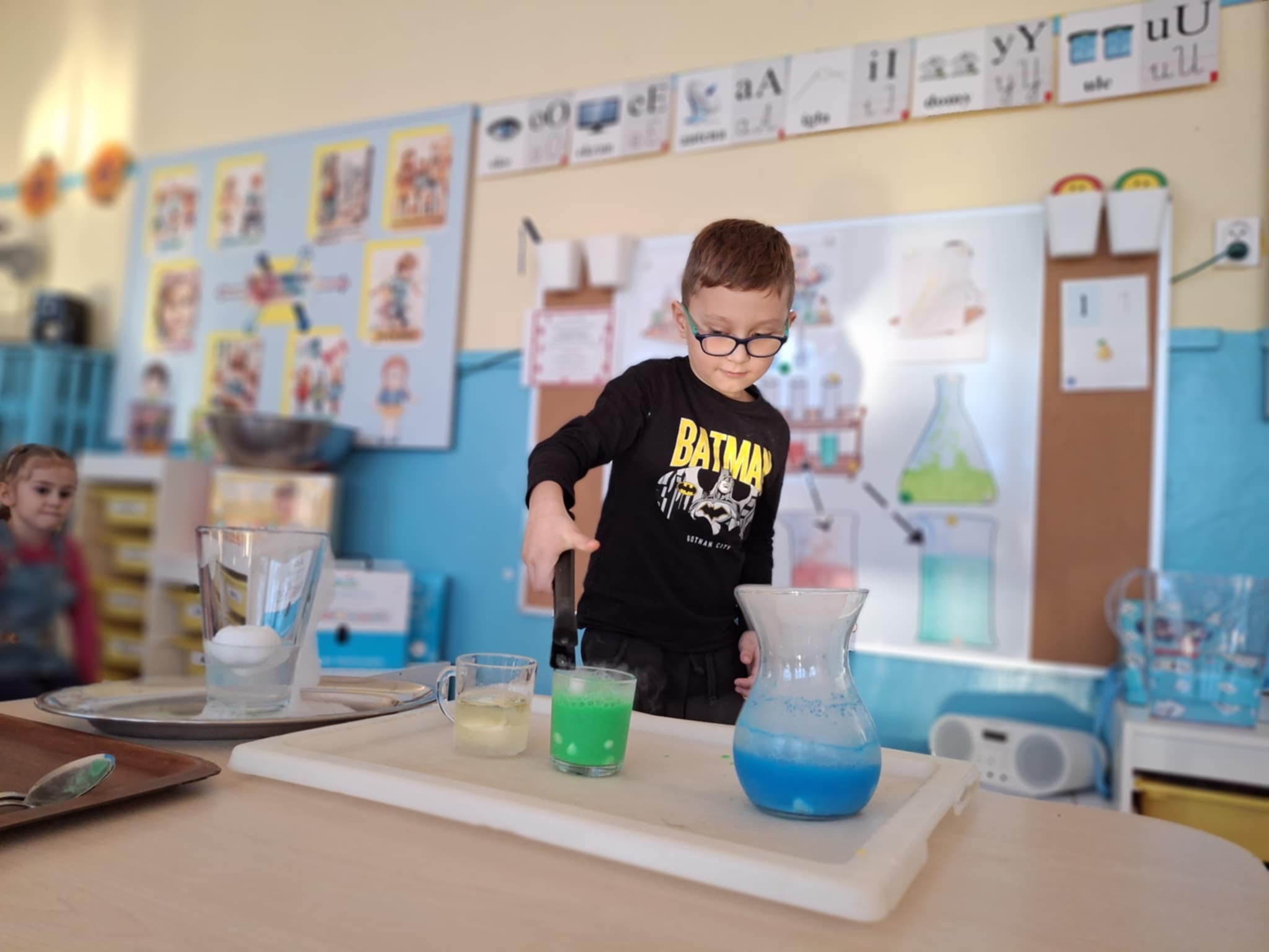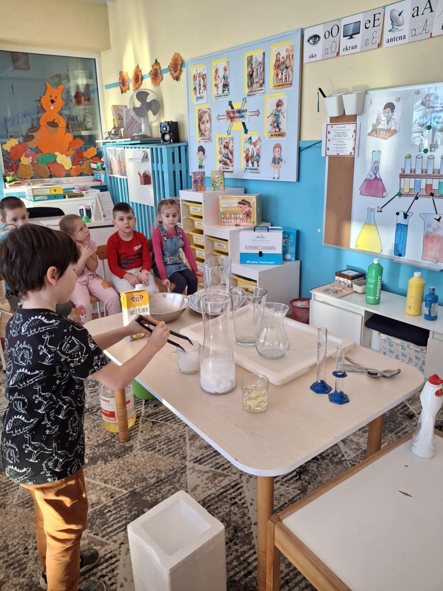 "Spotkanie z nauką" to metafora odnosząca się do interakcji z wiedzą, która może przybrać wiele form: od nauki, aż po rozwijanie pasji czy zdobywanie nowych umiejętności. Dzieci eksperymentowały z suchym lodem. Może przywołamy śnieżną zimę?