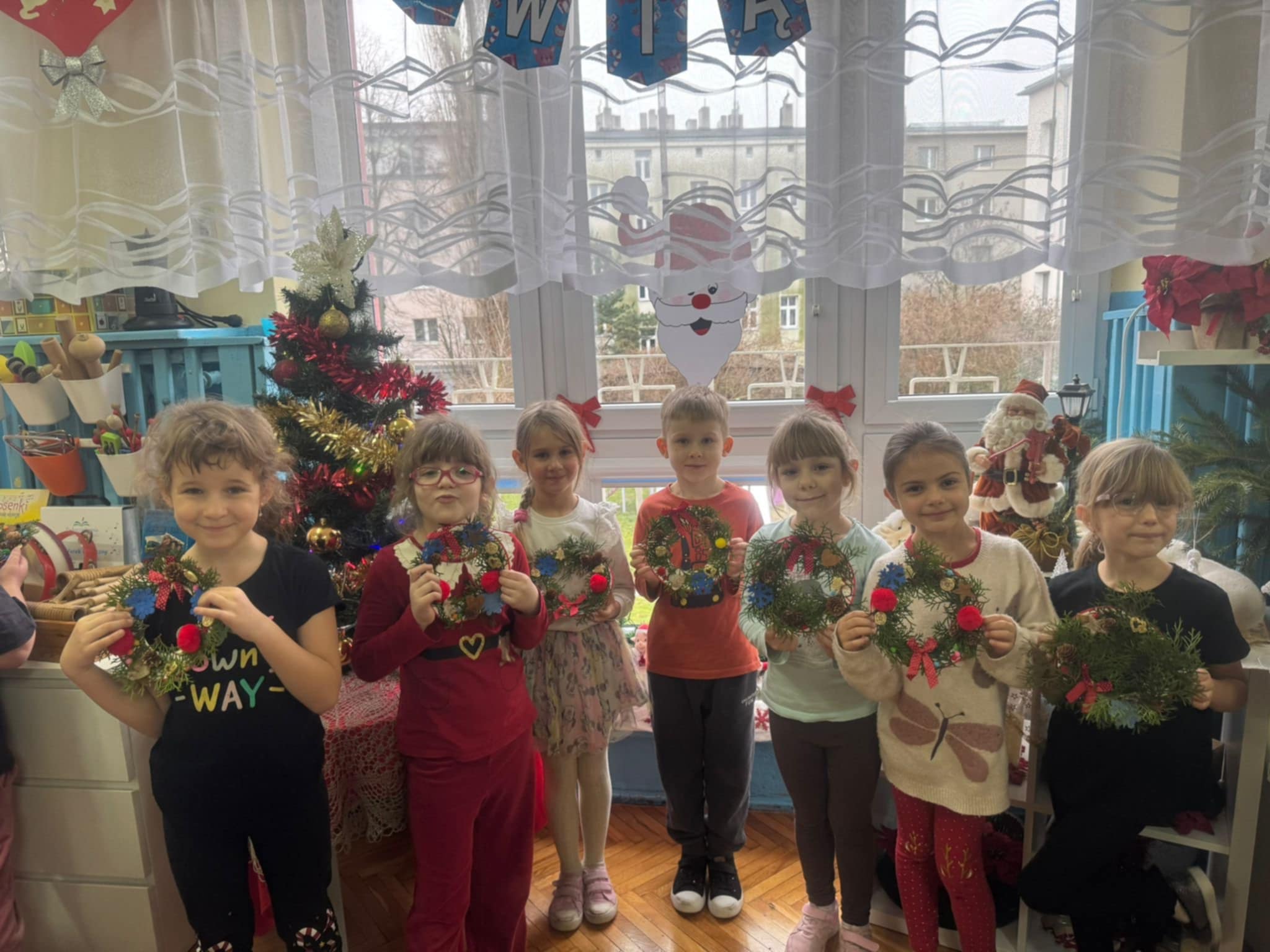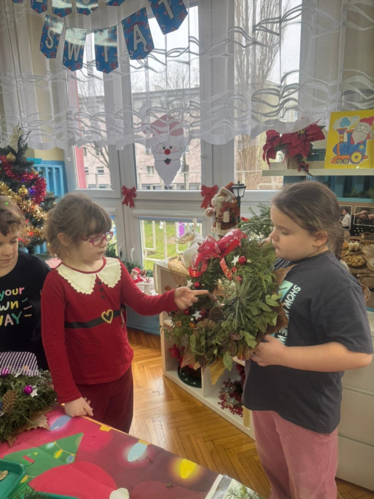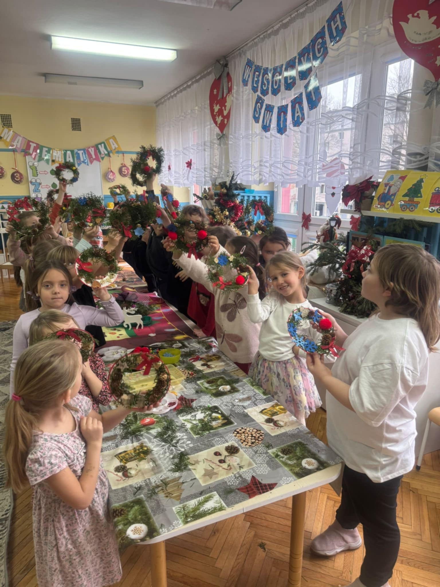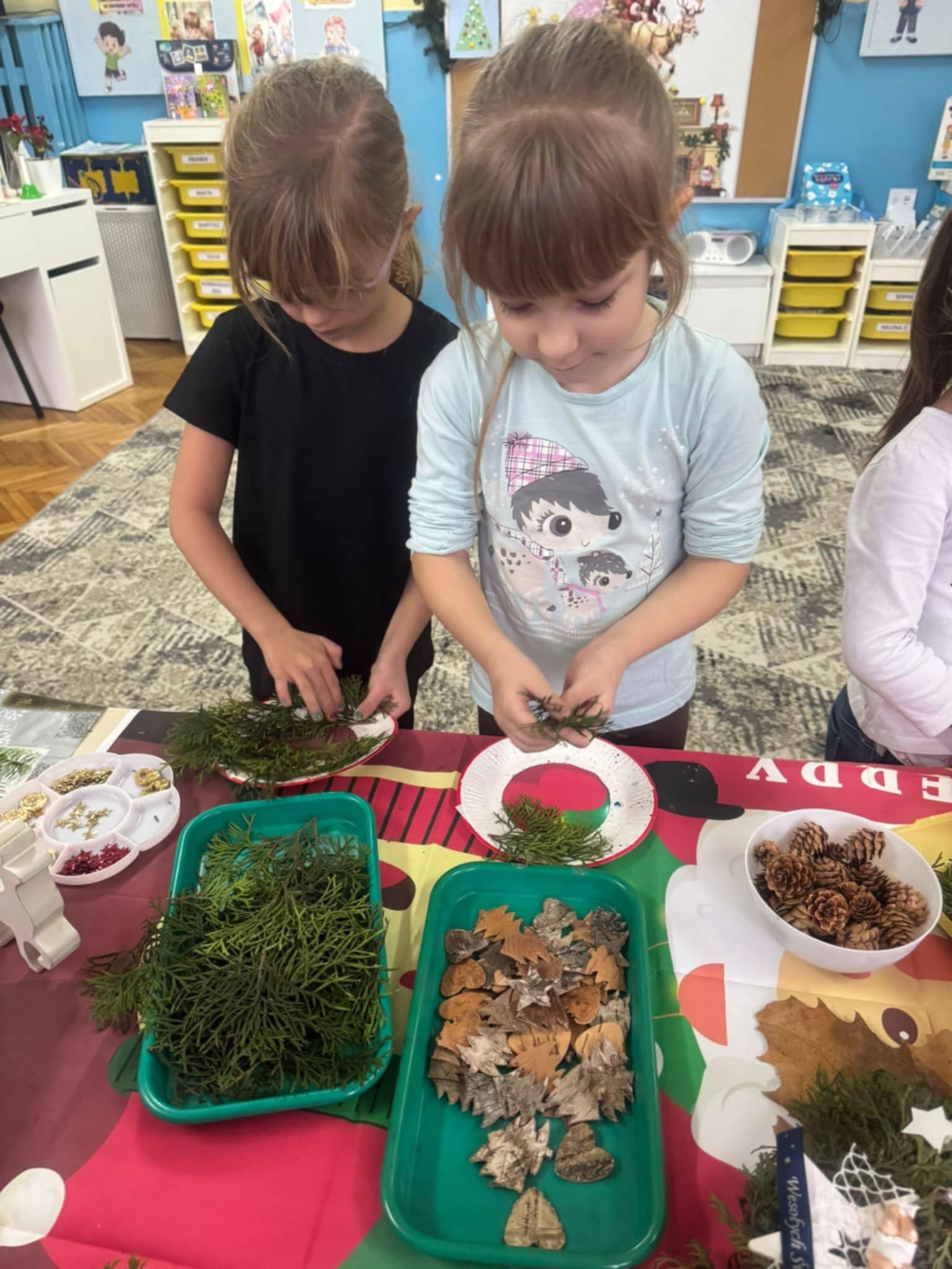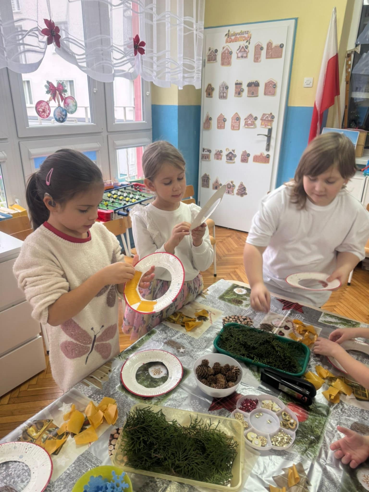 Dzieci z grupy 3 i 4 wziely udział w warsztatach artystycznych, podczqs ktorych wykonały stroiki bożonarodzeniowe, z wykorzystaniem różnorodnych materiałów. Wszystkie dzieci wzięły swoje stroiki do domów, które z pewnością będą piękną ozdobą podczas świąt Bożego Narodzenia.