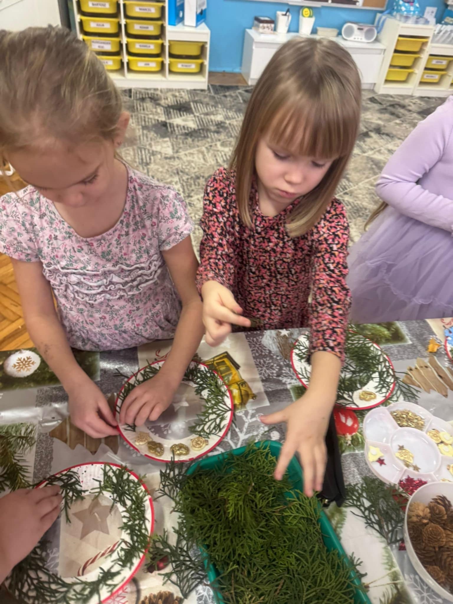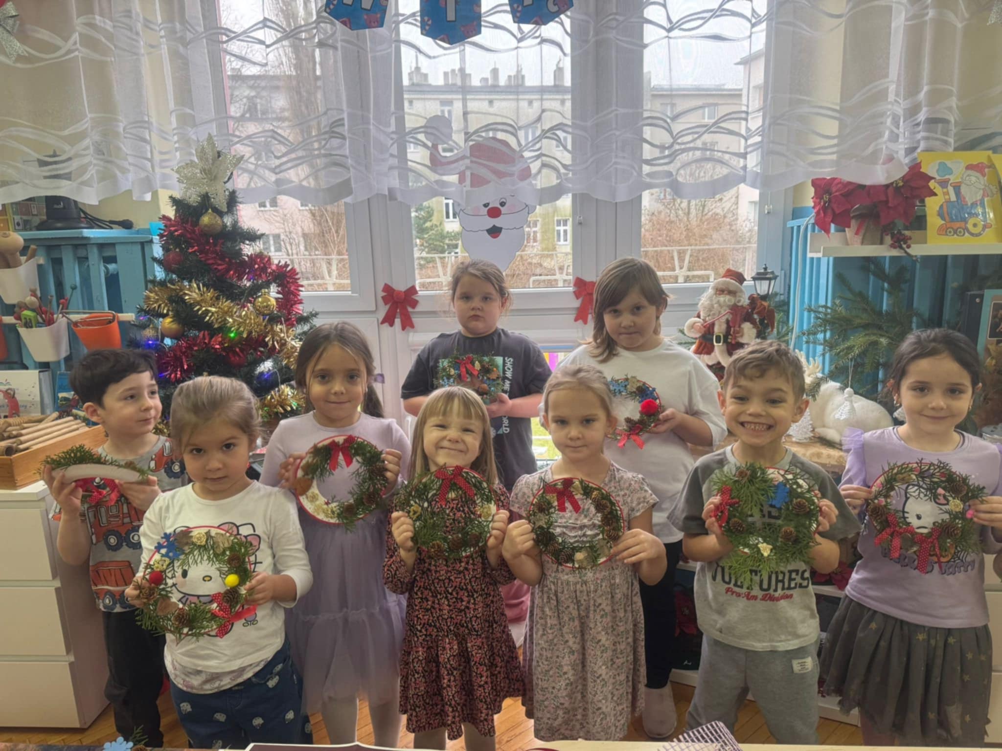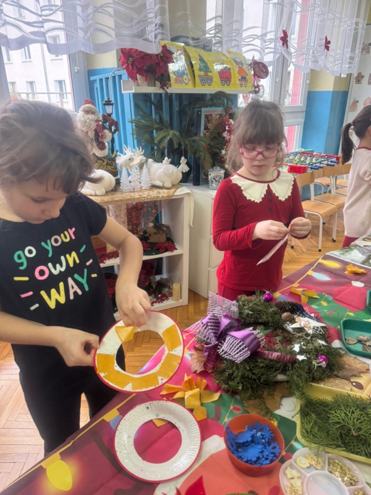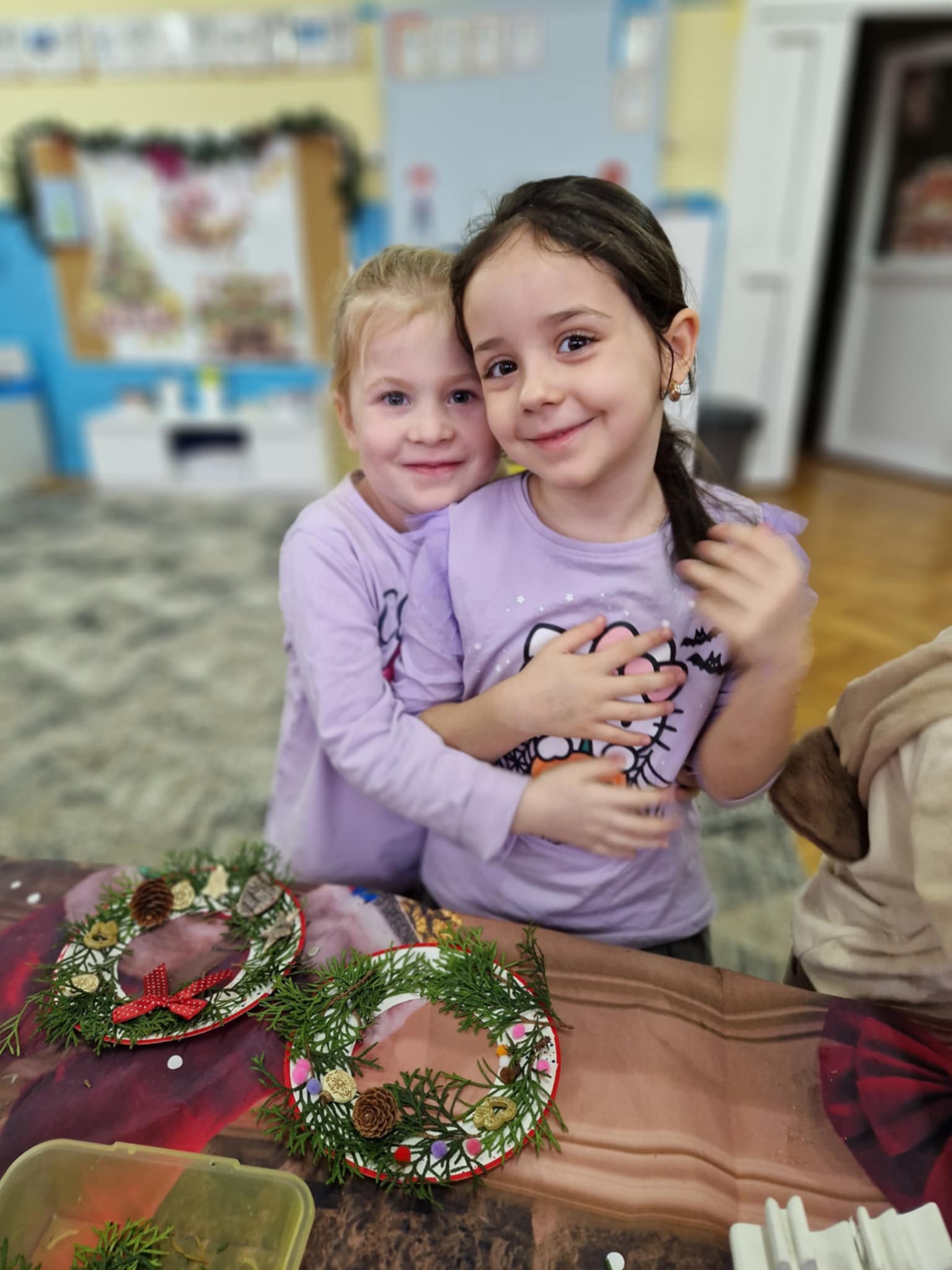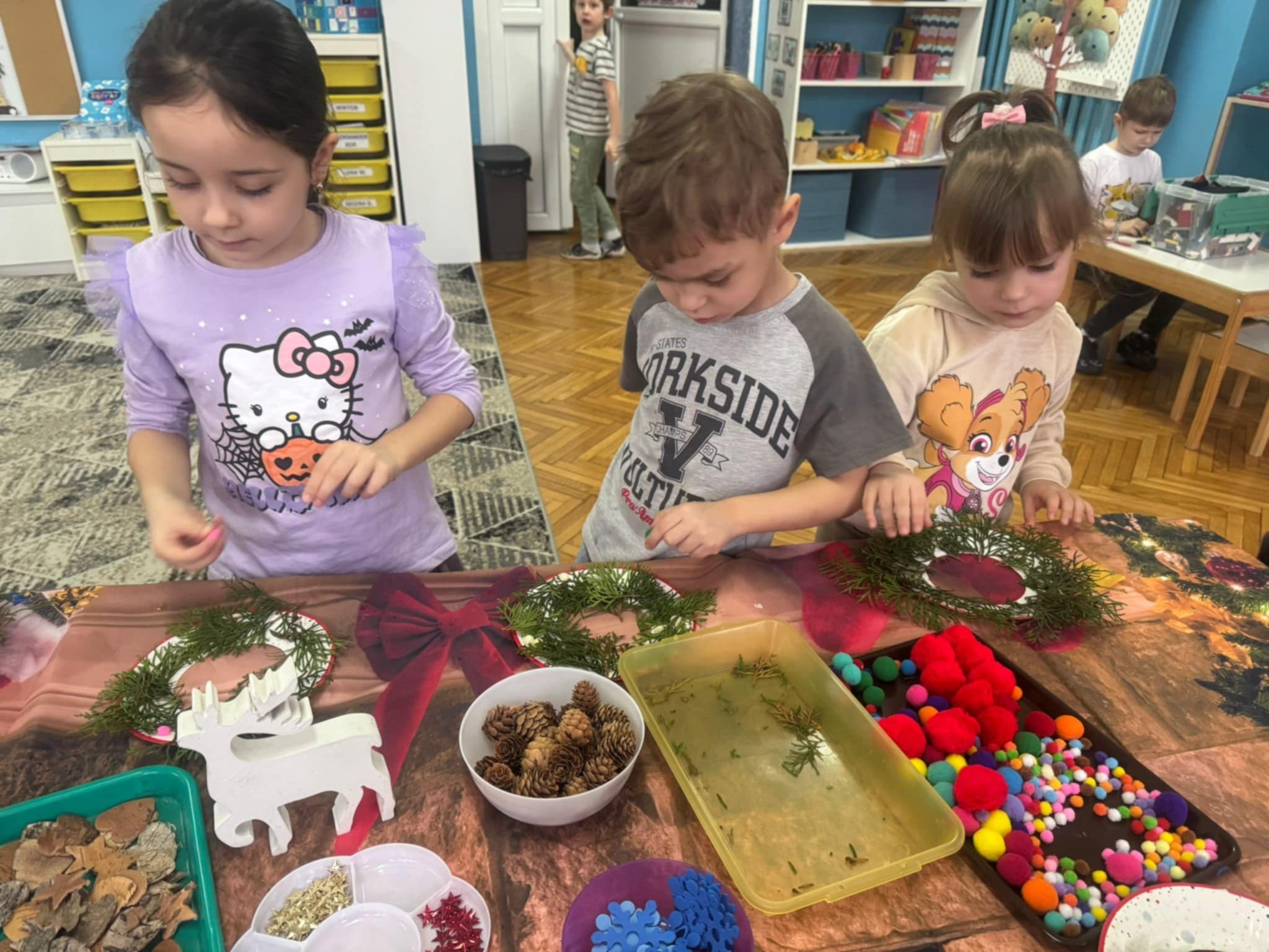 Dzieci z grupy 3 i 4 wziely udział w warsztatach artystycznych, podczqs ktorych wykonały stroiki bożonarodzeniowe, z wykorzystaniem różnorodnych materiałów. Wszystkie dzieci wzięły swoje stroiki do domów, które z pewnością będą piękną ozdobą podczas świąt Bożego Narodzenia.