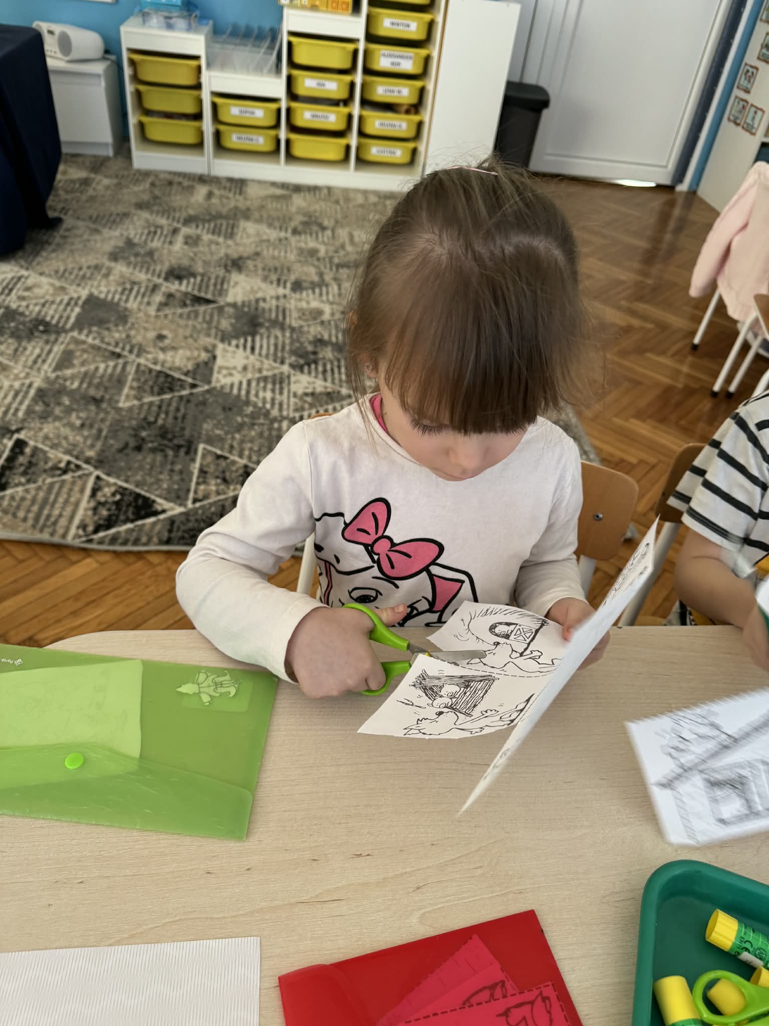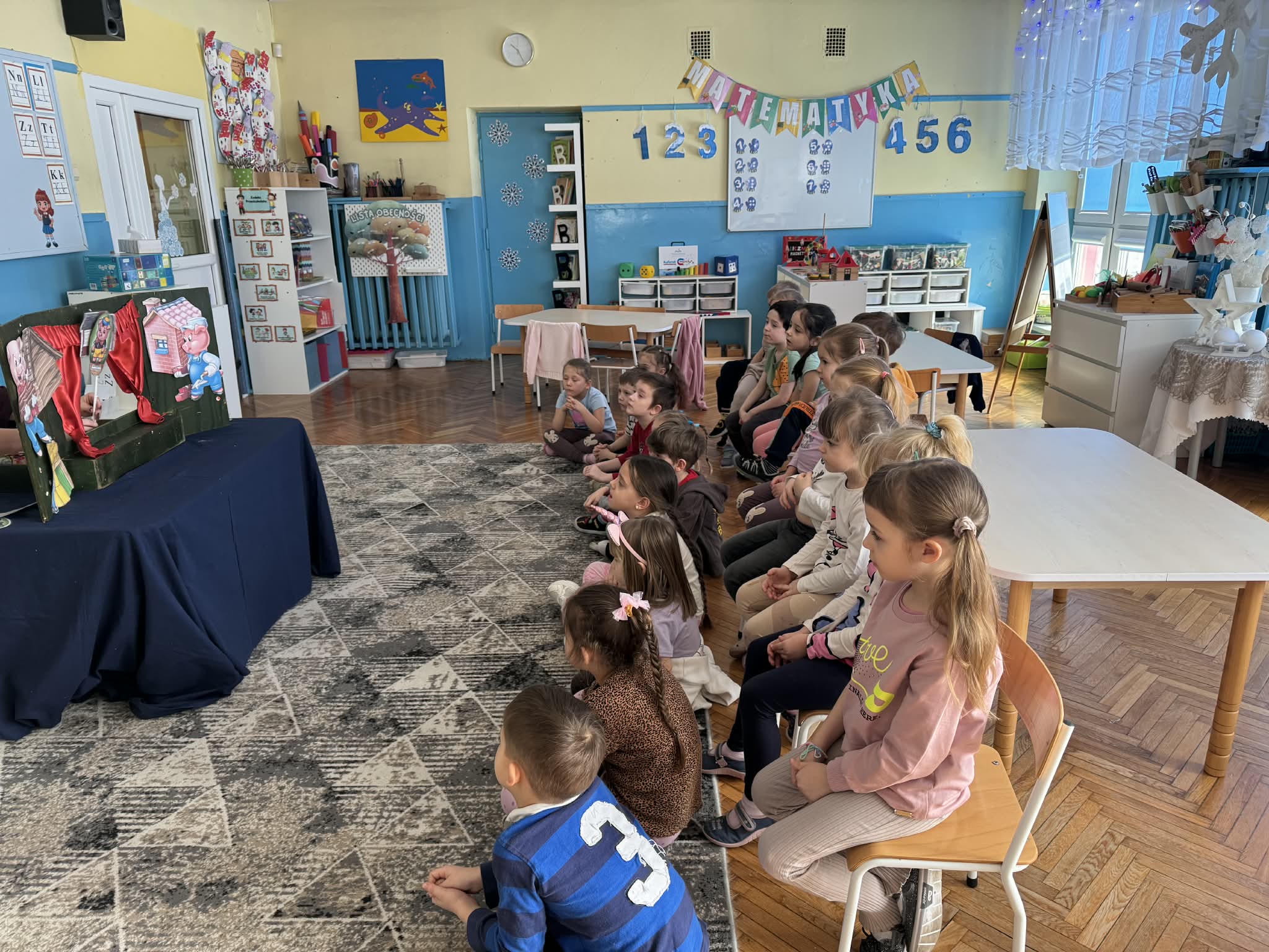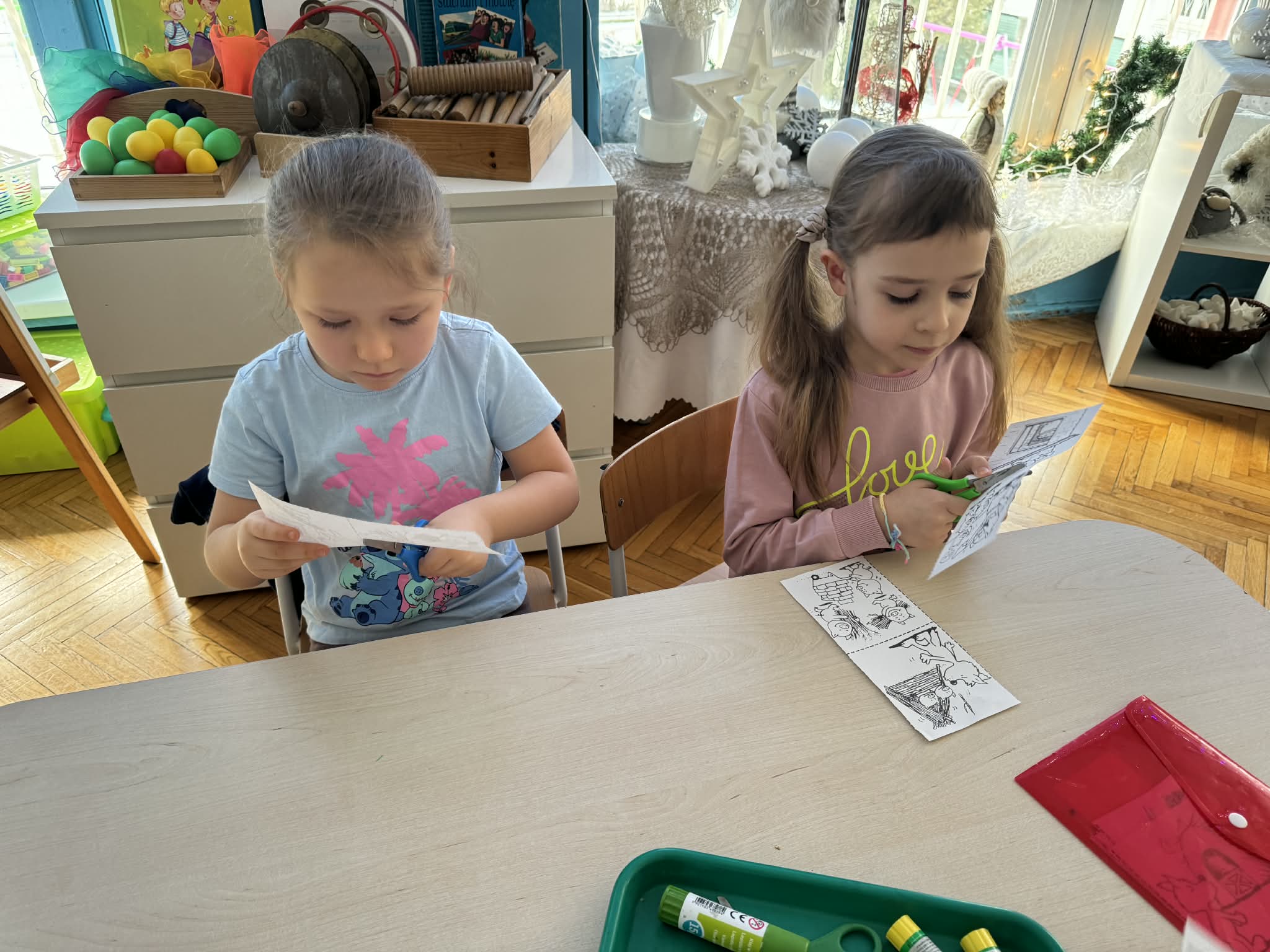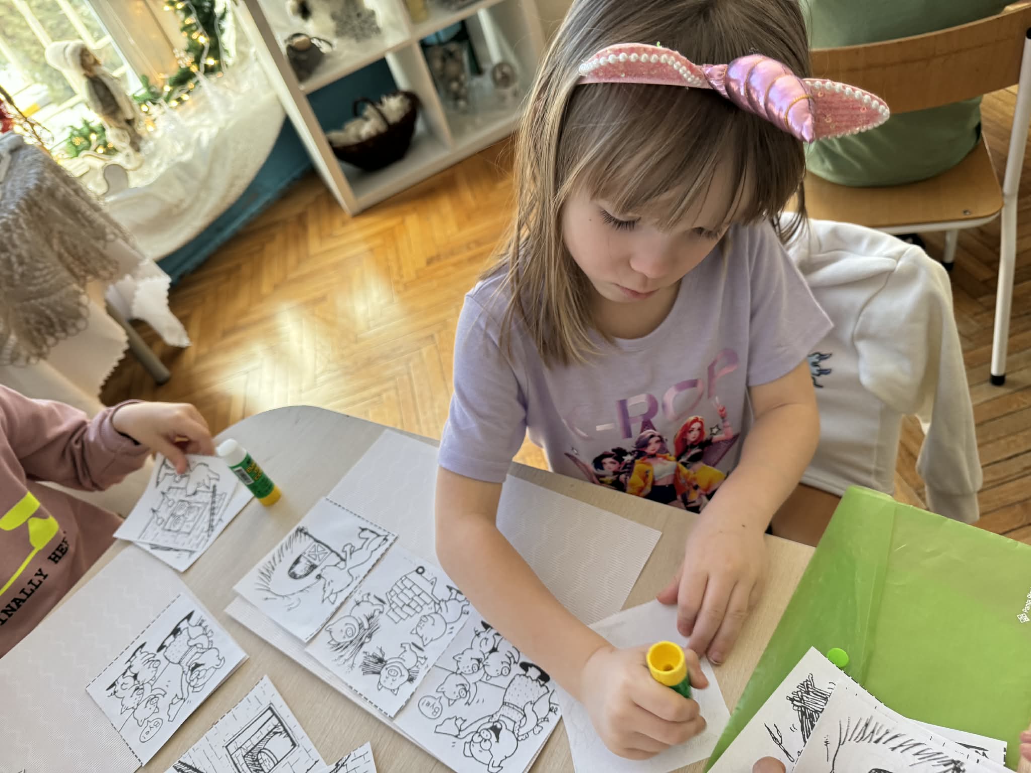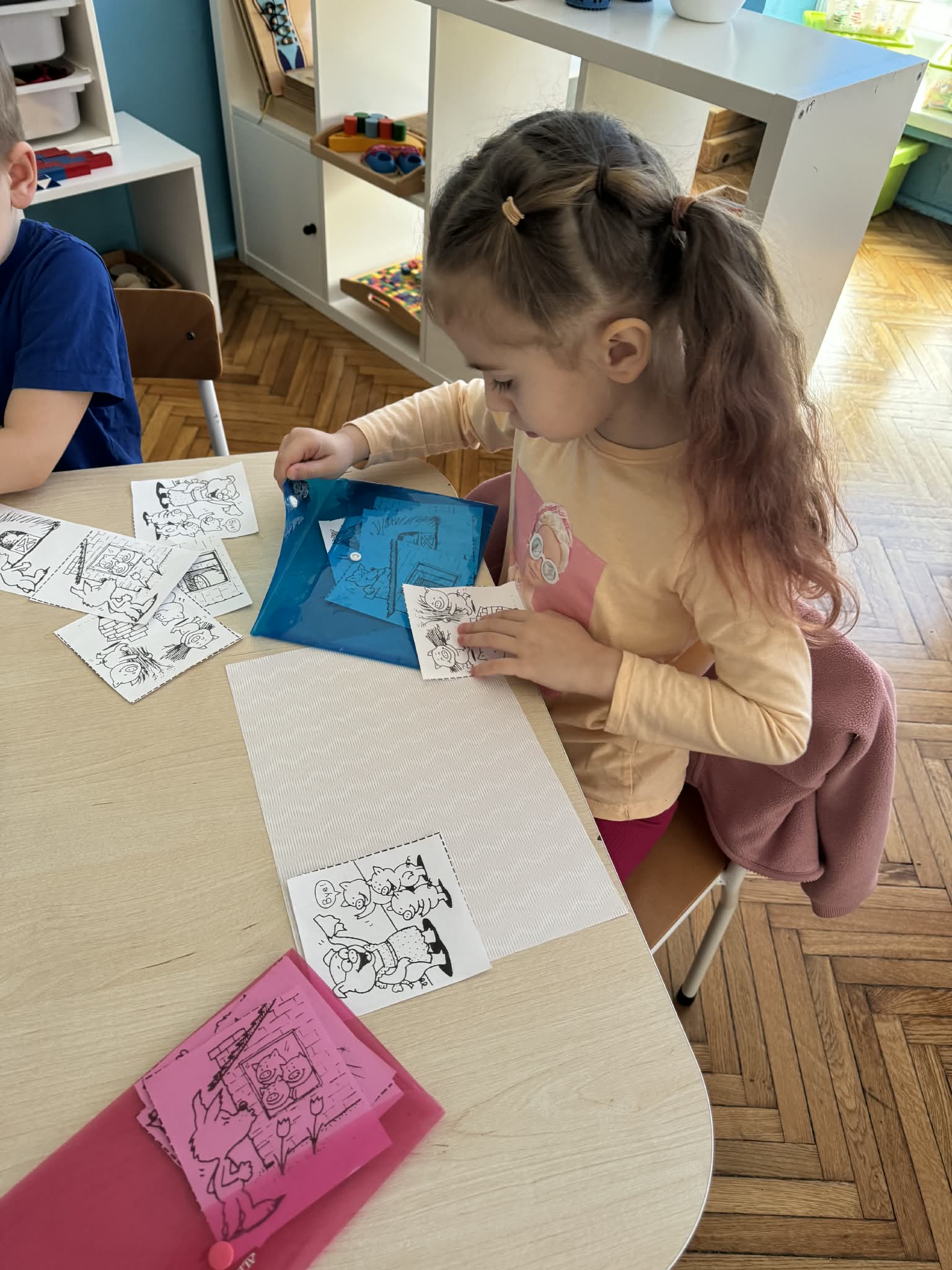 W naszym przedszkolu dzieci miały okazję przenieść się do świata bajek, uczestnicząc w wyjątkowych zajęciach inspirowanych opowieścią ,,Trzy świnki”. Podczas teatrzyku mali aktorzy z ogromnym zaangażowaniem wcielali się w role trzech świnek oraz groźnego wilka. Występ był pełen emocji, śmiechu i wspólnej zabawy, a mali artyści wykazali się odwagą, kreatywnością i piękną współpracą. Następnie dzieci układały historyjkę obrazkowej do bajki ,,Trzy świnki”. Zadaniem przedszkolaków było ułożenie obrazków w odpowiedniej kolejności, tak aby przedstawiały prawidłowy przebieg wydarzeń.