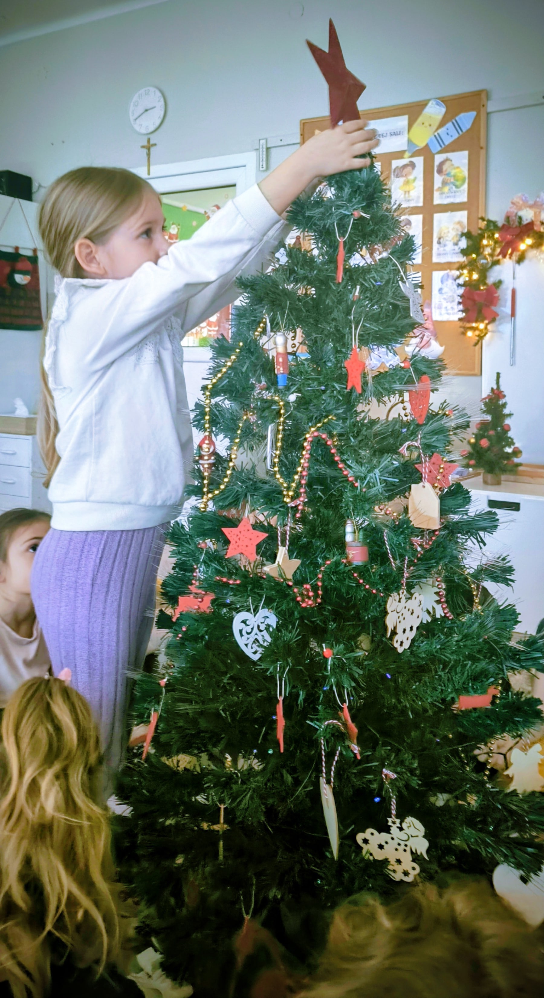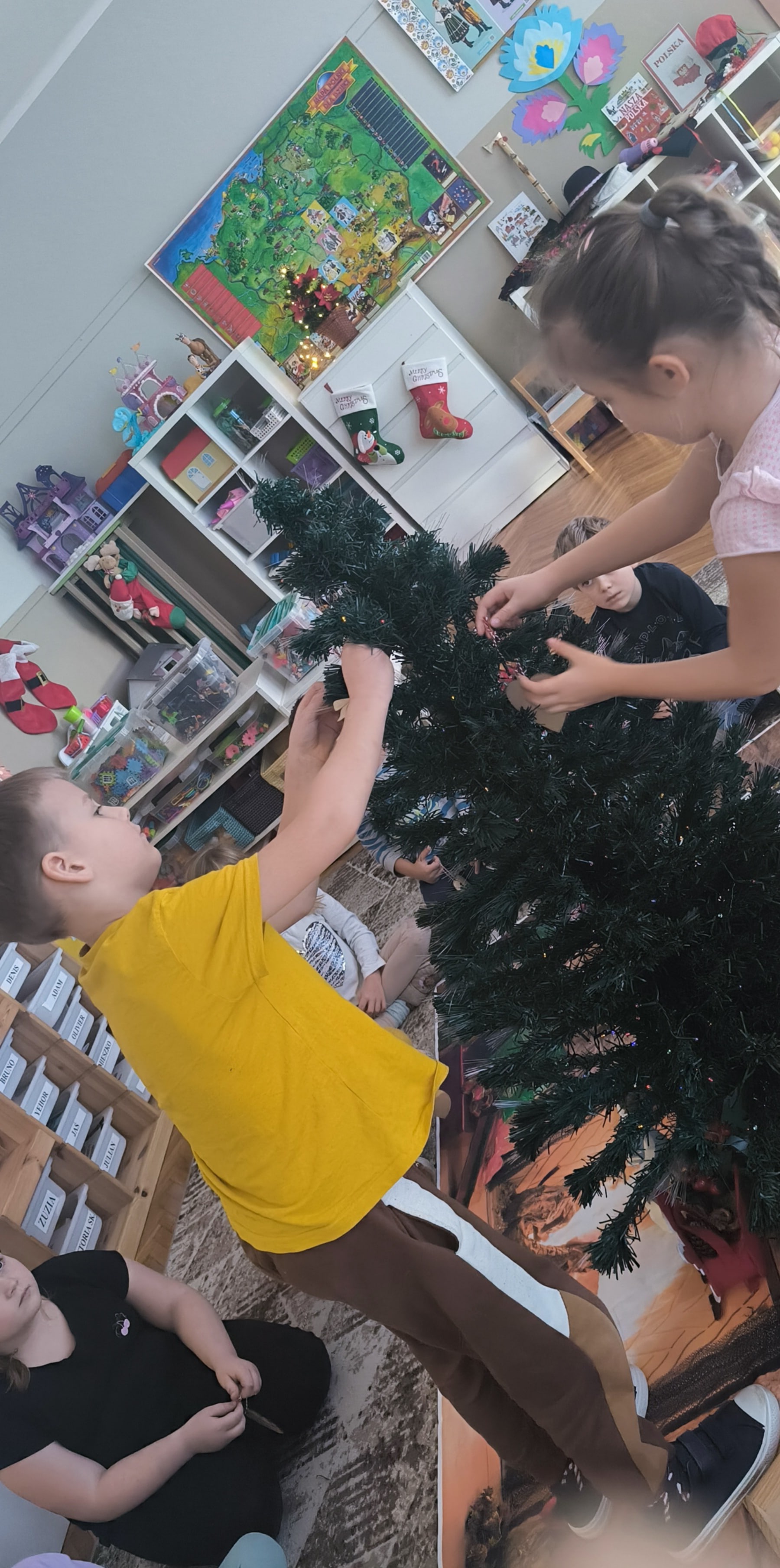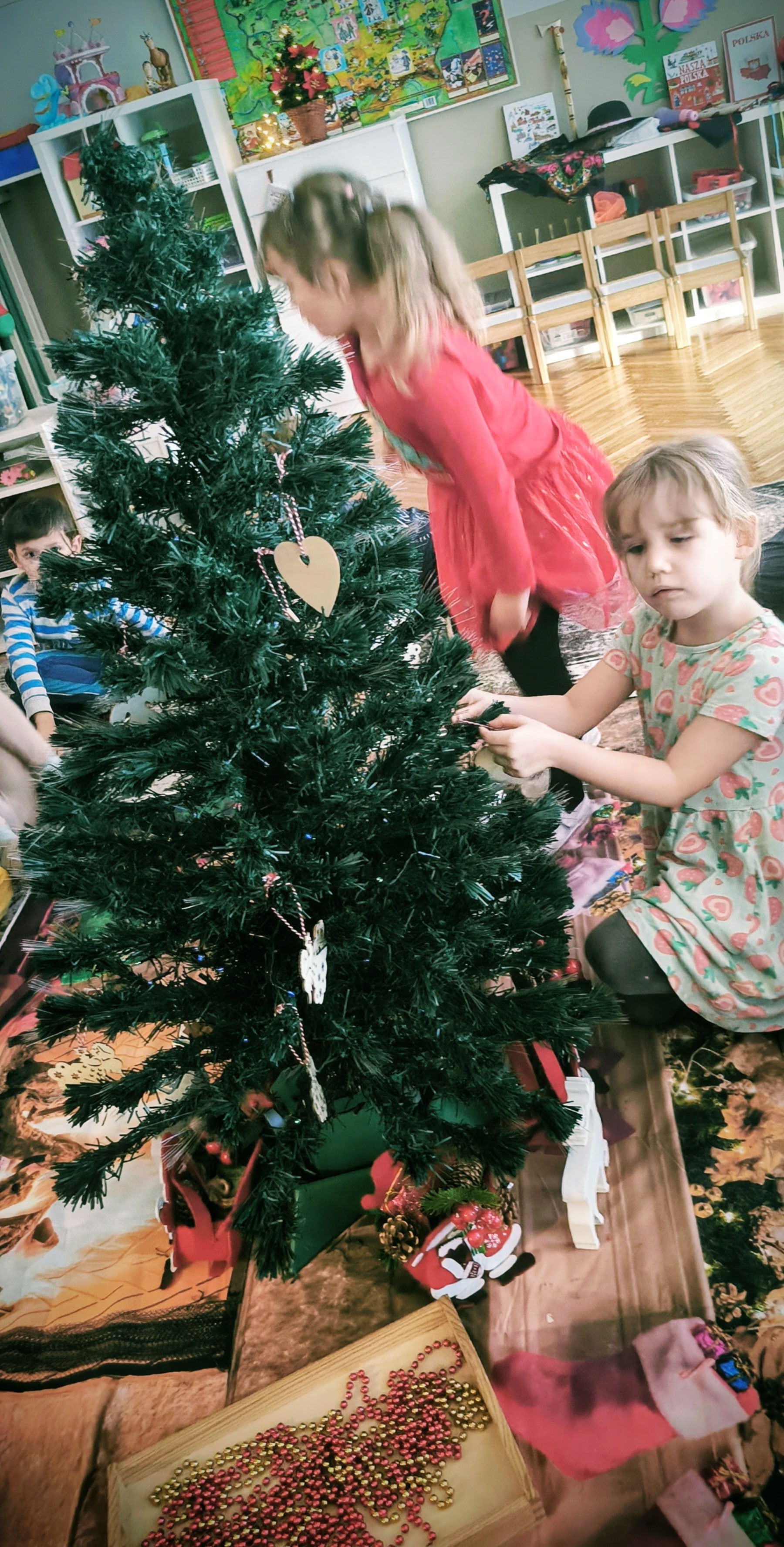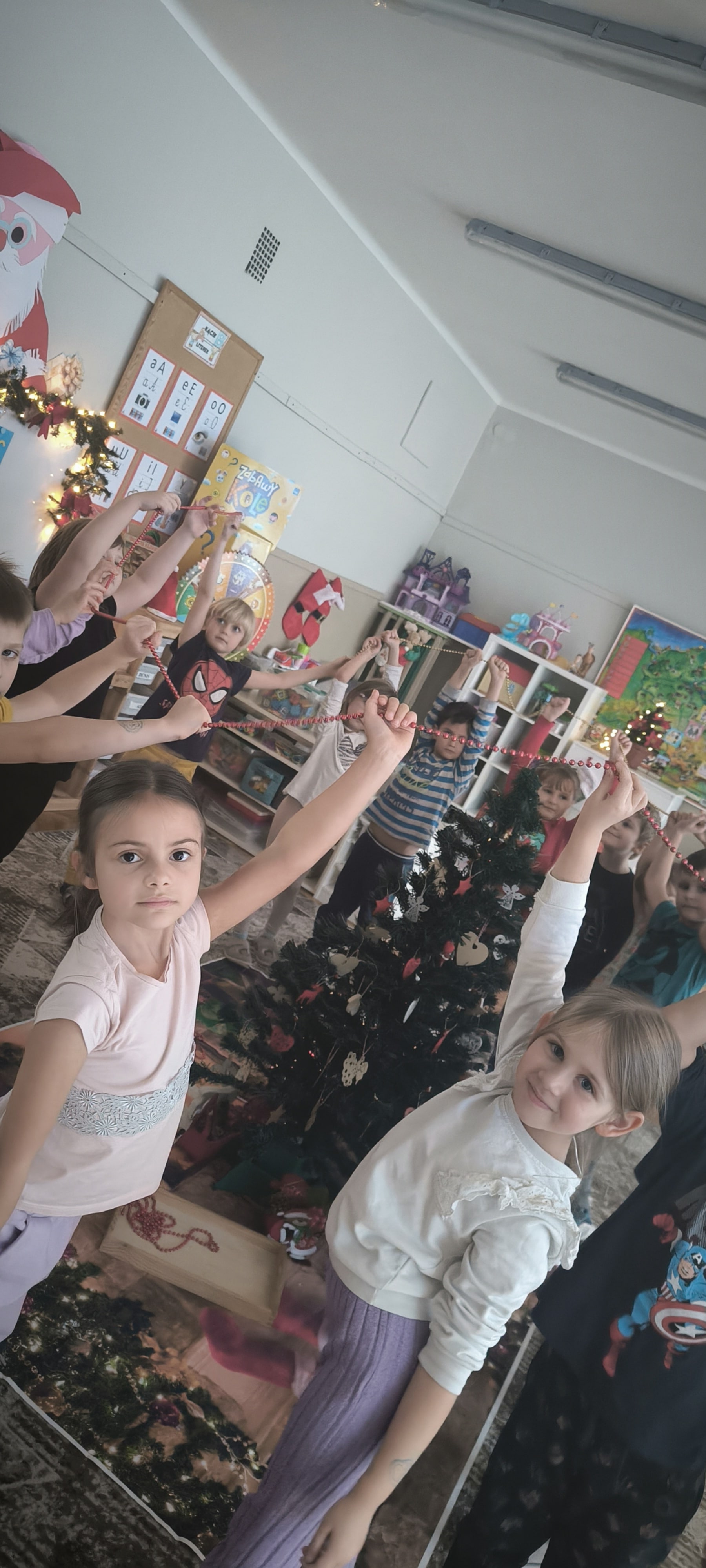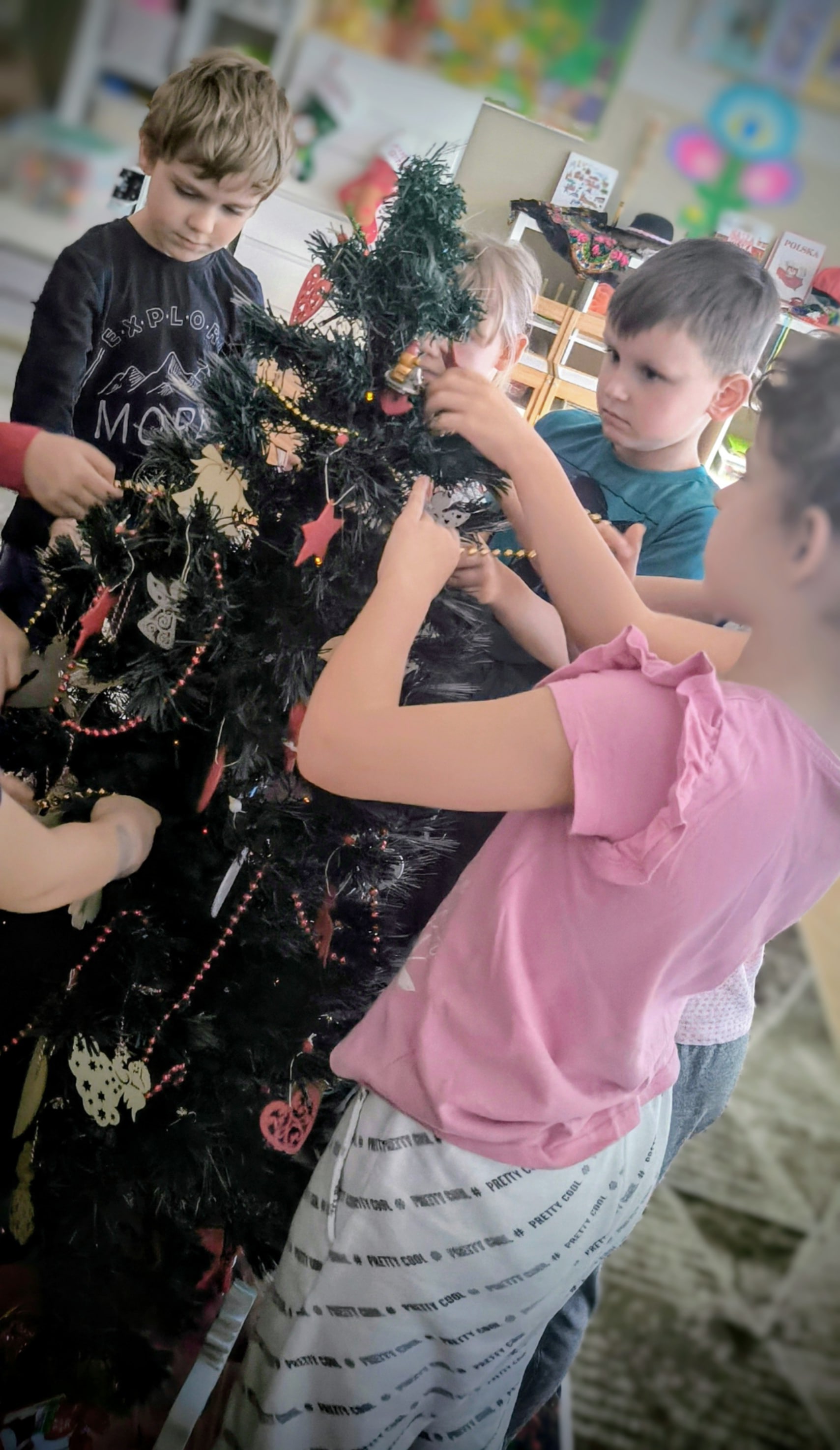 Coraz bliżej oczekiwane przez dzieci magiczne święta Bożego Narodzenia. Starszaki zgodnie ze zwyczajem bożonarodzeniowym samodzielnie ubrały choinkę oraz pomagały w dekorowaniu swojej klasy.
