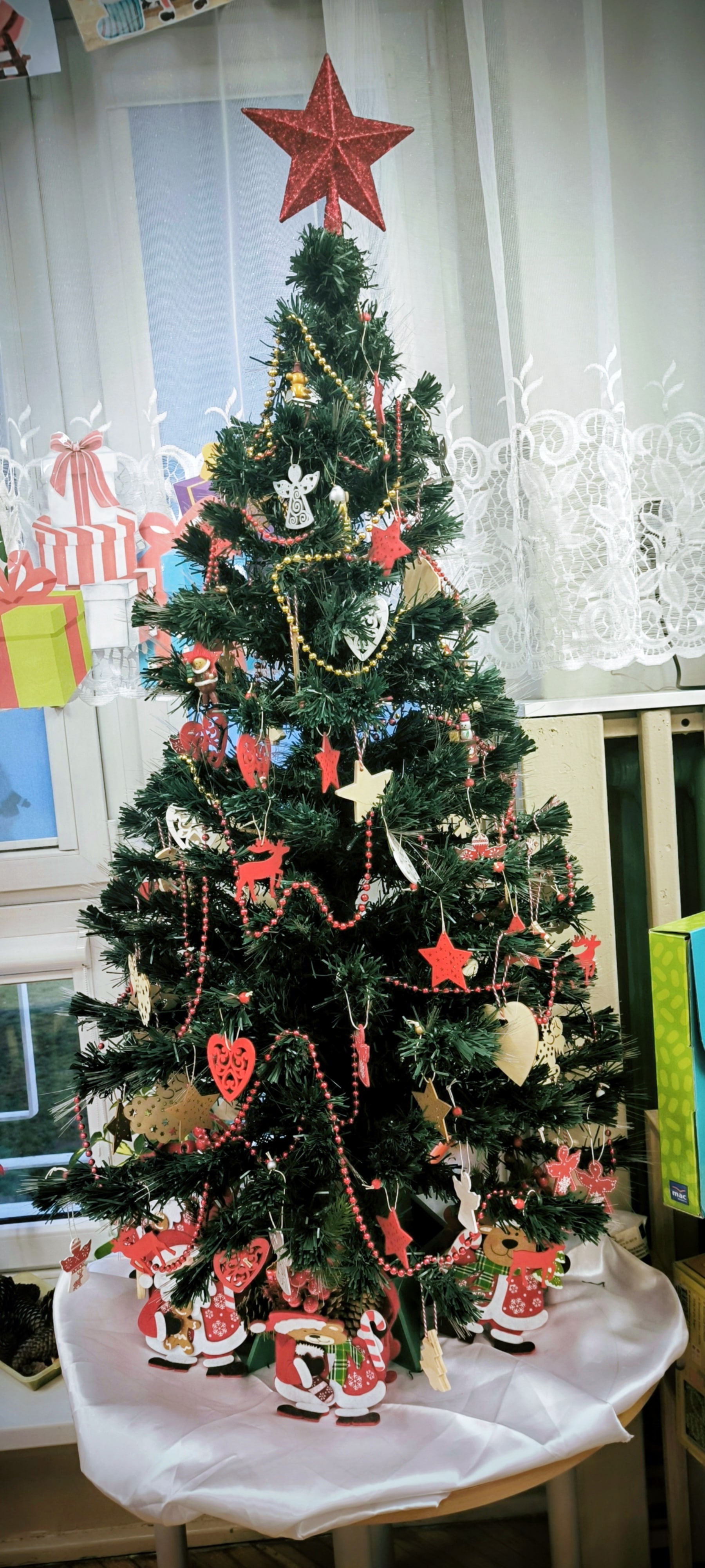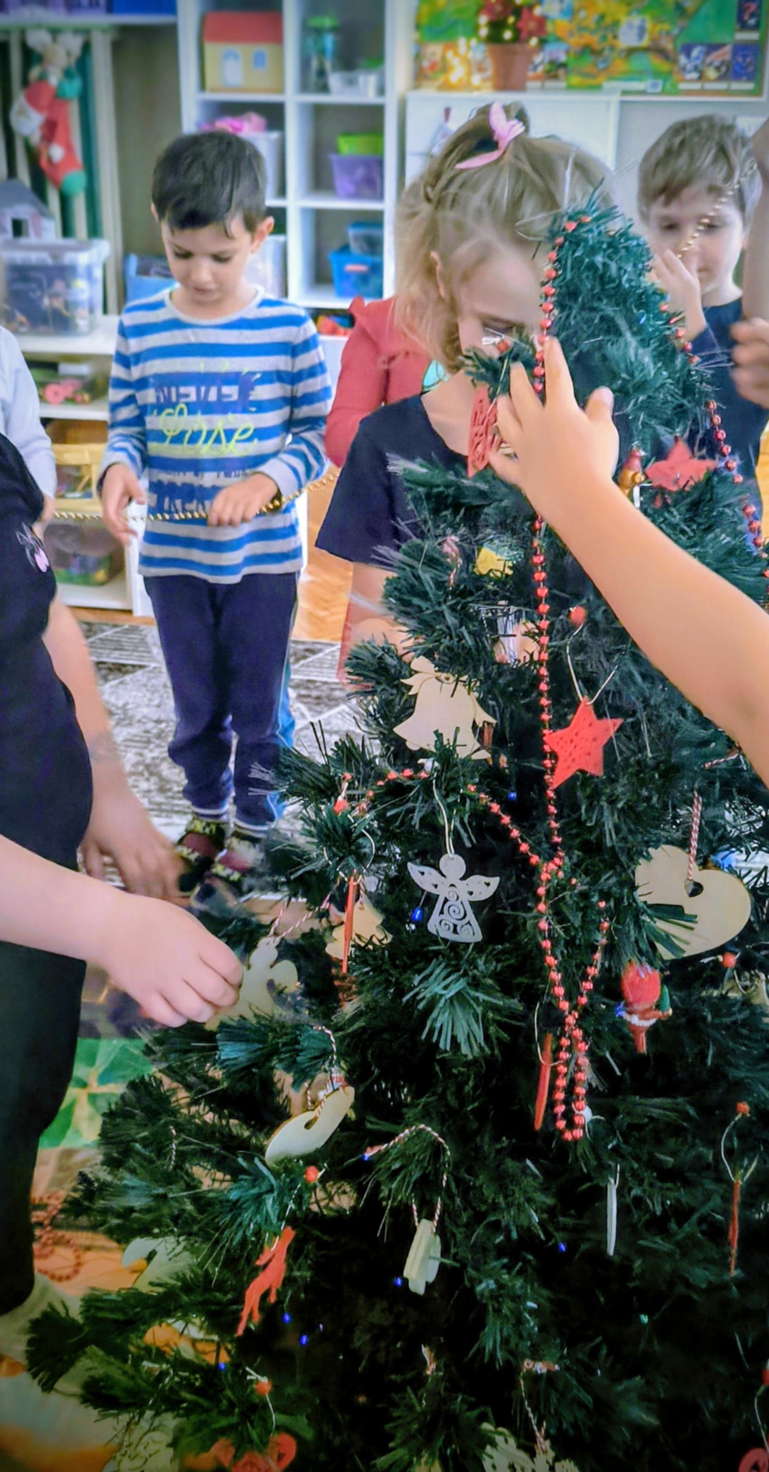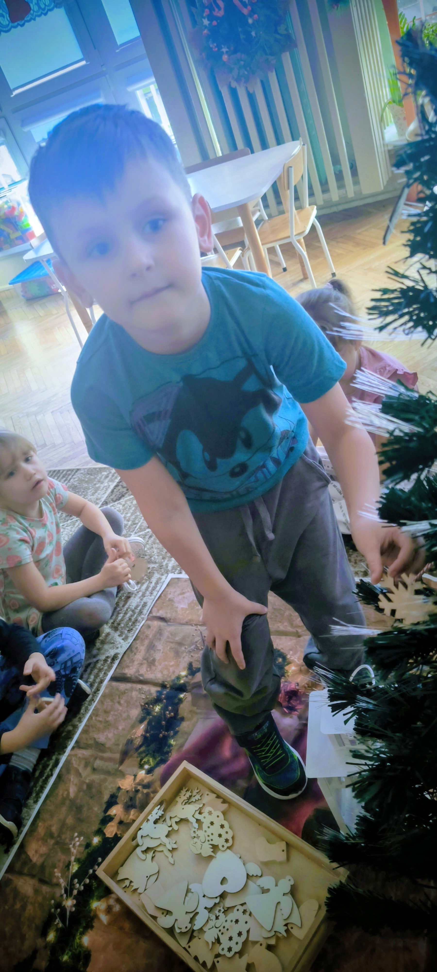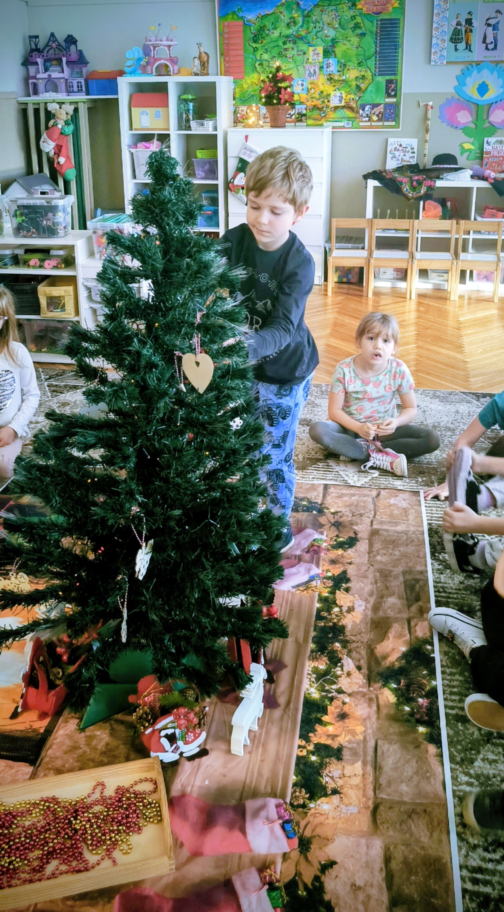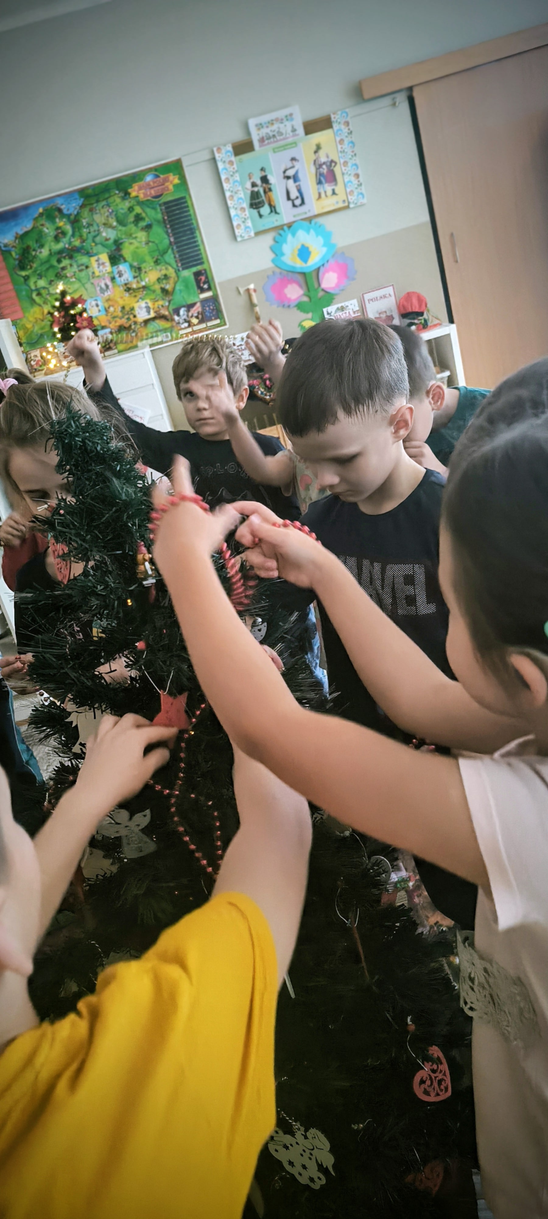Coraz bliżej oczekiwane przez dzieci magiczne święta Bożego Narodzenia. Starszaki zgodnie ze zwyczajem bożonarodzeniowym samodzielnie ubrały choinkę oraz pomagały w dekorowaniu swojej klasy.