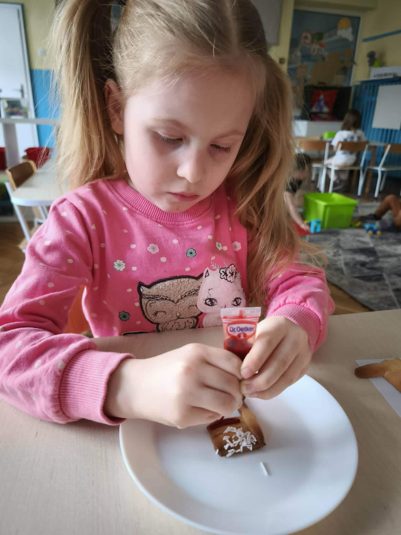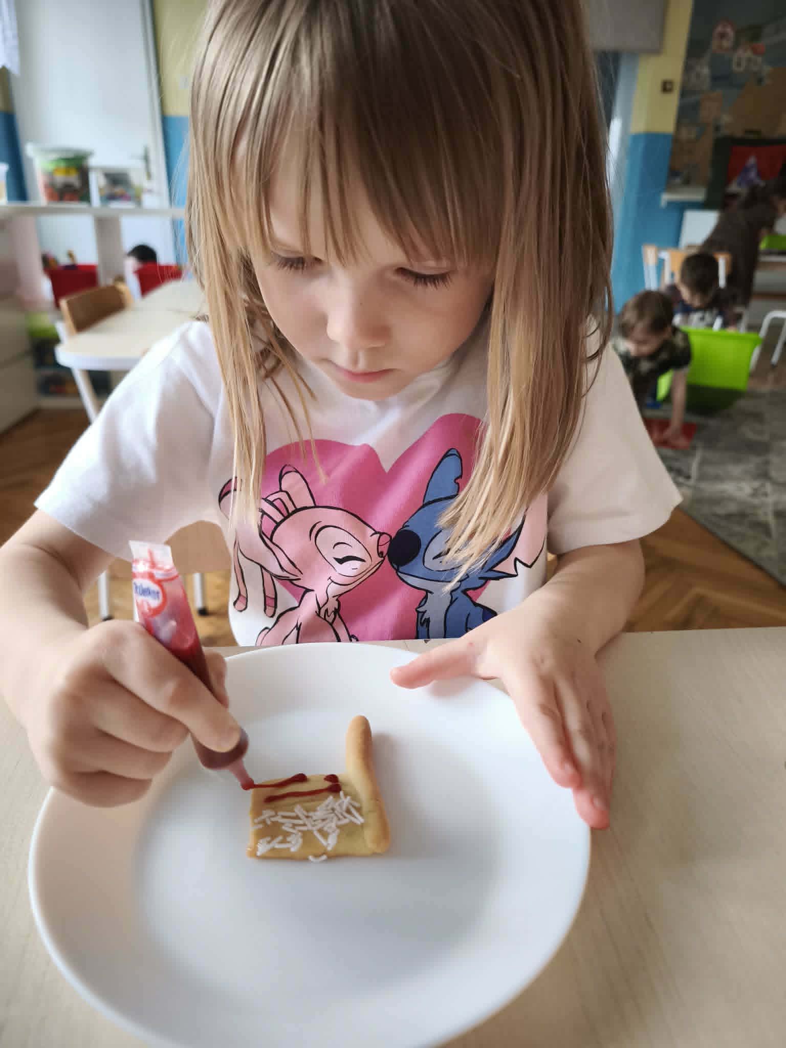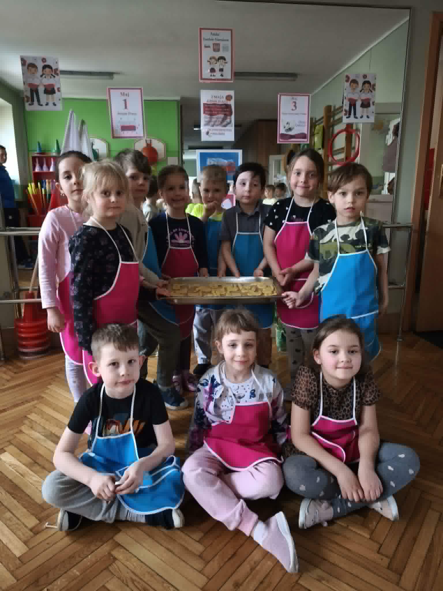 Z okazji zbliżających się polskich świąt majowych dzieci z grup 3 i 4 chcąc uczcić te ważne dla Polaków dni wykonały narodowe ciasteczka patriotyczne w formie flagi Polski