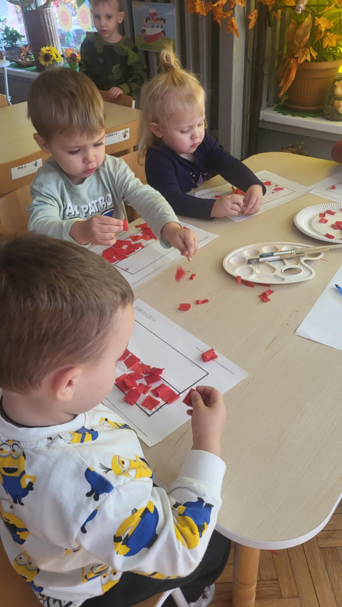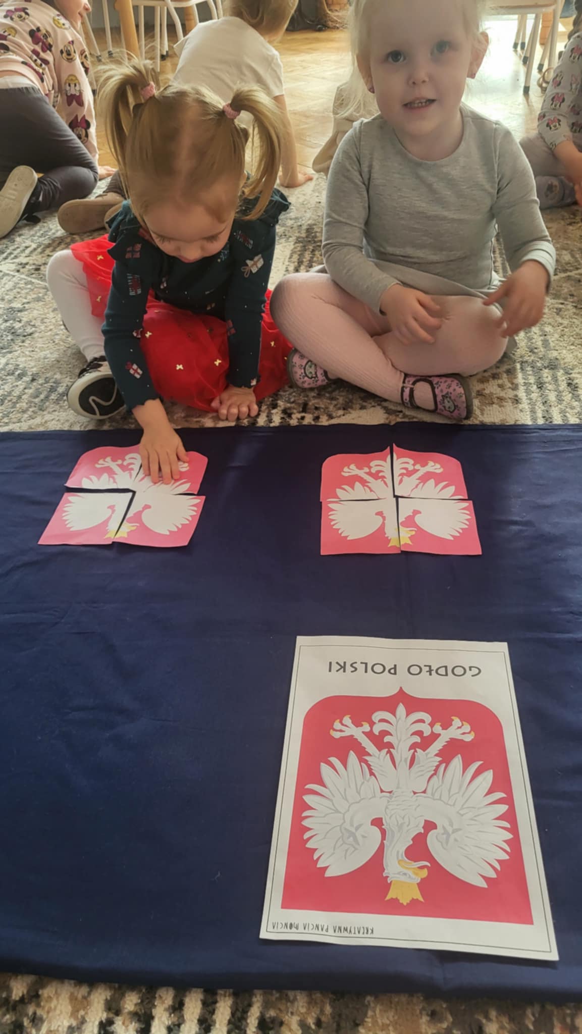 Jedenasty listopada to nasze największe państwowe i narodowe święto, to dzień radości i dumy z odzyskania niepodległości. Nasze Maluszki przygotowują się do niego już w tym tygodniu. Jak dotąd poznały symbole narodowe: Flagę Polski, Godło Polski oraz Hymn Polski. Samodzielnie wykonały flagi, układały puzzle z godłem, wiedzą również, jak należy zachowywać się podczas uroczystości państwowych oraz śpiewania hymnu.